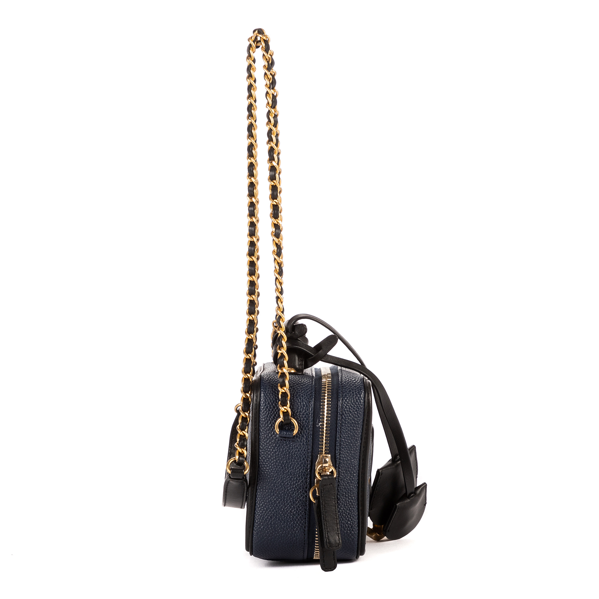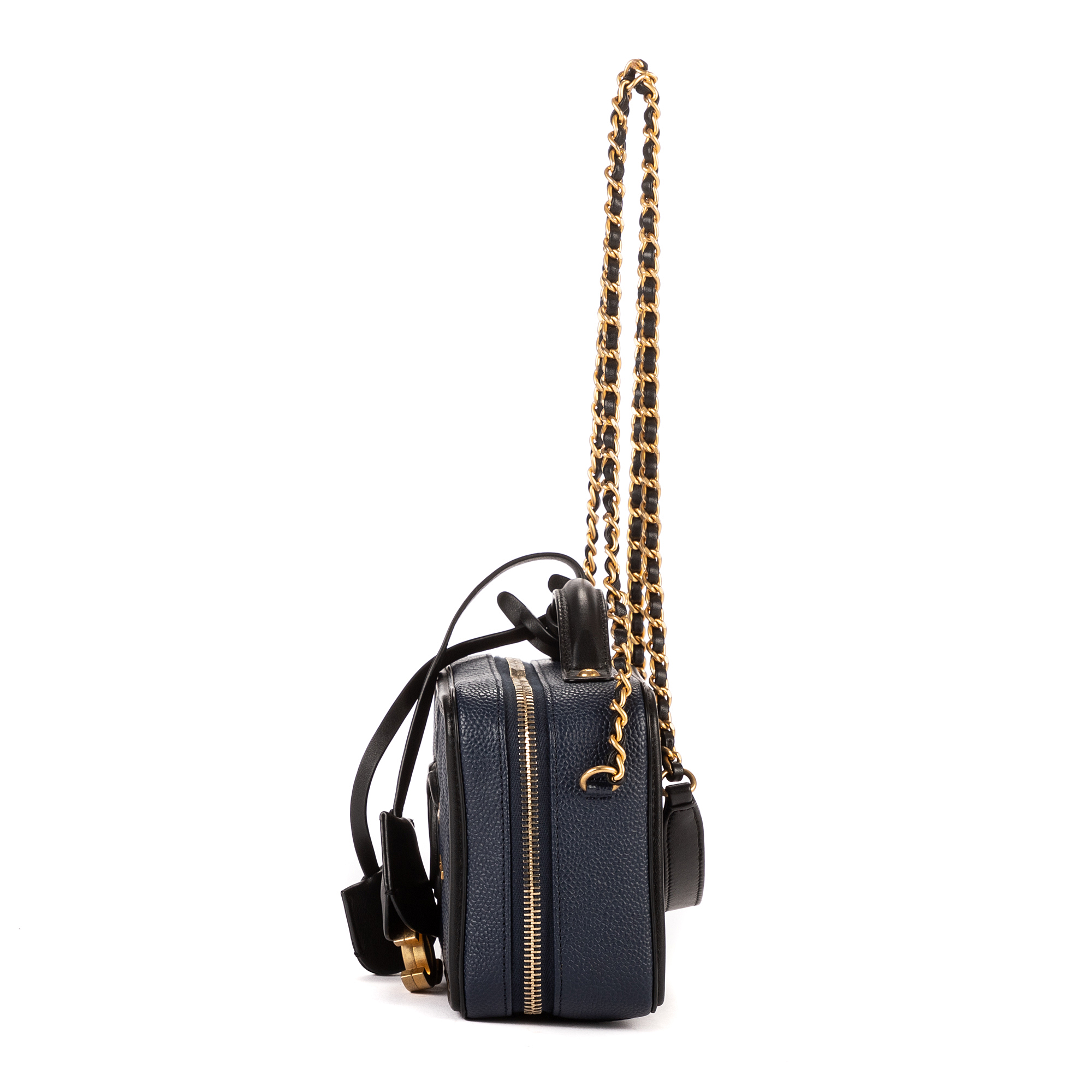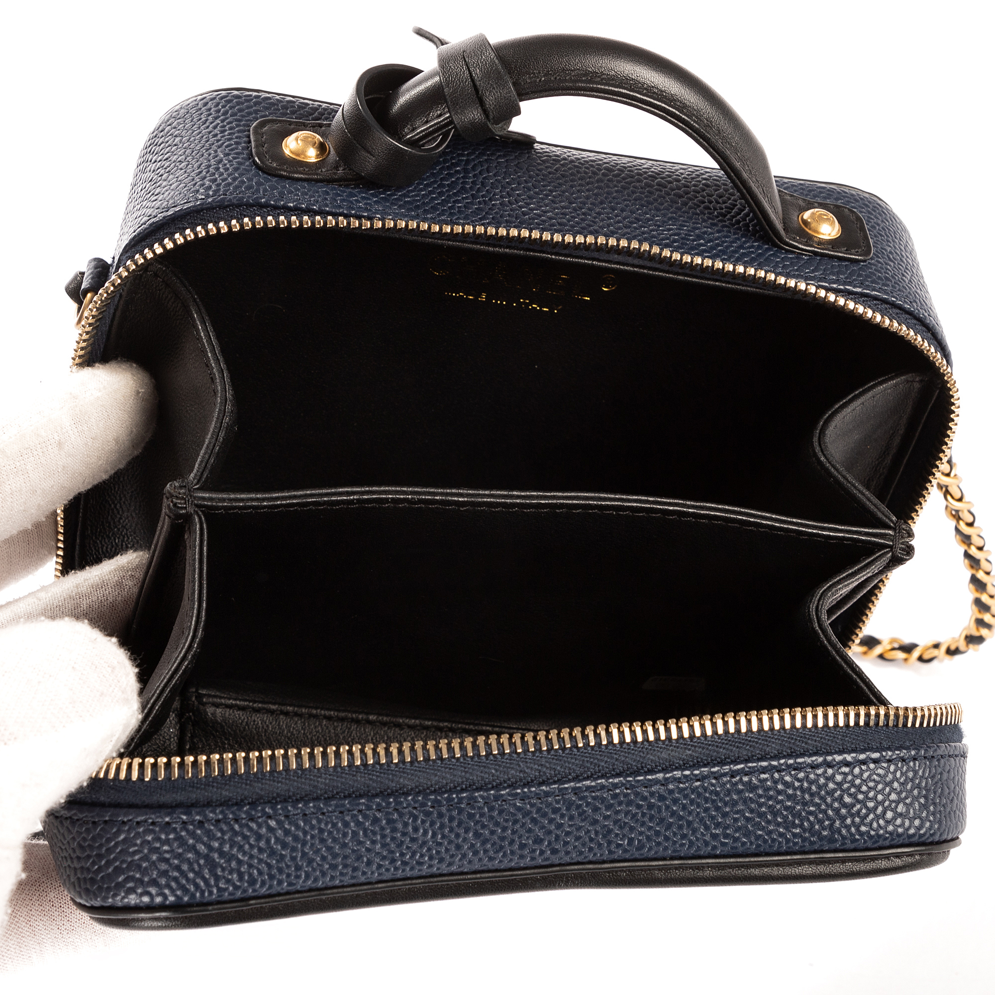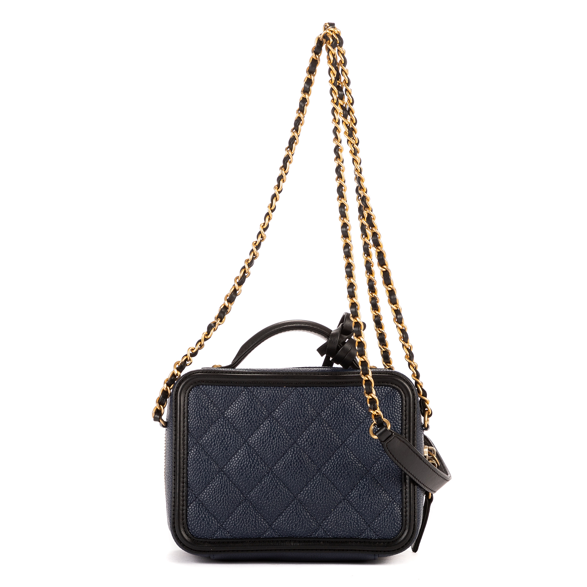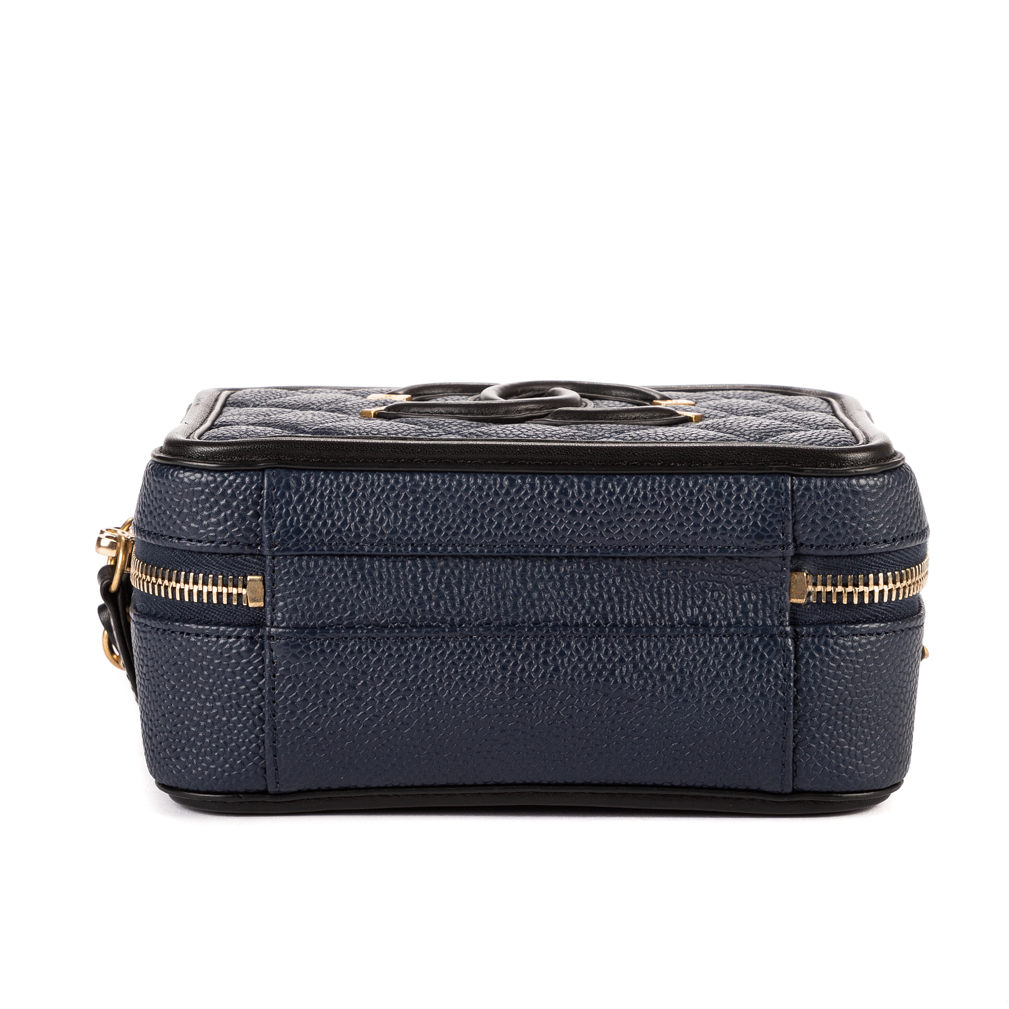 Chanel Shoulder Bag Ltd. Ed. Filigree Vanity Case in Navy Caviar Leather and Gold hardware. The product is in Excellent Condition (A).
