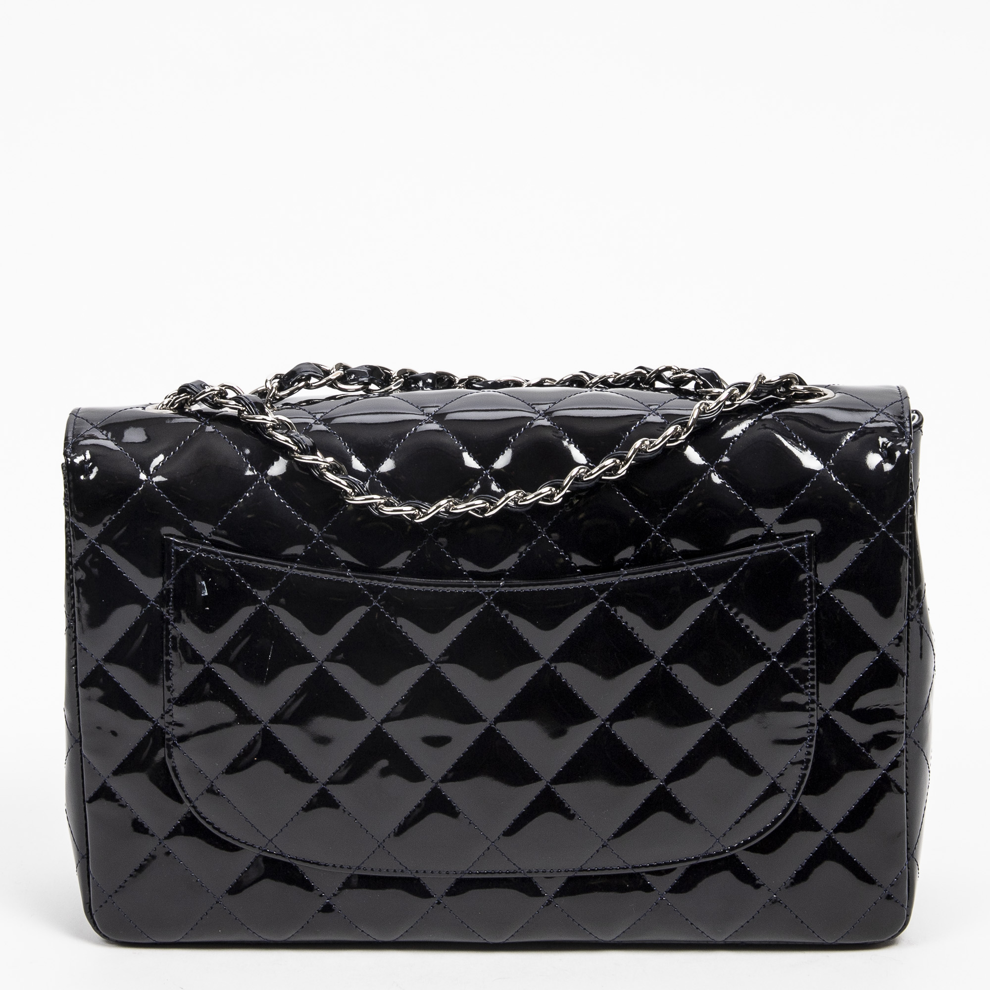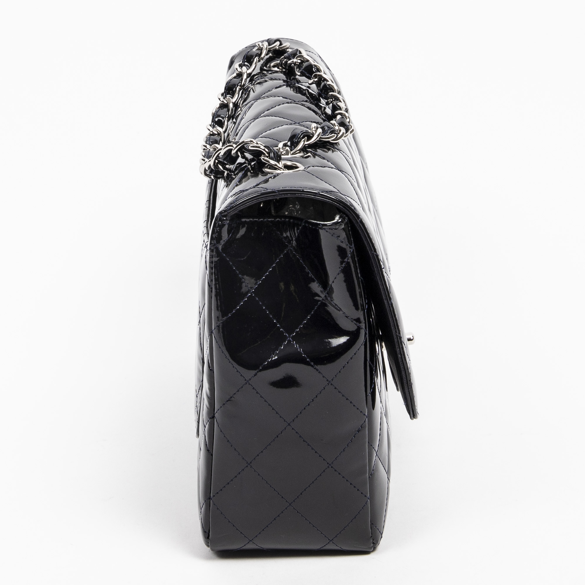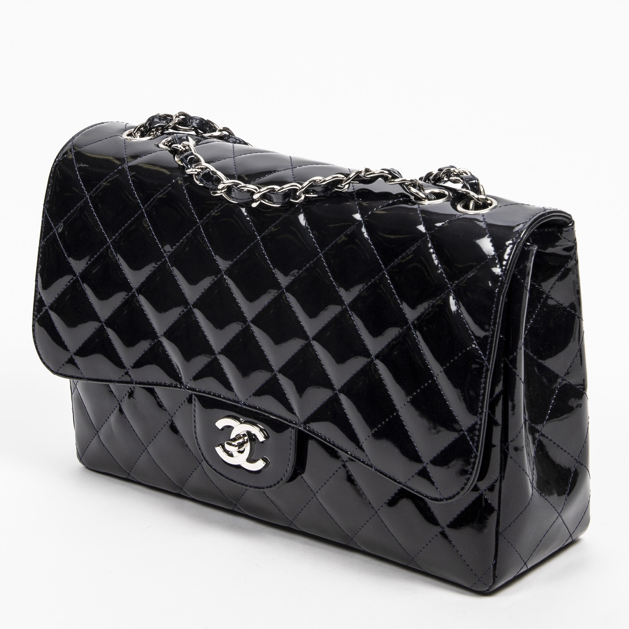 Description : Chanel Shoulder Bag Ltd. Ed. Mobile Art Signed Lagarfeld Jumbo Single Flap in Navy Quilted Patent Leather and Silver hardware. The product is in Excellent Condition (A). Dimensions: 30x18x8 cm SKU: AAU0014 Serial number: 12449623 (2008-2009) Accessories Included: sticker; card; dustbag; box Delivery: We have a 5 to 7 business days delivery policy, hassle-free and duties/tariffs included! BrandCo Paris finds rare and top condition items at great deals, they are worth your patience! Shop with confidence - All BrandCo Paris items are carefully selected and authenticated by our team of experts. All the items come with an authenticity certificate and packaging delivered by BrandCo Paris. Item Condition Grading Table N (Like New) AA (Perfect Condition) A (Excellent Condition) AB (Very Good Condition) B (Good/Fair)