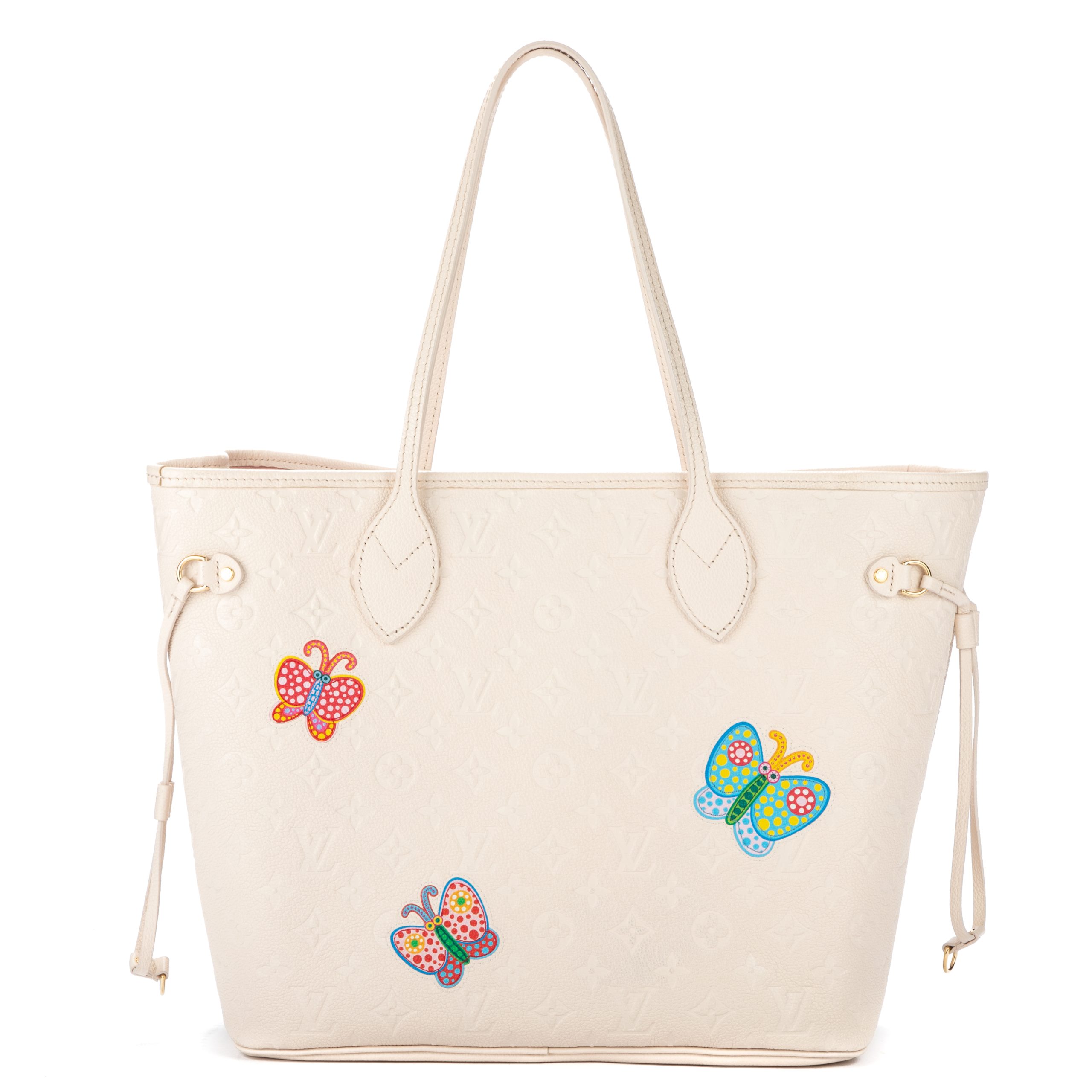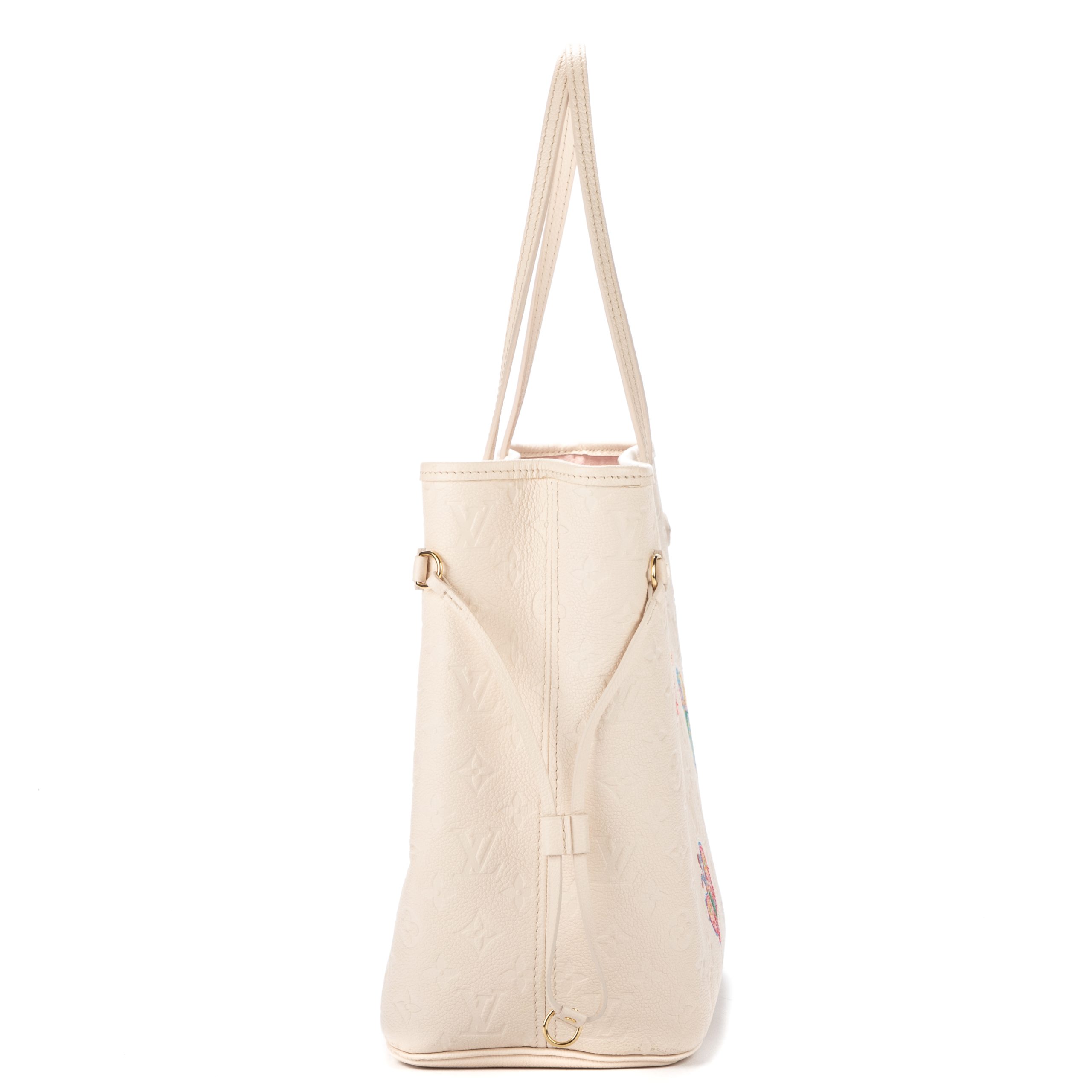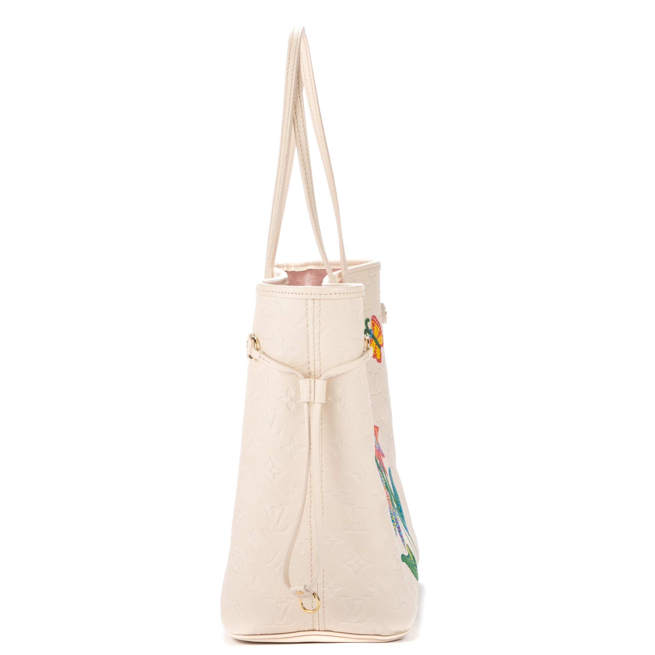 Louis Vuitton Shoulder Bag Ltd. Ed. Yayoi Kusama Flower Neverfull MM in Quartz White Monogram Empreinte Infinity Dots and Golden Brass hardware. The product is Like New (N).