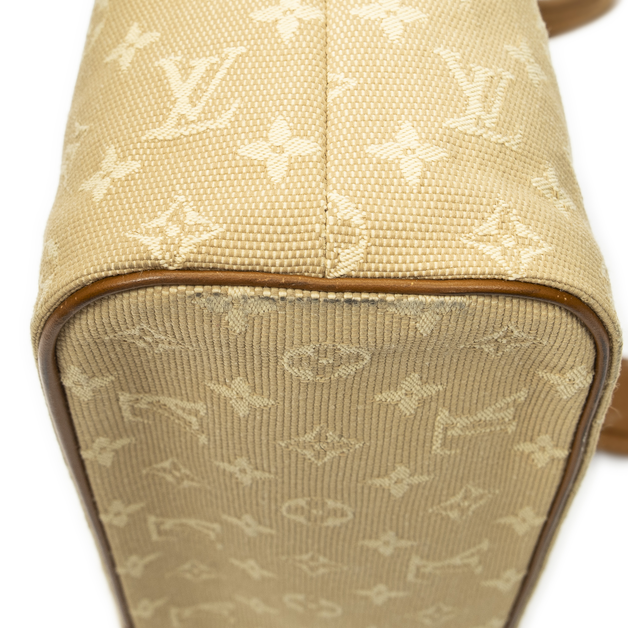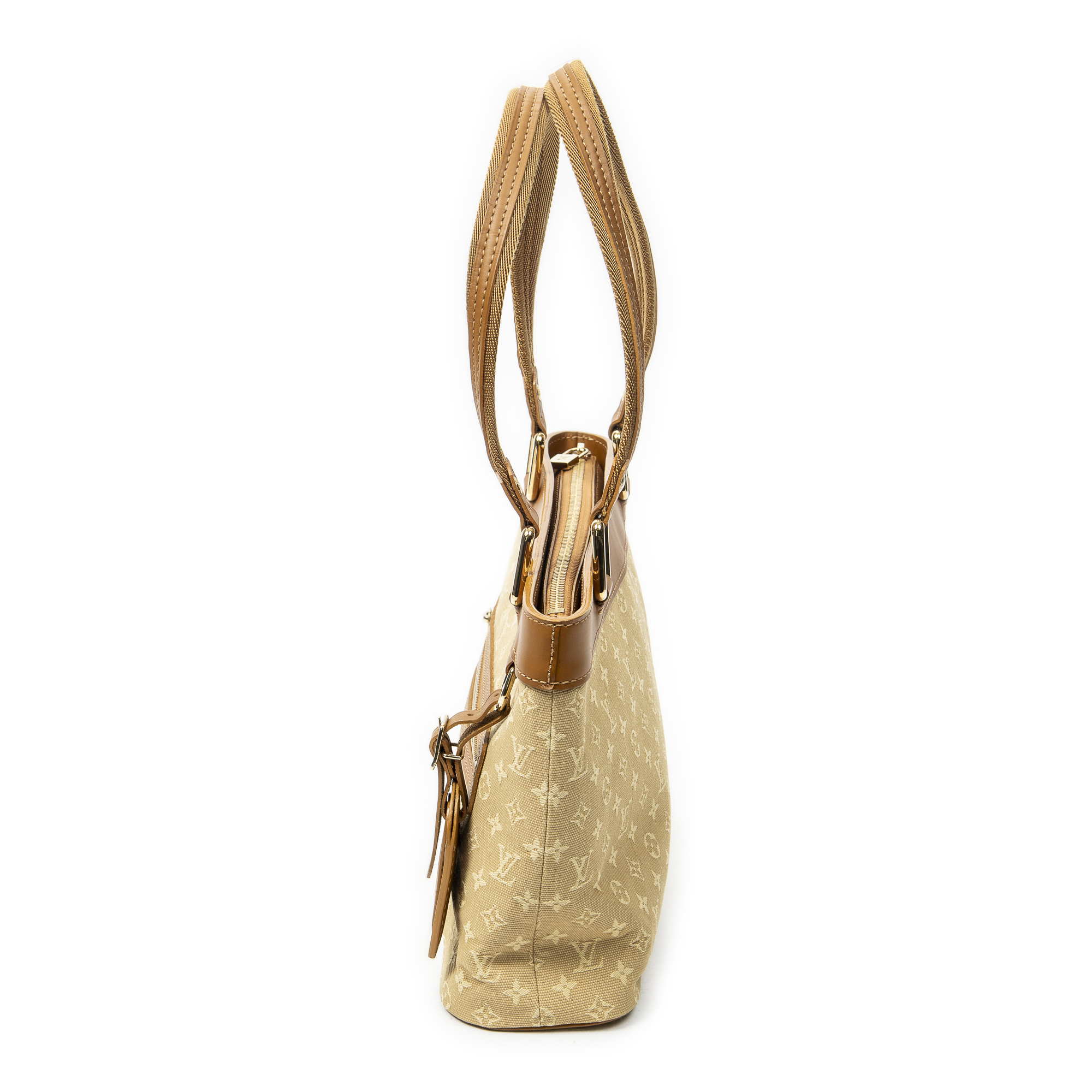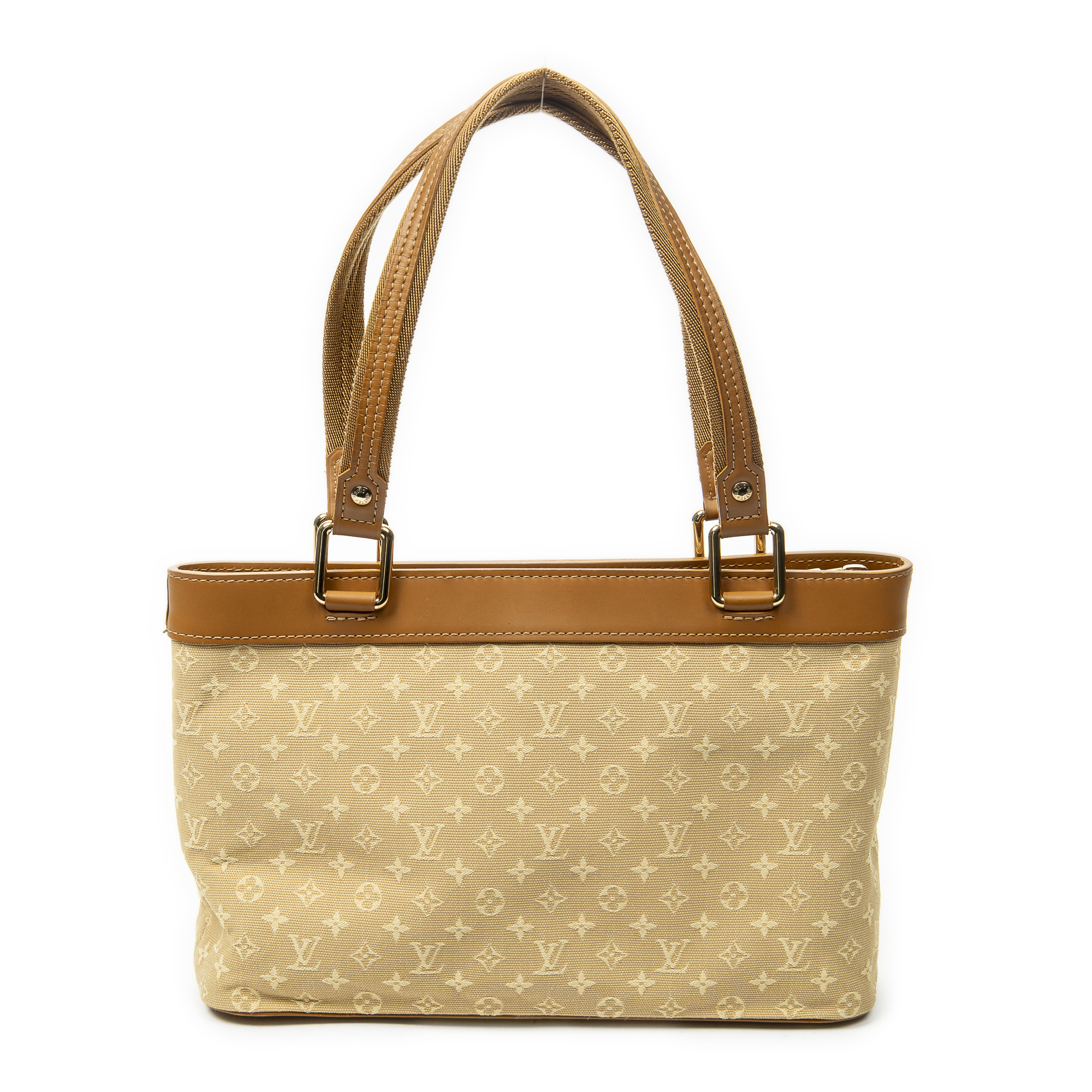 Louis Vuitton Shoulder Bag Lucille PM in Beige Monogram Mini Lin and Golden Brass hardware. The product is in Perfect Condition (AA).