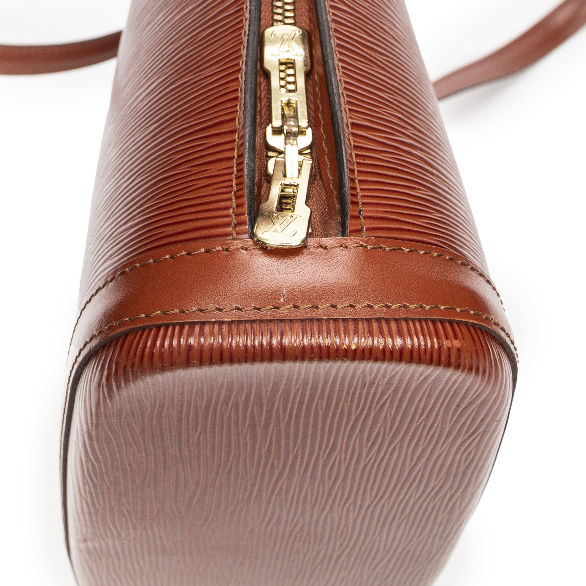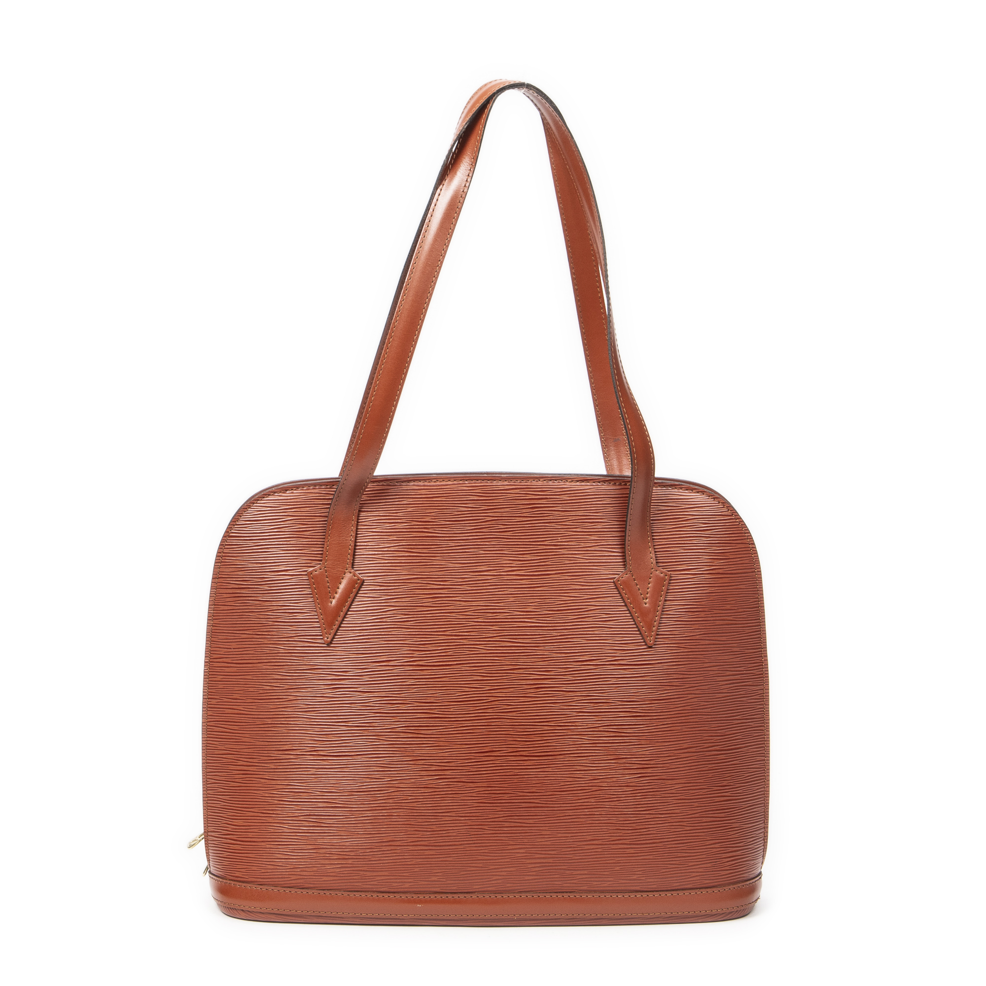 Louis Vuitton Shoulder Bag Lussac in Tan Epi and Golden Brass hardware. The product is in Excellent Condition (A).