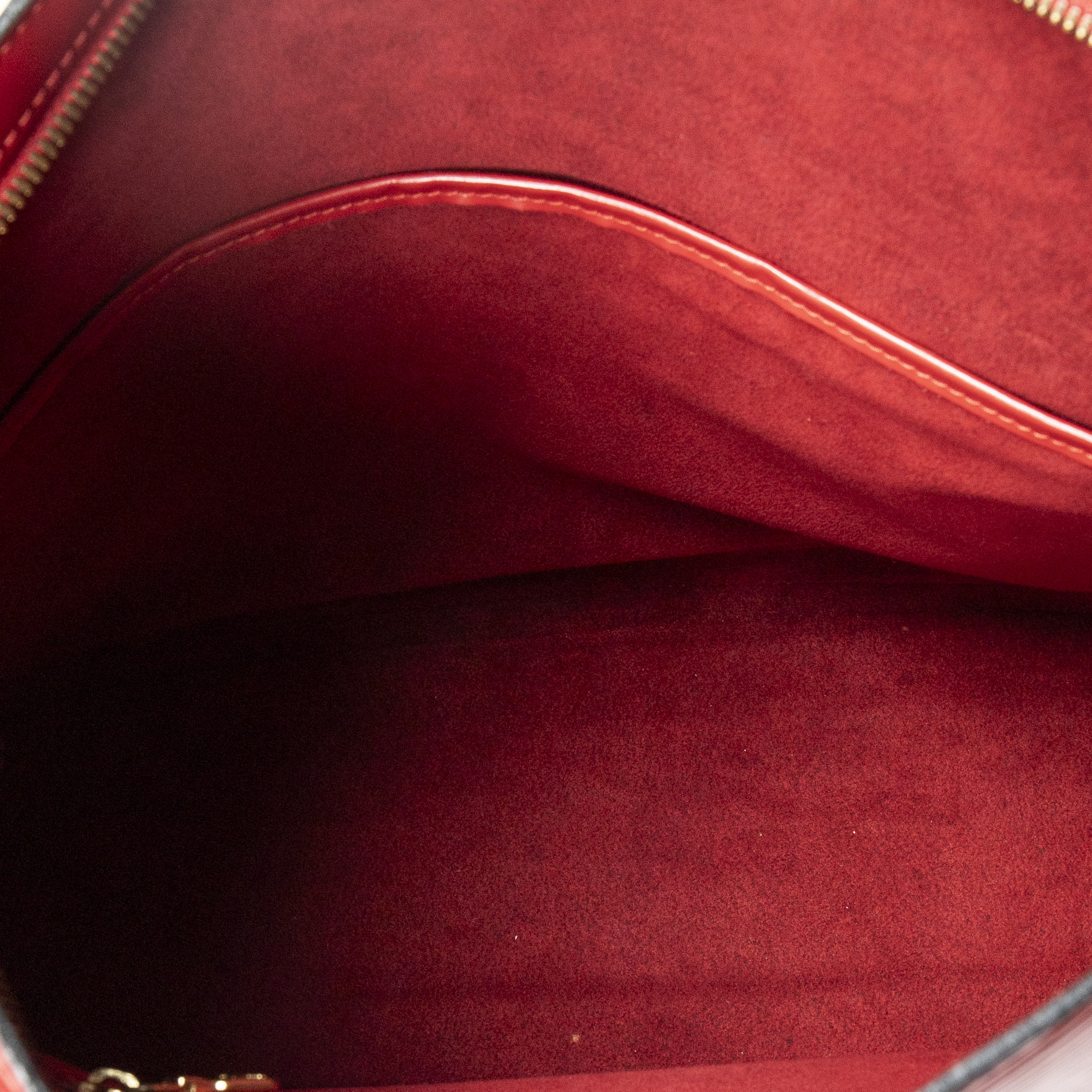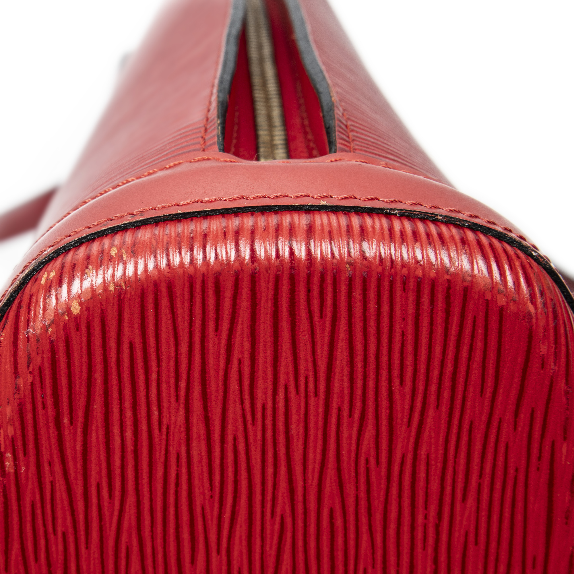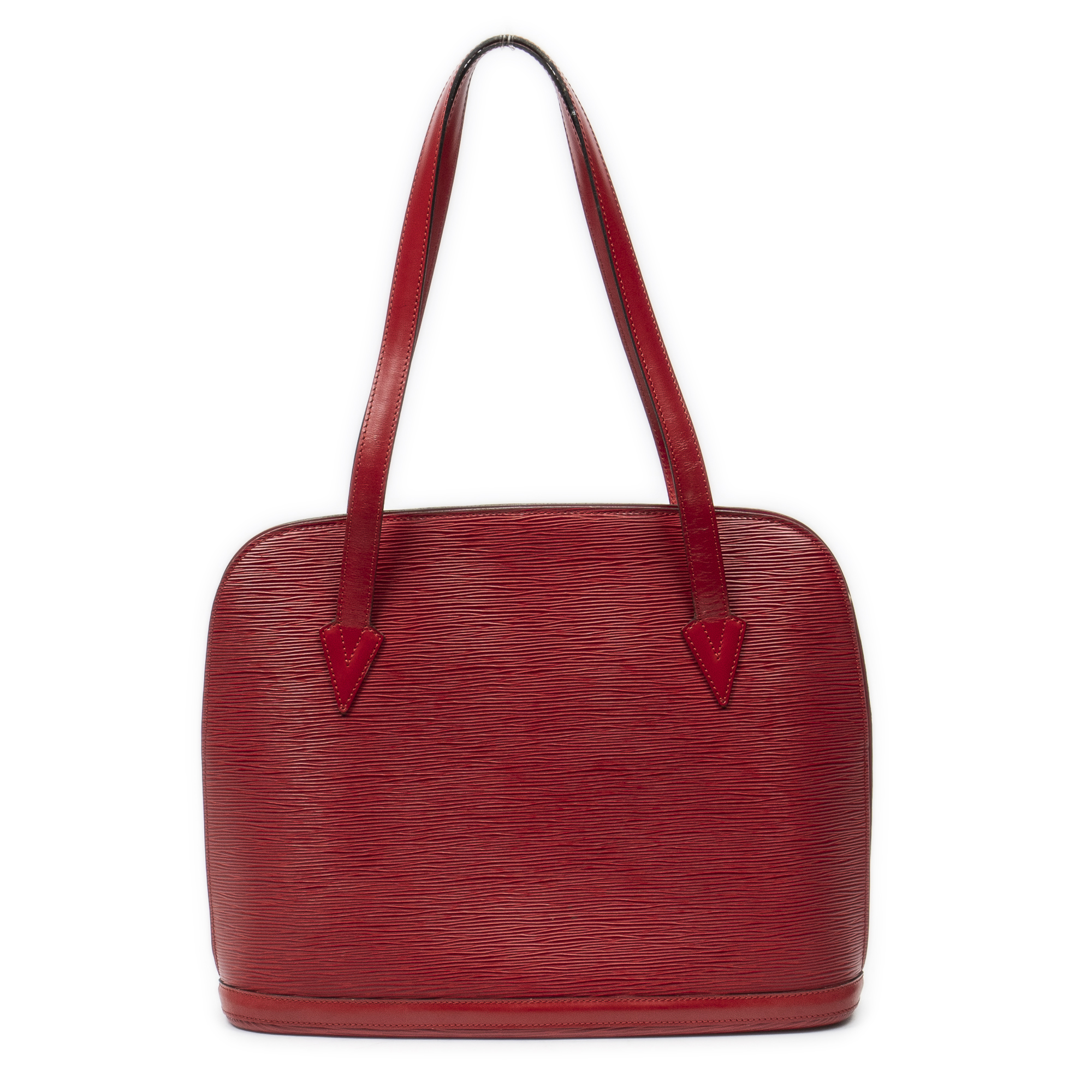 Louis Vuitton Shoulder Bag Lussac in Red Epi and Golden Brass hardware. The product is in Excellent Condition (A).