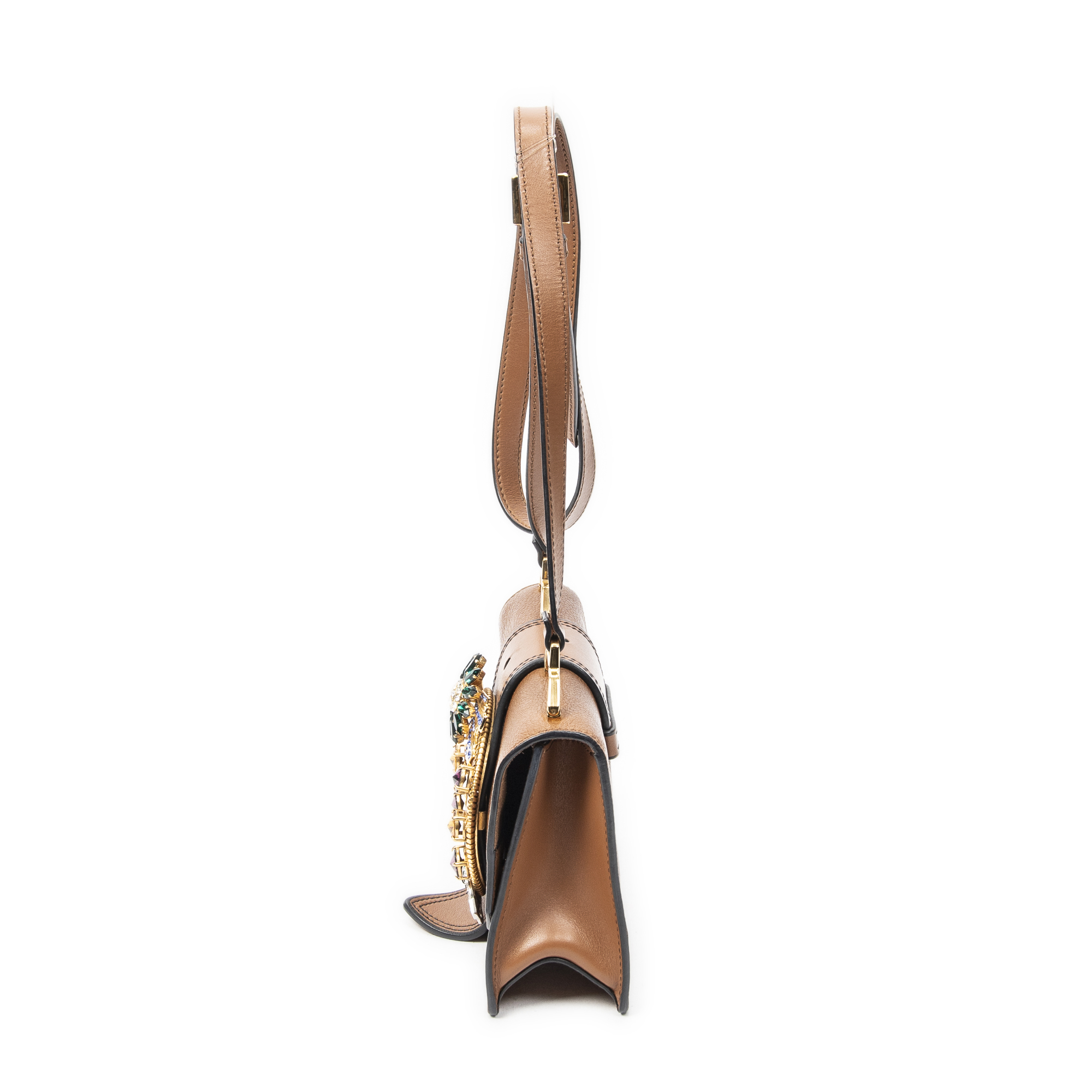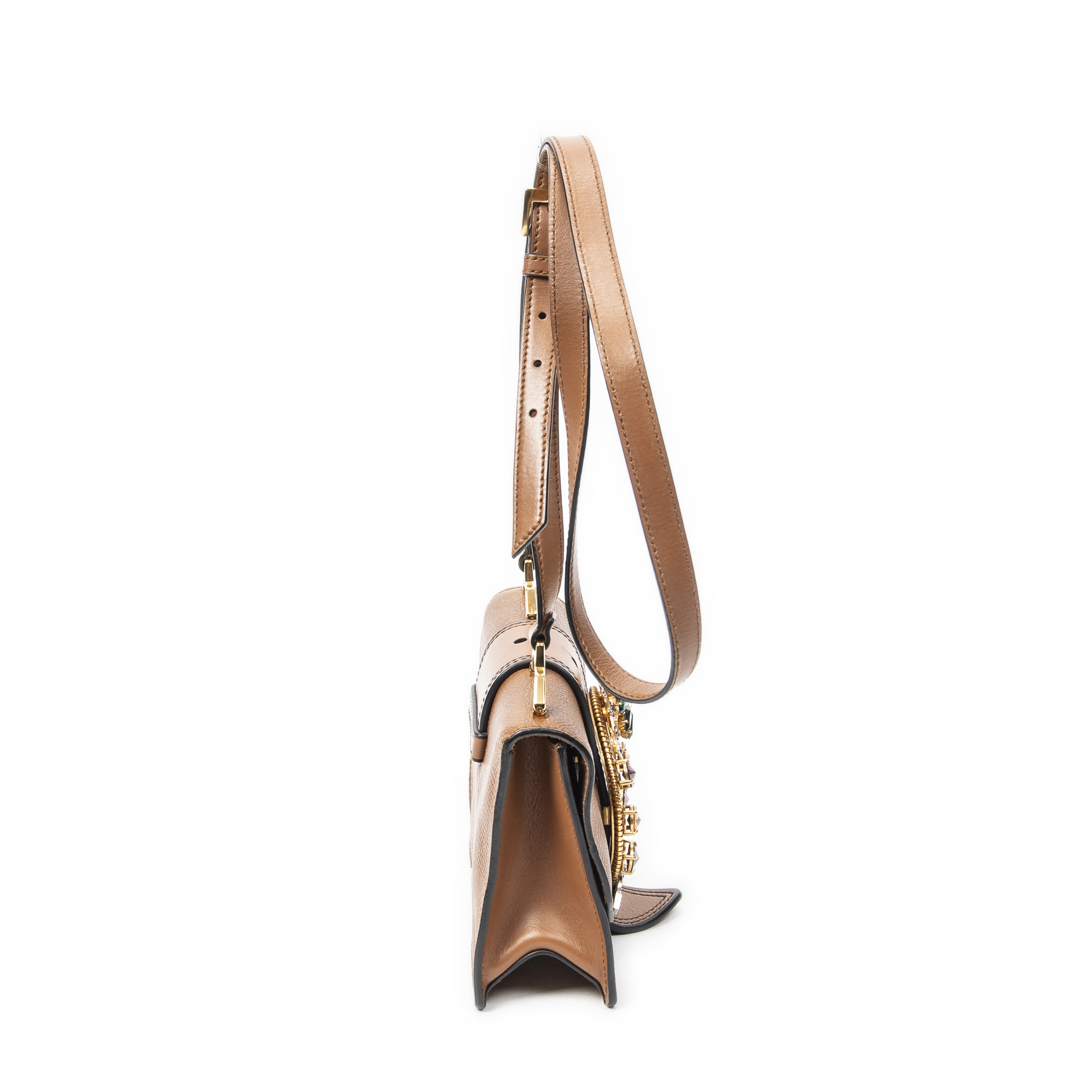 Miu Miu Shoulder Bag Madras Crystal Jewel Embellished Crossbody in Brown Grained Leather and Gold/Silver hardware. The product is in Excellent Condition (A).