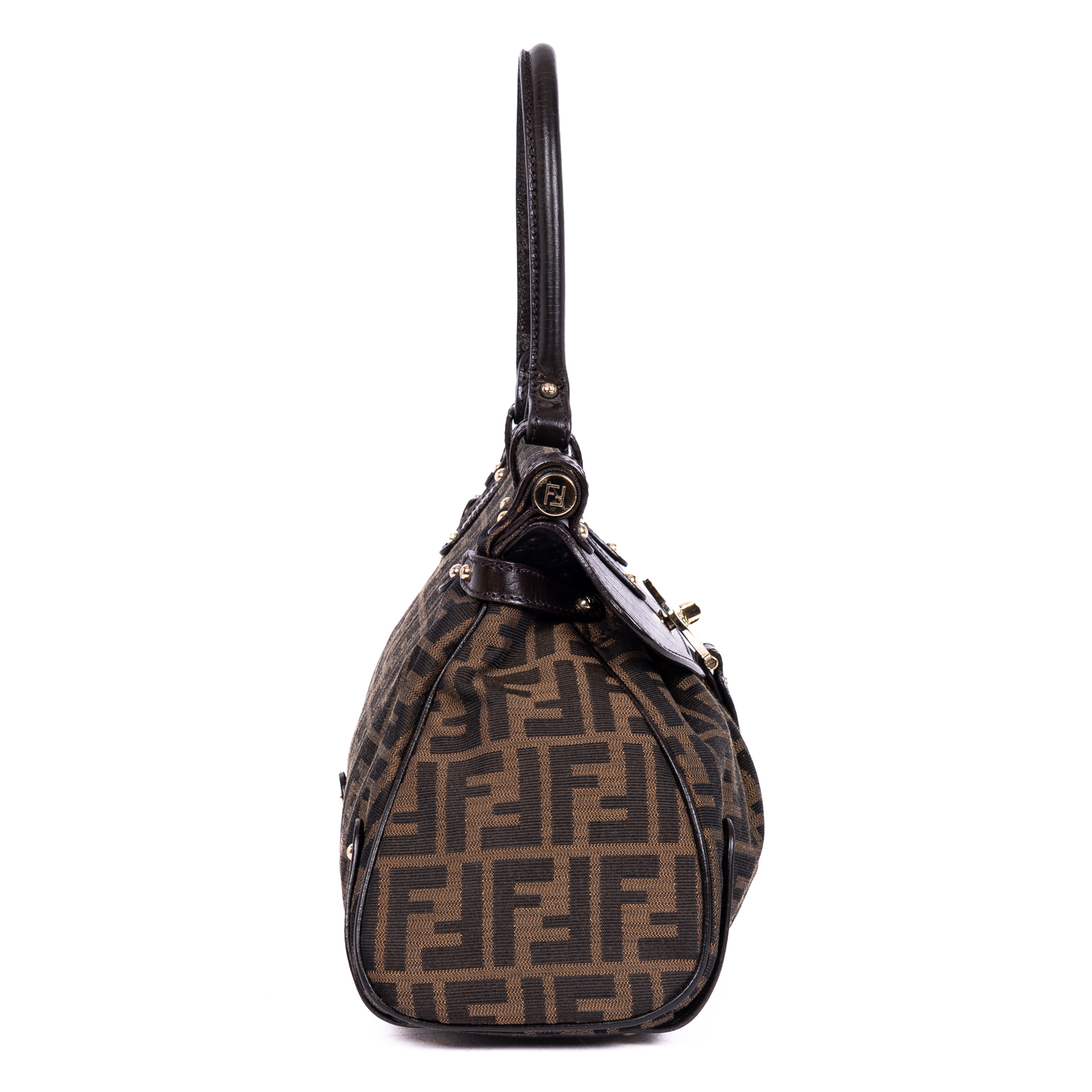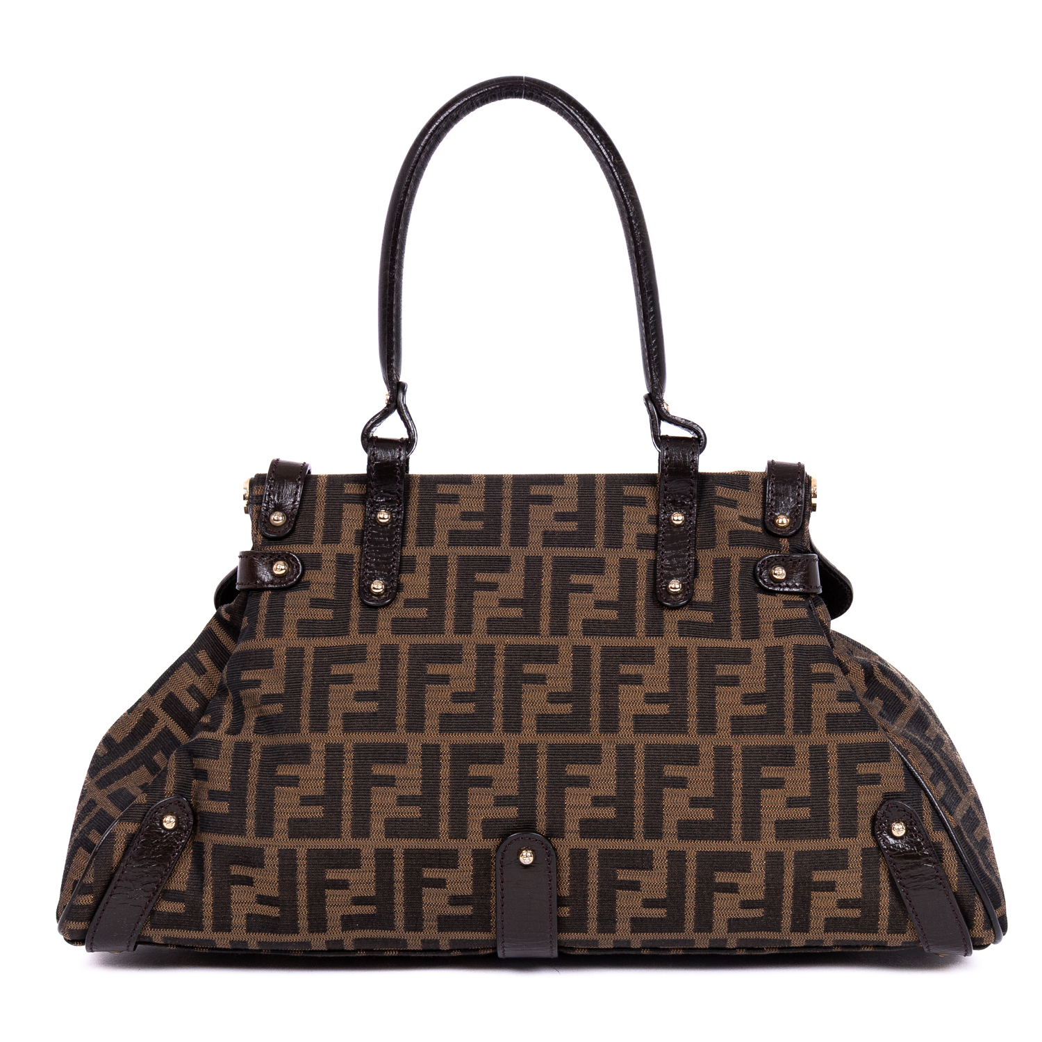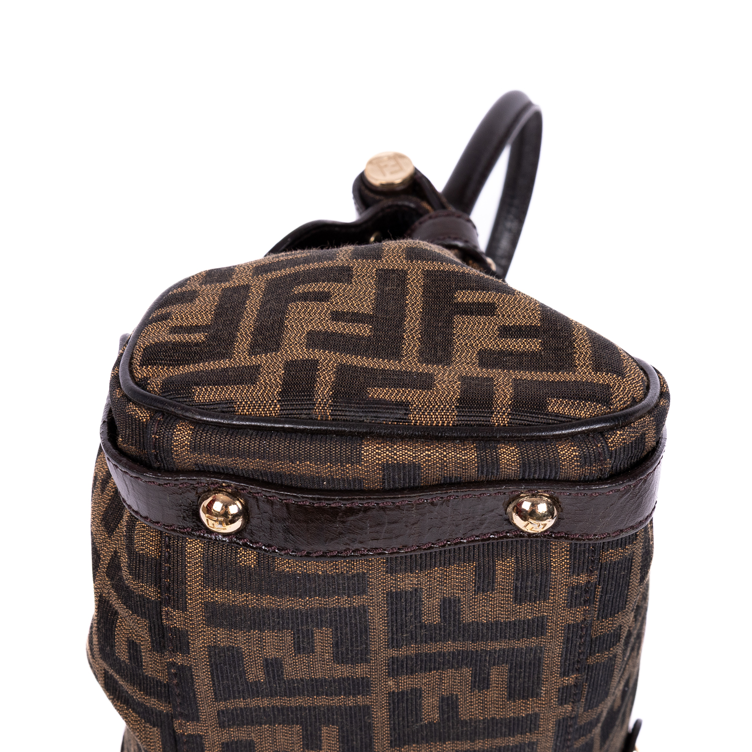 Fendi Shoulder Bag Magic Top Handle Bag Medium in Brown Zucca Canvas and Gold hardware. The product is in Excellent Condition (A).