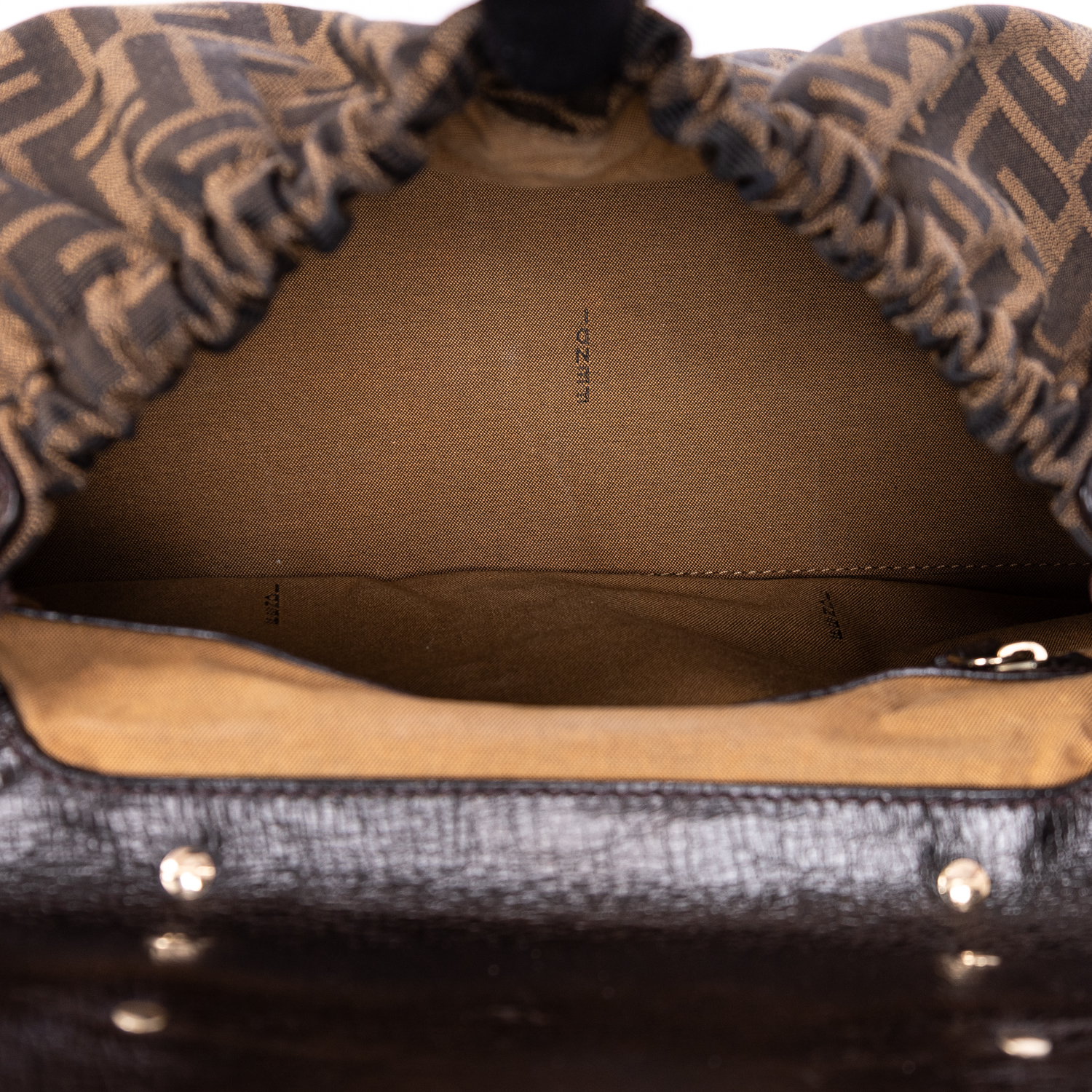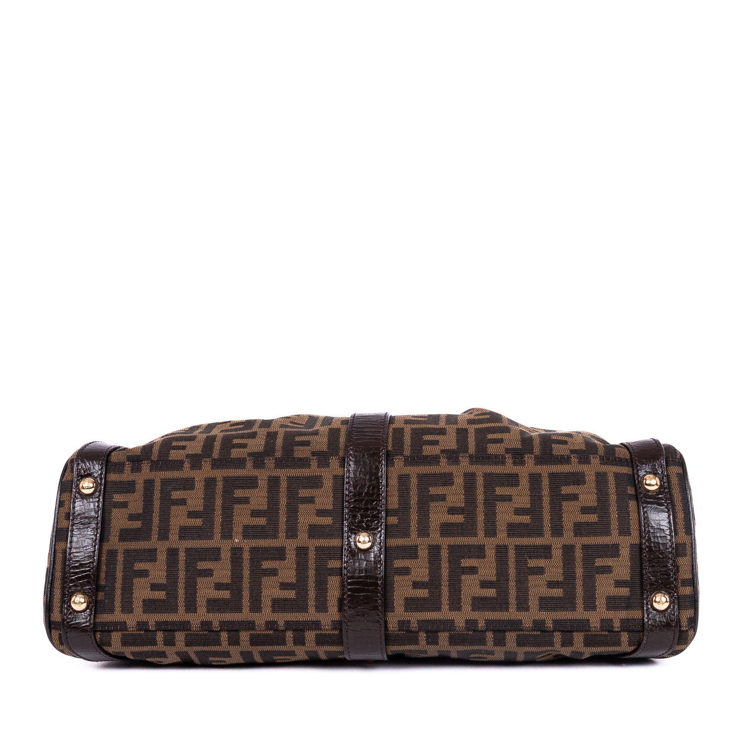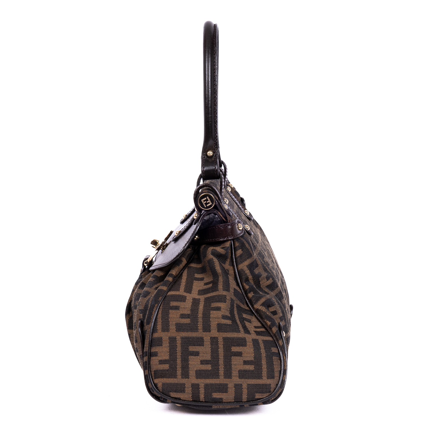 Fendi Shoulder Bag Magic Top Handle Bag Medium in Brown Zucca Canvas and Gold hardware. The product is in Excellent Condition (A).