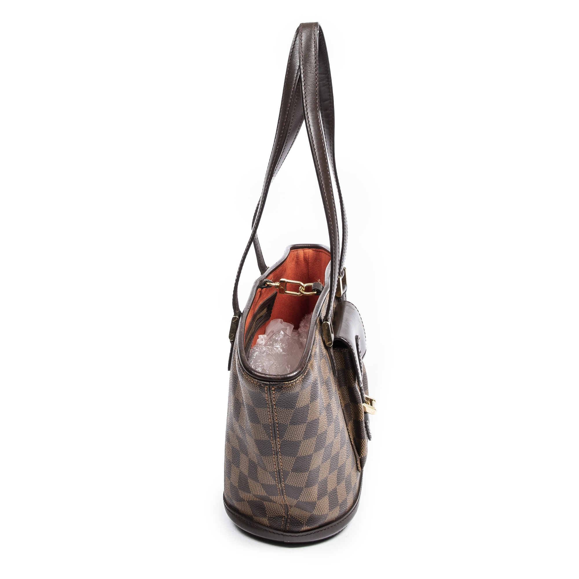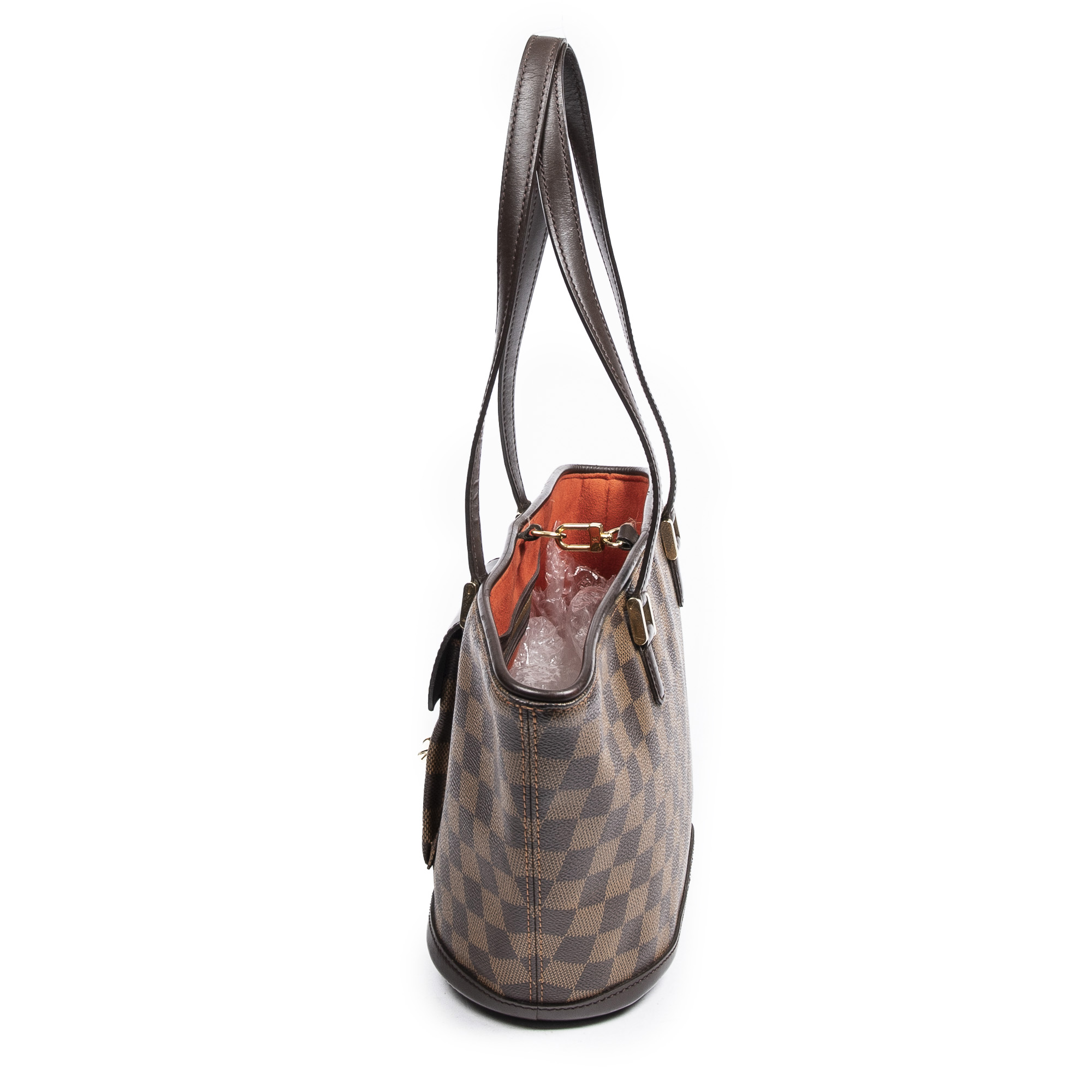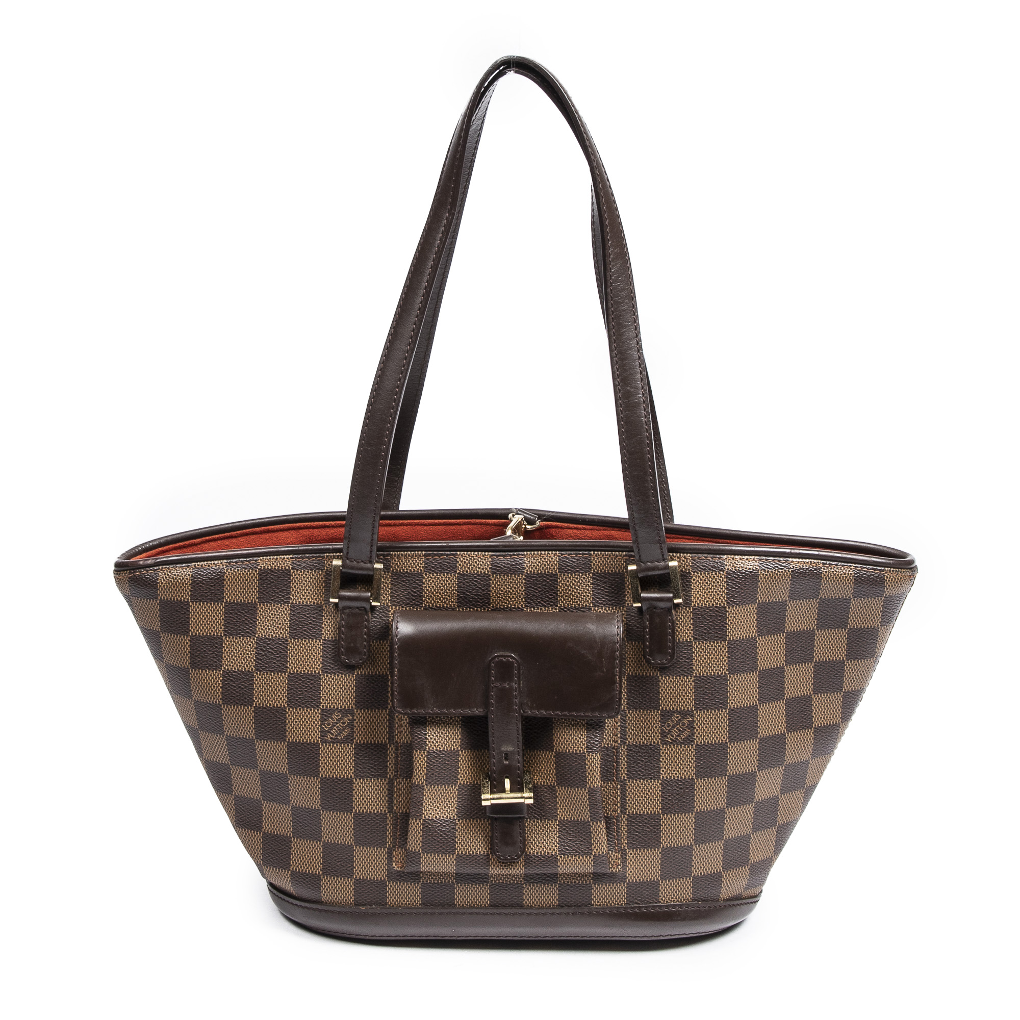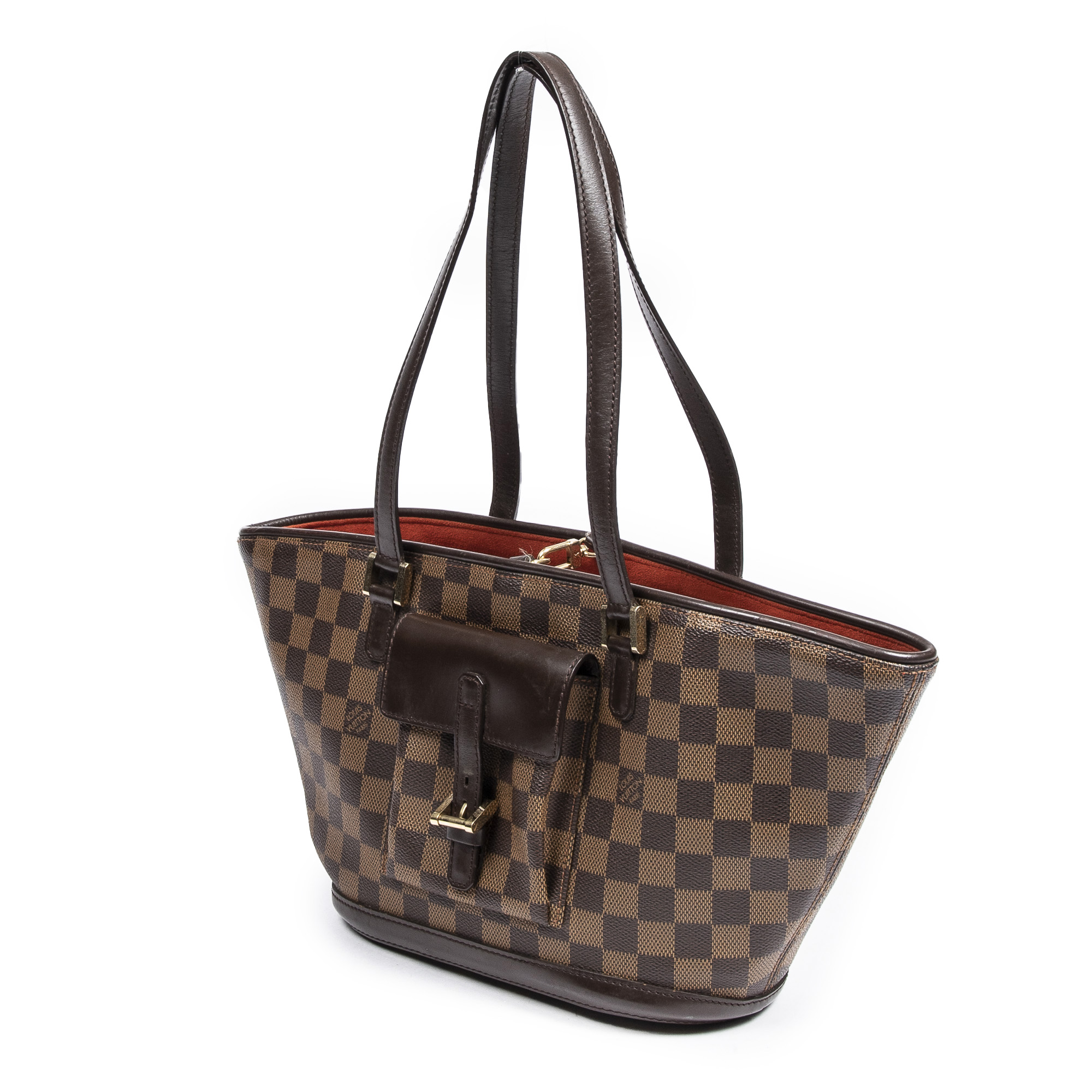 Louis Vuitton Shoulder Bag Manosque PM in Brown Damier Ebene and Golden Brass hardware. The product is in Excellent Condition (A).