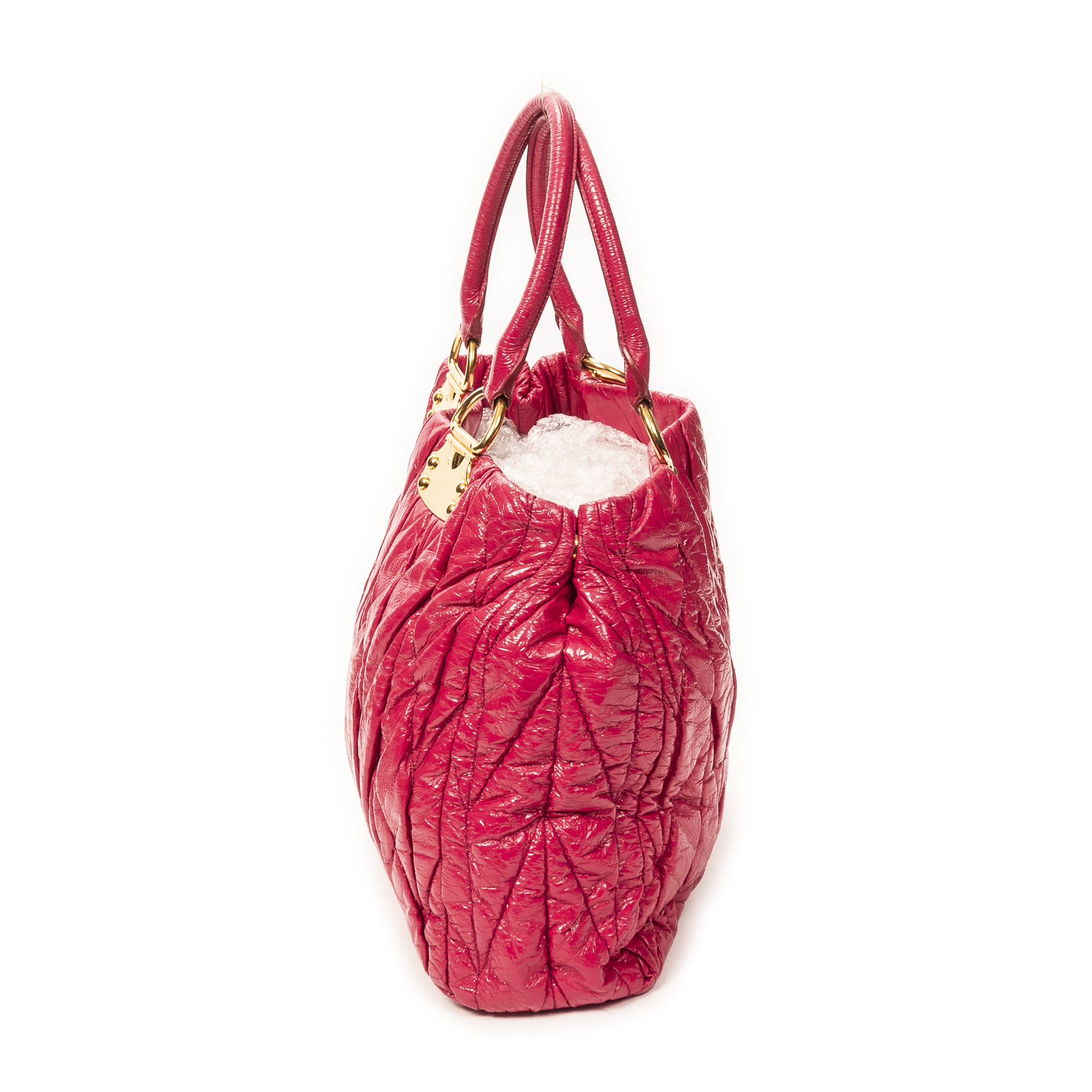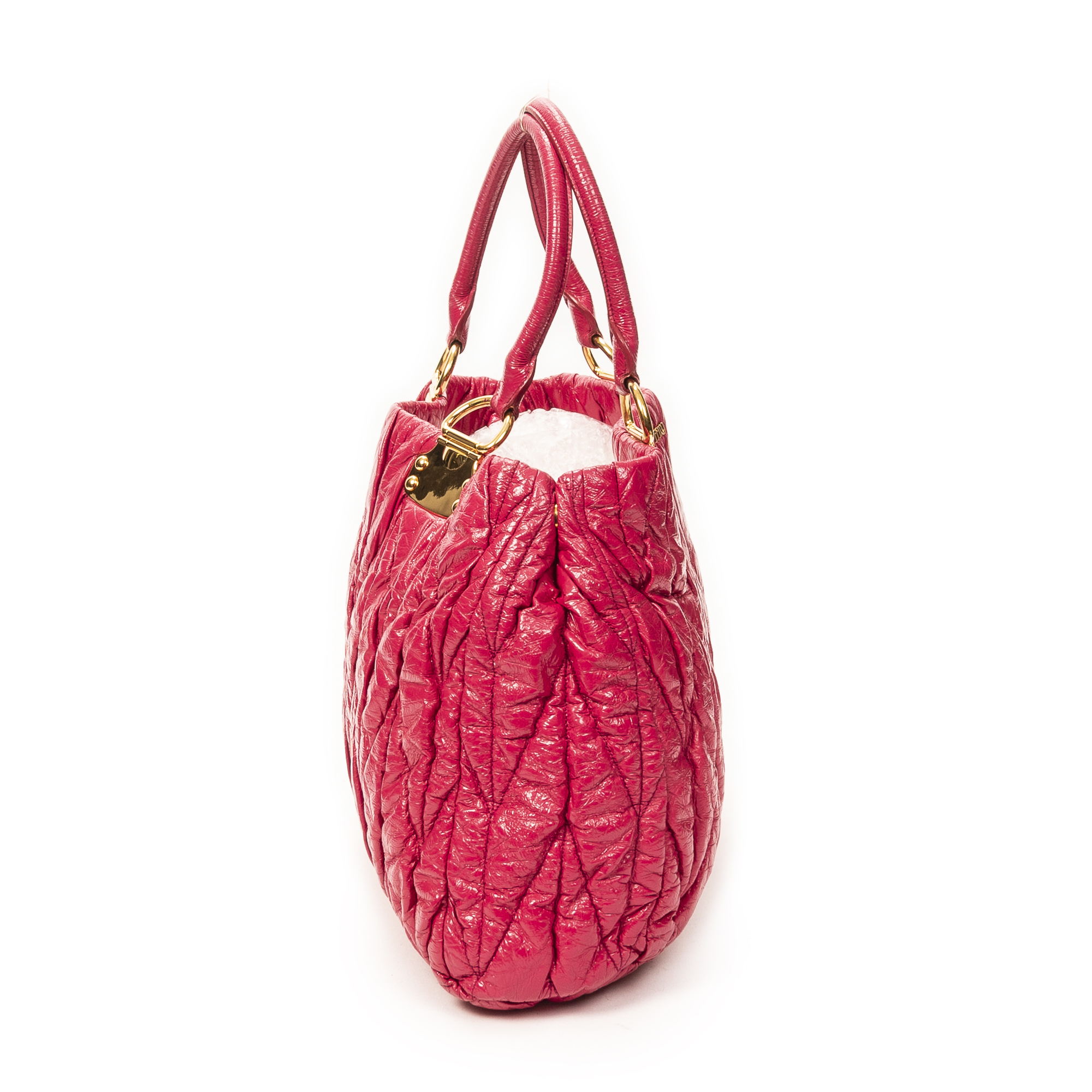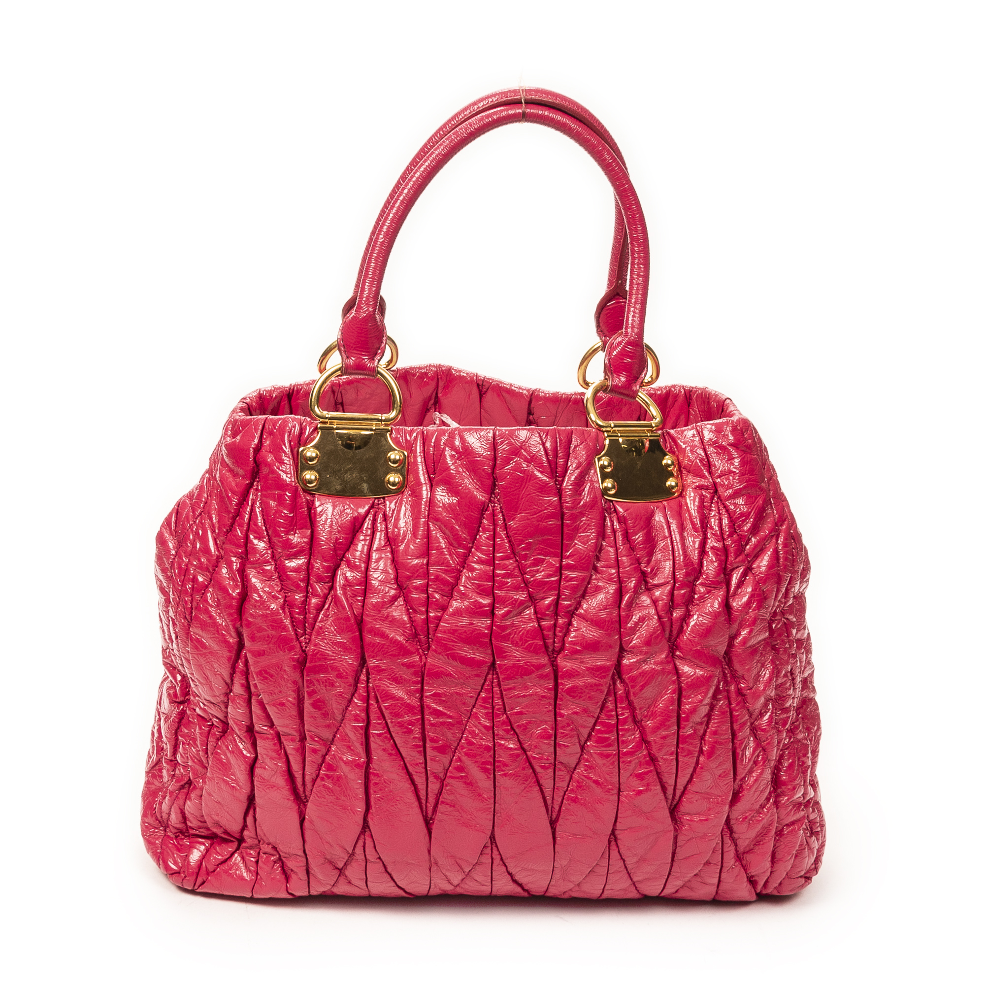 Miu Miu Shoulder Bag Matelasse Tote Bag in Fuchsia Matelasse Lux Leather and Gold hardware. The product is in Excellent Condition (A).