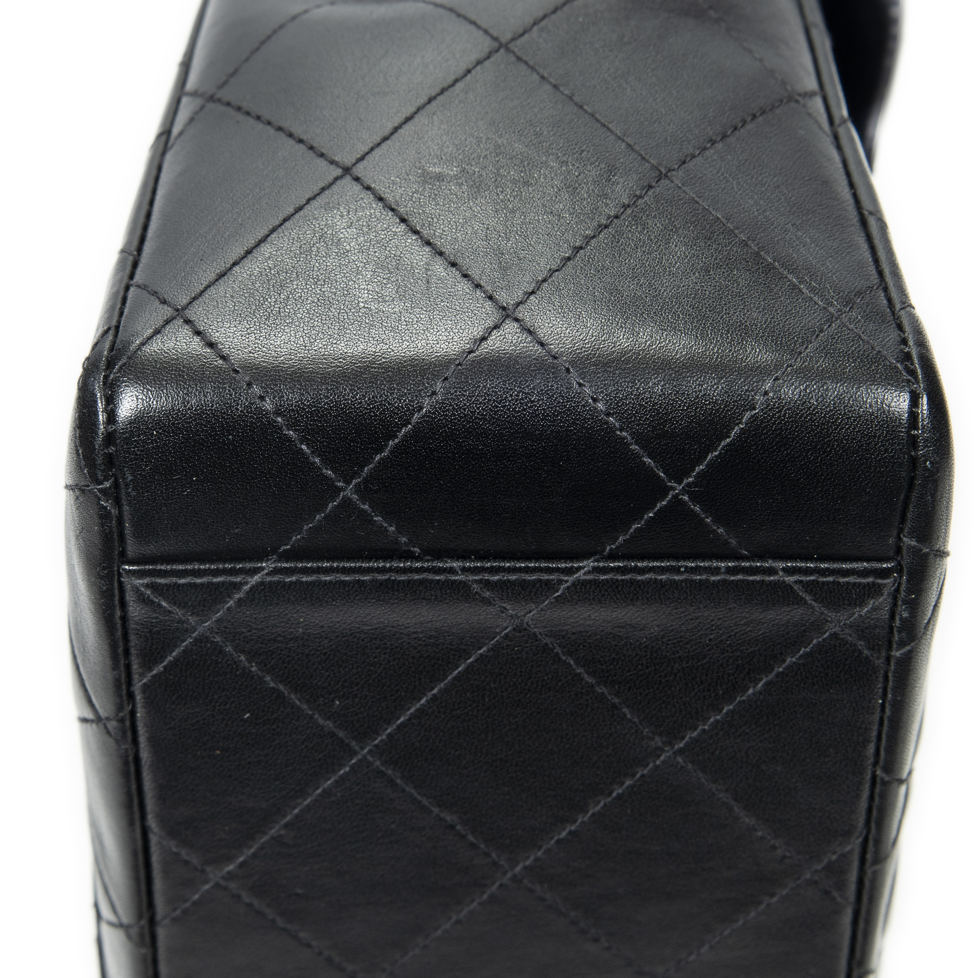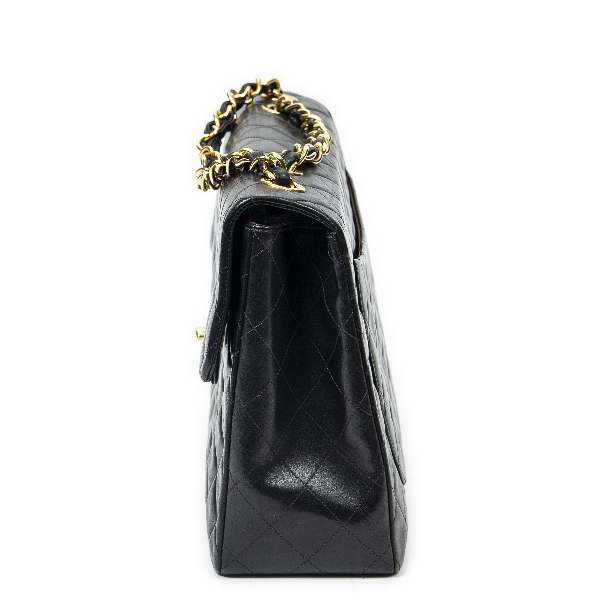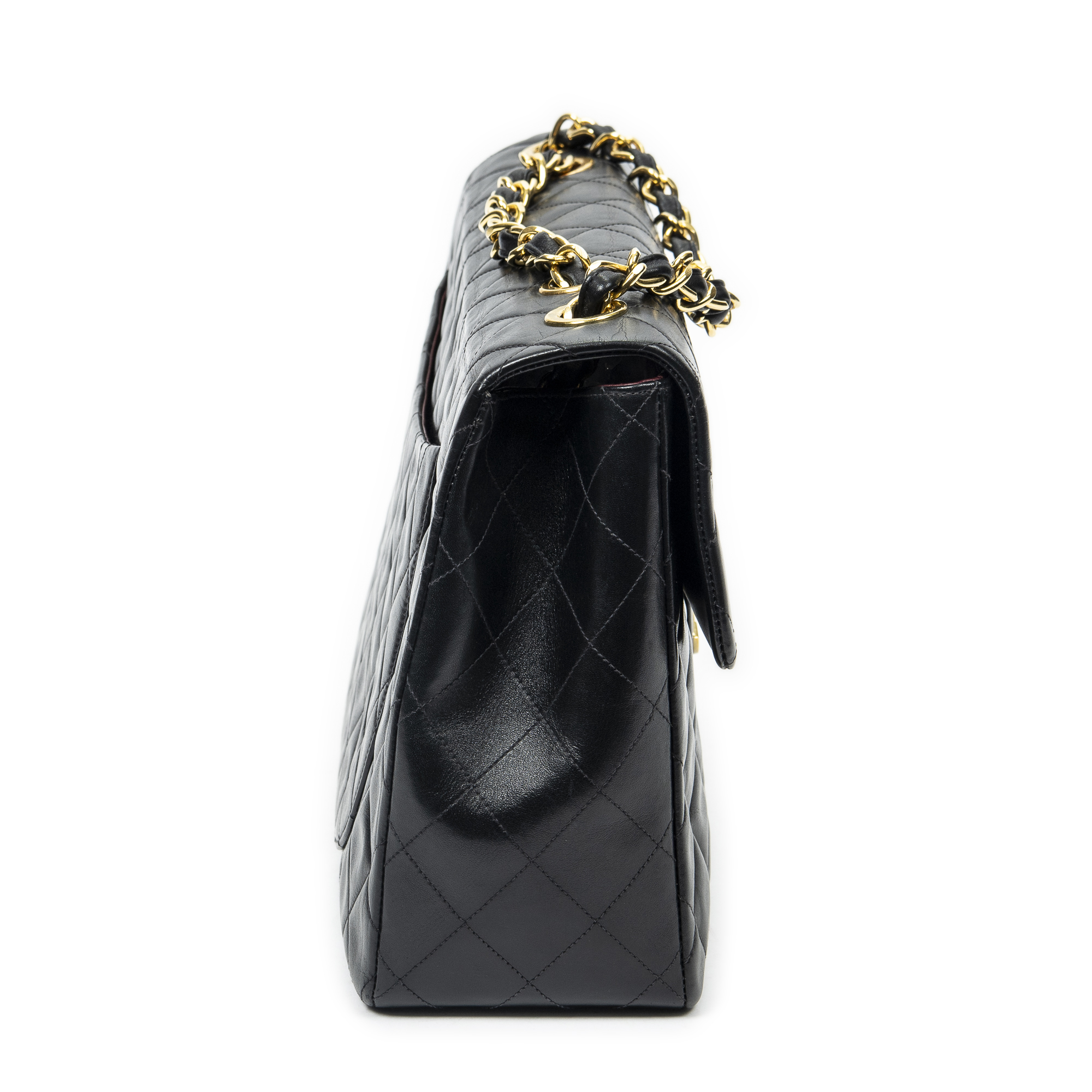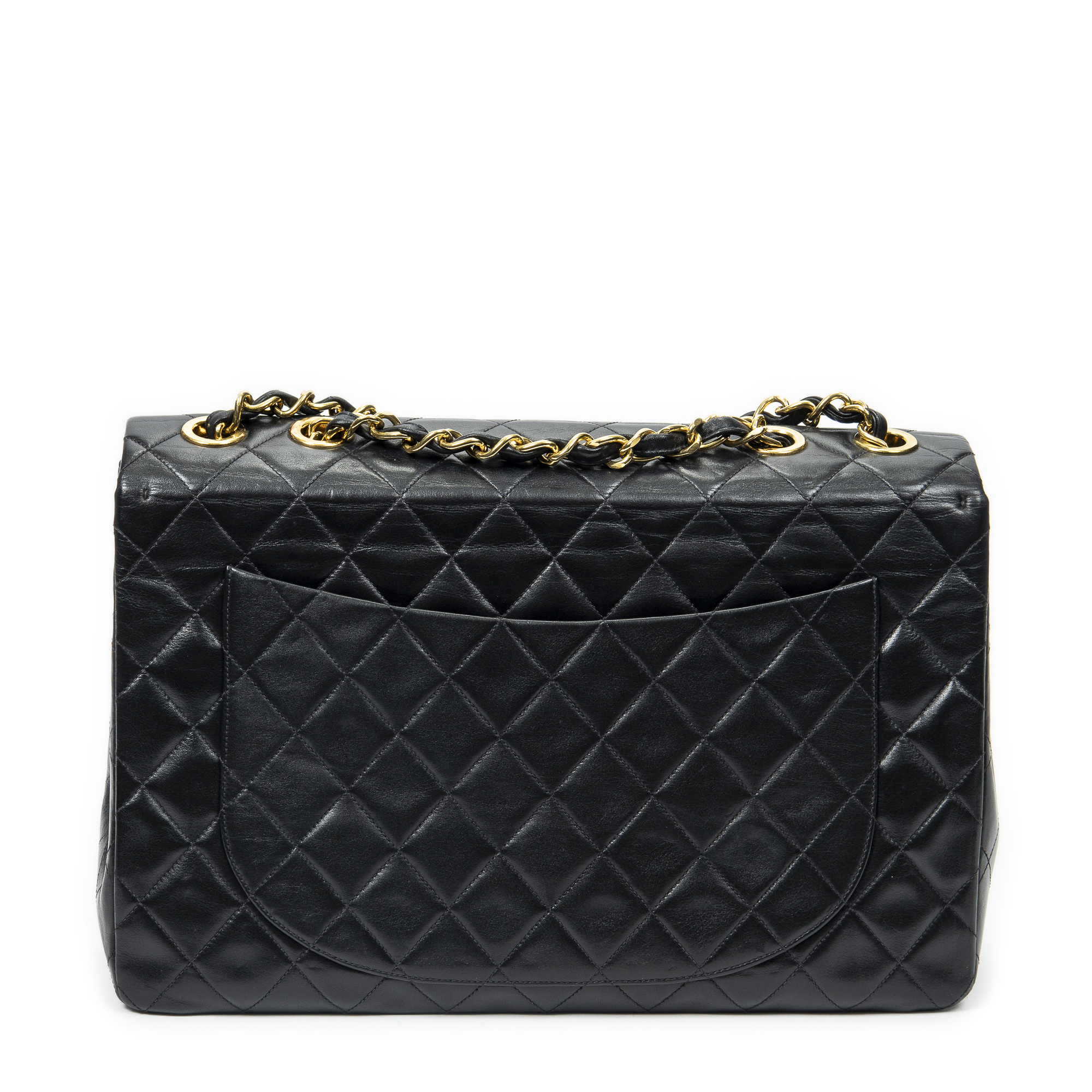 Chanel Shoulder Bag Maxi Jumbo XL Flap in Black Quilted Lambskin Leather and Gold hardware. The product is in Excellent Condition (A).