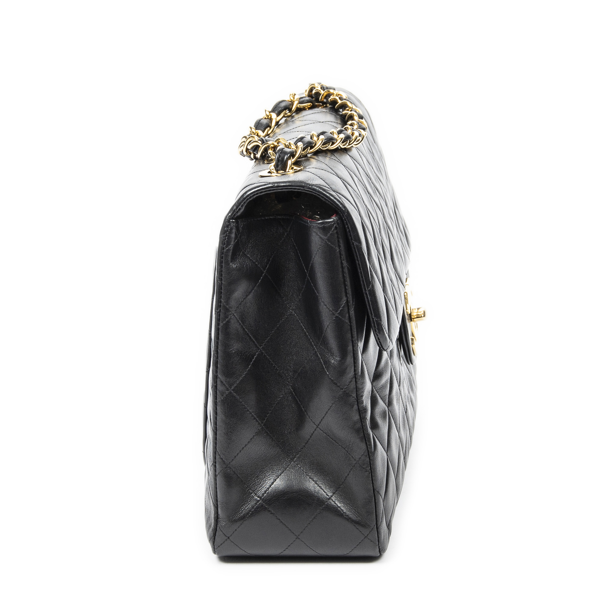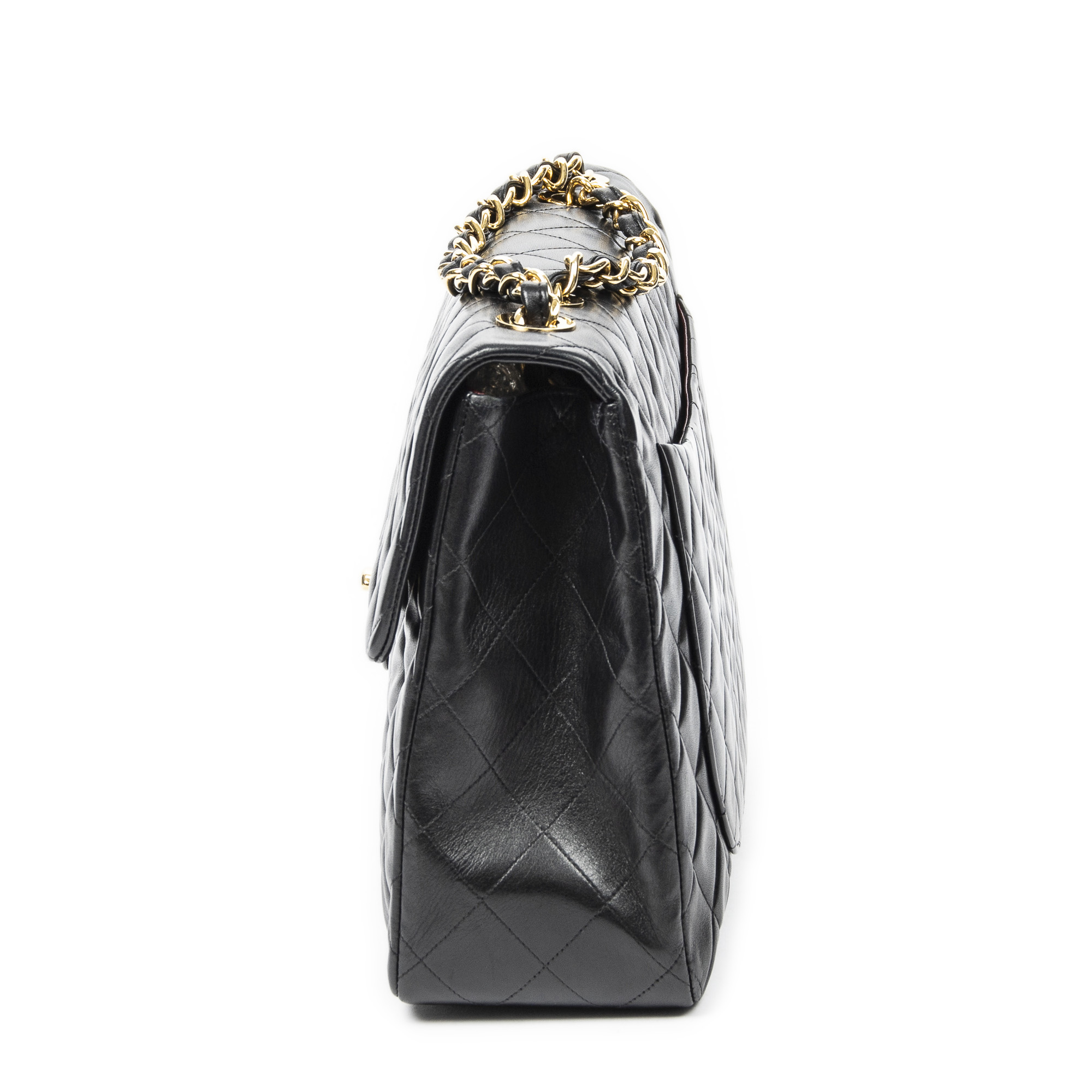 Chanel Shoulder Bag Maxi Jumbo XL Flap in Black Quilted Lambskin Leather and Gold hardware. The product is in Excellent Condition (A).
