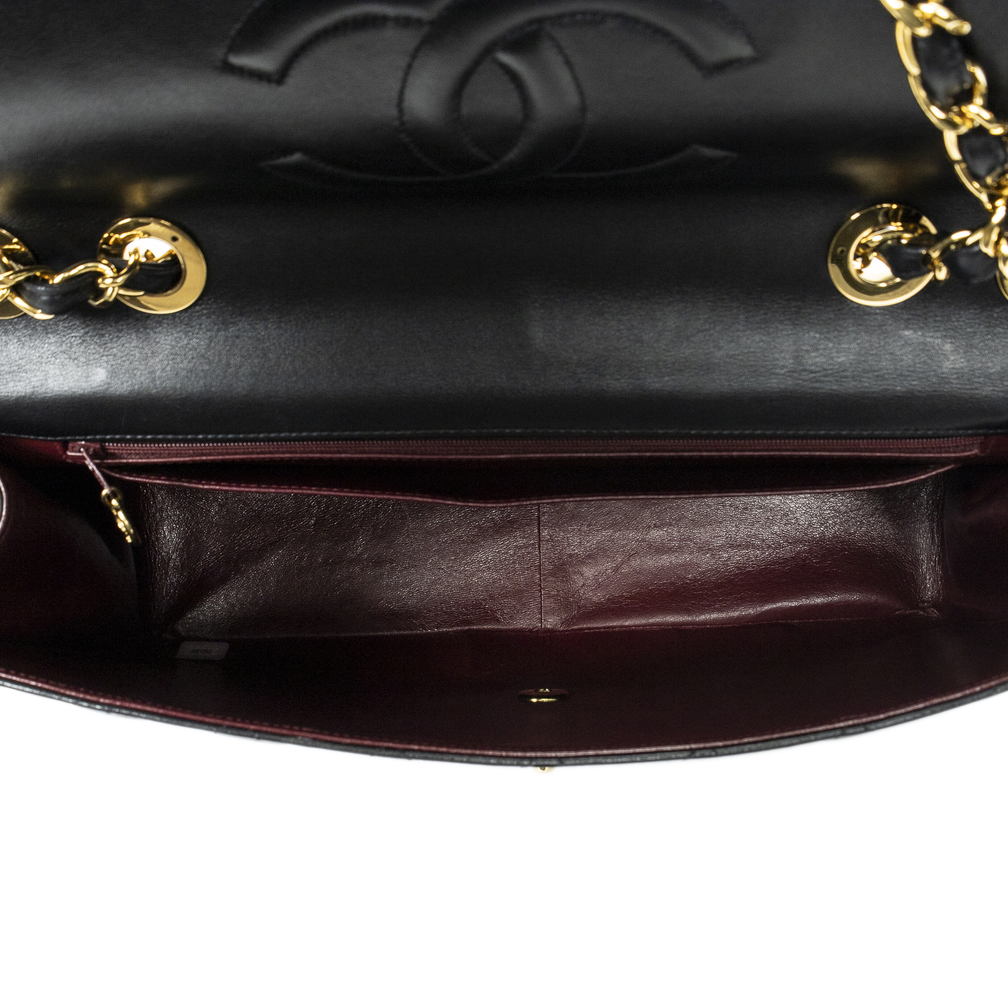 Chanel Shoulder Bag Maxi Jumbo XL Flap in Black Quilted Lambskin Leather and Gold hardware. The product is in Excellent Condition (A).
