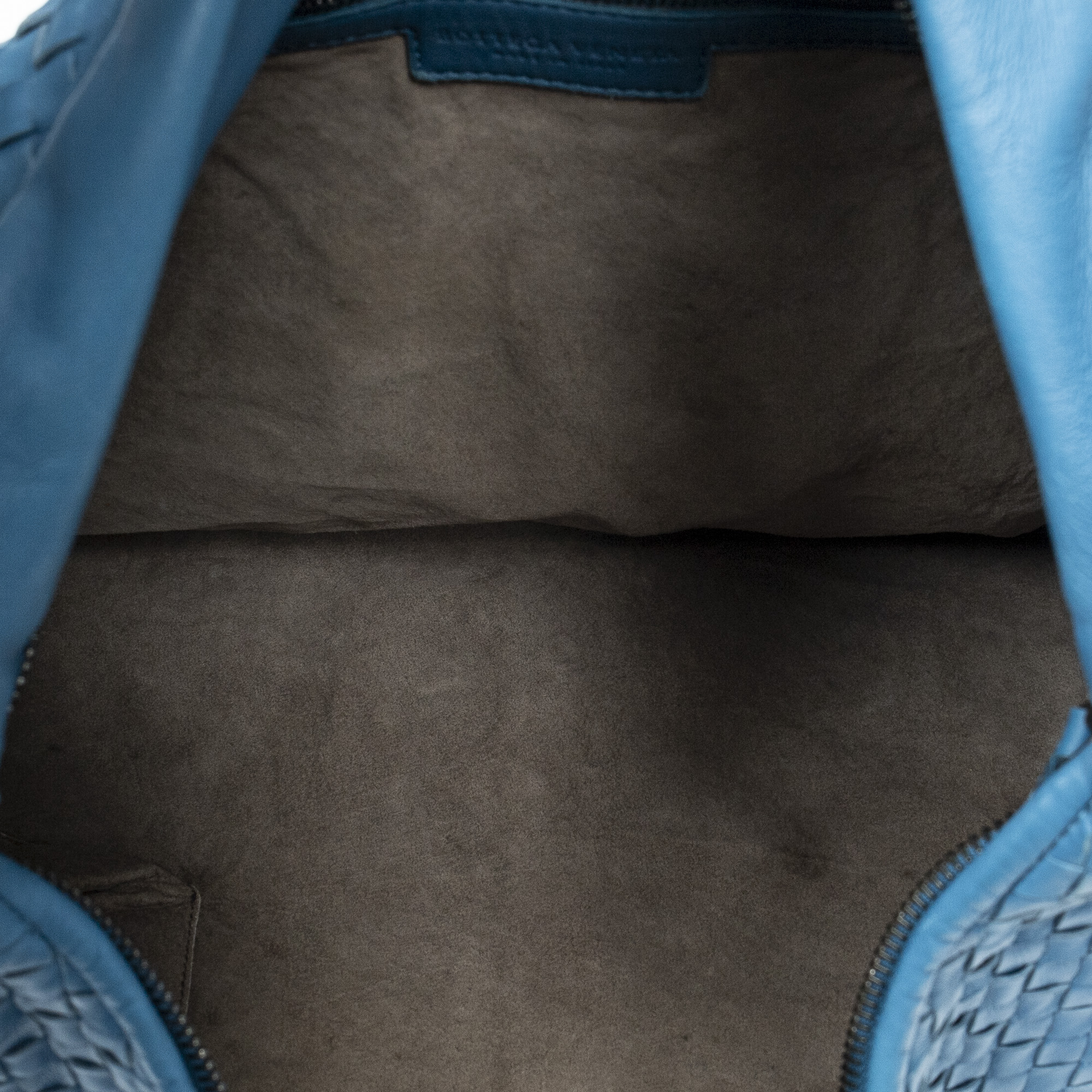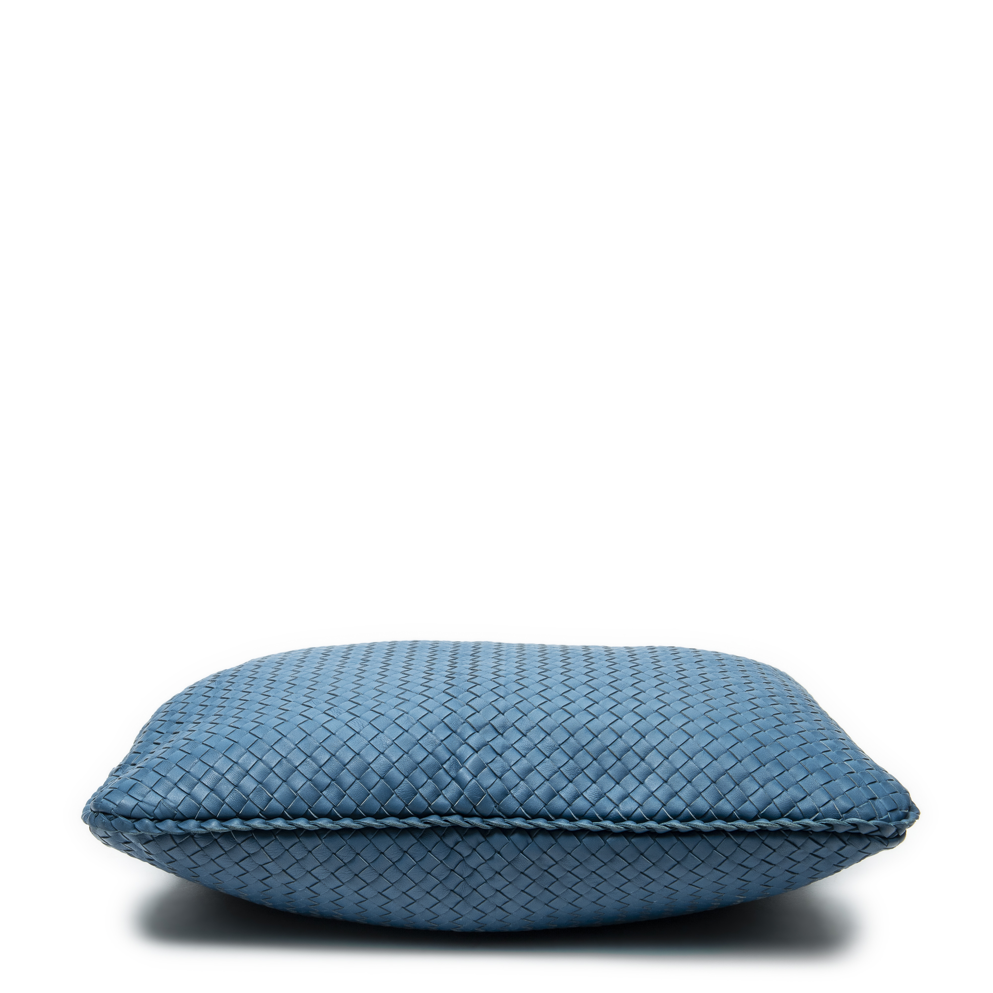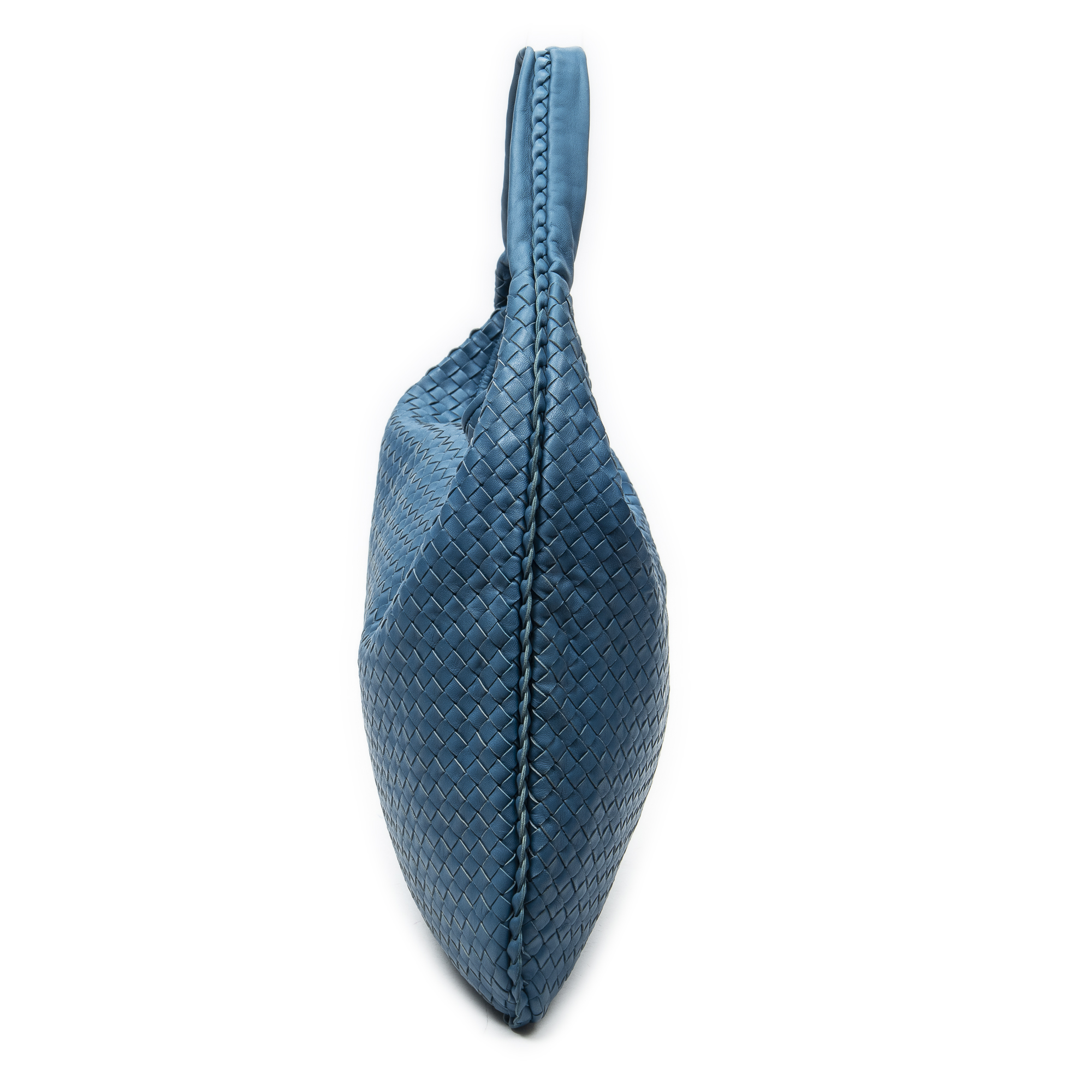 Bottega Veneta Shoulder Bag Maxi Veneta Hobo in Teal Intrecciato Leather and Aged Brass hardware. The product is in Perfect Condition (AA).