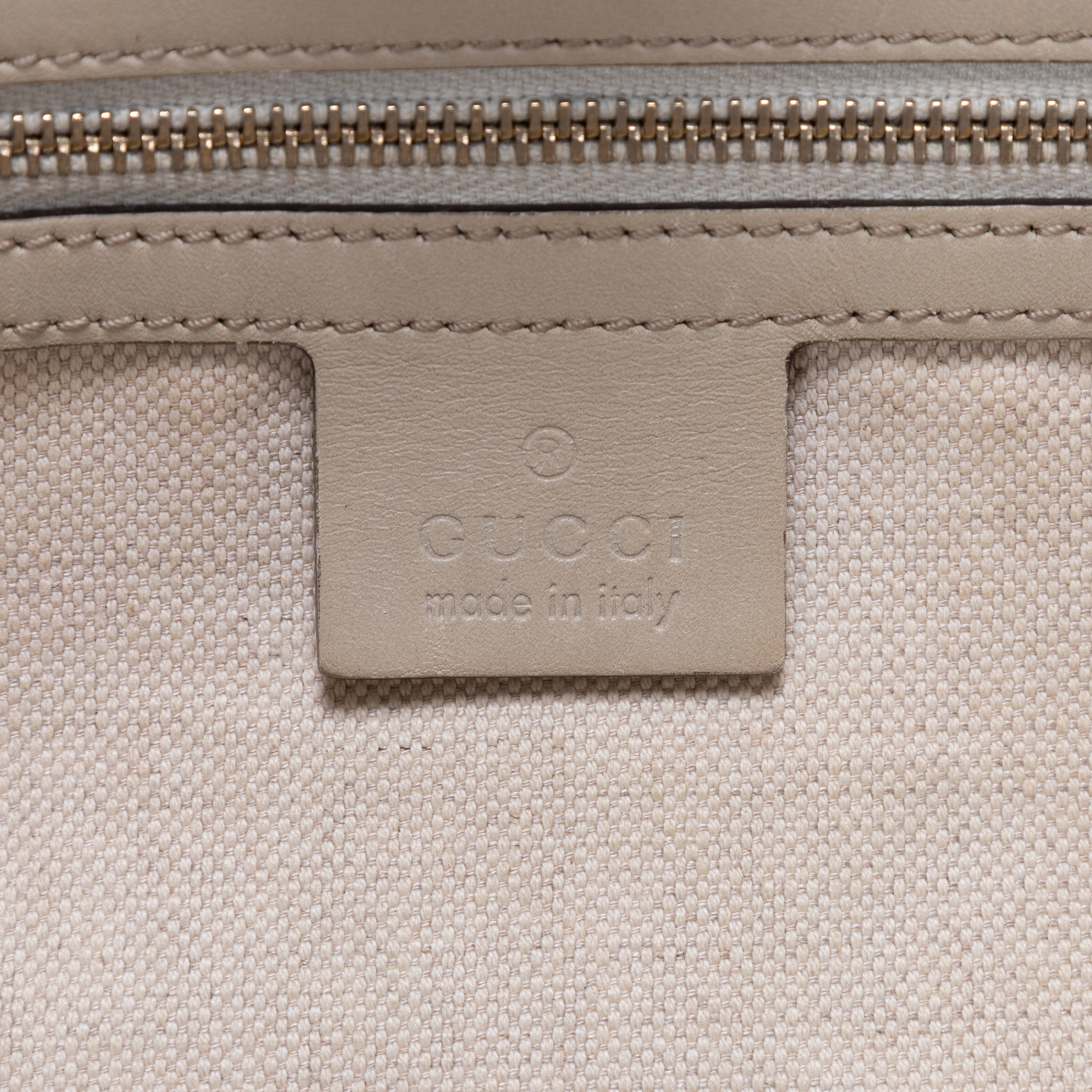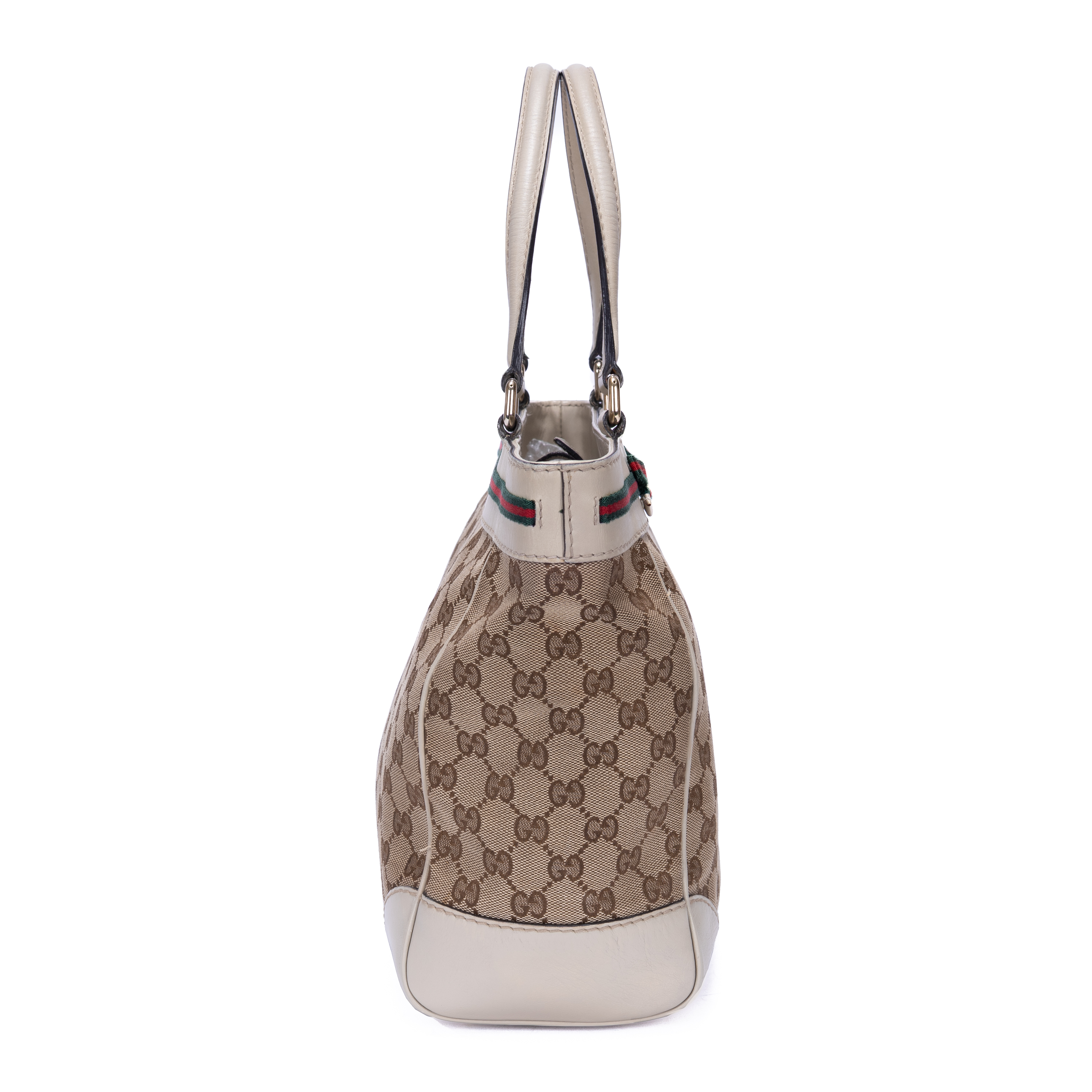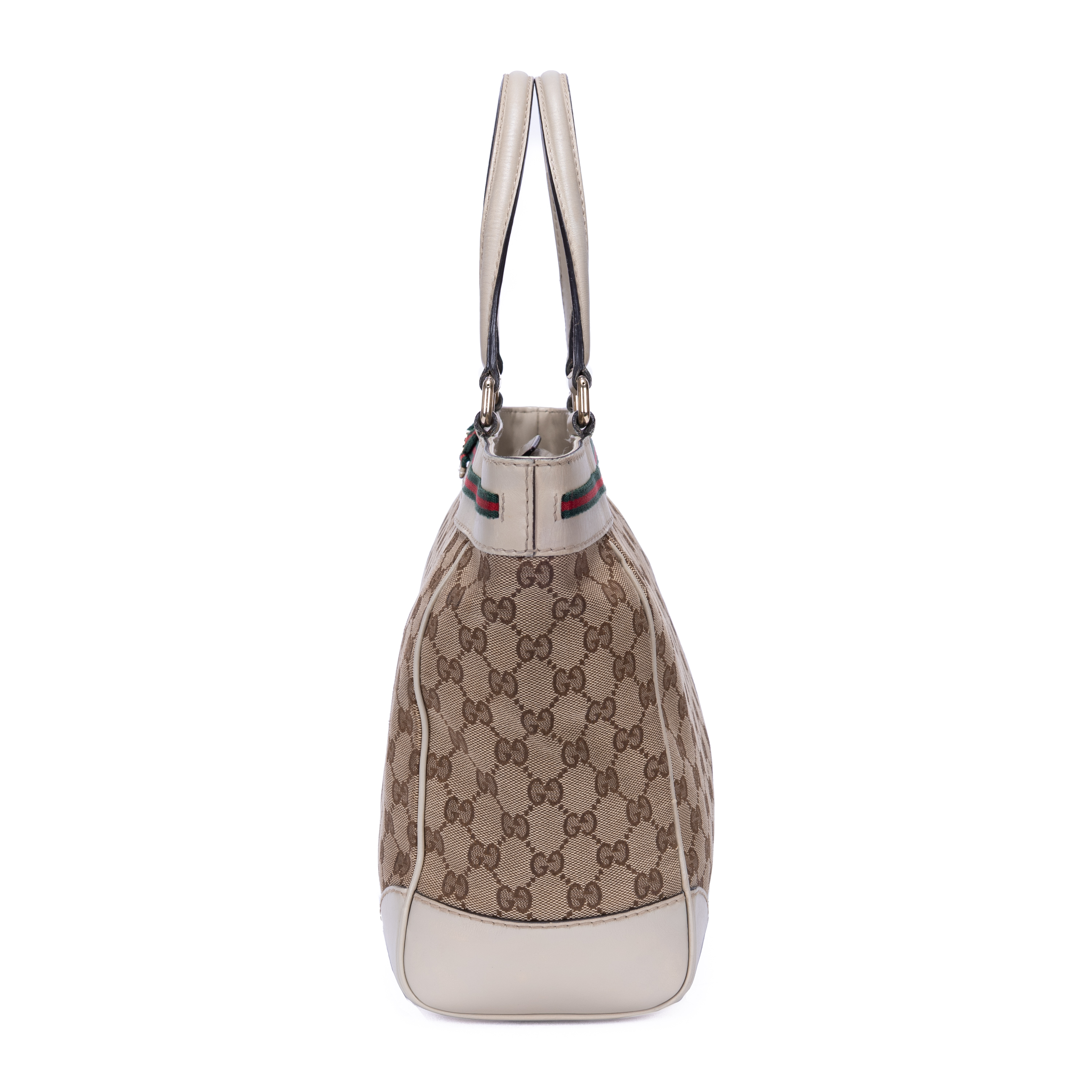 Gucci Shoulder Bag Mayfair Tote in Beige GG Monogram Canvas and Champagne Gold hardware. The product is in Very Good Condition (AB).