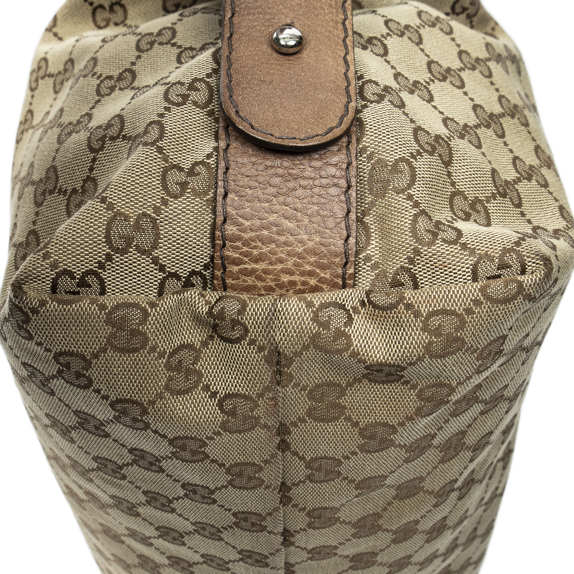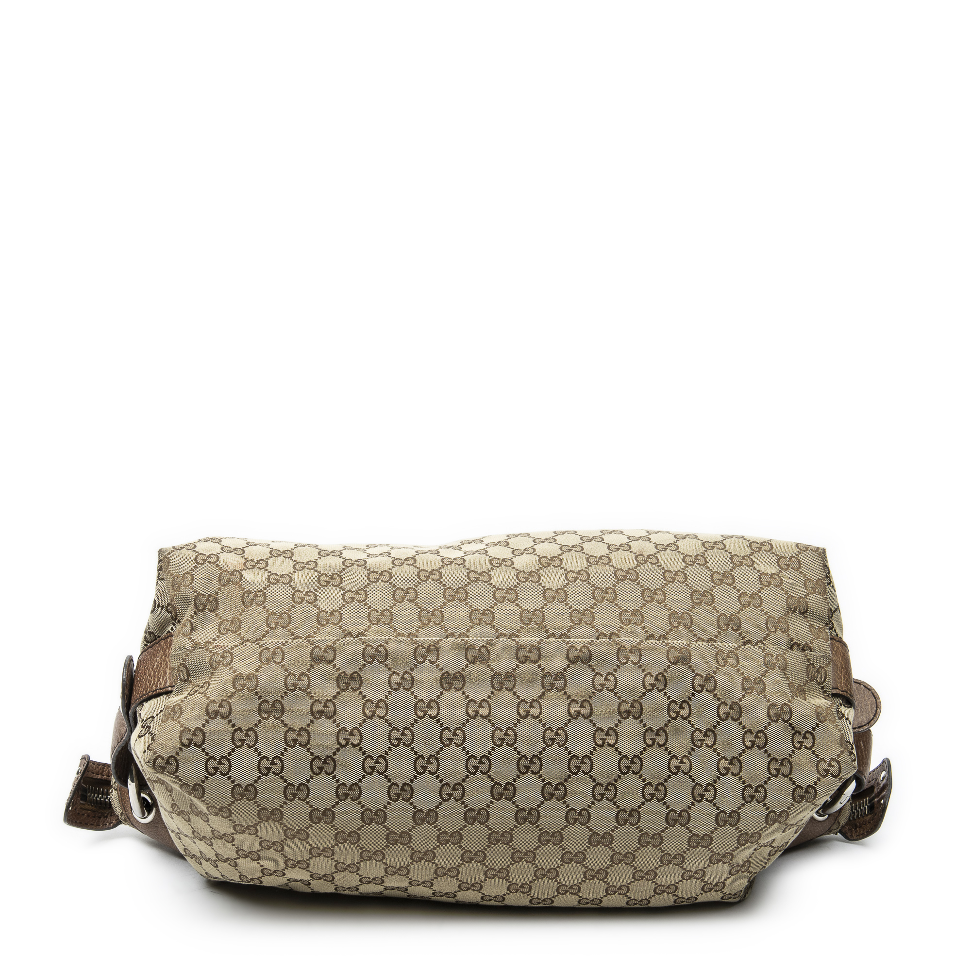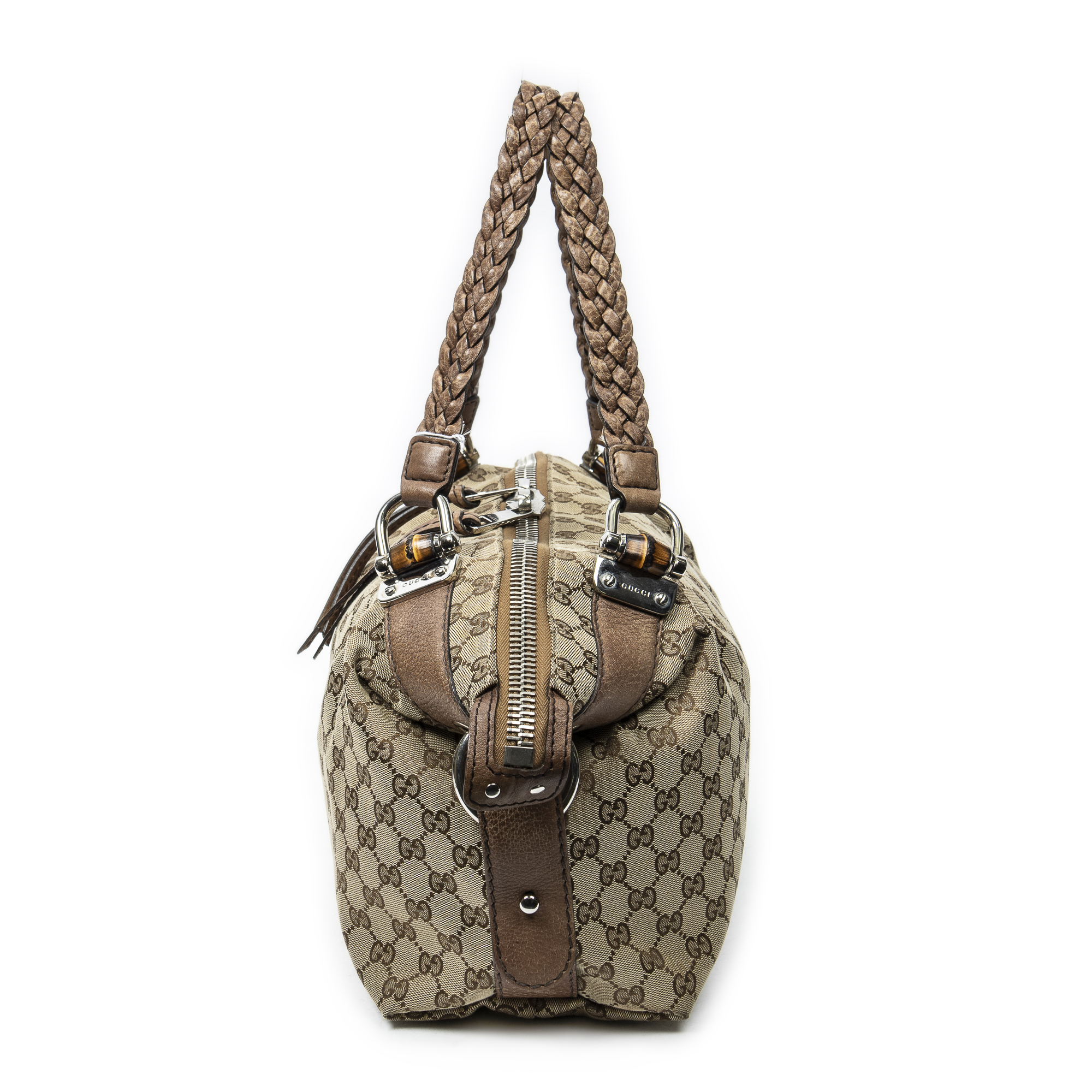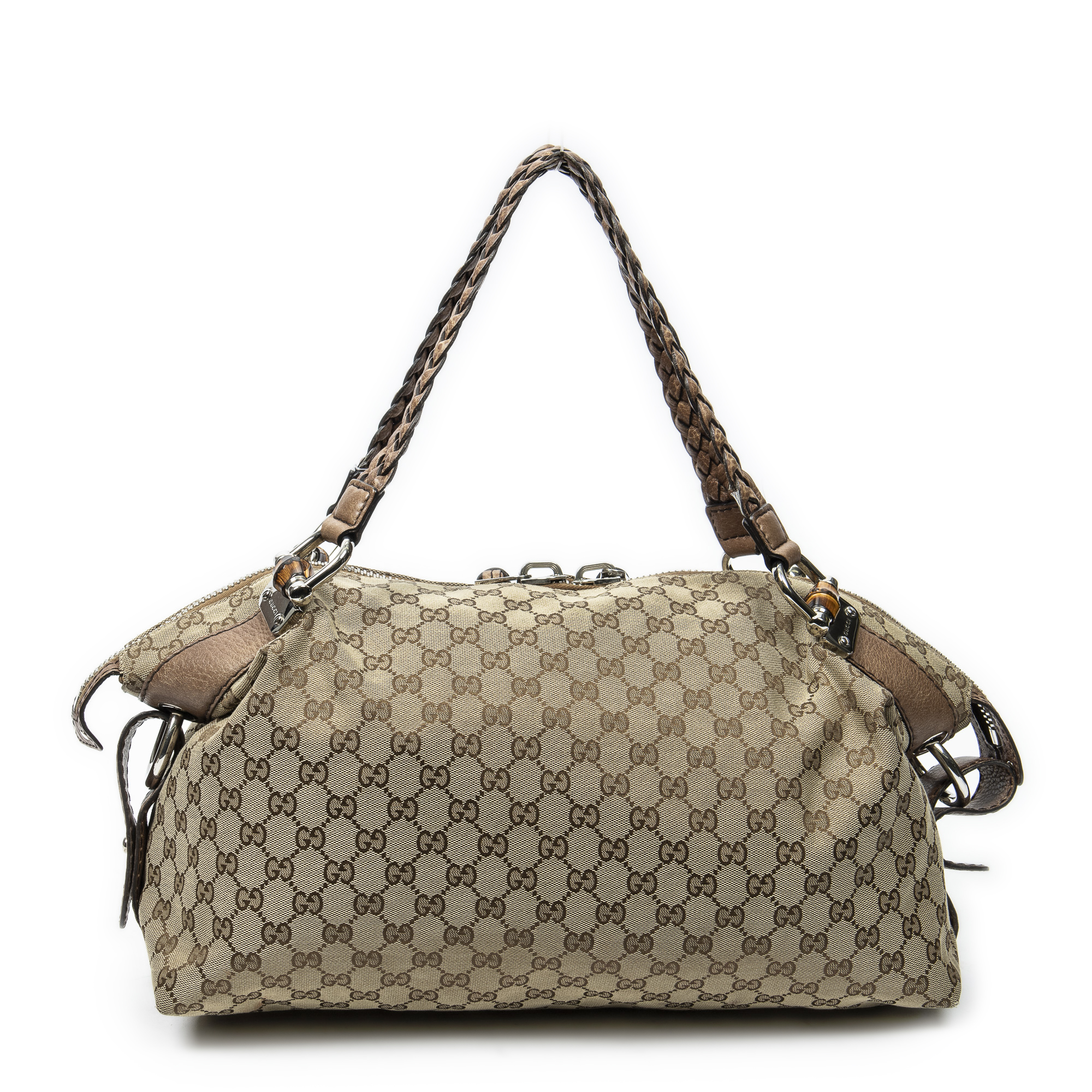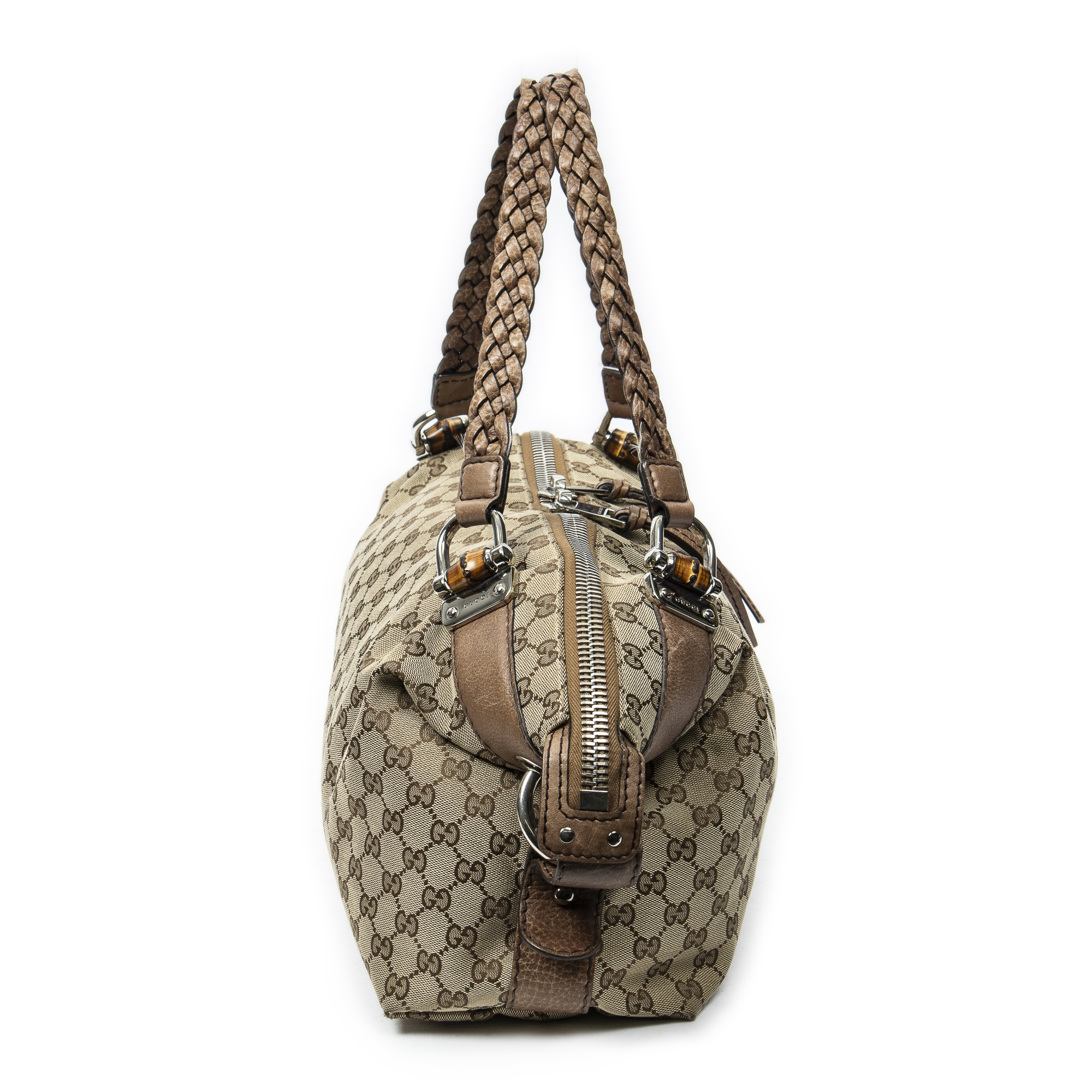 Gucci Shoulder Bag Medium Bamboo Bar Tote in Beige Monogrammed Canvas and Silver hardware. The product is in Excellent Condition (A).