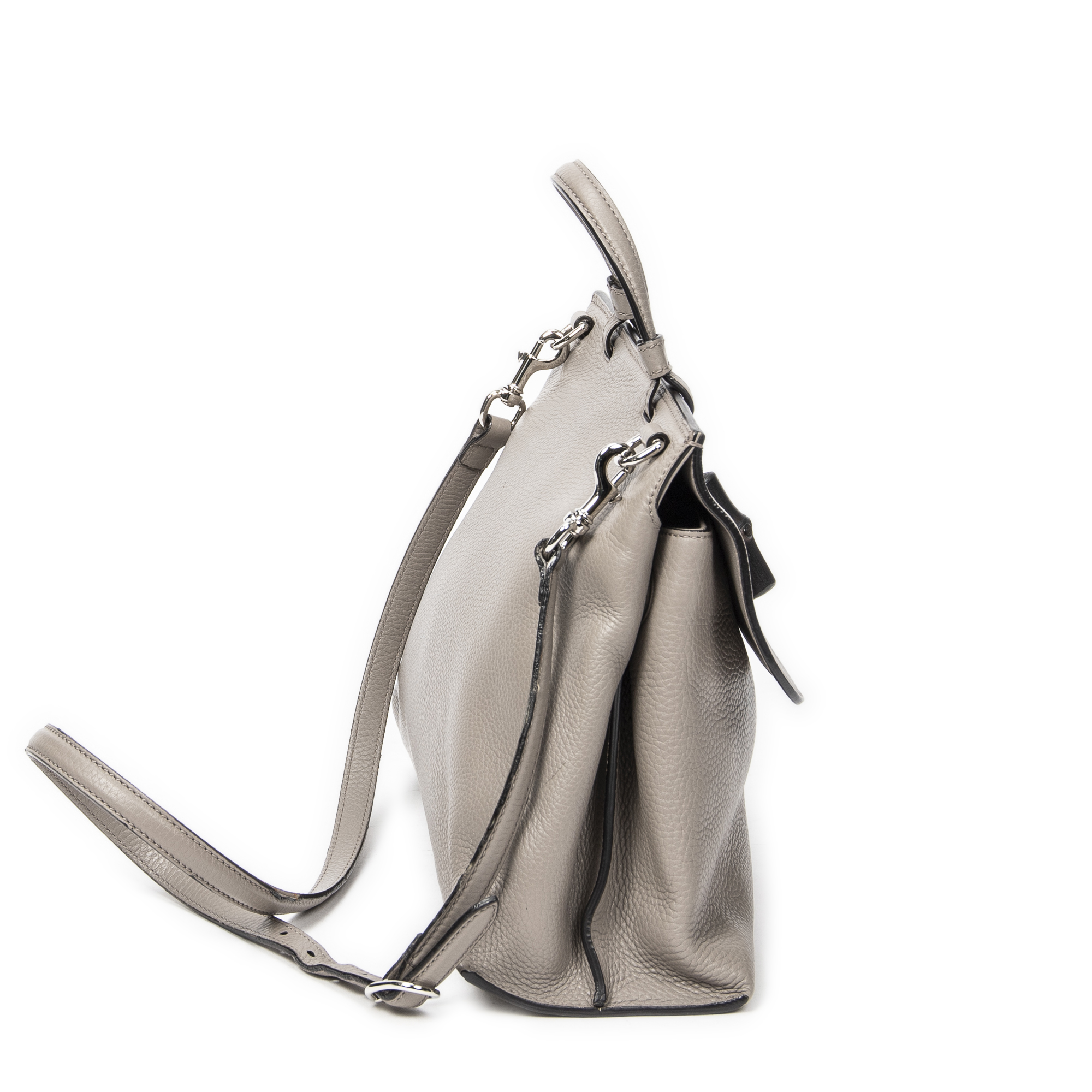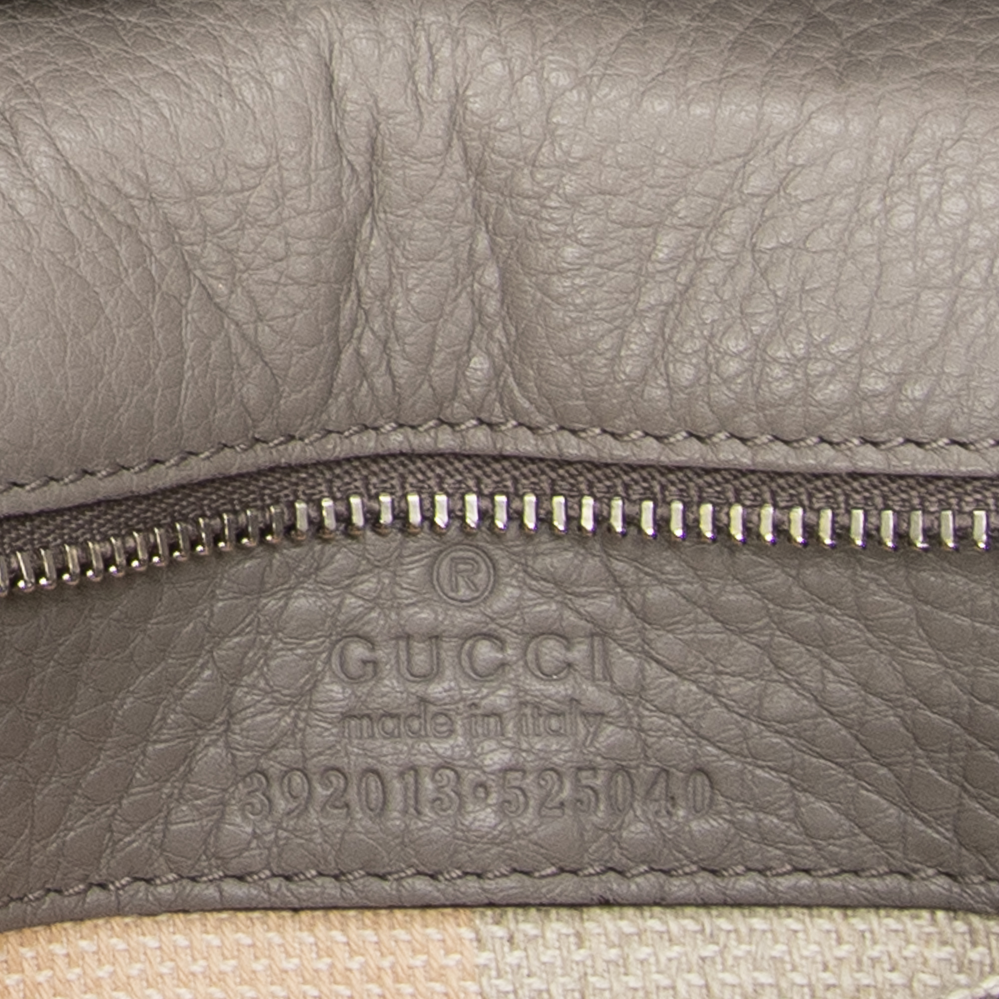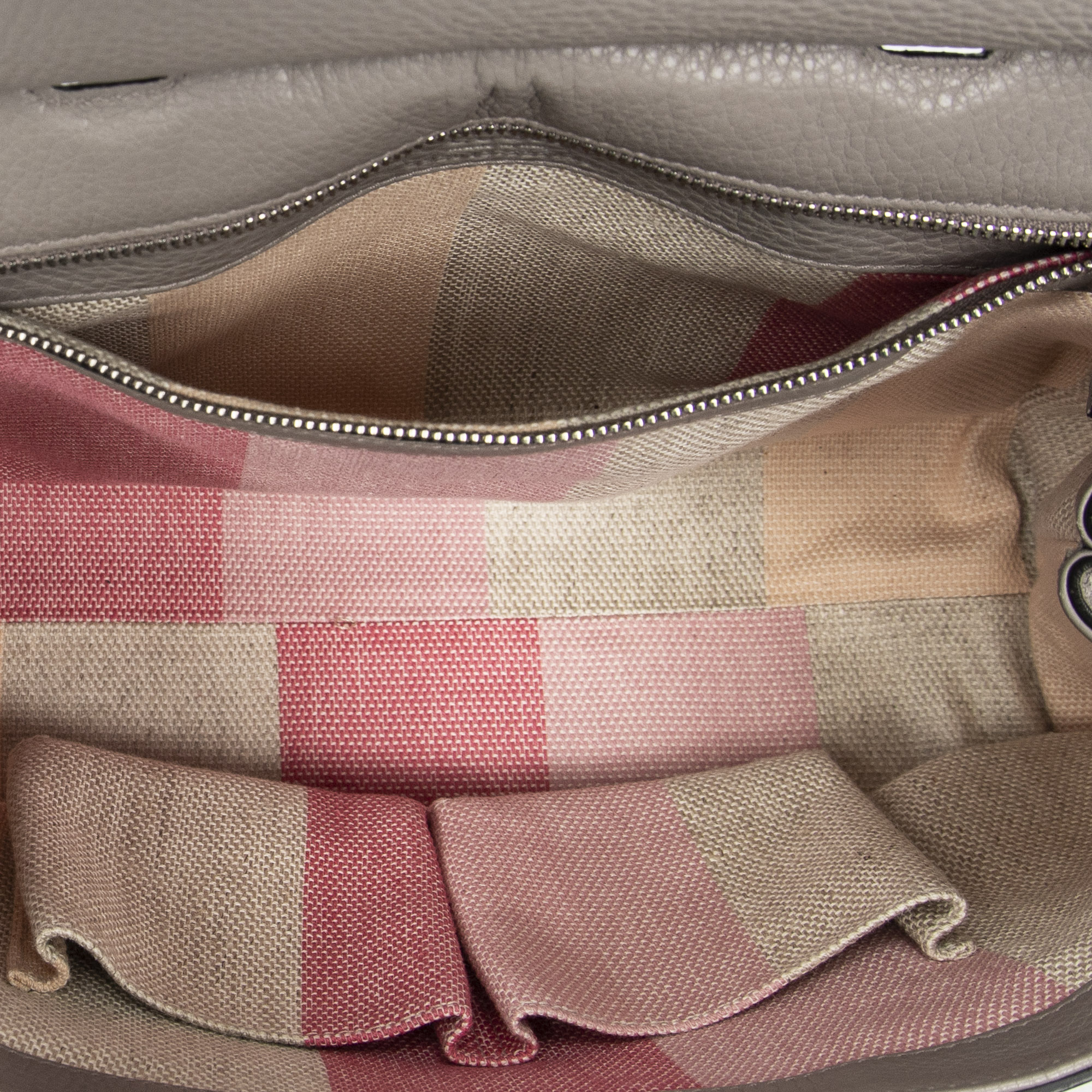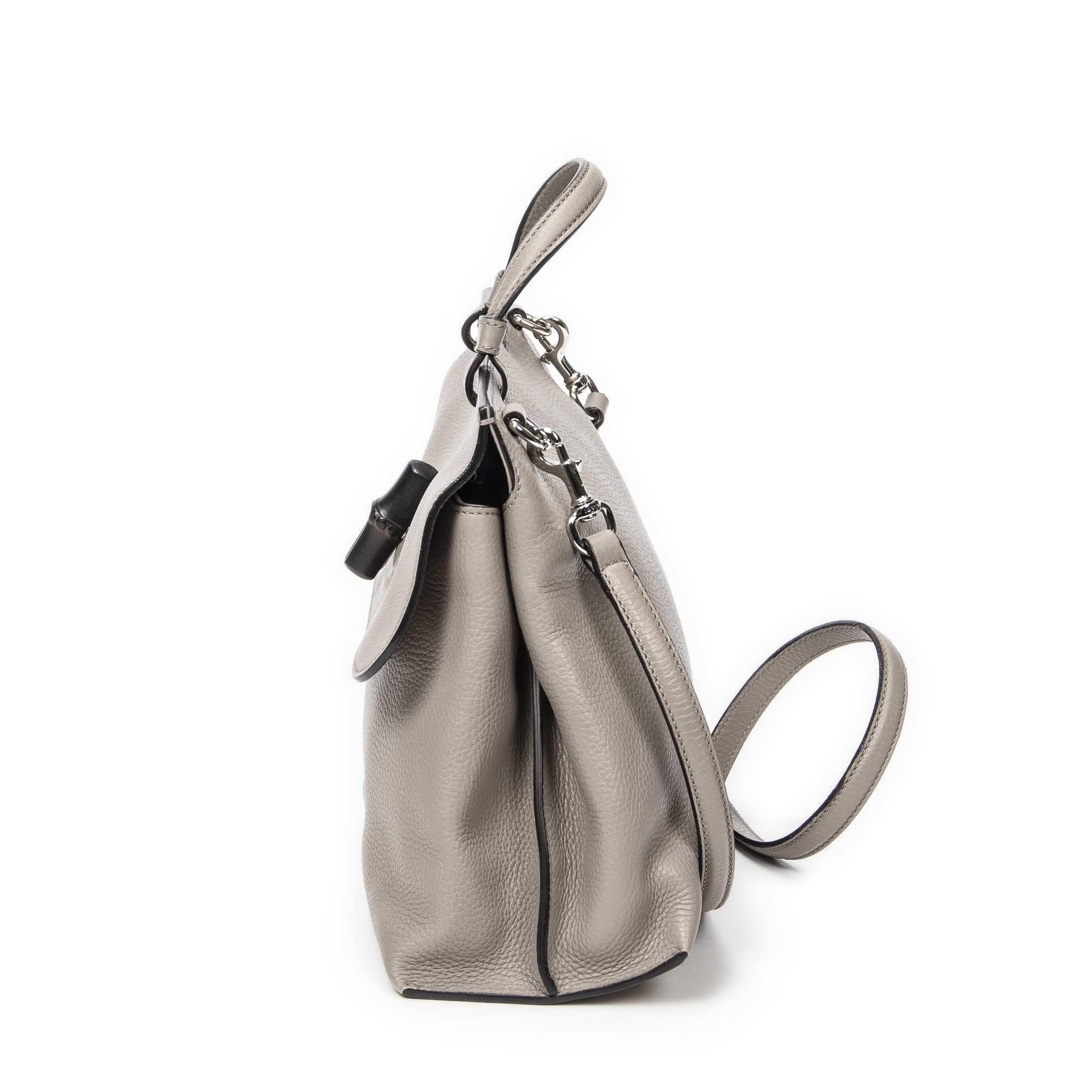 Gucci Shoulder Bag Medium Bamboo Daily Top Handle in Grey Grained Calfskin Leather and Silver hardware. The product is in Excellent Condition (A).