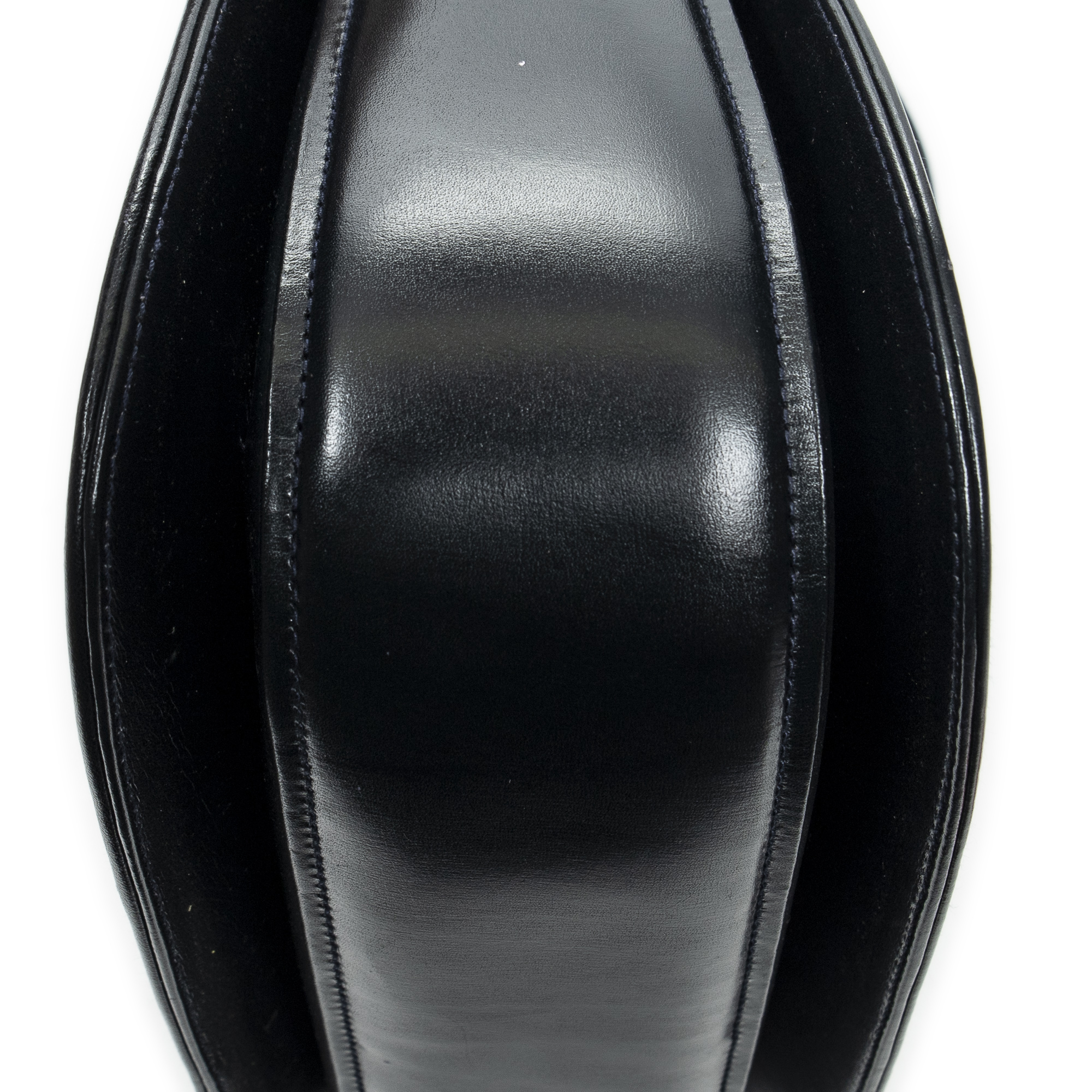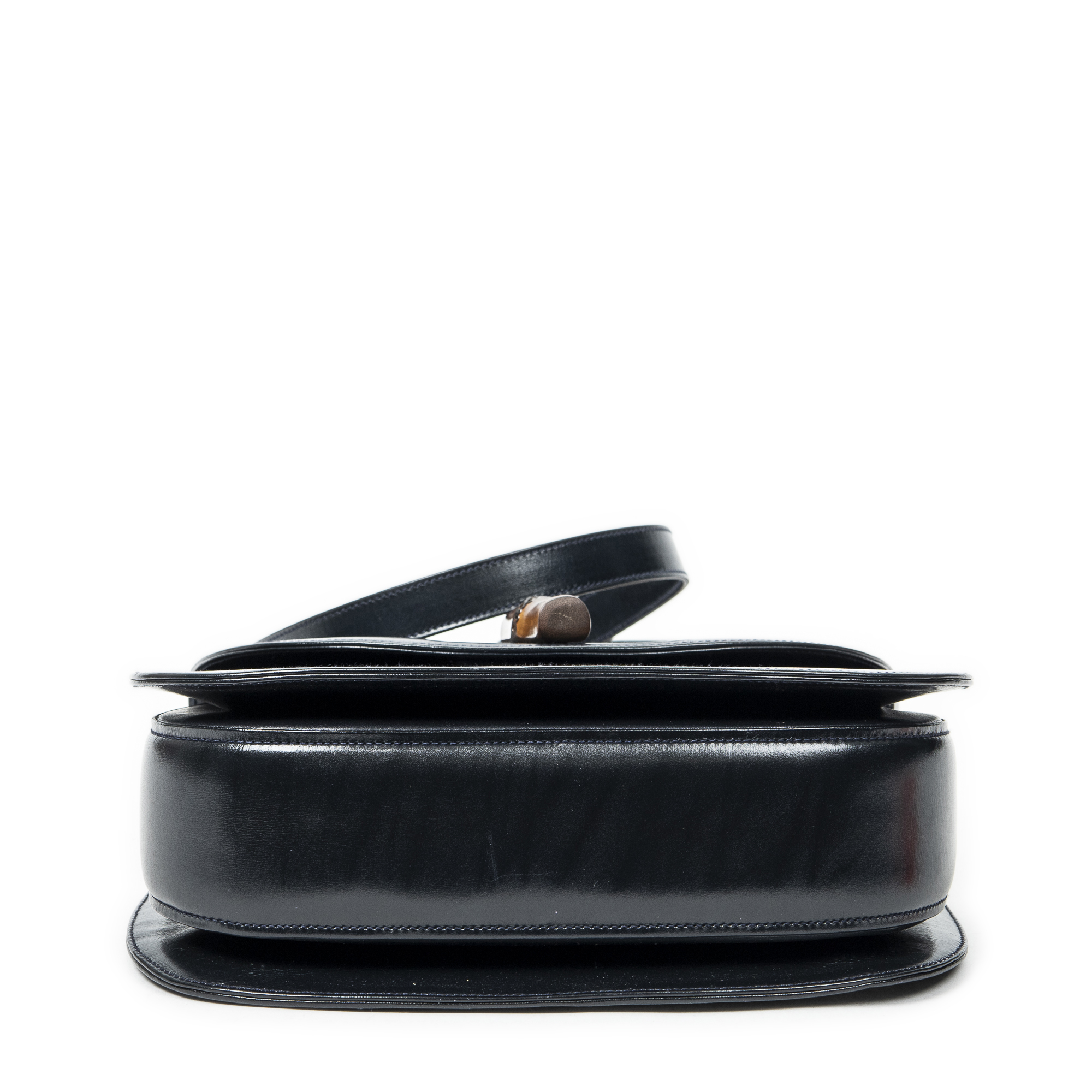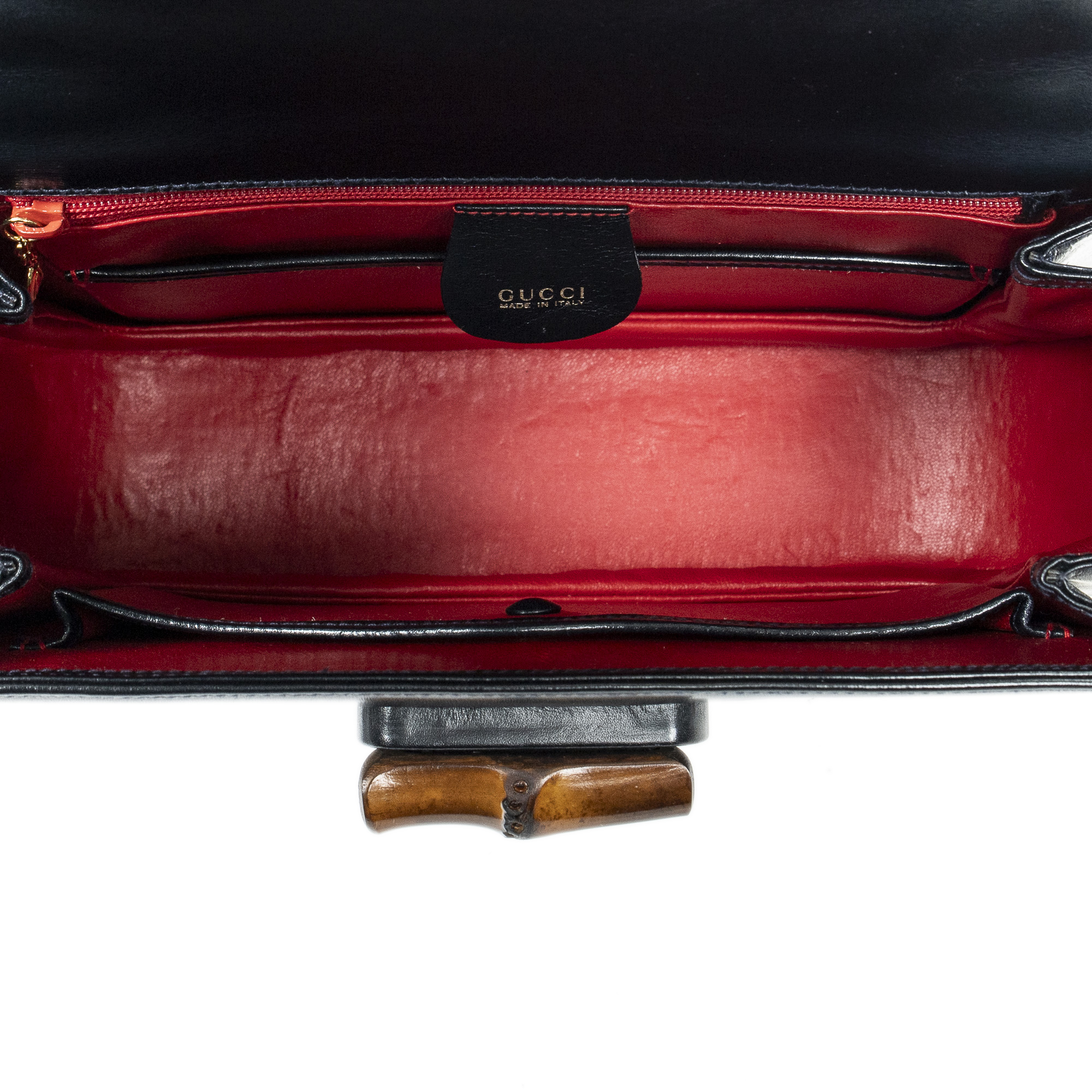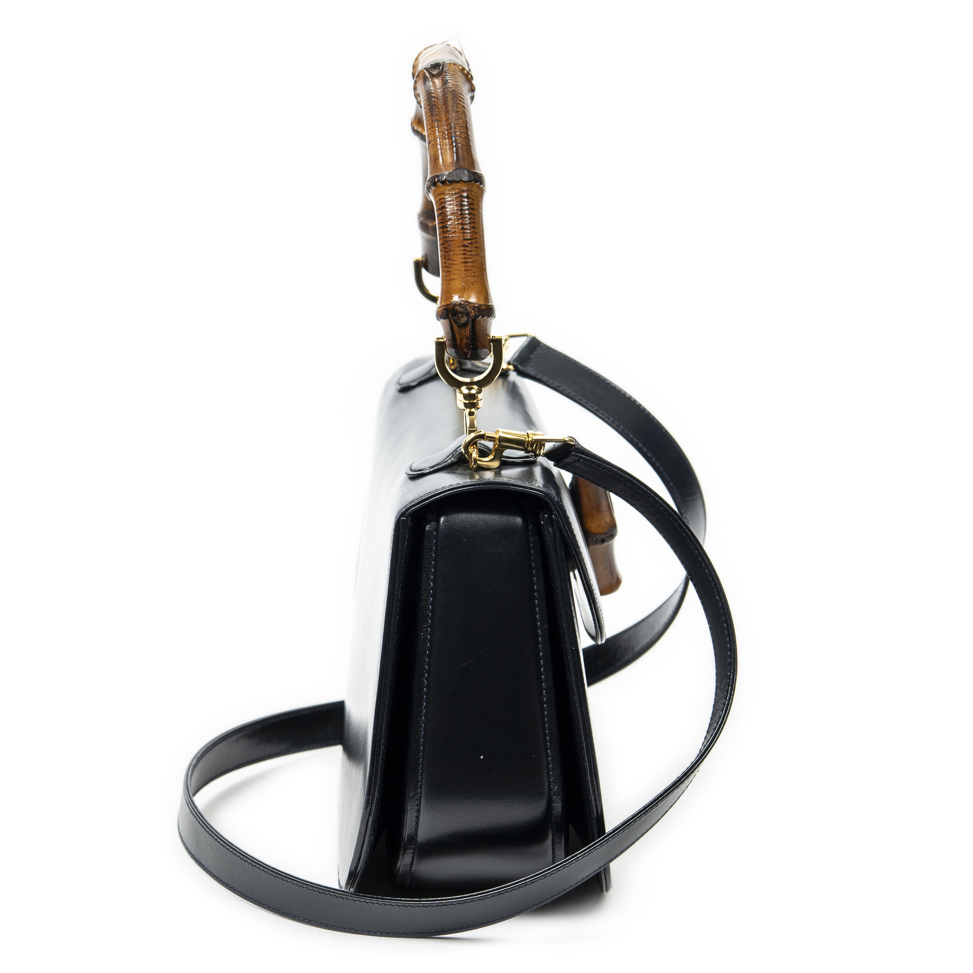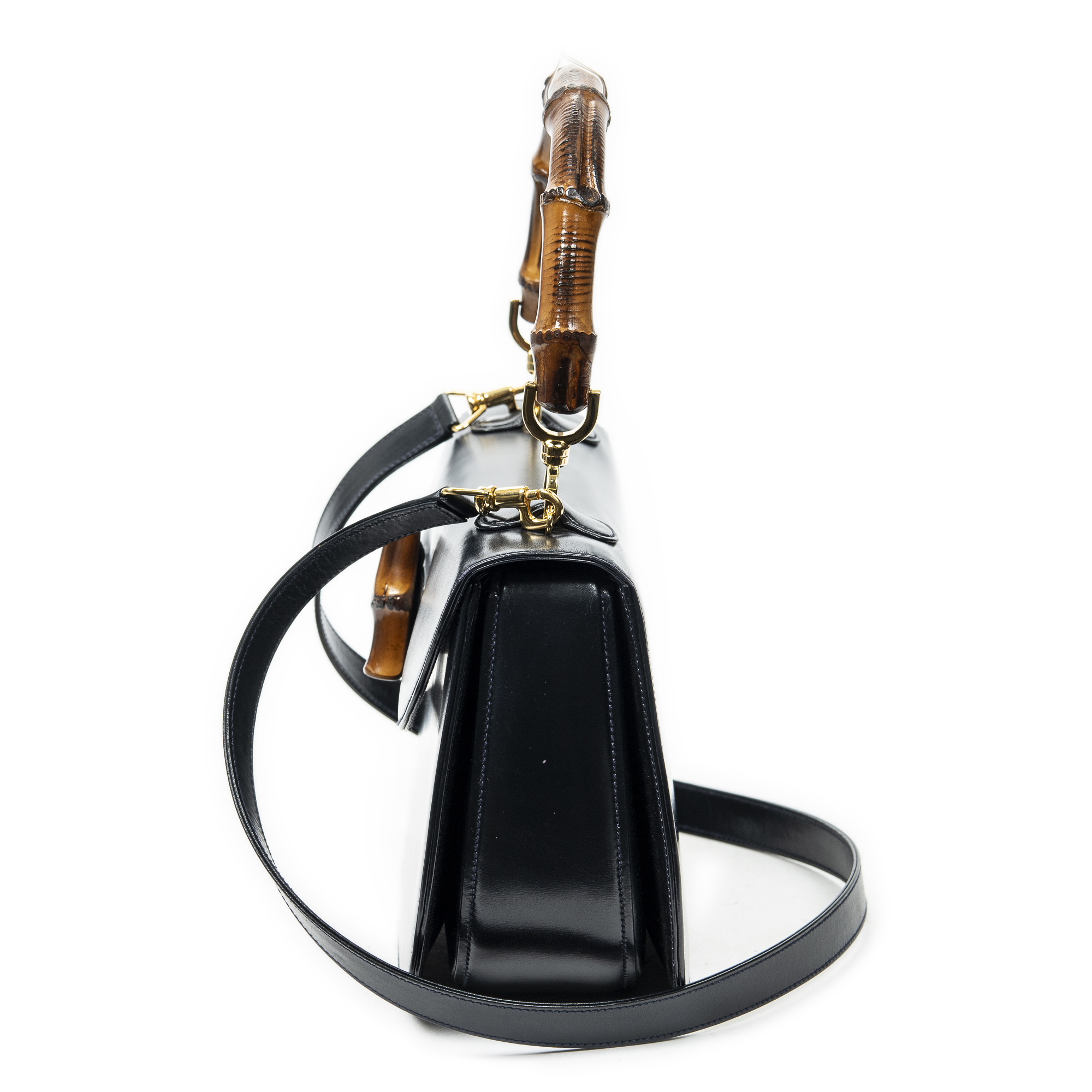 Gucci Shoulder Bag Medium Bamboo Top Handle Flap in Navy Smooth Calfskin Leather and Gold hardware. The product is in Excellent Condition (A).