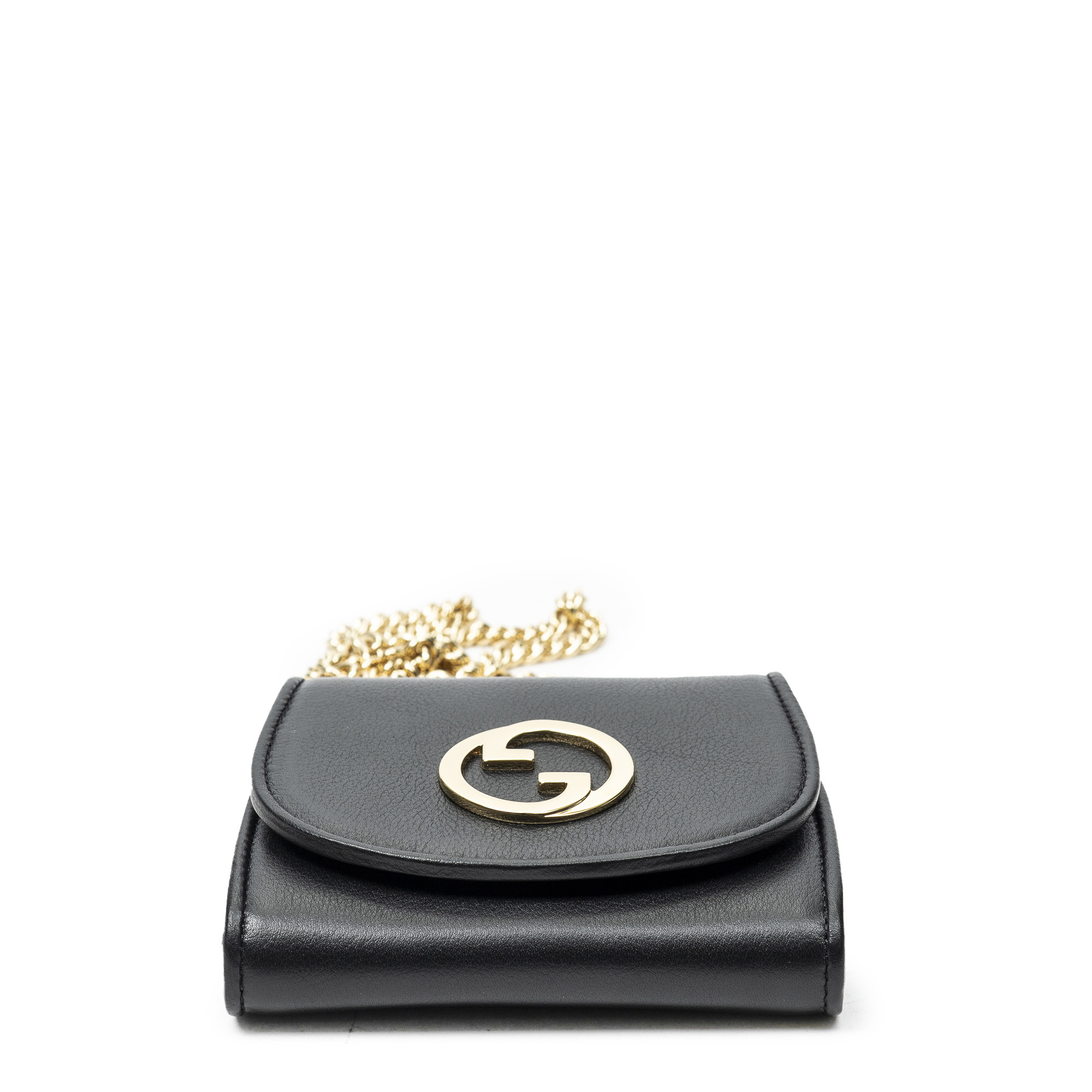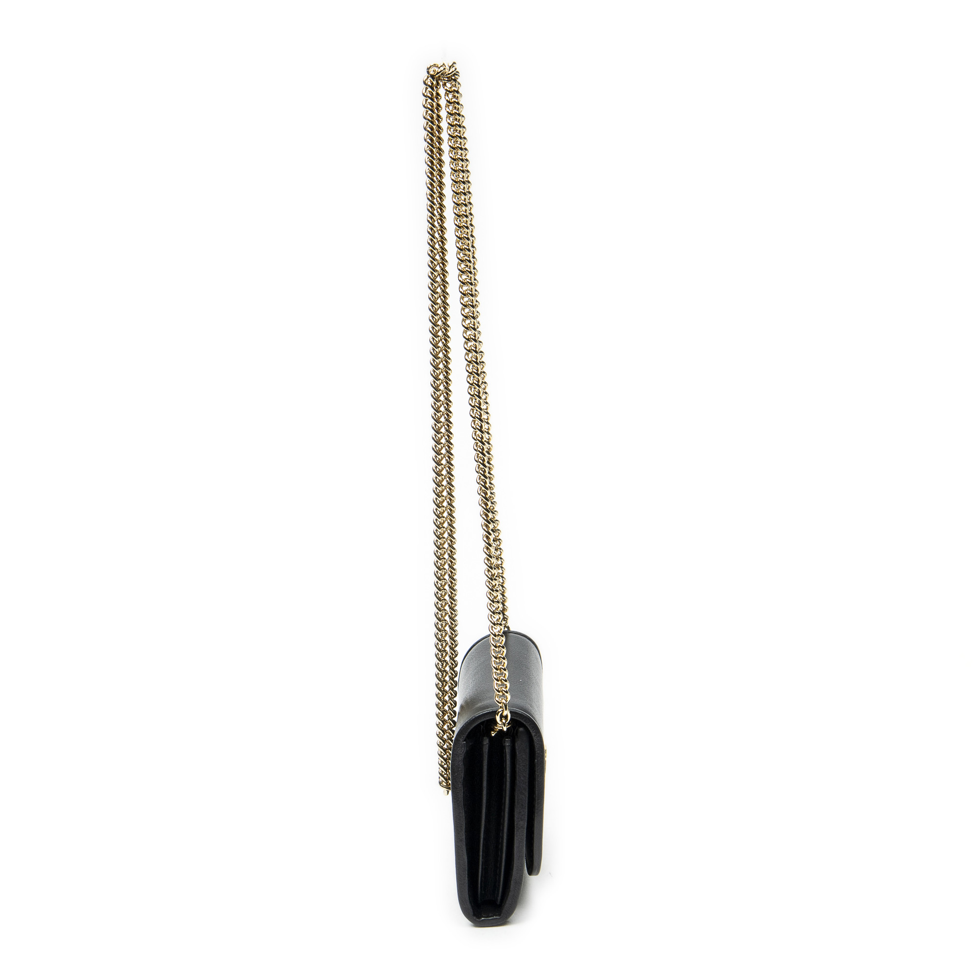Gucci Shoulder Bag Medium Blondie Chain Wallet in Black Calfskin Leather and Gold hardware. The product is in Perfect Condition (AA).