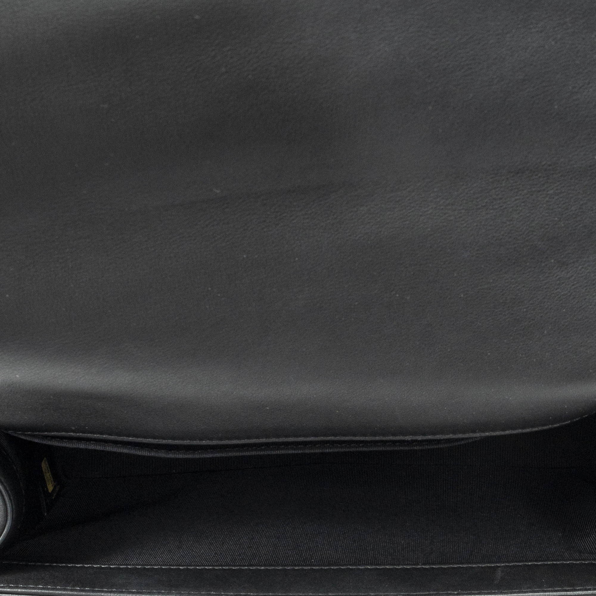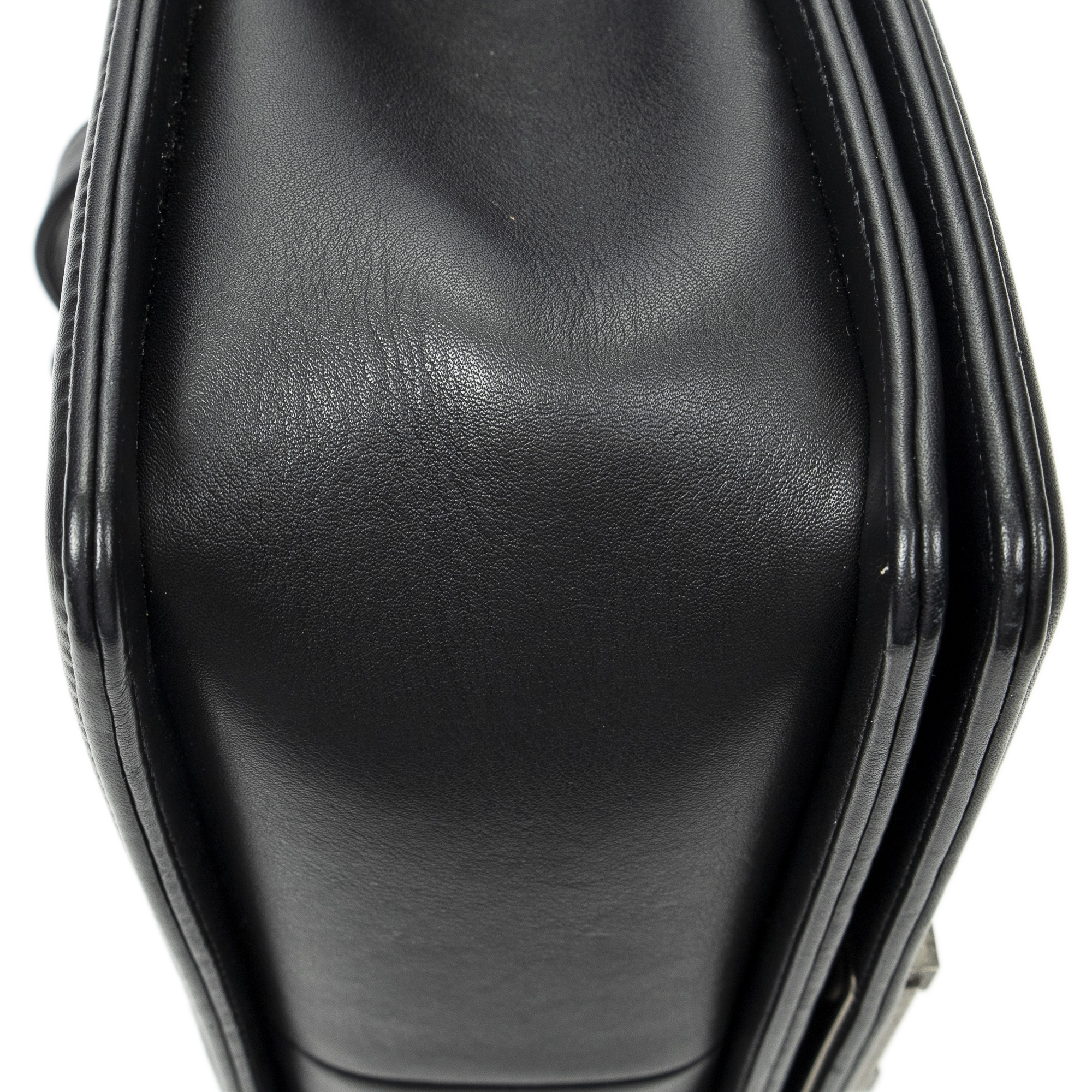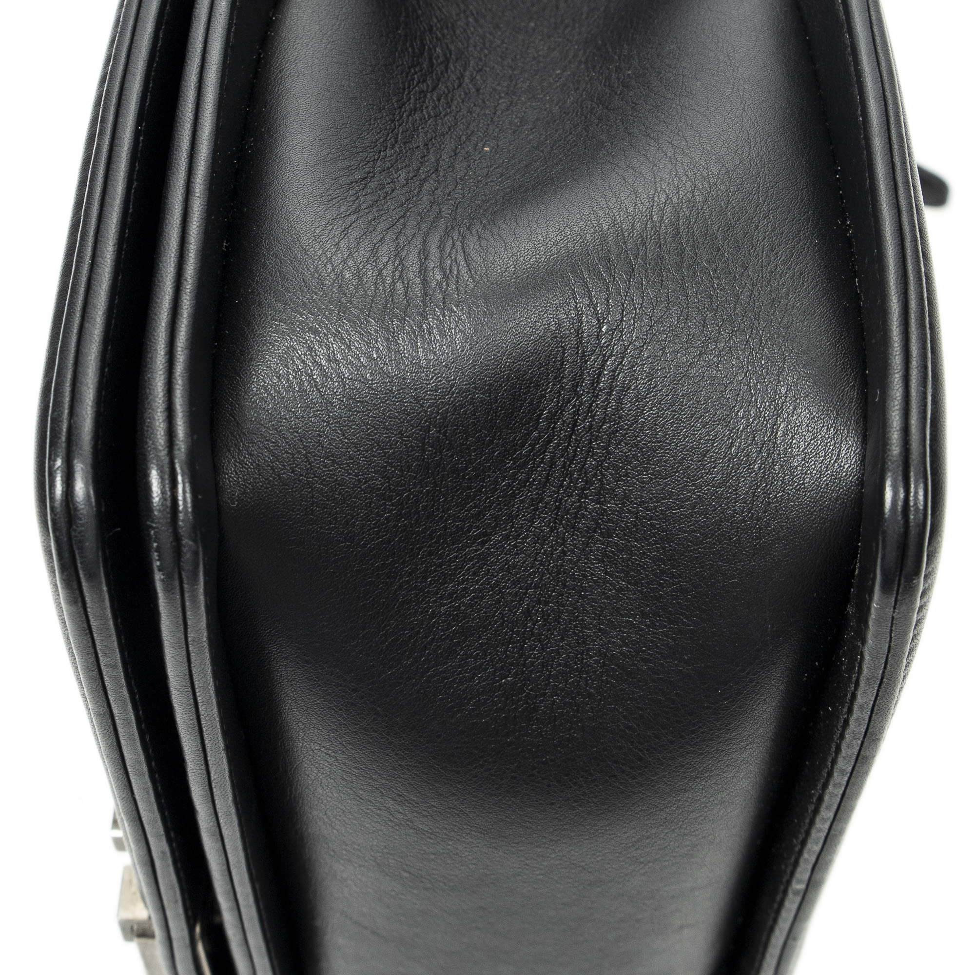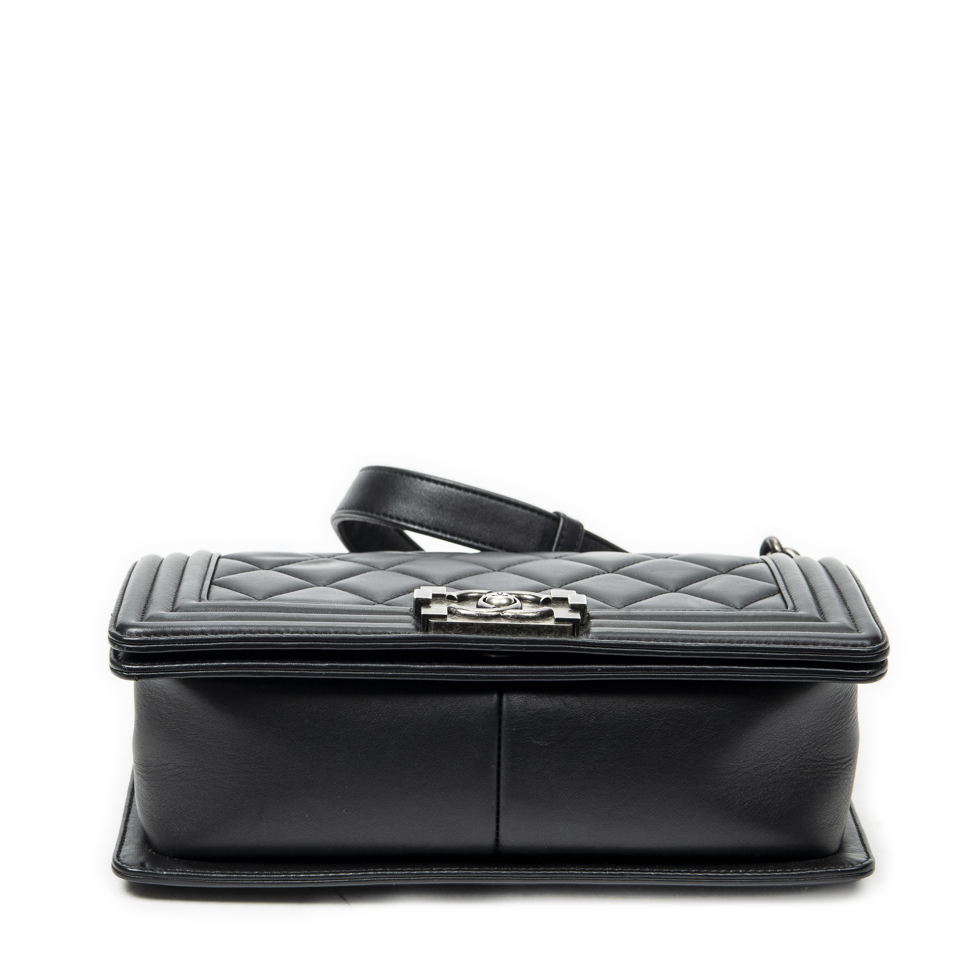 Chanel Shoulder Bag Medium Boy in Black Quilted Lambskin Leather and Silver hardware. The product is in Excellent Condition (A).