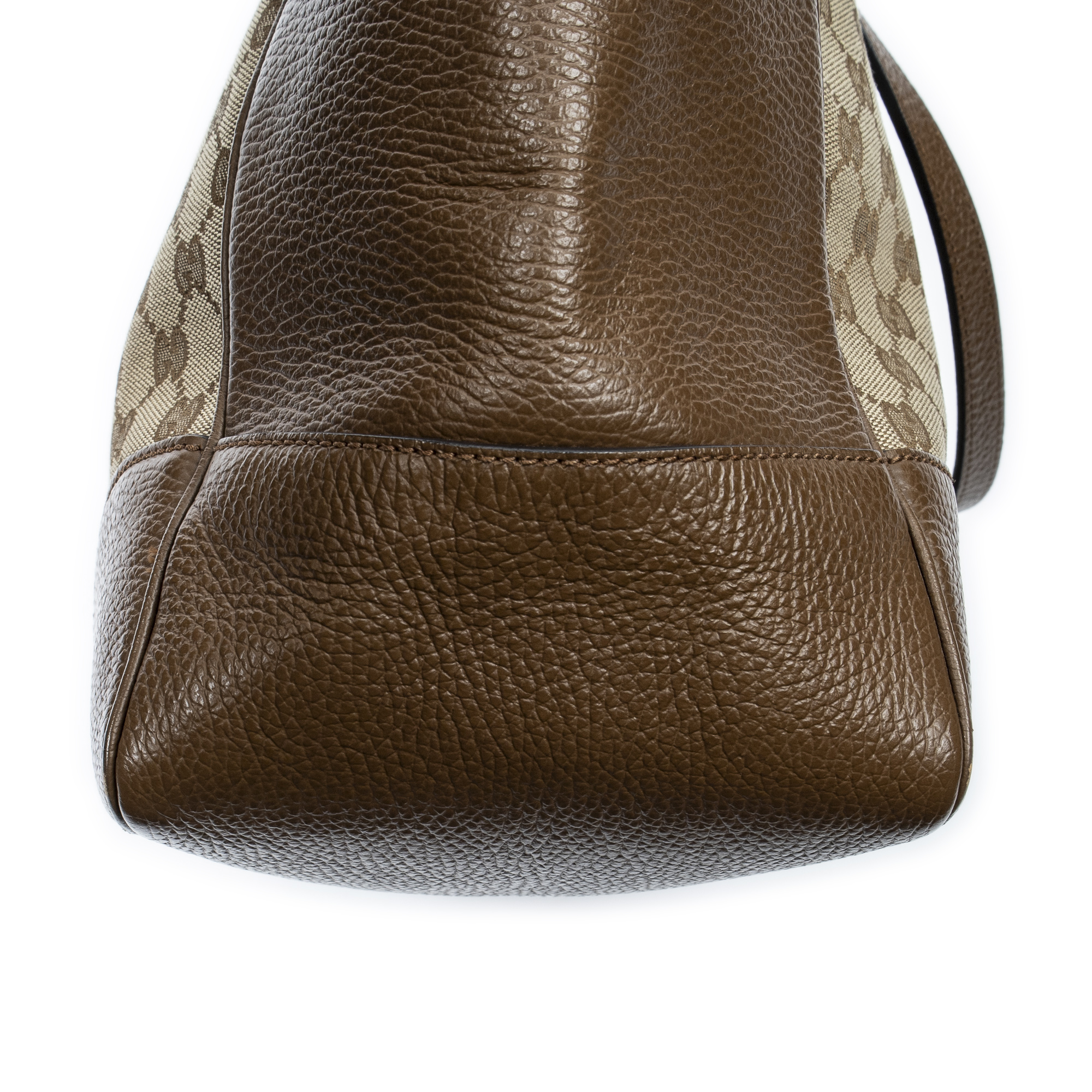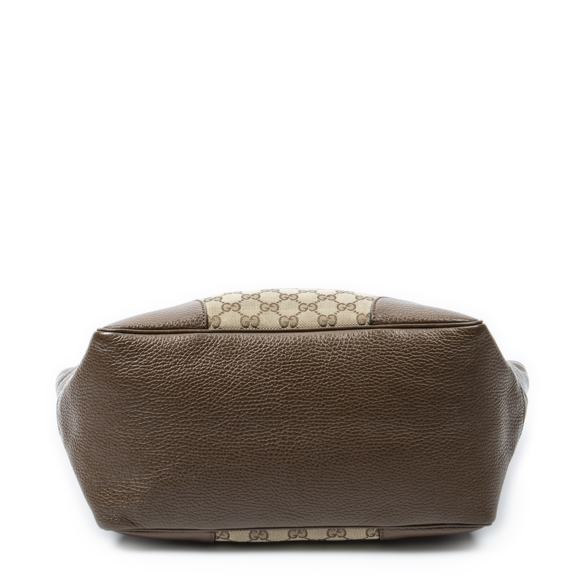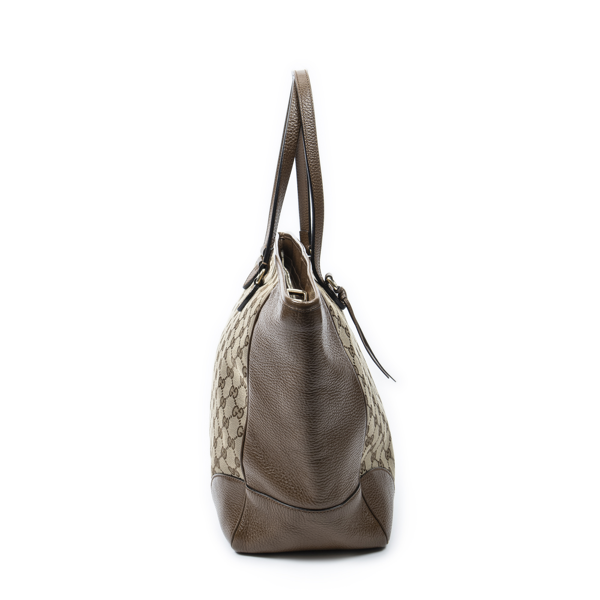 Gucci Shoulder Bag Medium Bree Tote in Beige/Brown Monogrammed Canvas and Gold hardware. The product is in Excellent Condition (A).