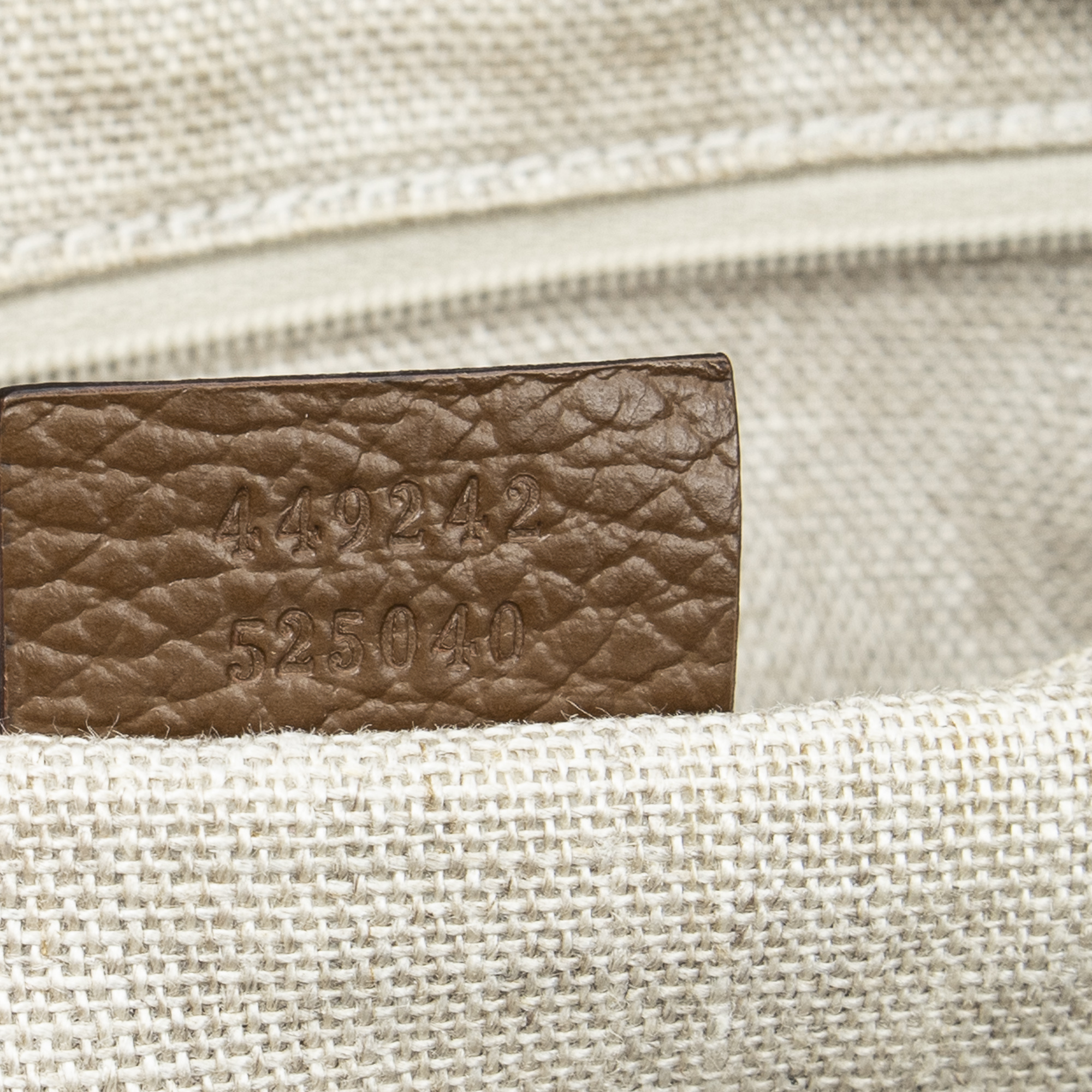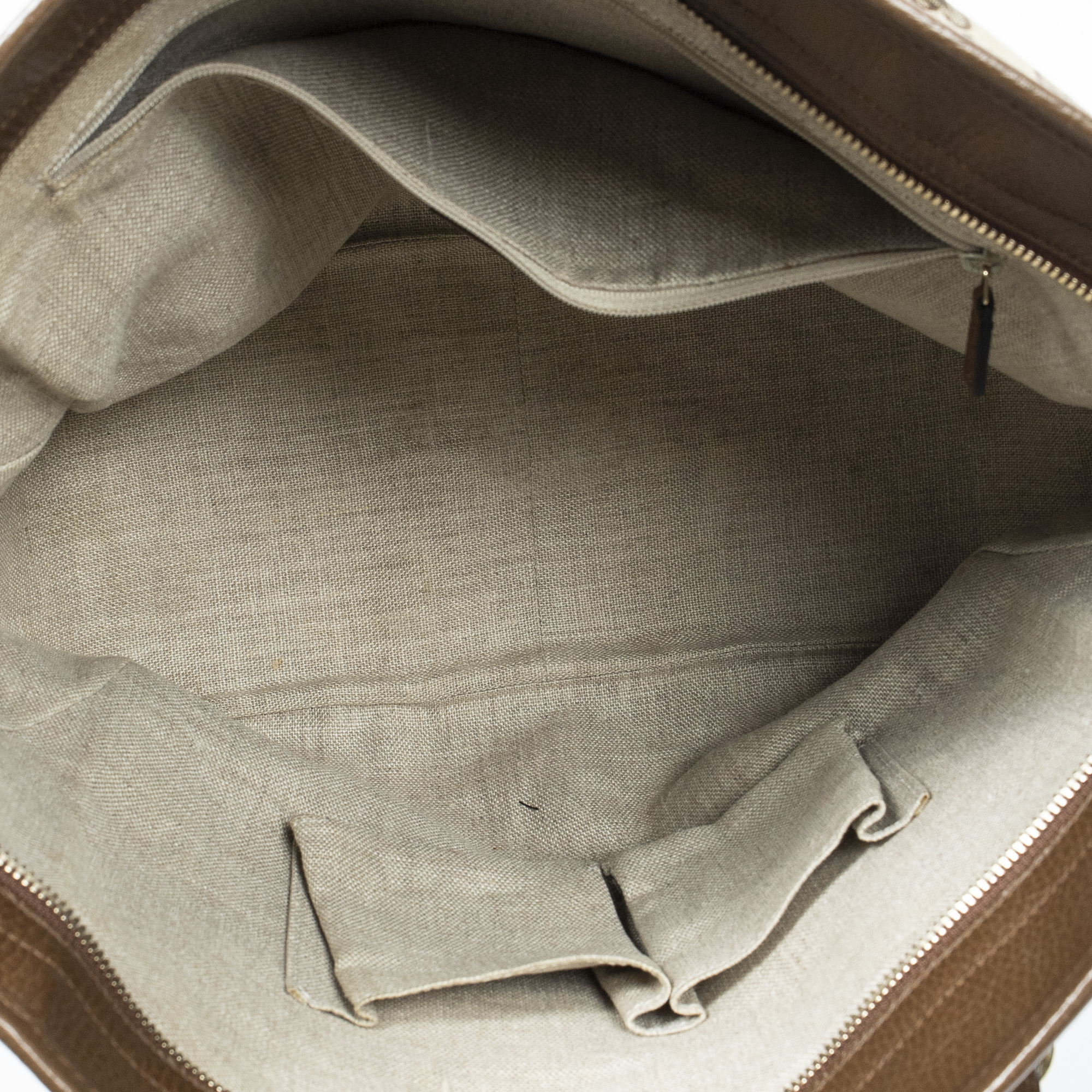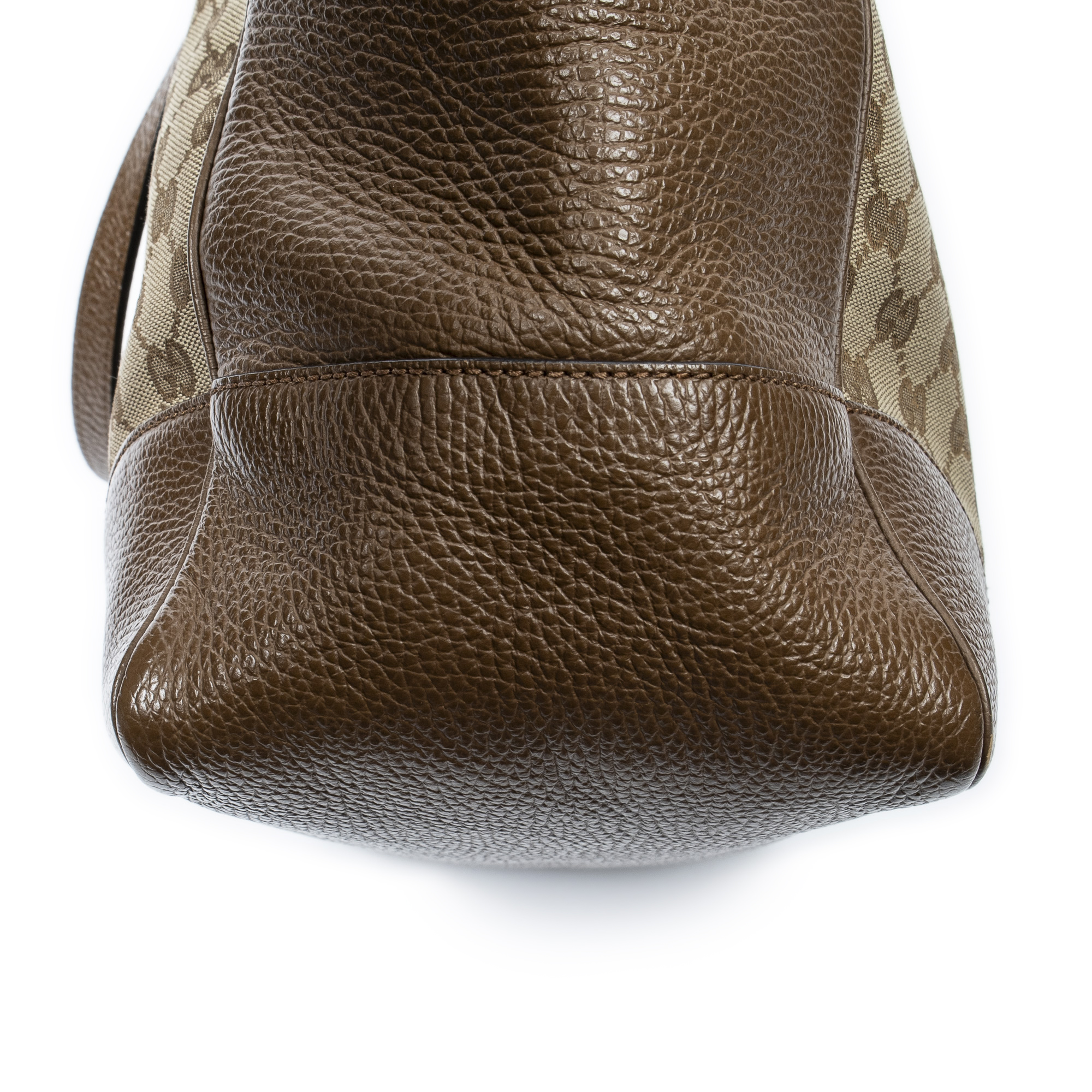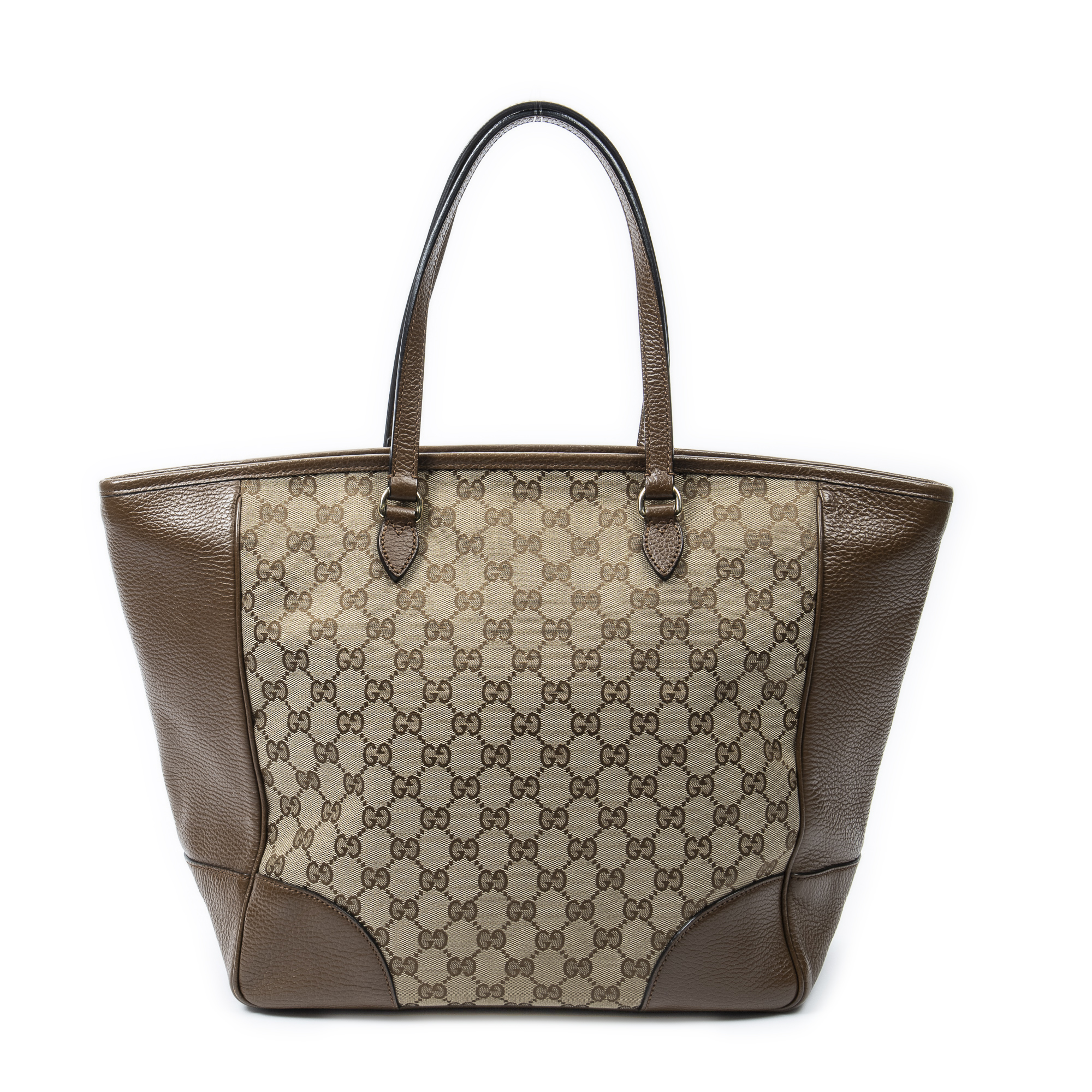 Gucci Shoulder Bag Medium Bree Tote in Beige/Brown Monogrammed Canvas and Gold hardware. The product is in Excellent Condition (A).