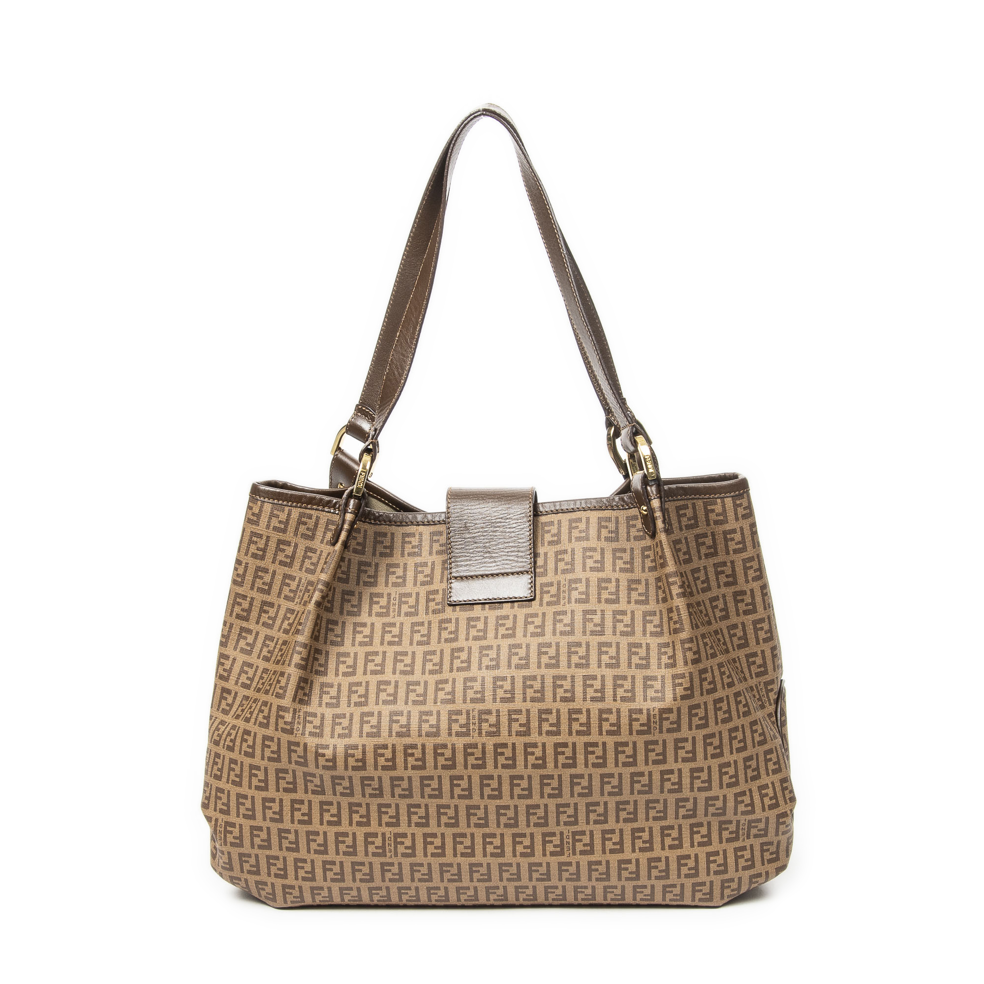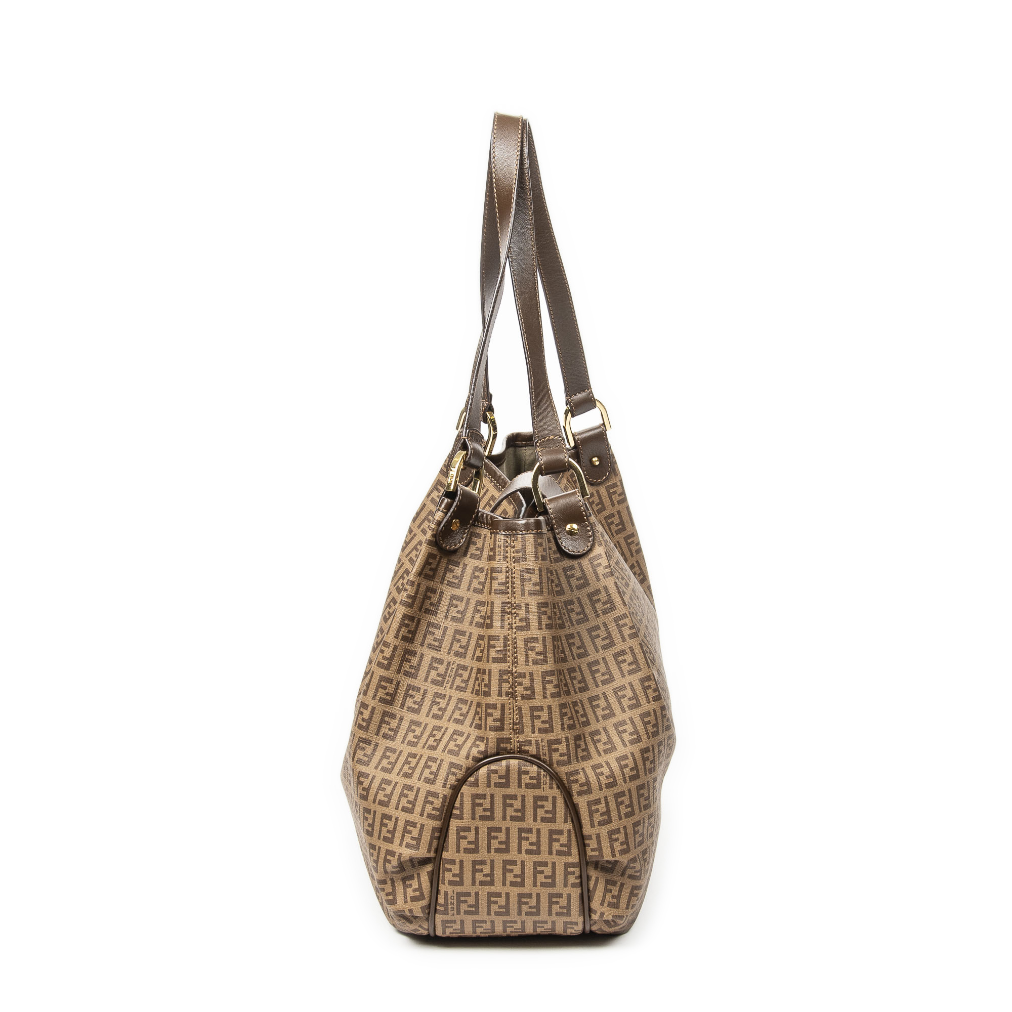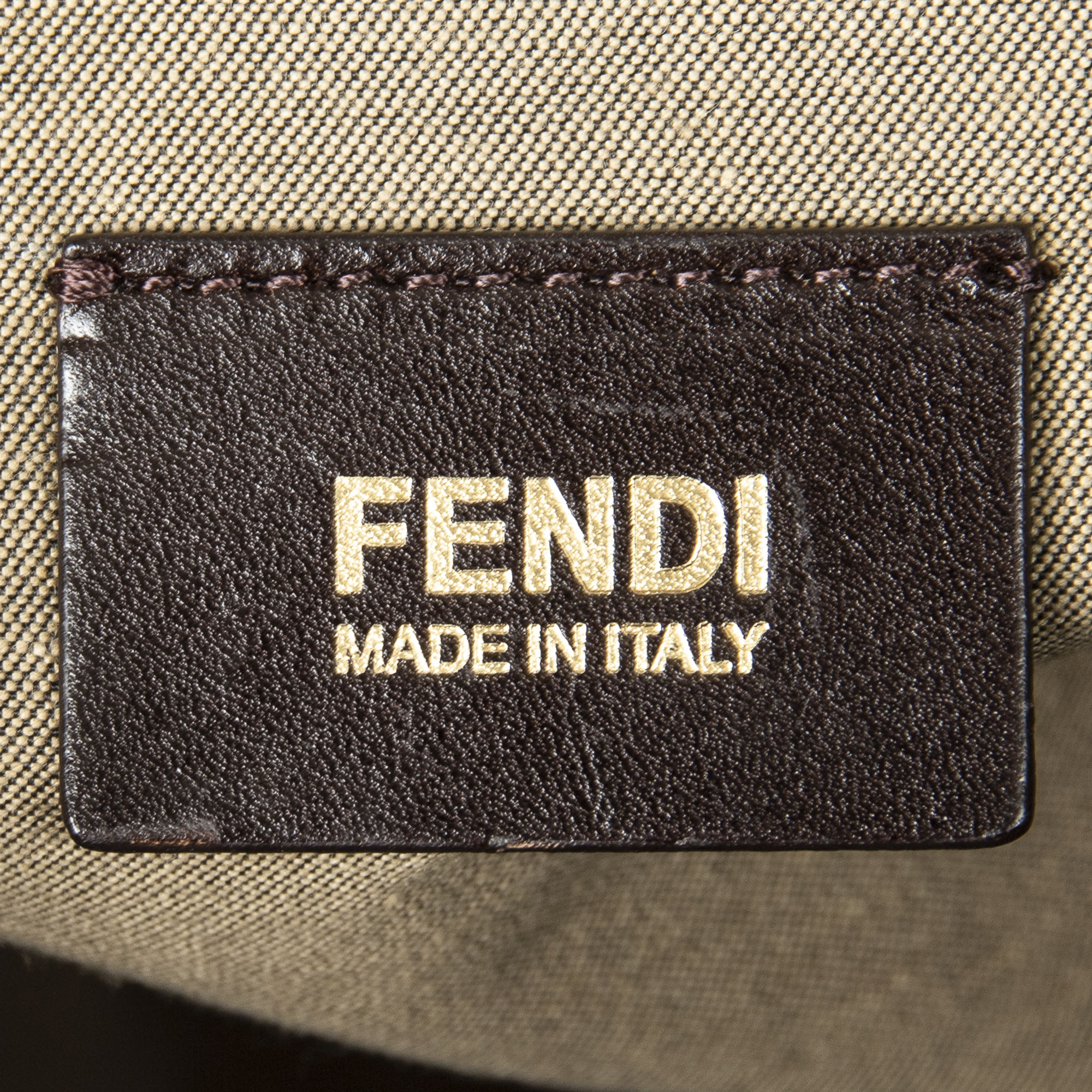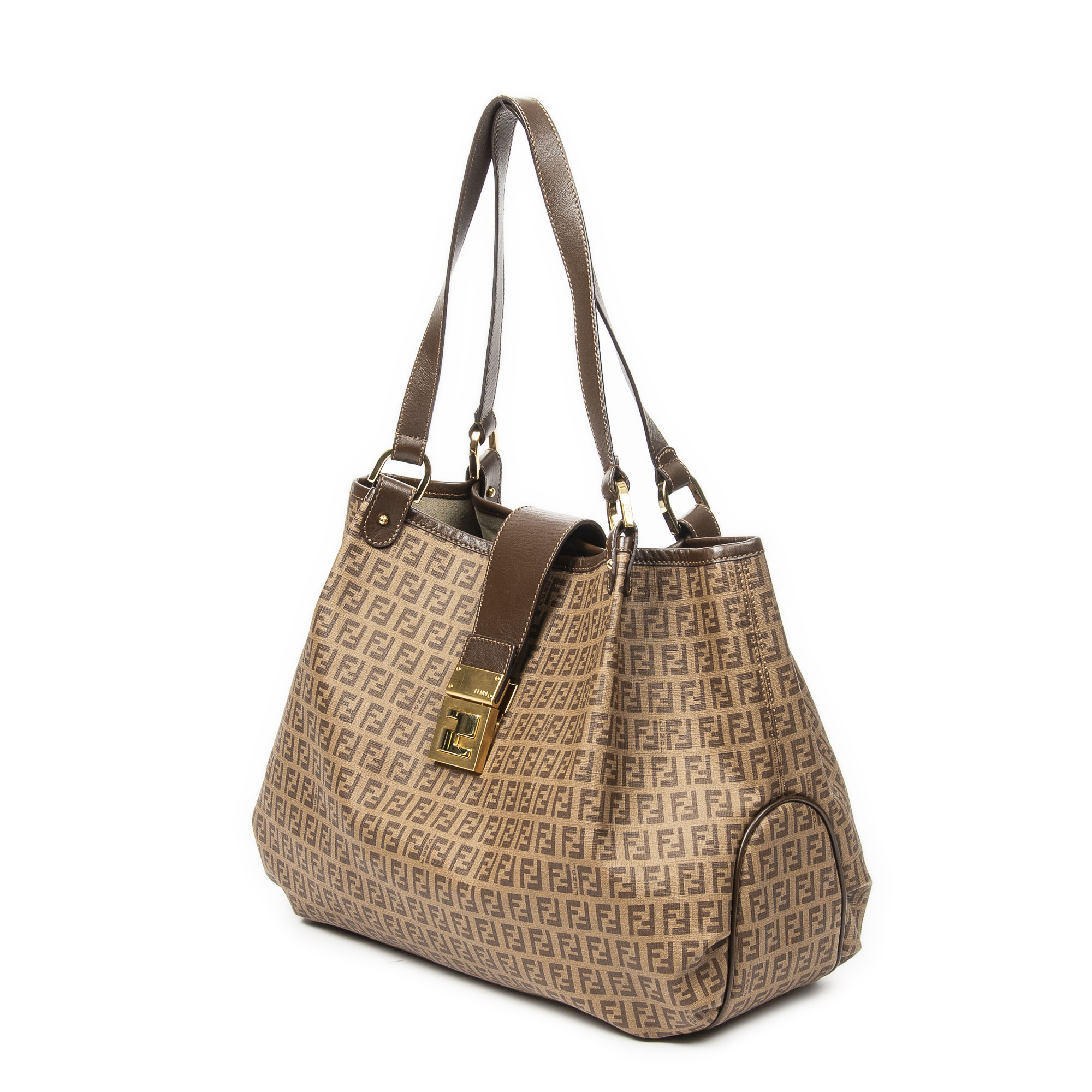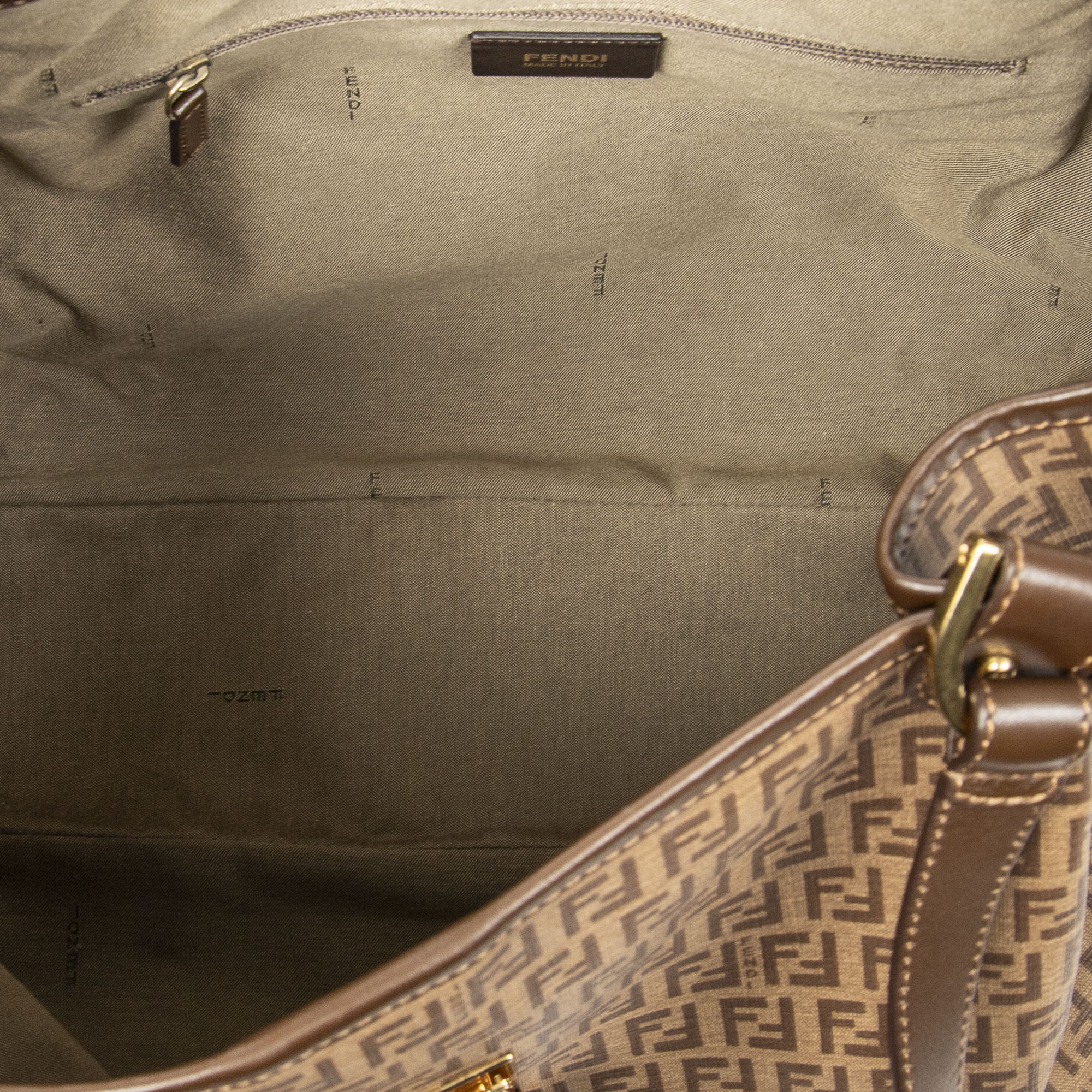 Fendi Shoulder Bag Medium Chiusura Tote in Brown Zucchino Coated Canvas and Gold hardware. The product is in Excellent Condition (A).