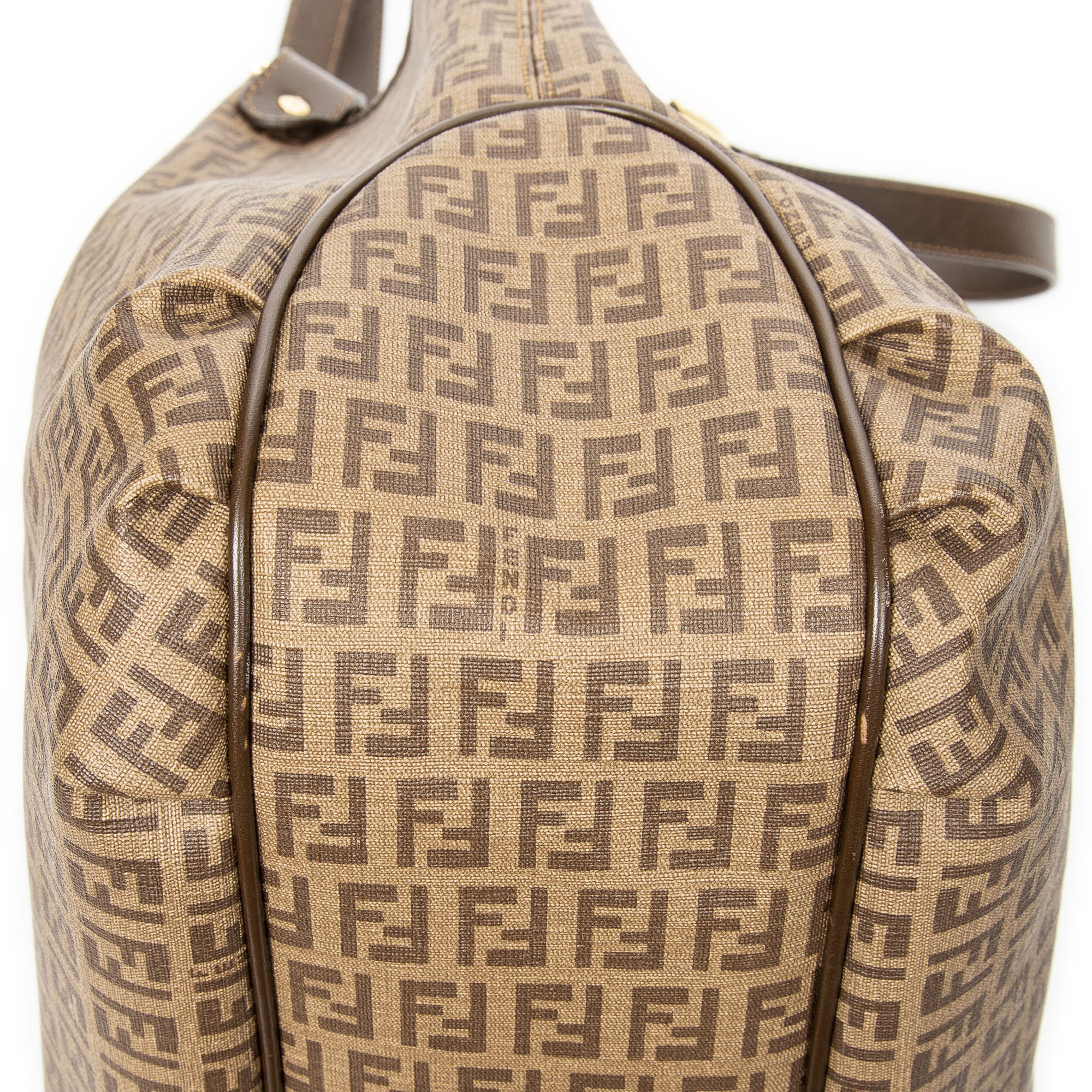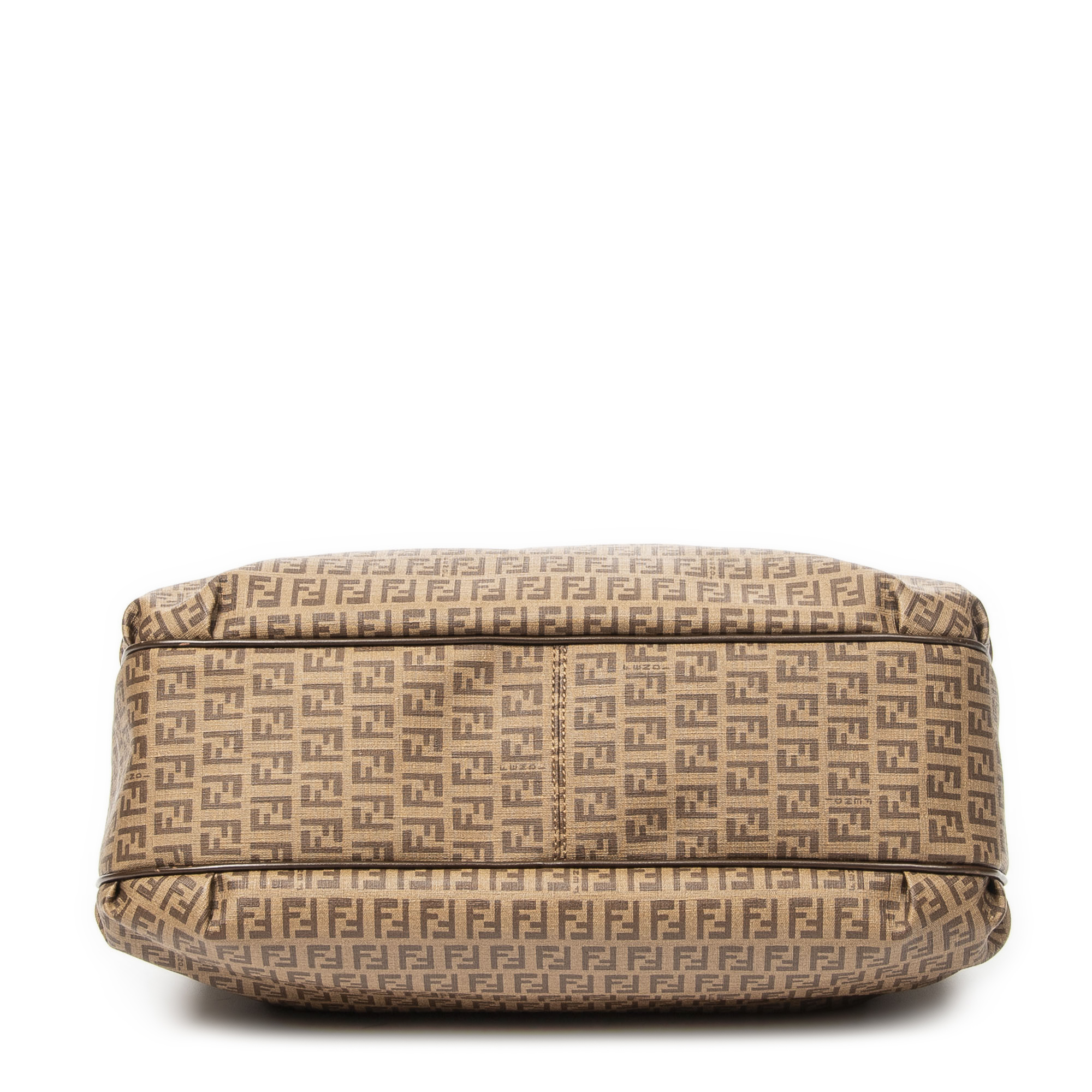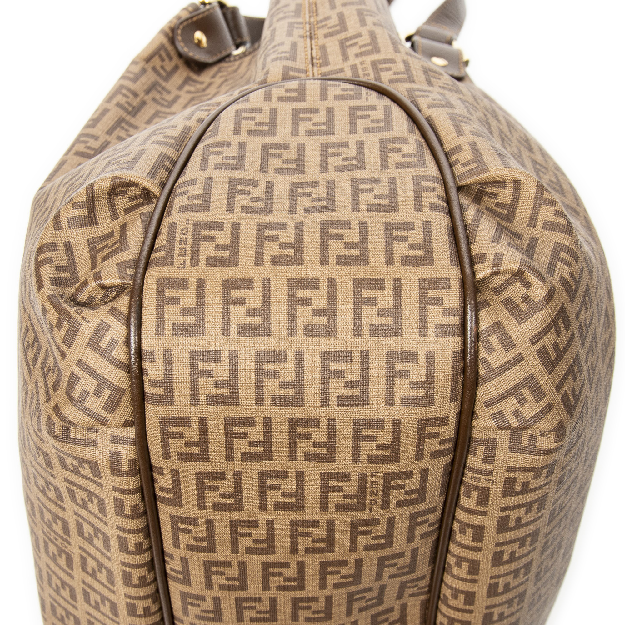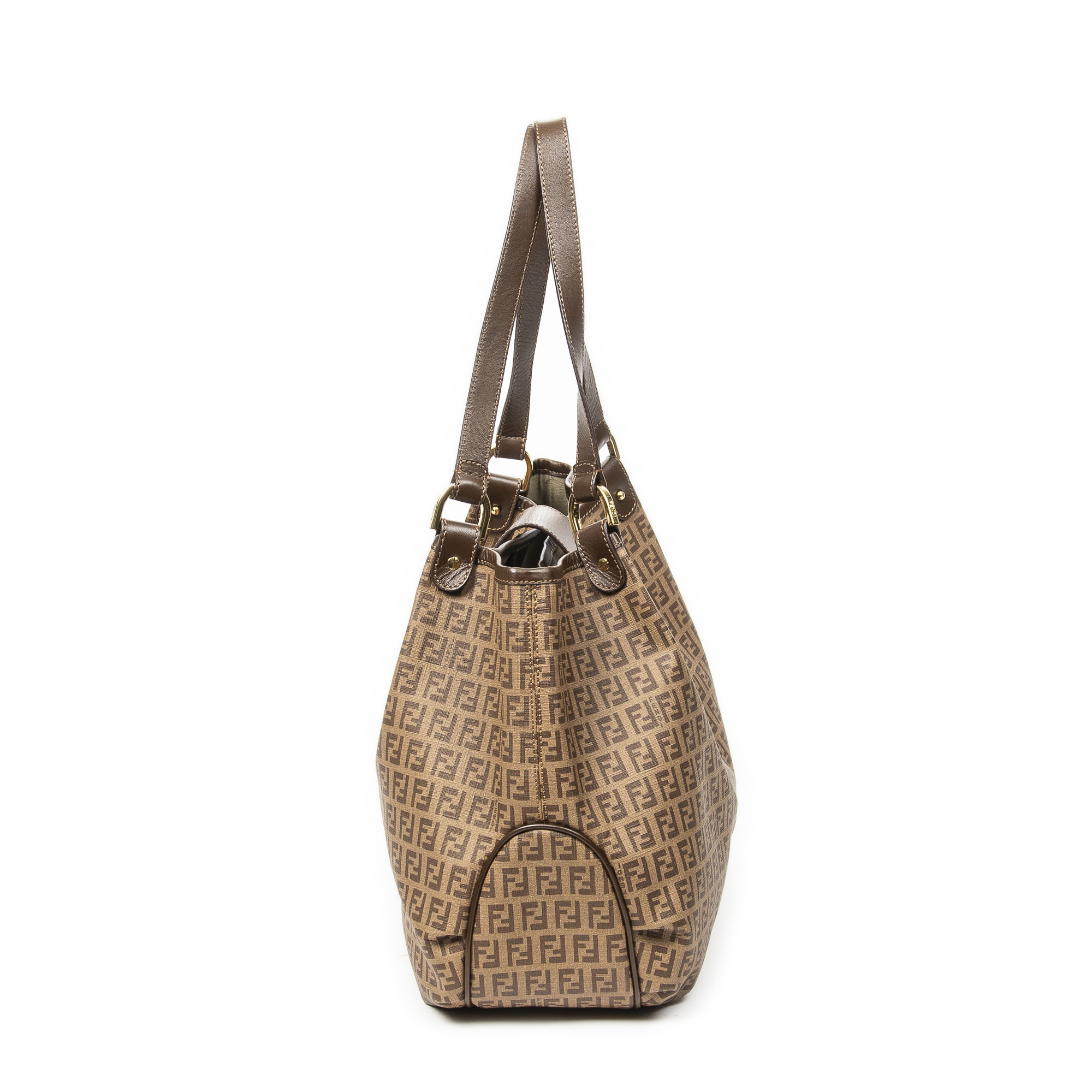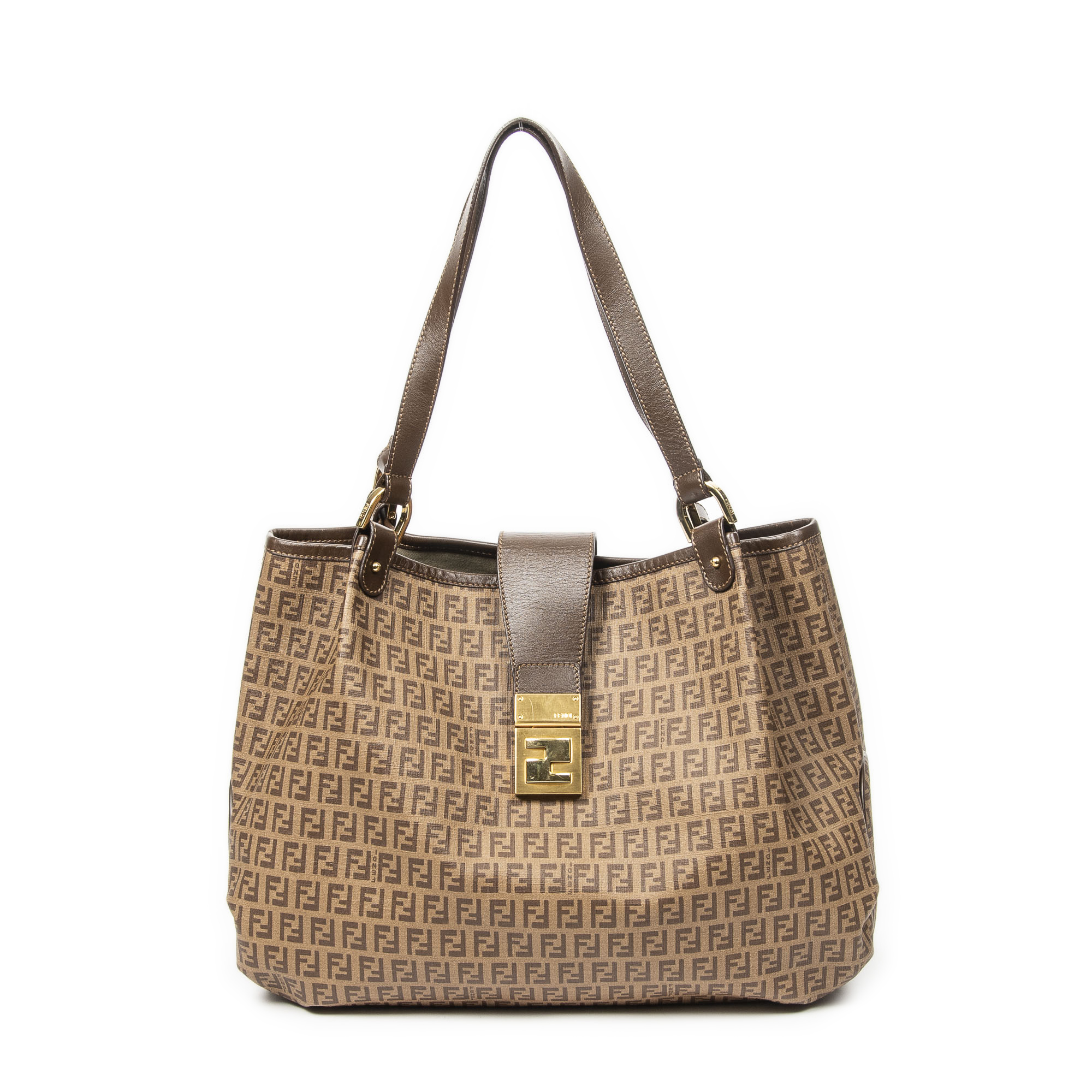 Fendi Shoulder Bag Medium Chiusura Tote in Brown Zucchino Coated Canvas and Gold hardware. The product is in Excellent Condition (A).