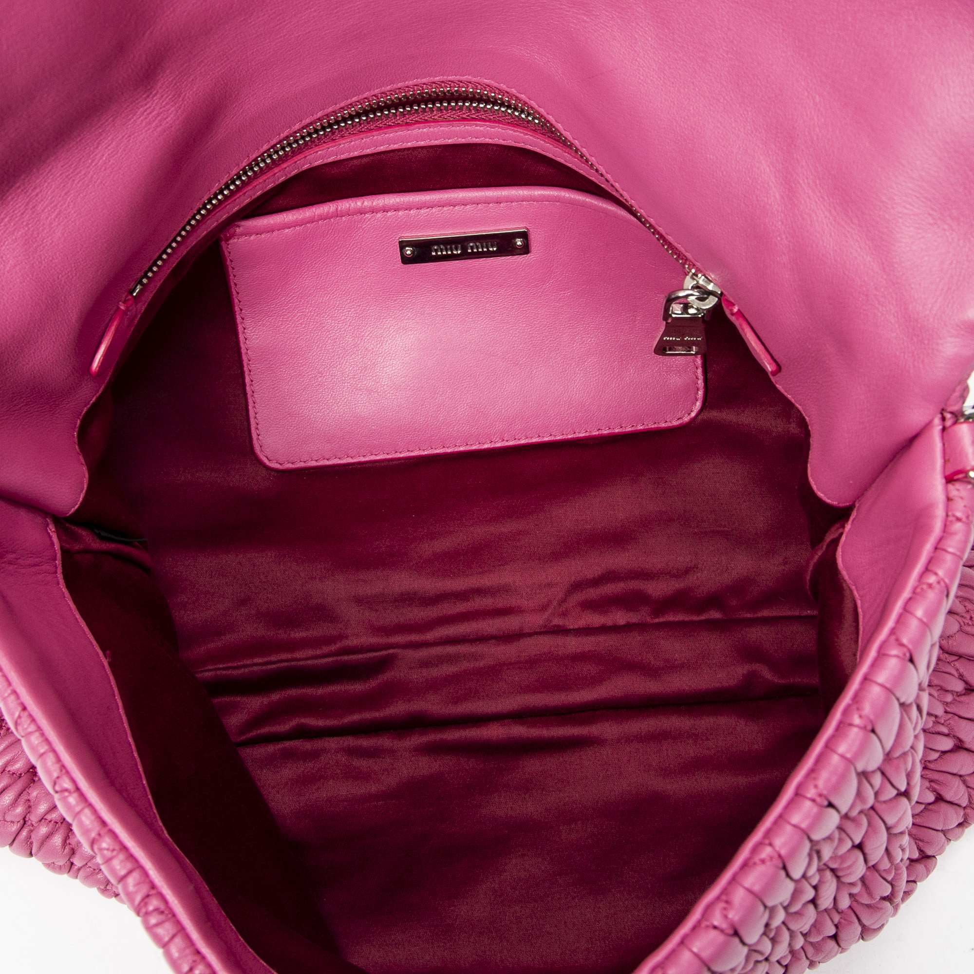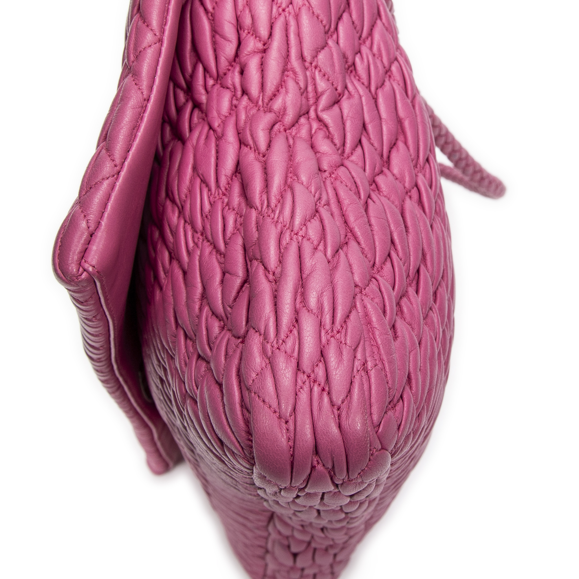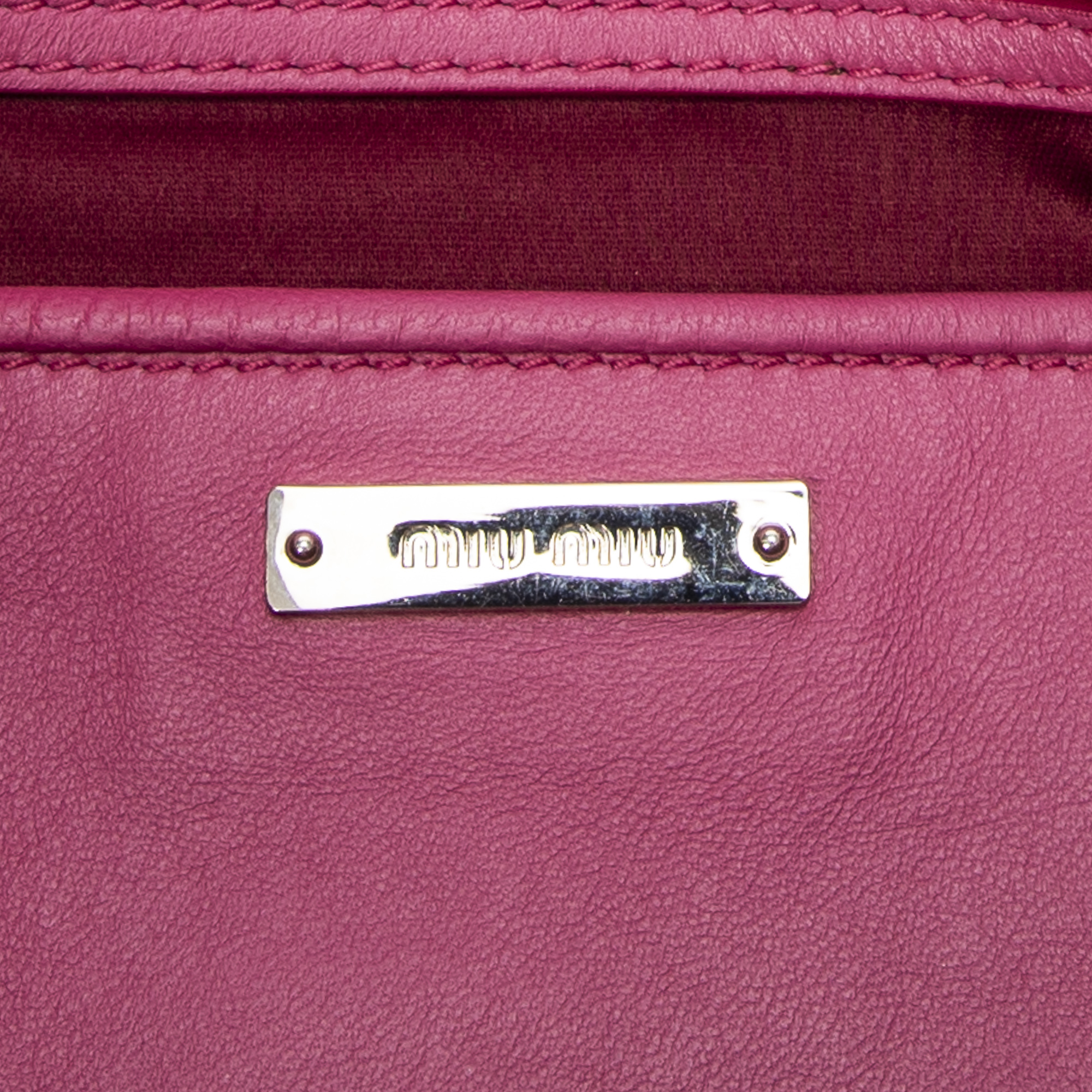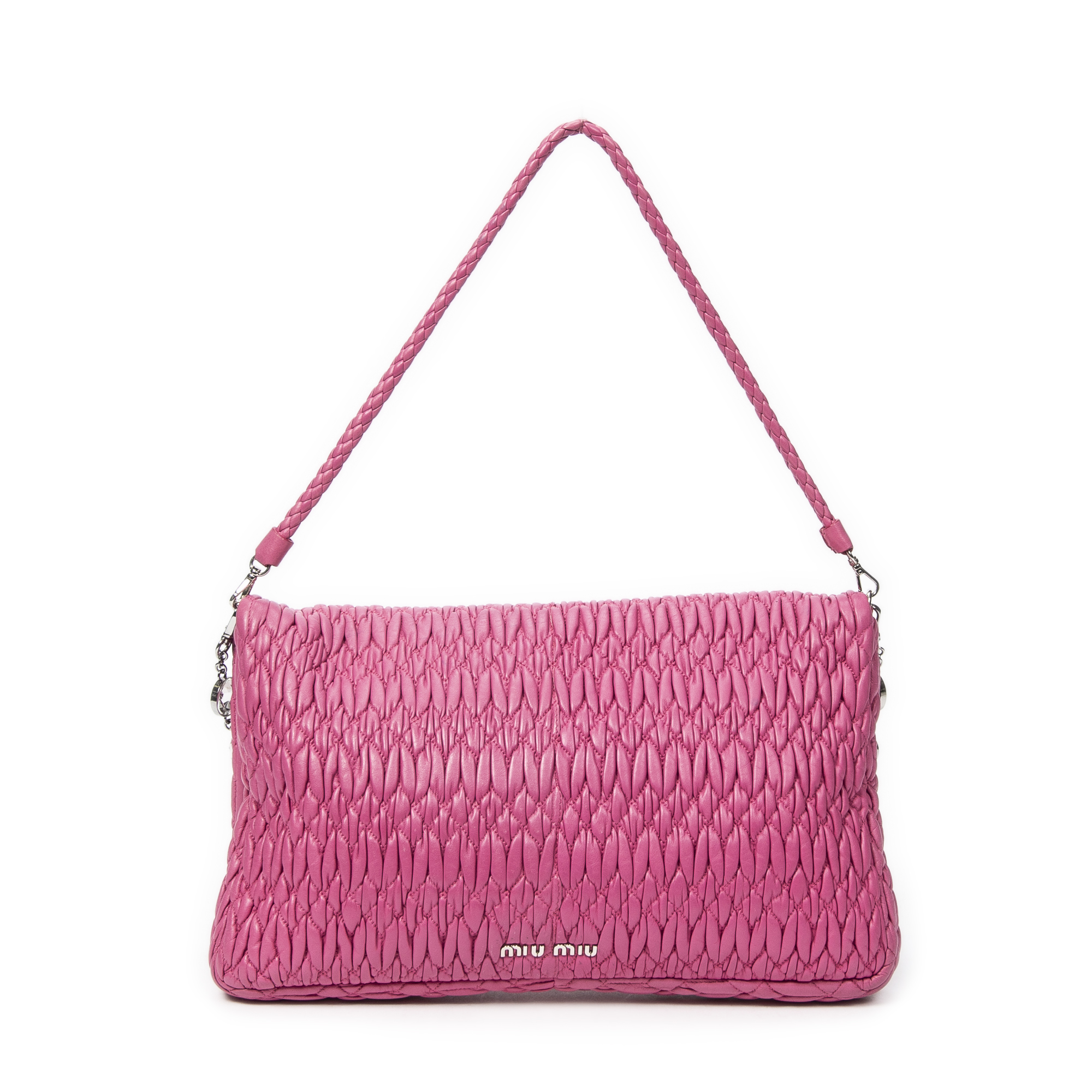 Miu Miu Shoulder Bag Medium Crystal Flap Clutch in Pink Nappa Matelasse Leather and Silver hardware. The product is in Excellent Condition (A).