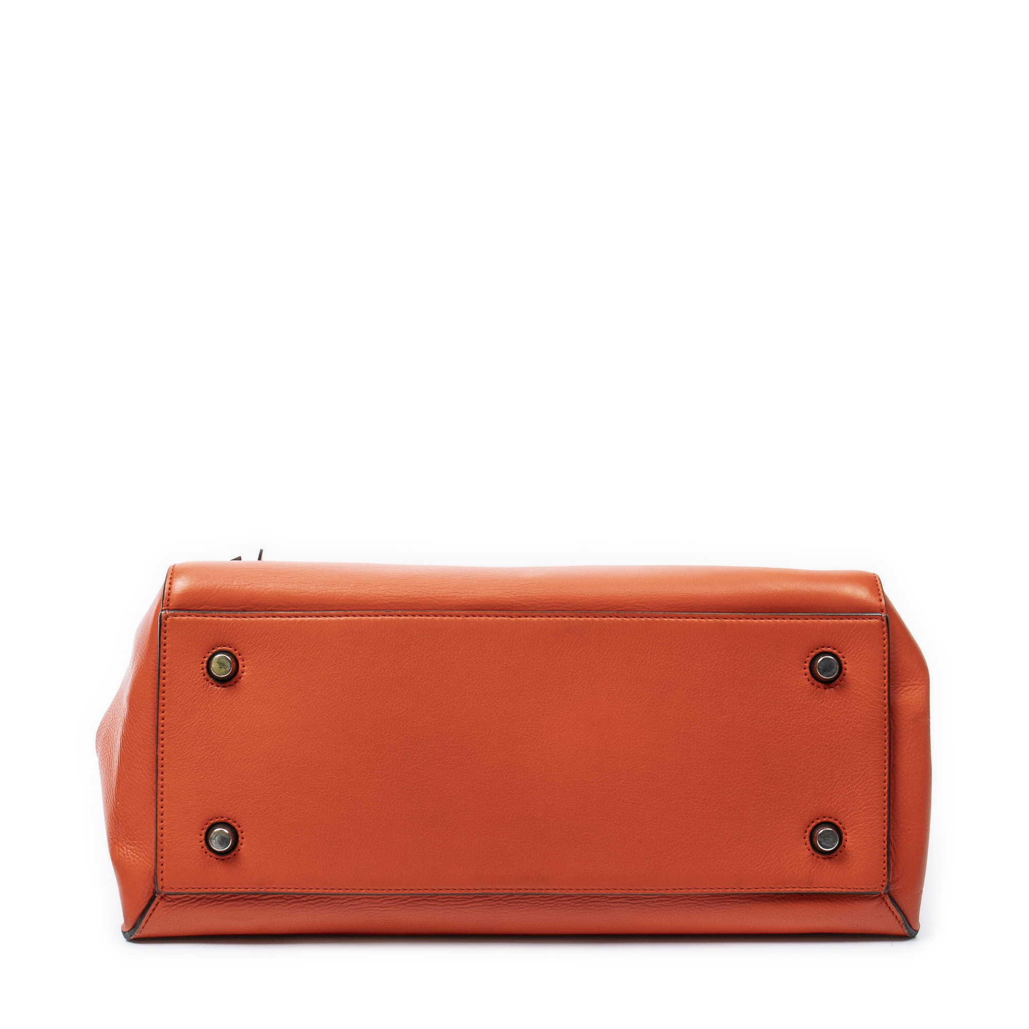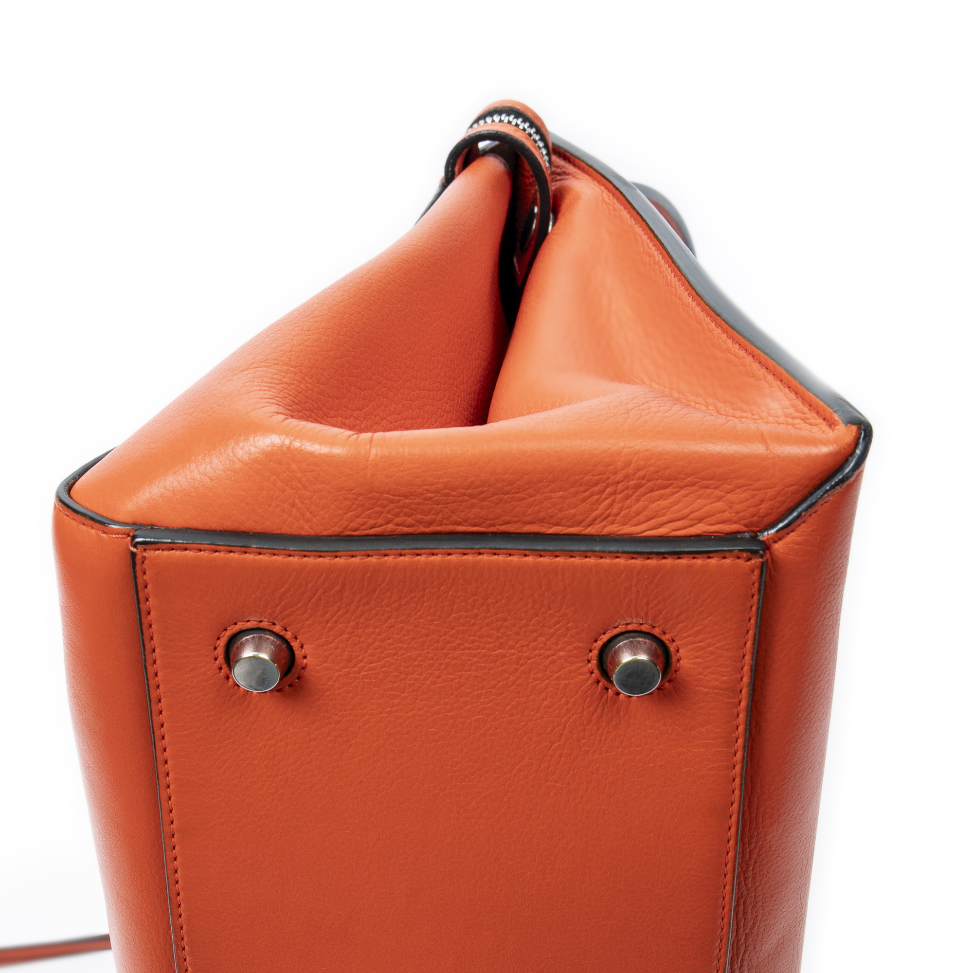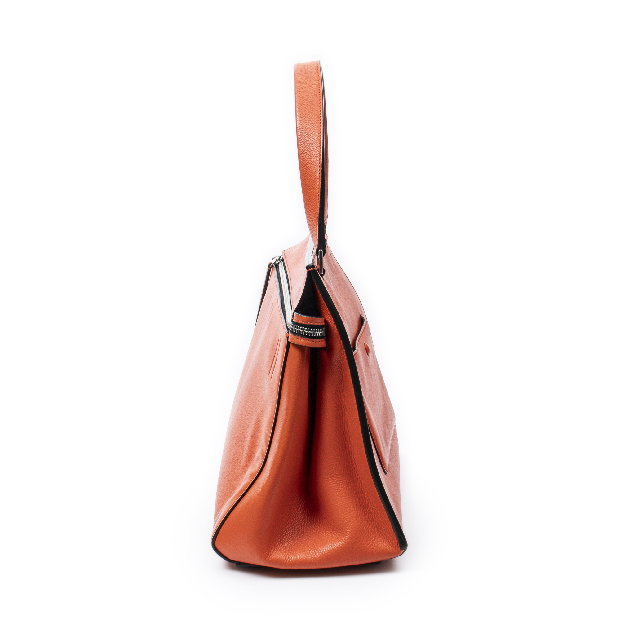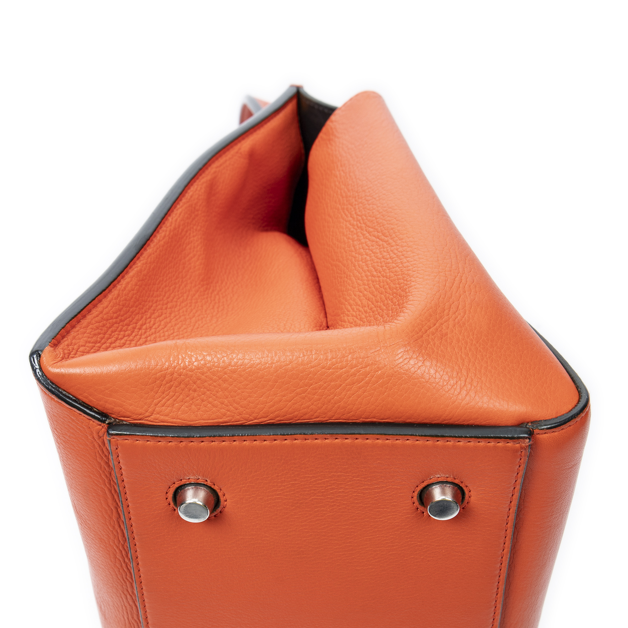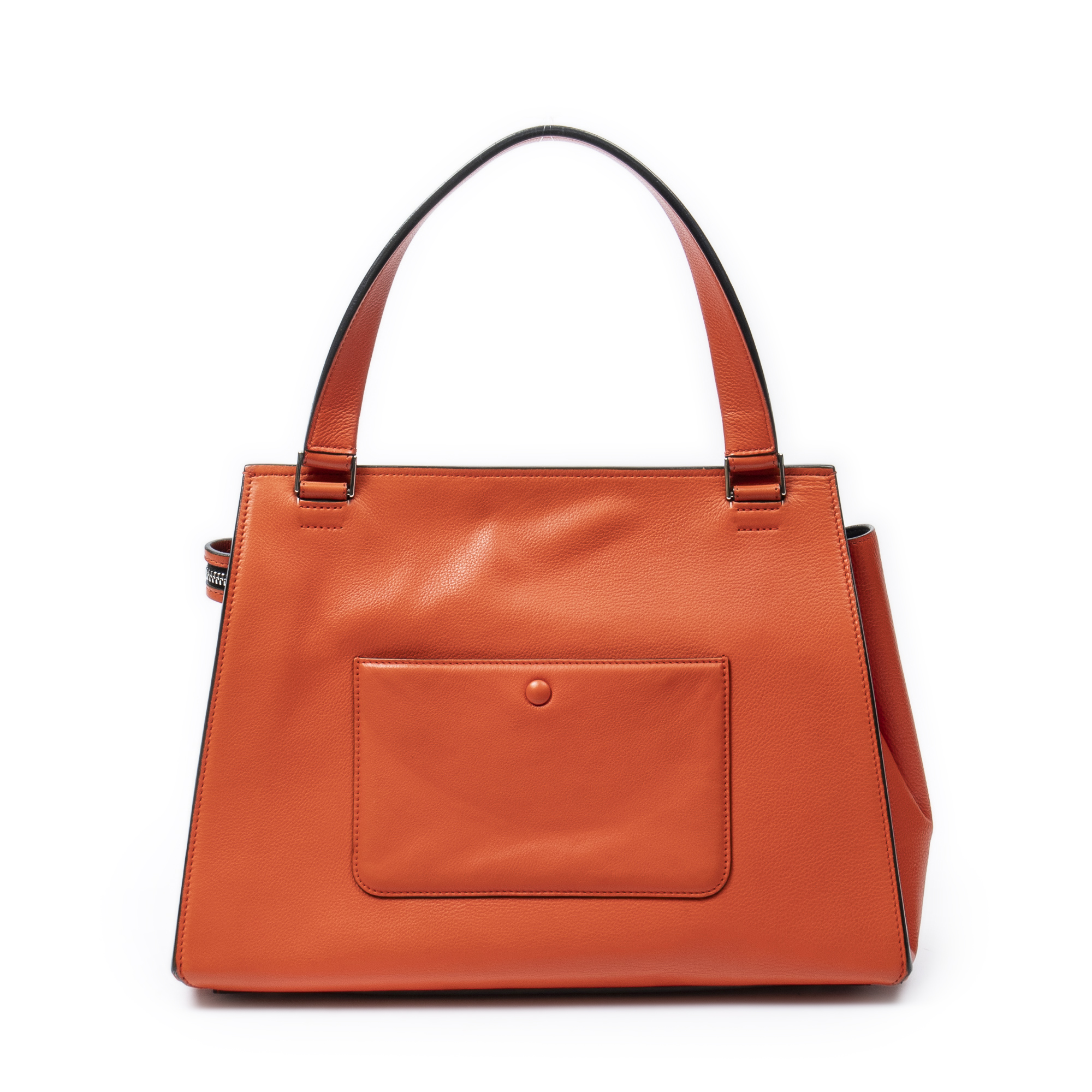 Celine Shoulder Bag Medium Edge Bag in Orange Calfskin Leather and Silver hardware. The product is in Excellent Condition (A).