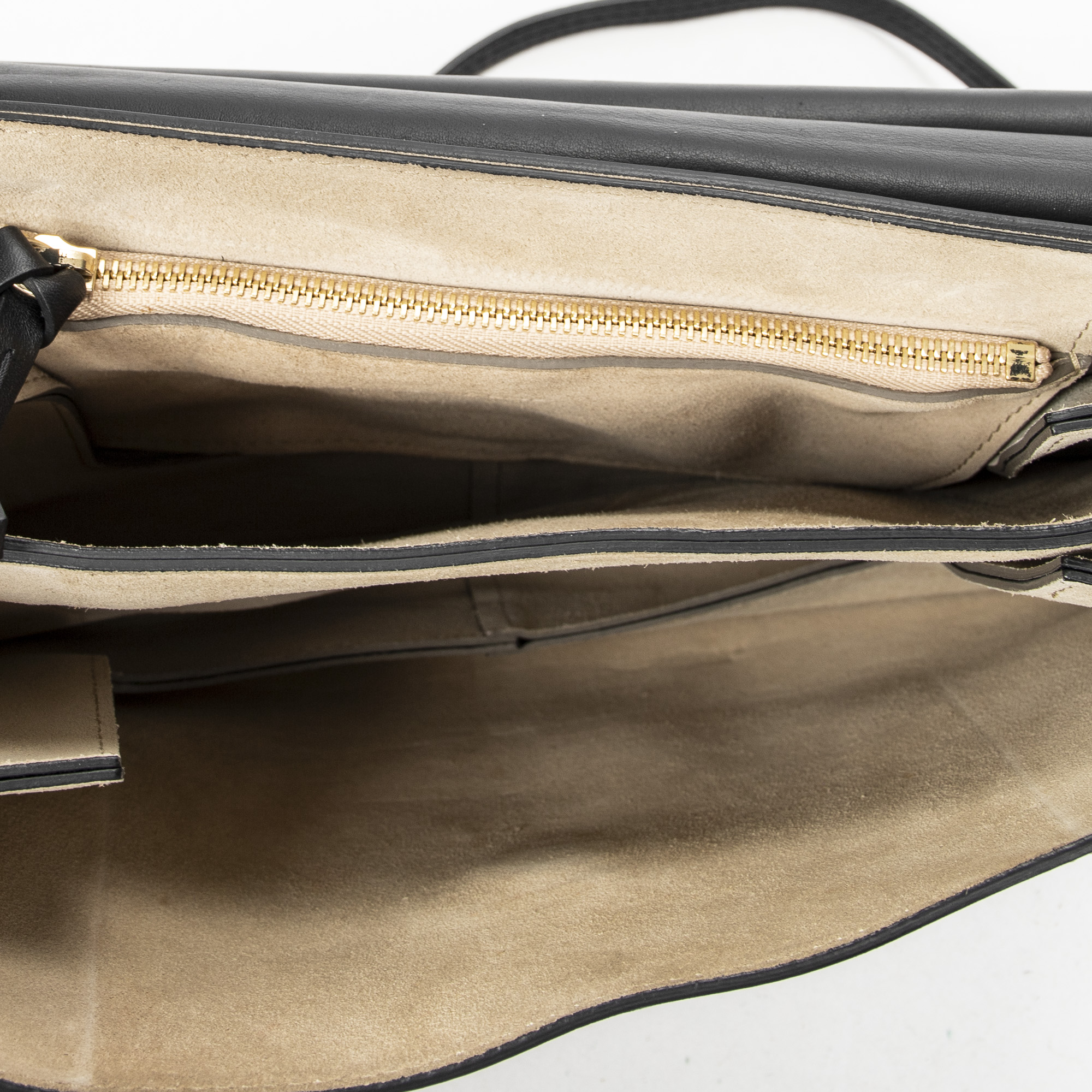 Chloé Shoulder Bag Medium Faye in Black Calfskin Leather and Gold hardware. The product is in Very Good Condition (AB).