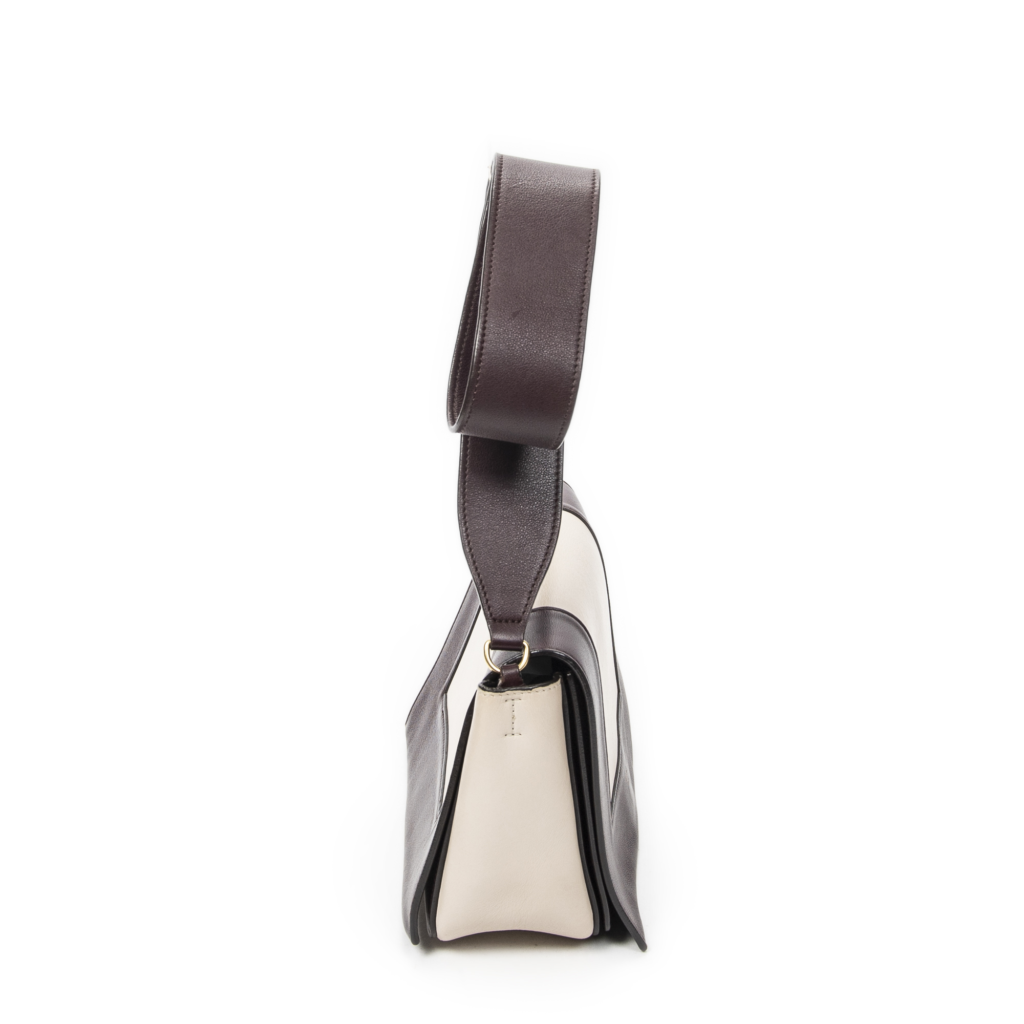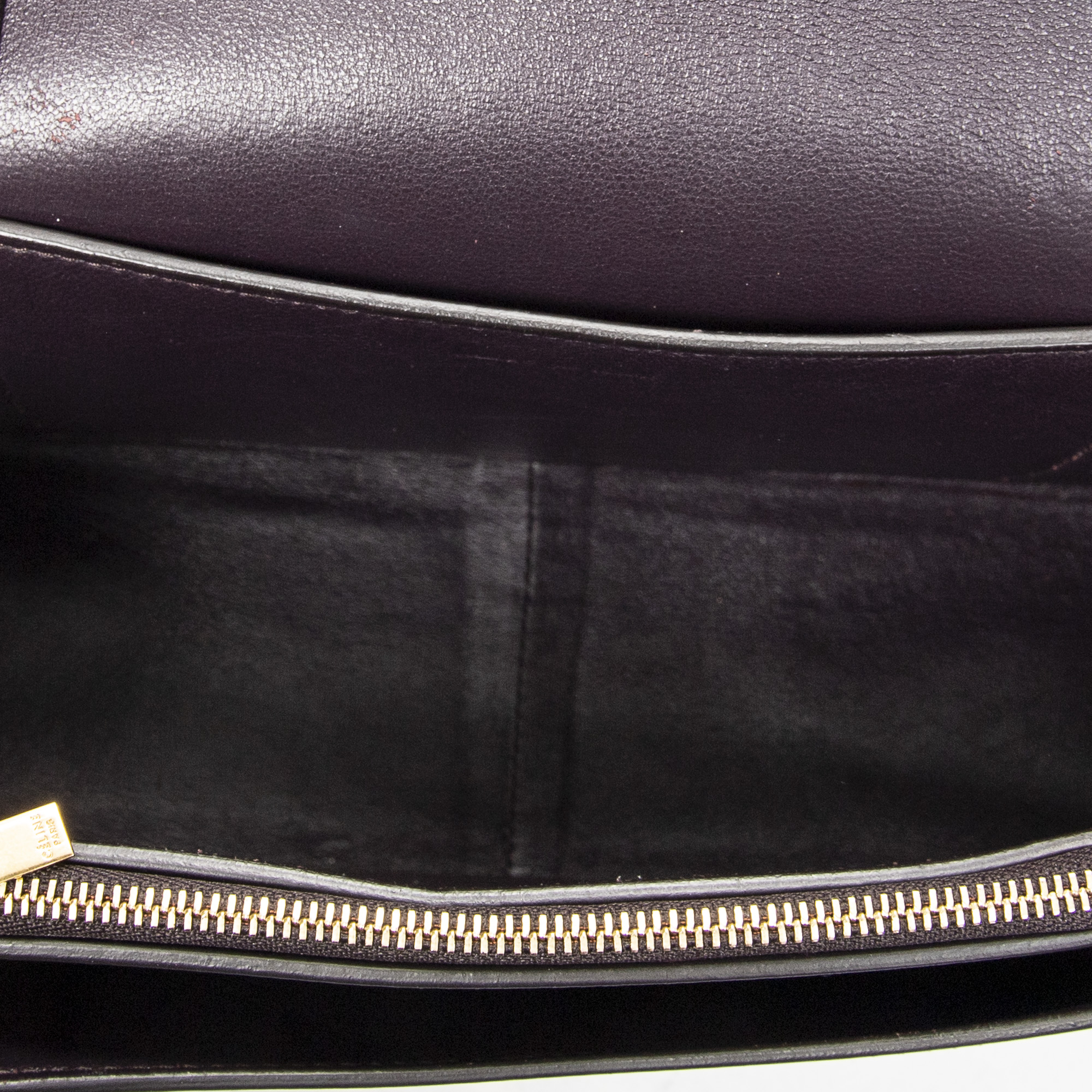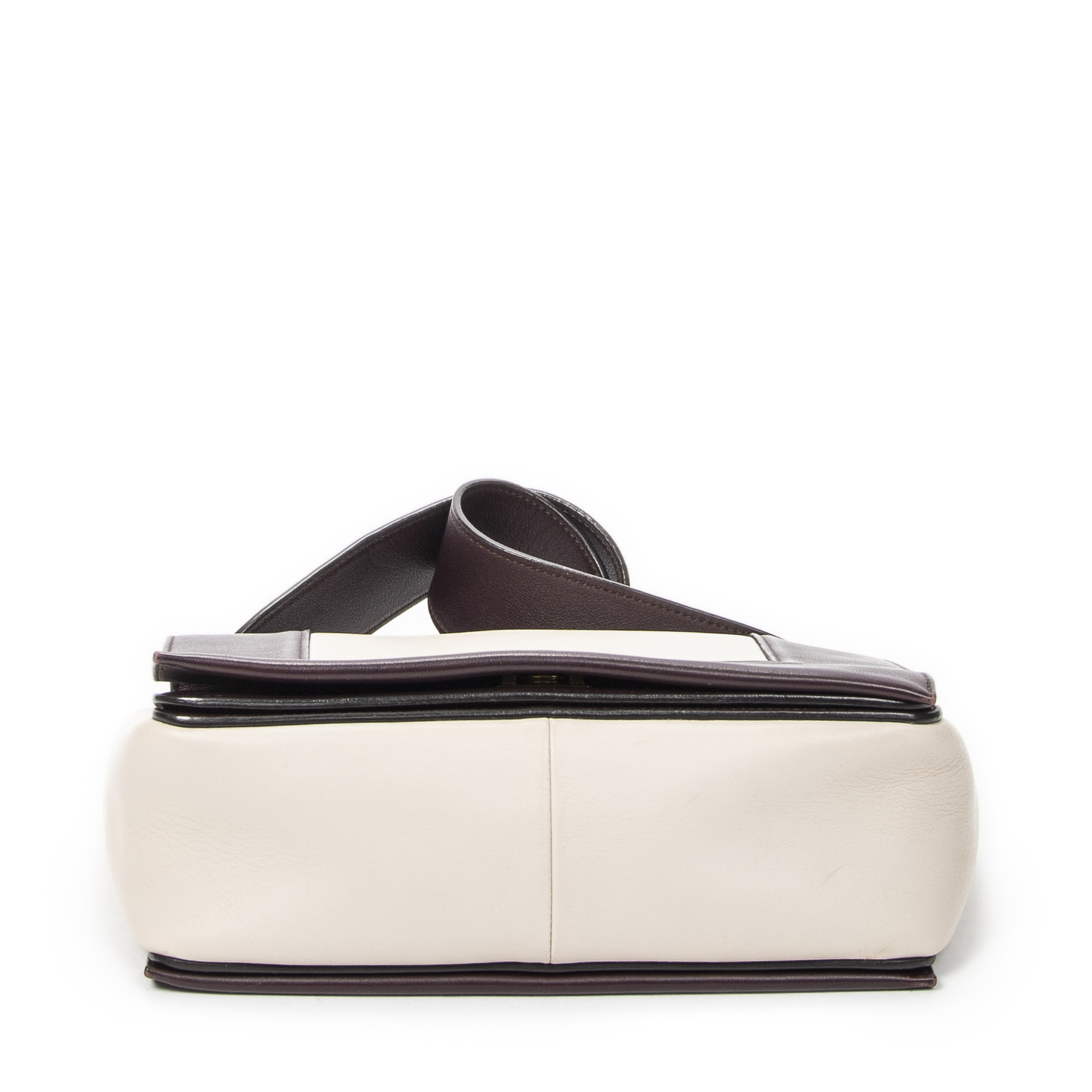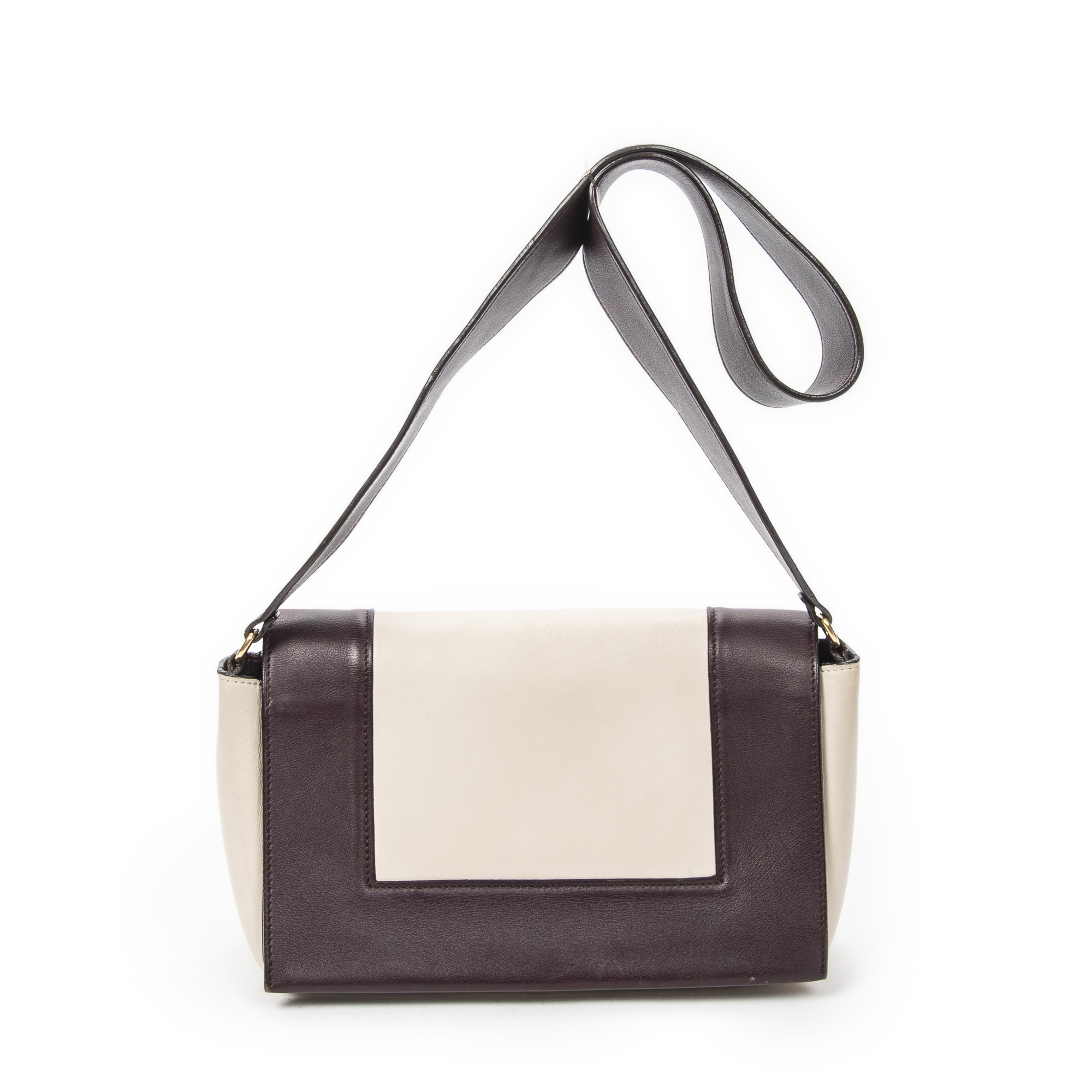 Celine Shoulder Bag Medium Frame Crossbody in Plum/Beige Calfskin Leather and Gold hardware. The product is in Excellent Condition (A).