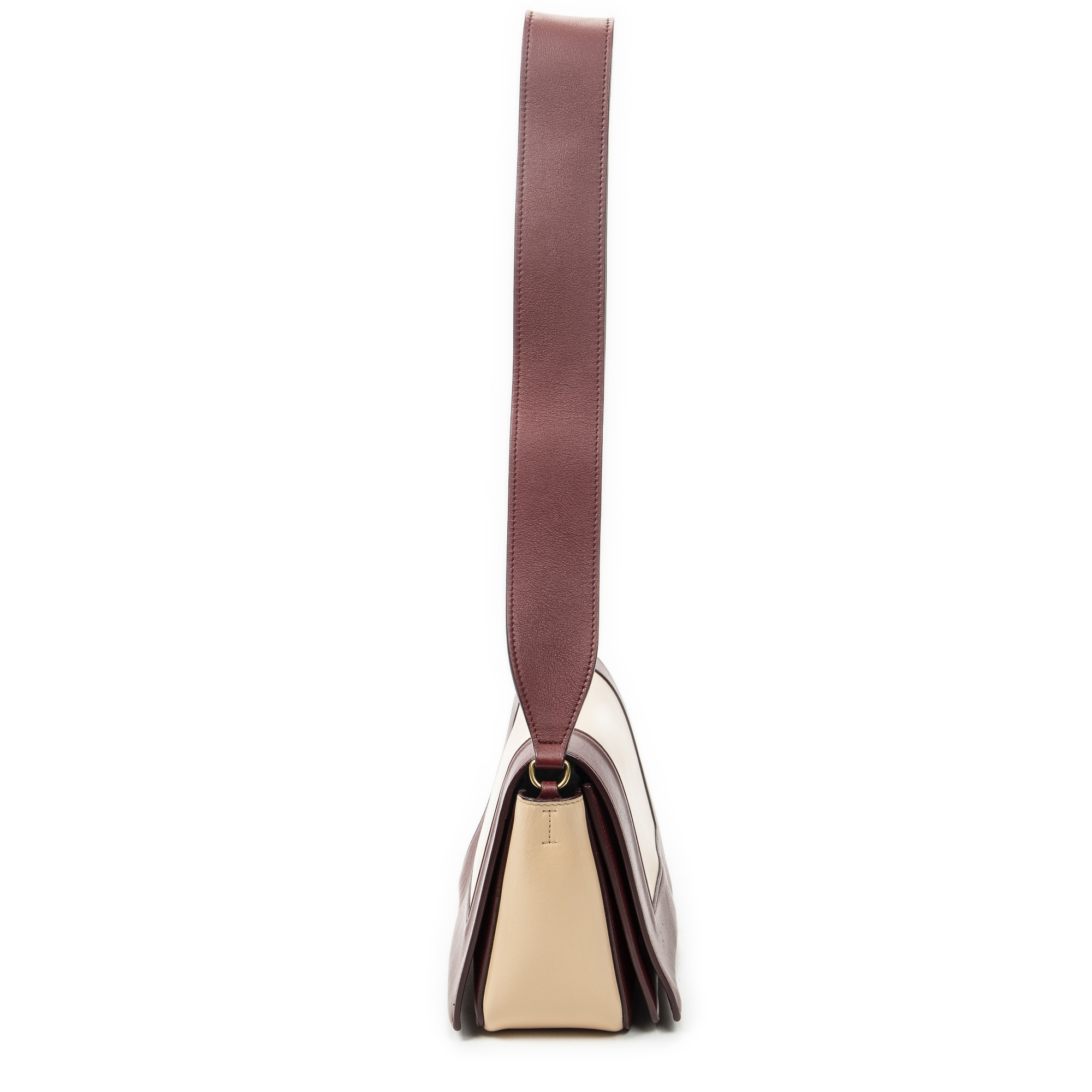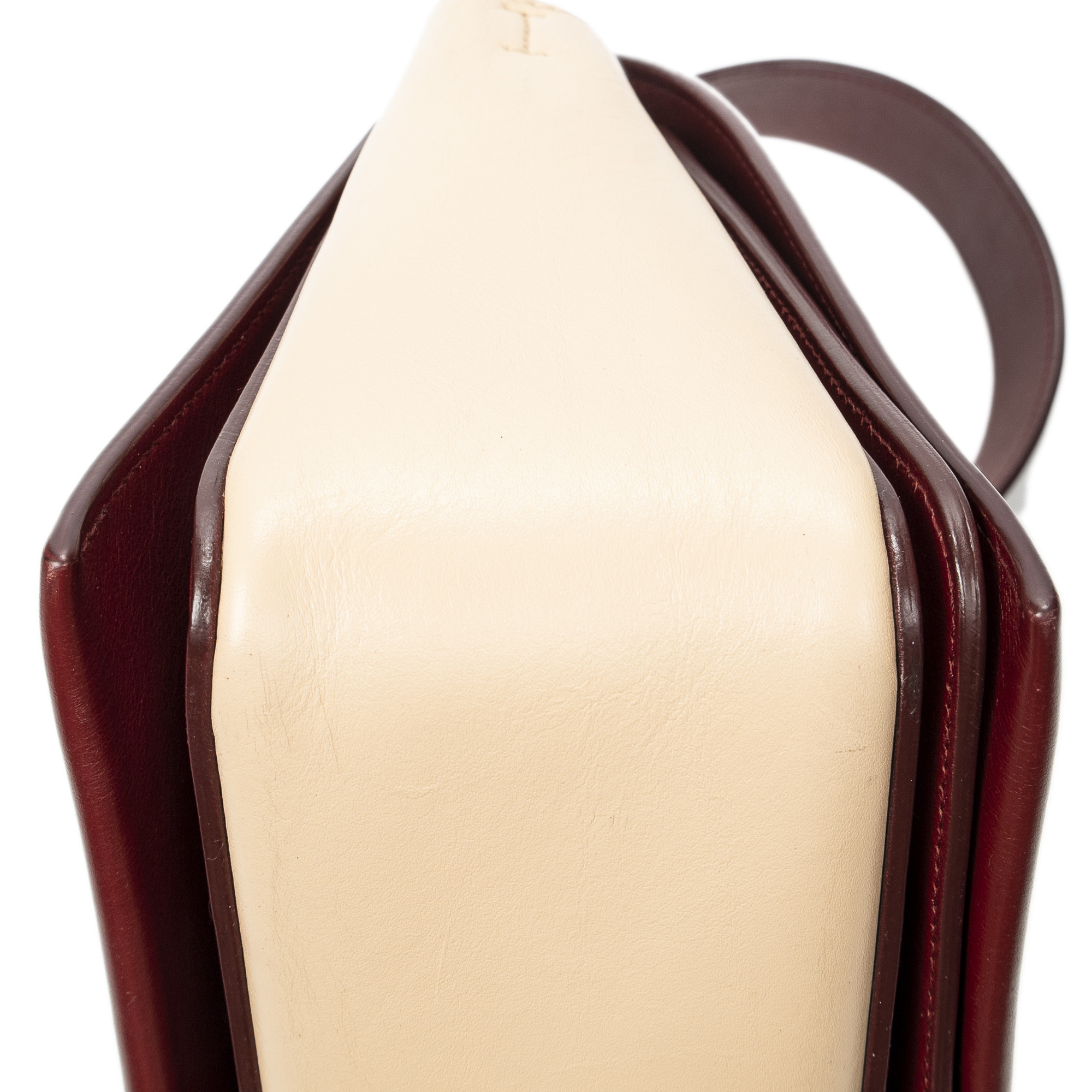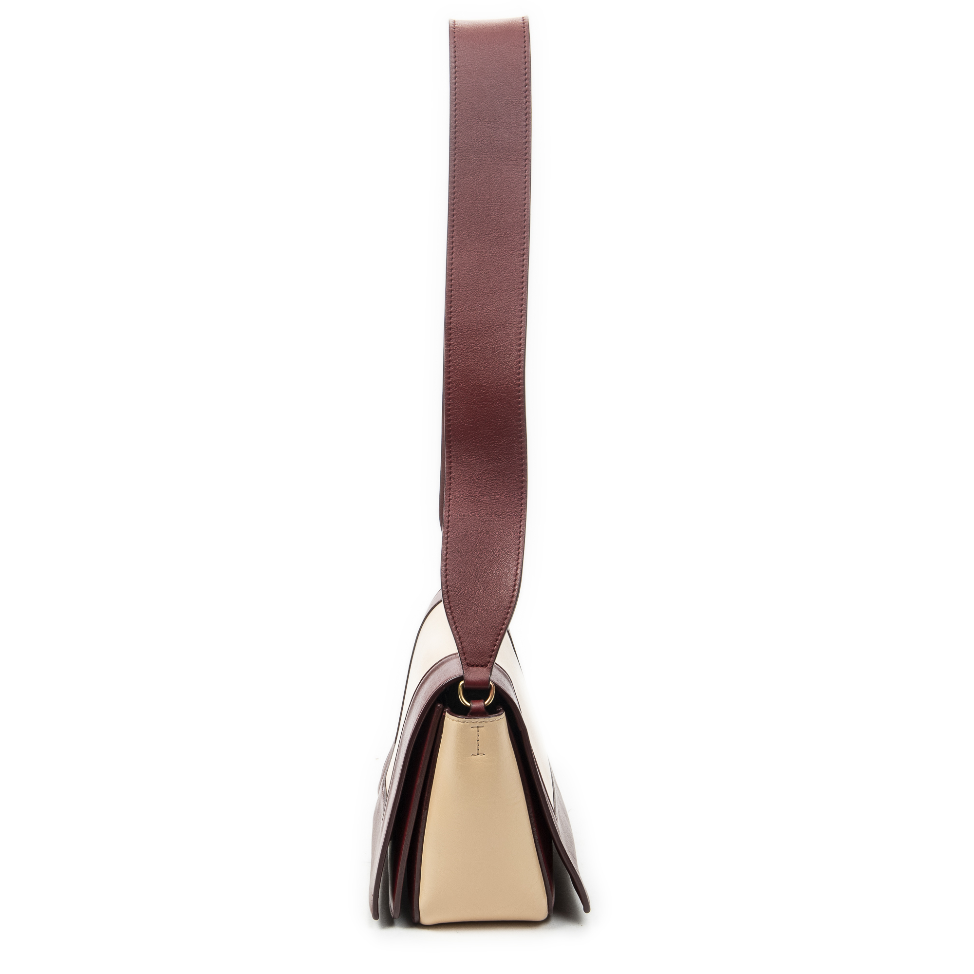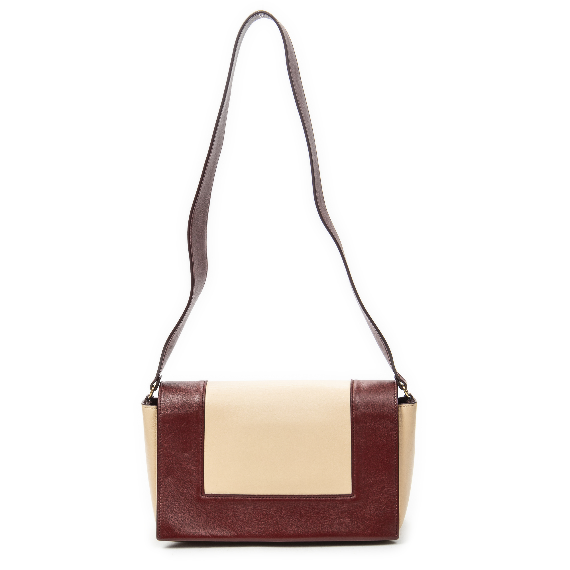 Celine Shoulder Bag Medium Frame Crossbody in Beige/Red Calfskin Leather and Gold hardware. The product is in Excellent Condition (A).