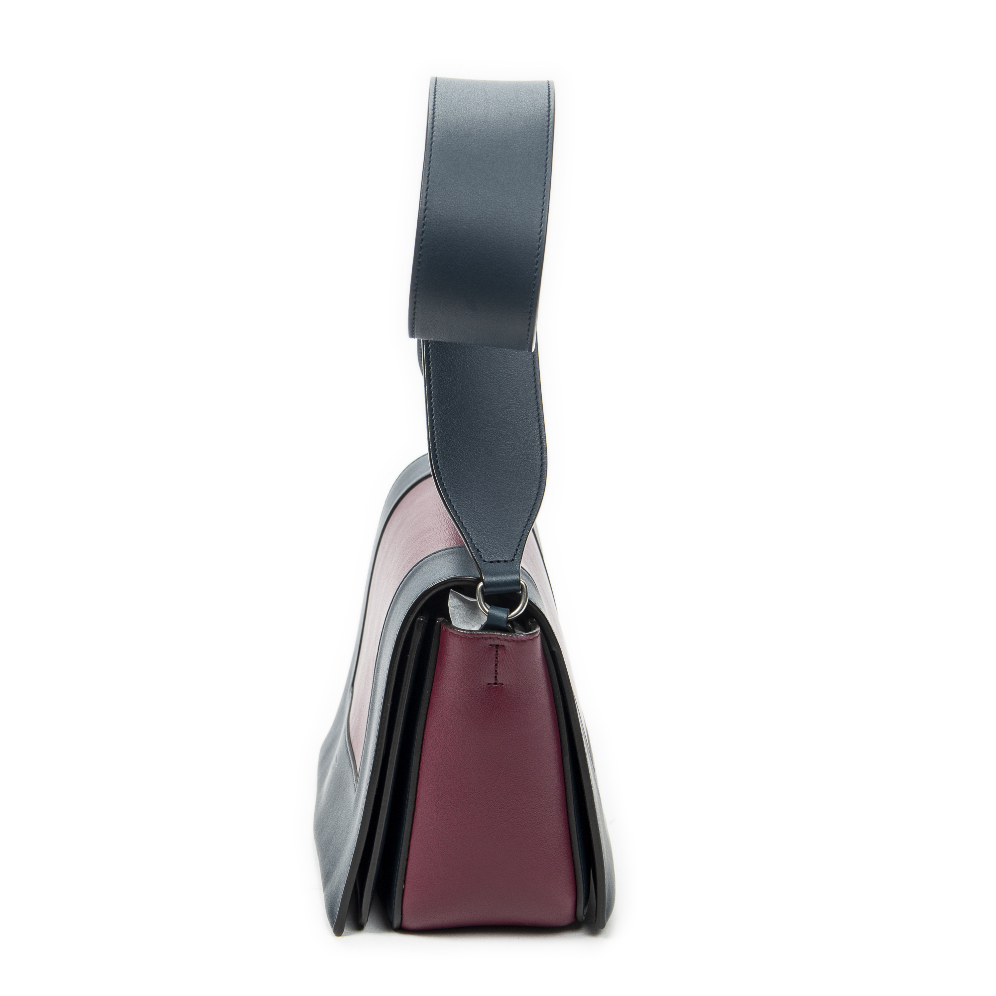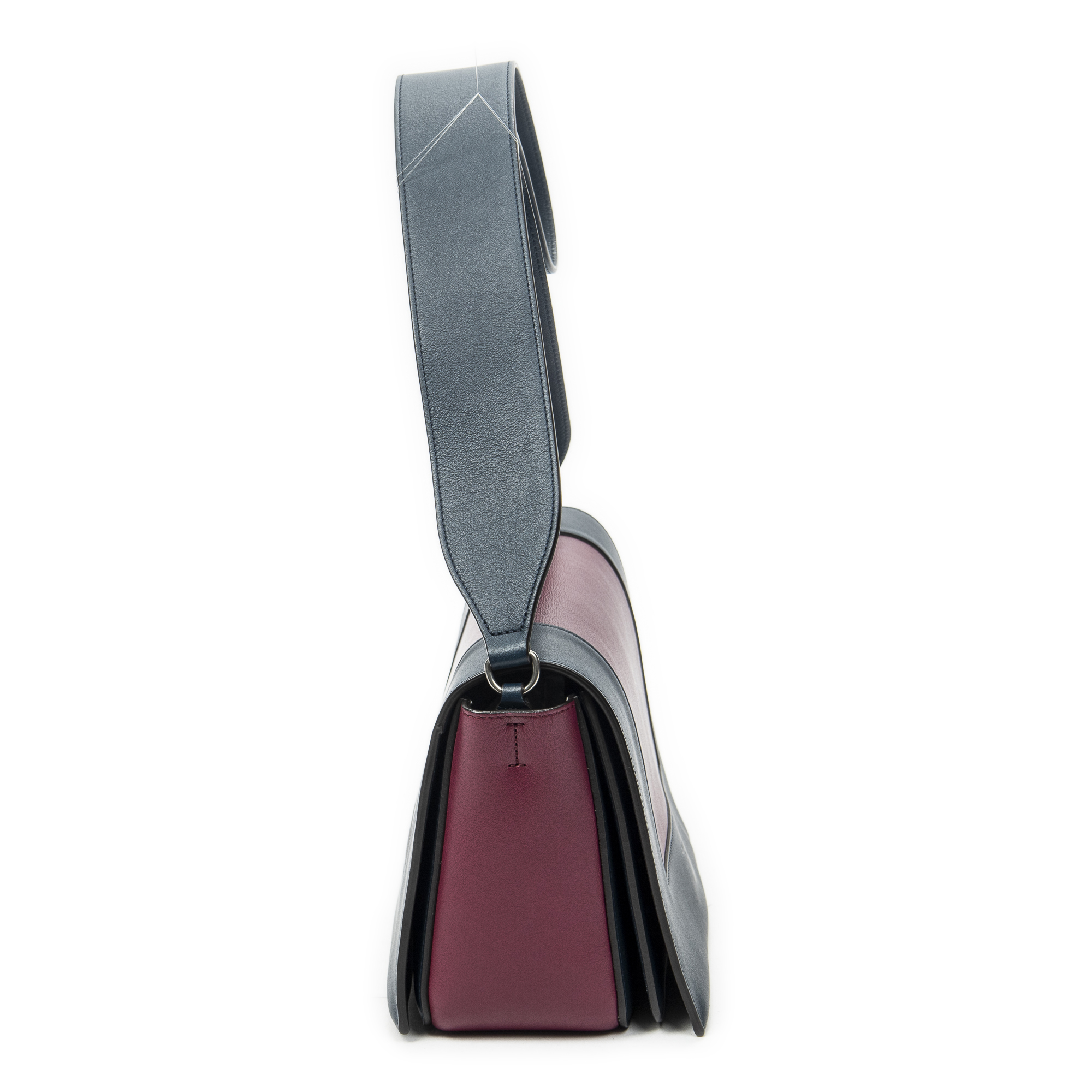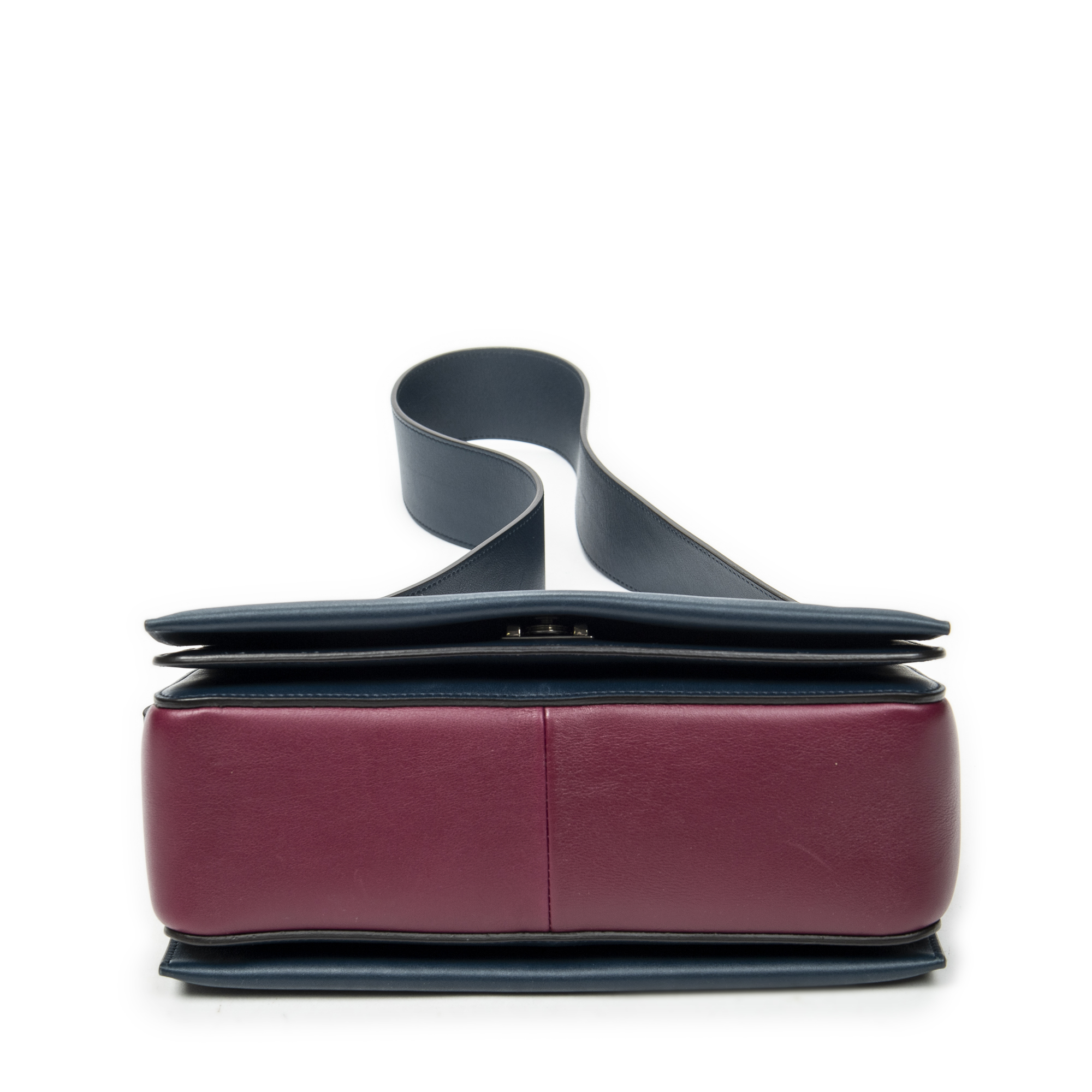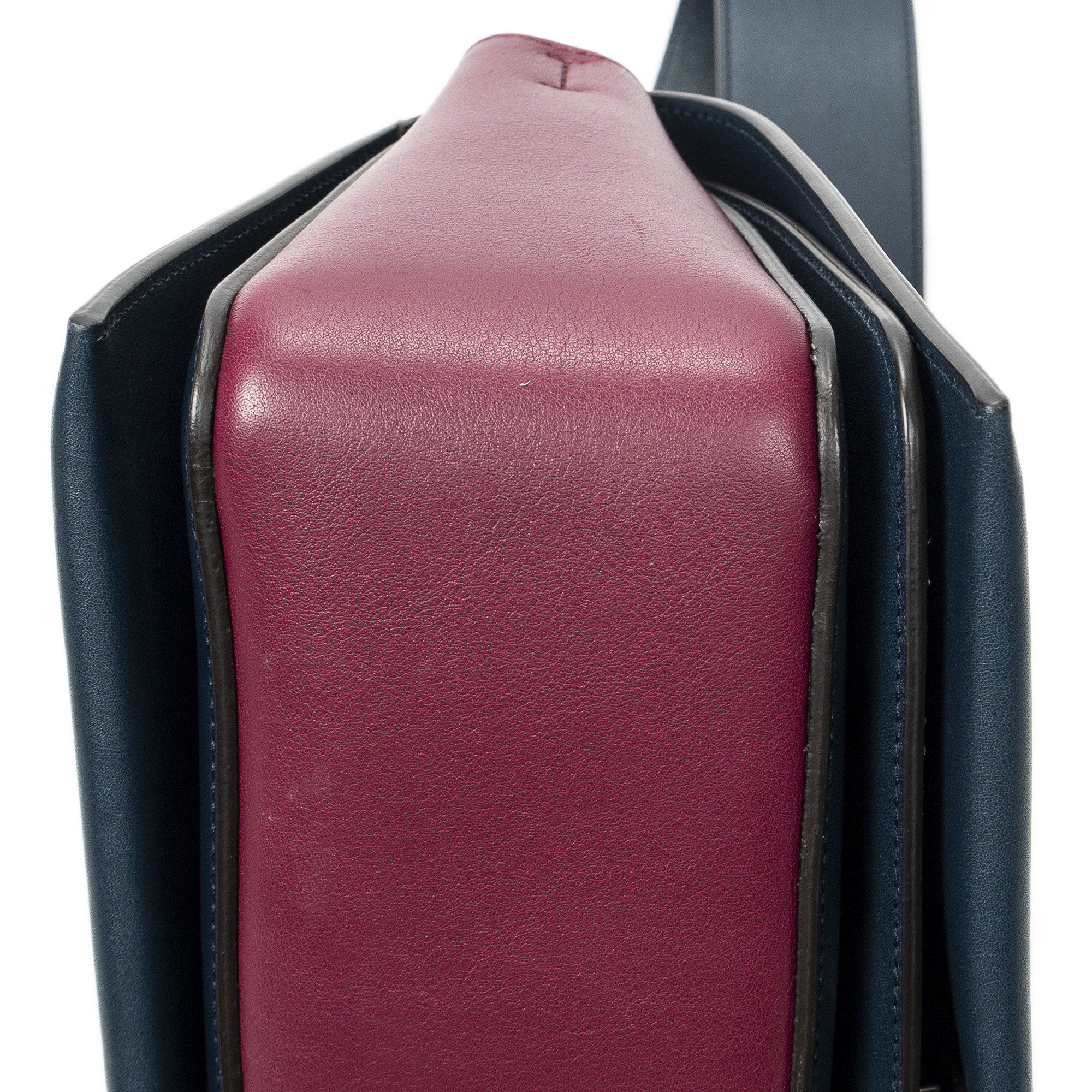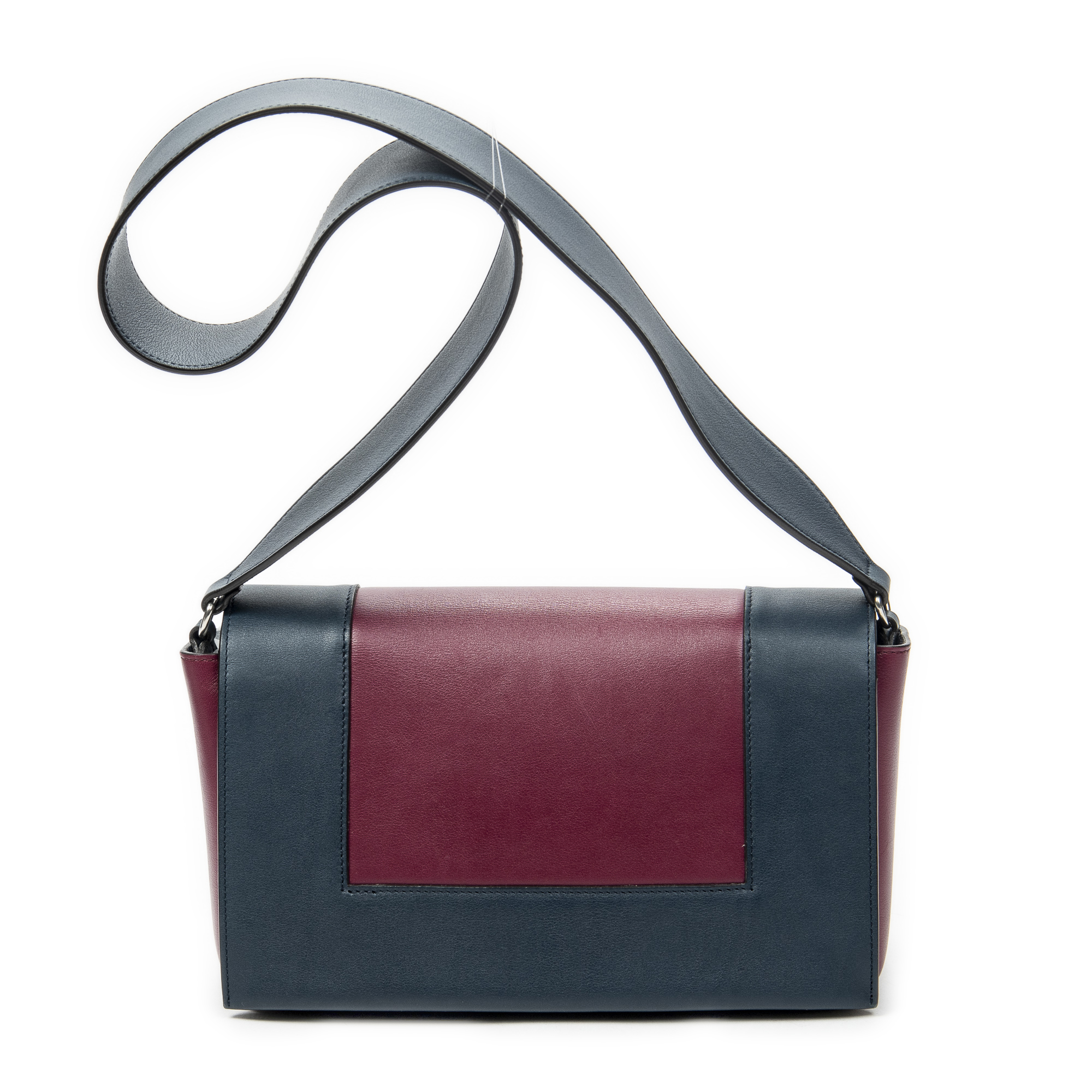 Celine Shoulder Bag Medium Frame Crossbody in Plum/Dark Blue Calfskin Leather and Silver hardware. The product is in Excellent Condition (A).