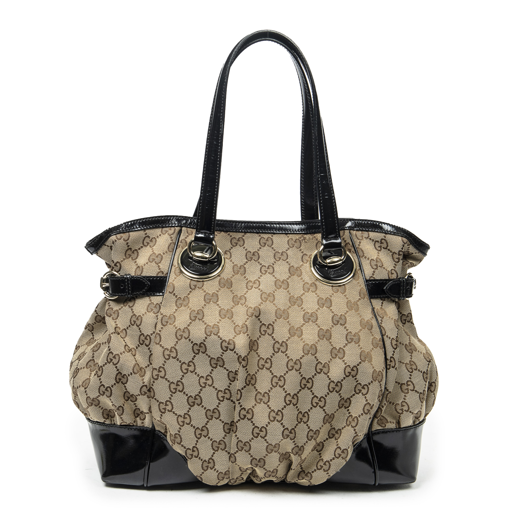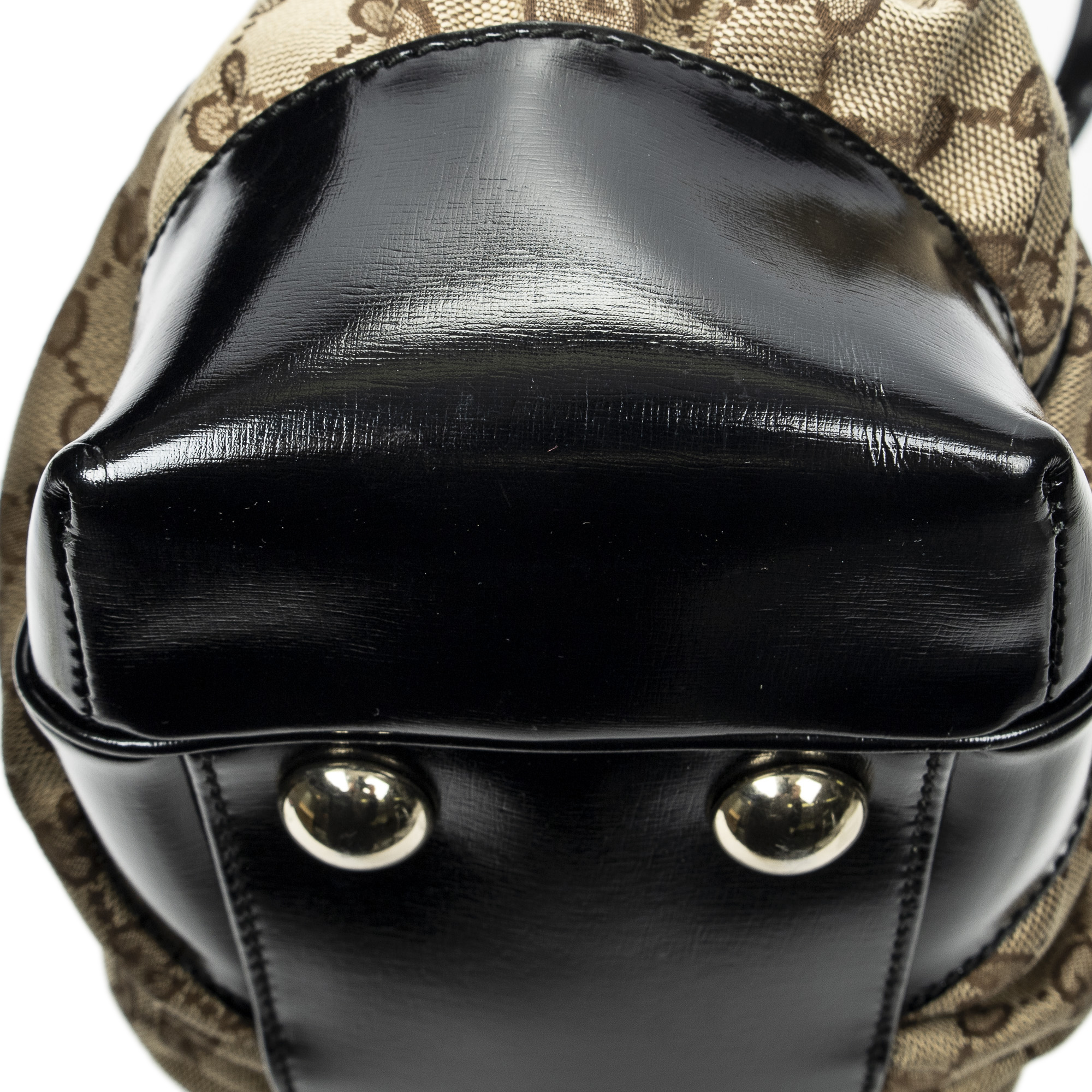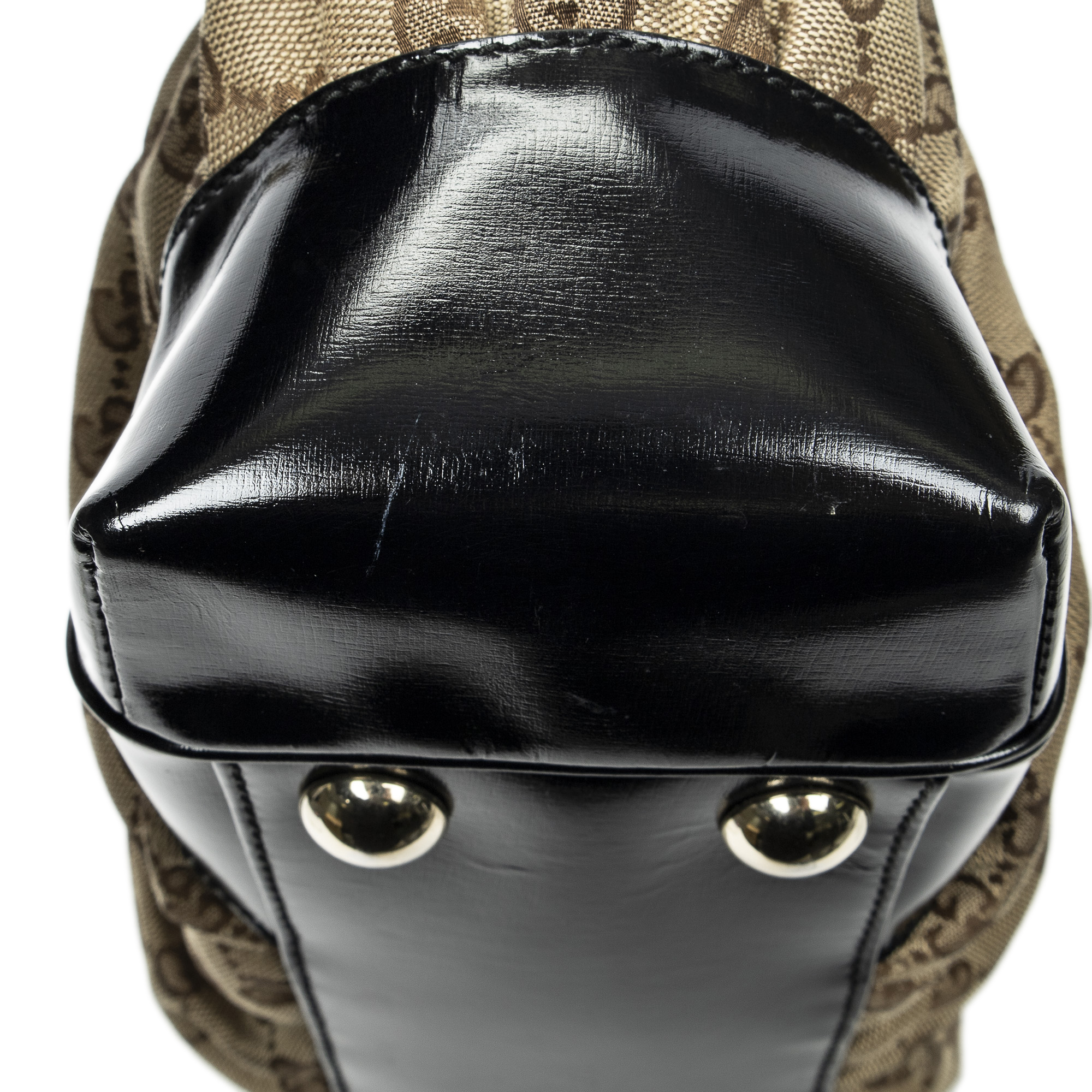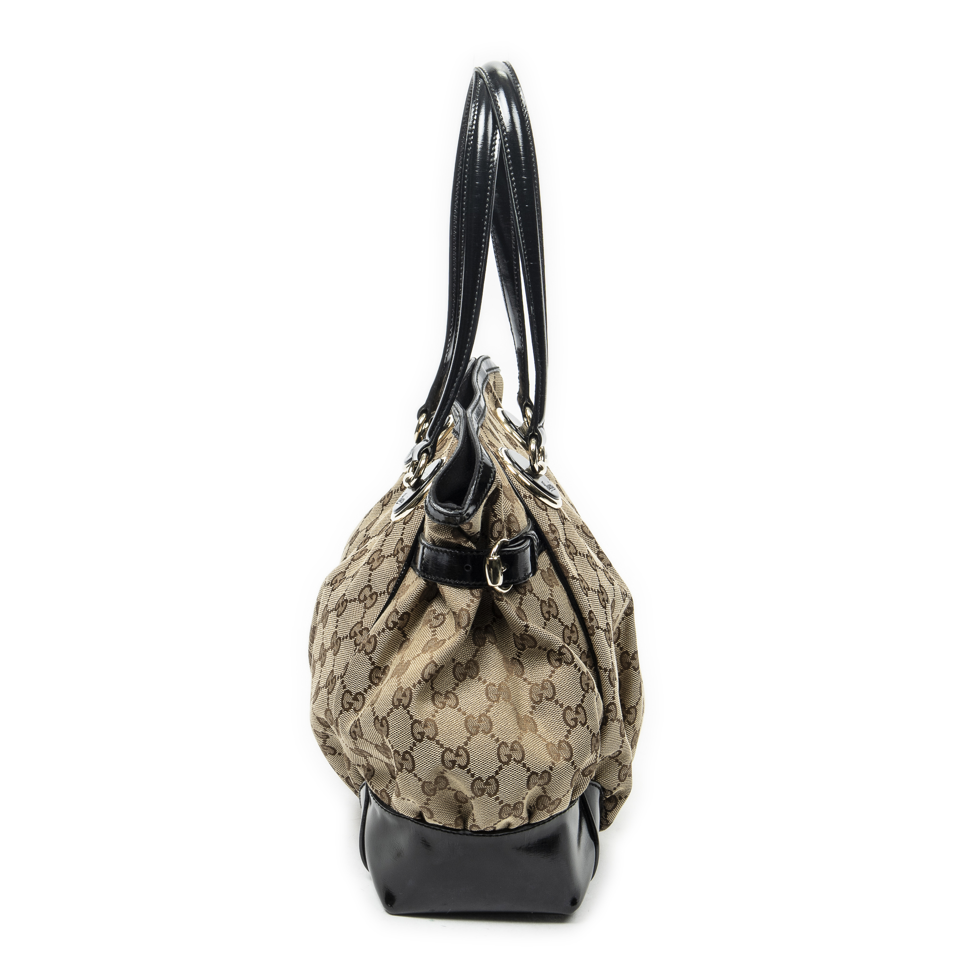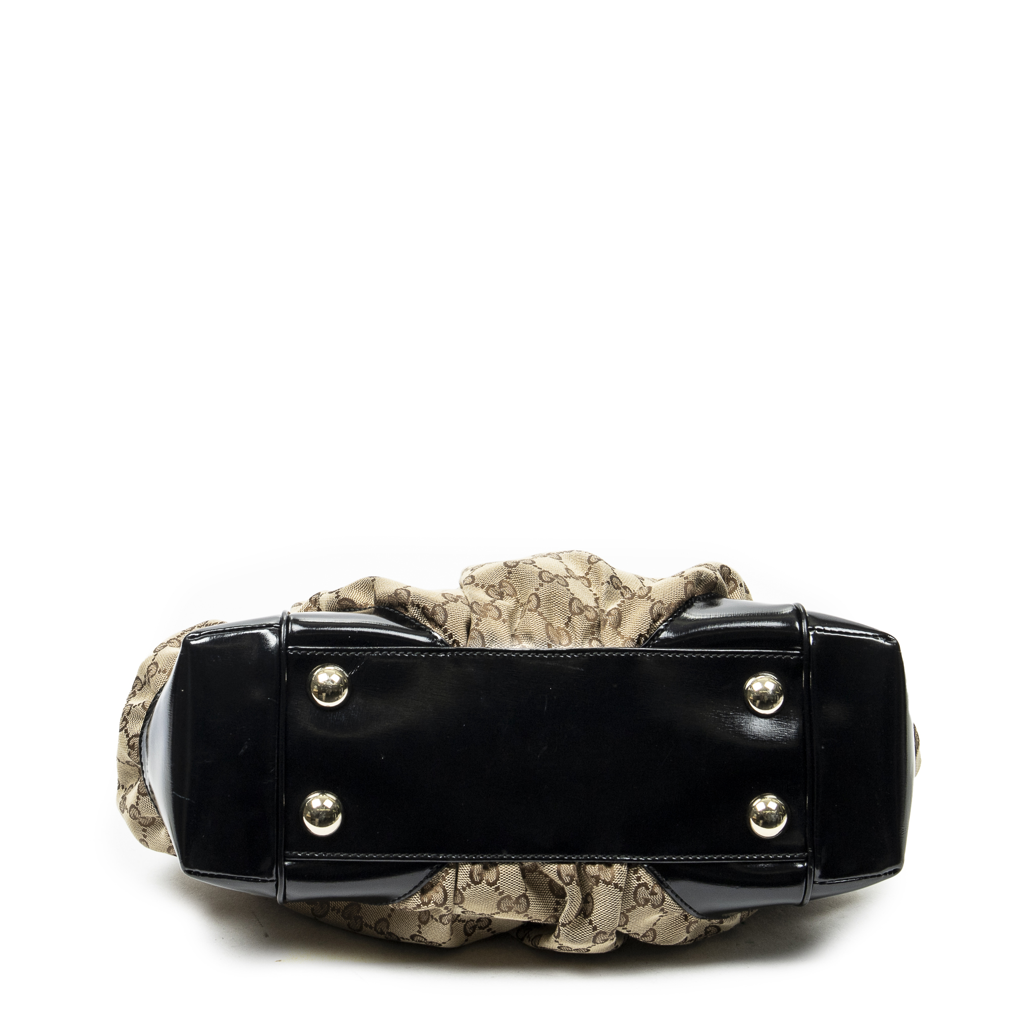 Gucci Shoulder Bag Medium Full Moon Tote in Beige/Black Monogrammed Canvas and Gold hardware. The product is in Perfect Condition (AA).