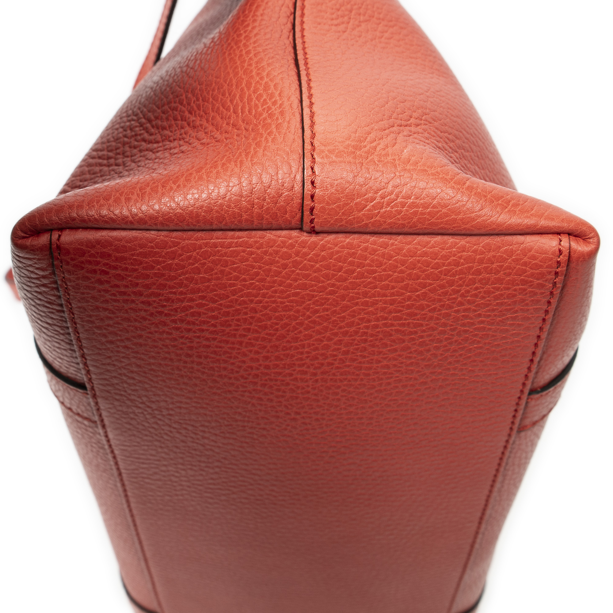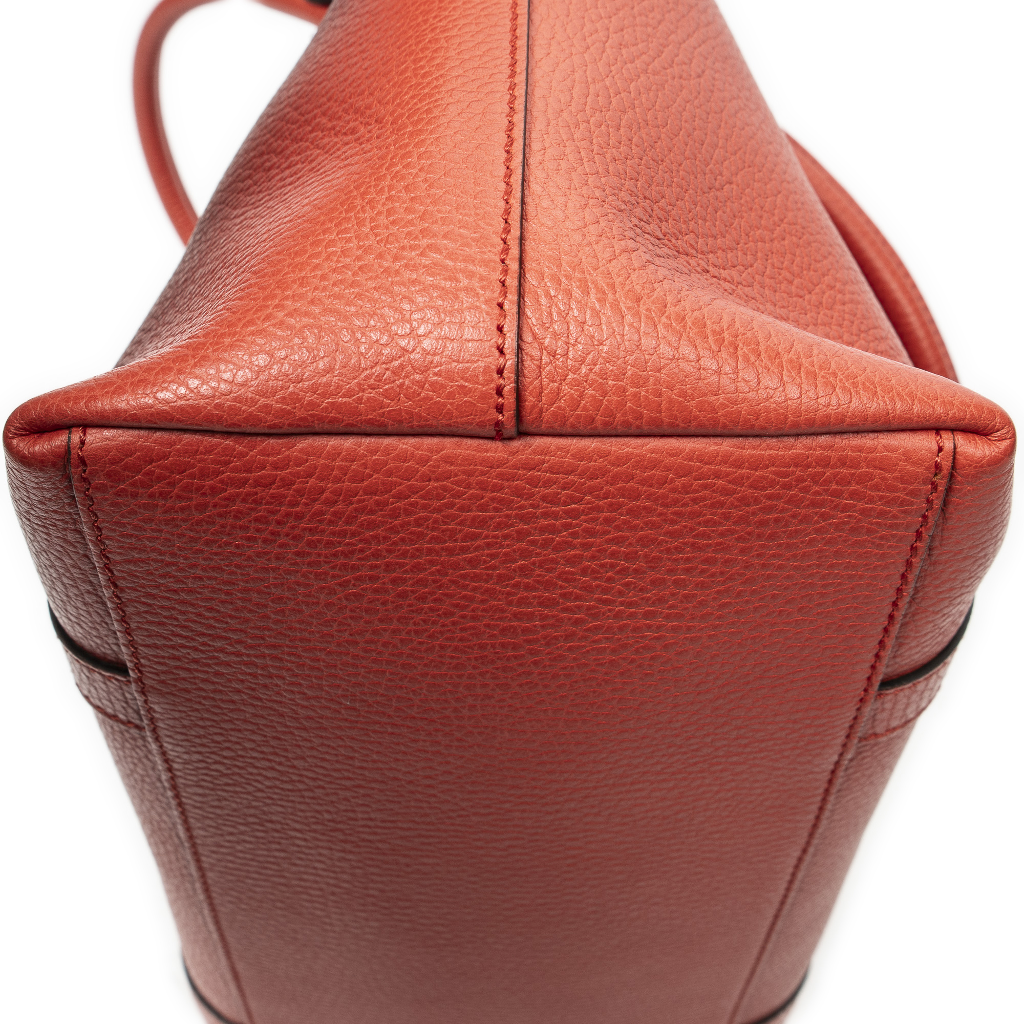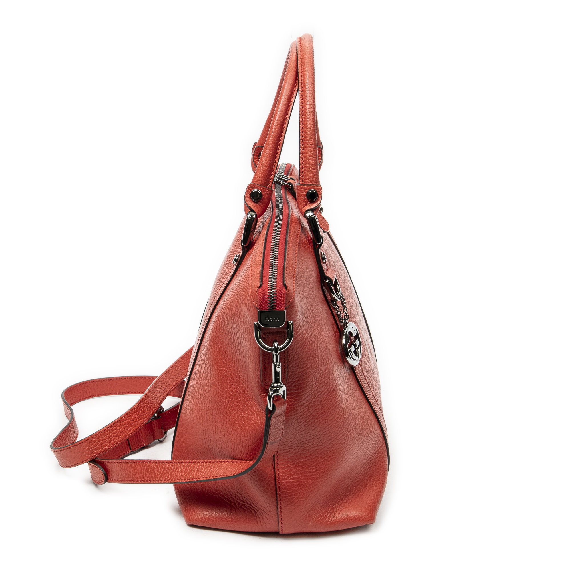 Gucci Shoulder Bag Medium GG Charm Top Handle in Red Grained Calfskin Leather and Ruthenium hardware. The product is in Perfect Condition (AA).