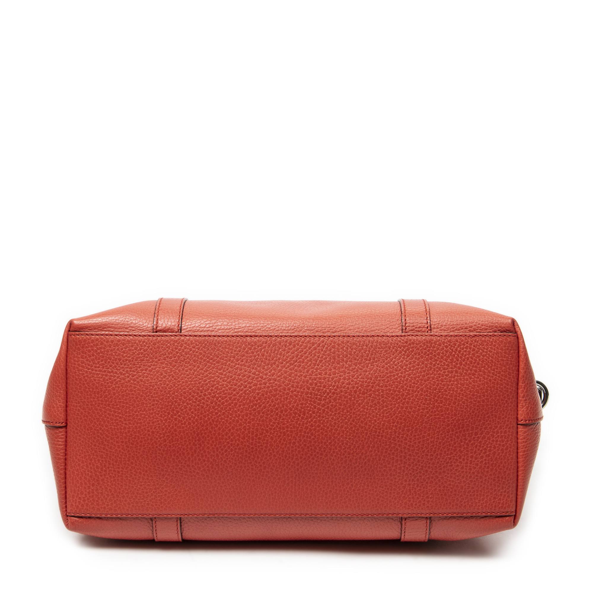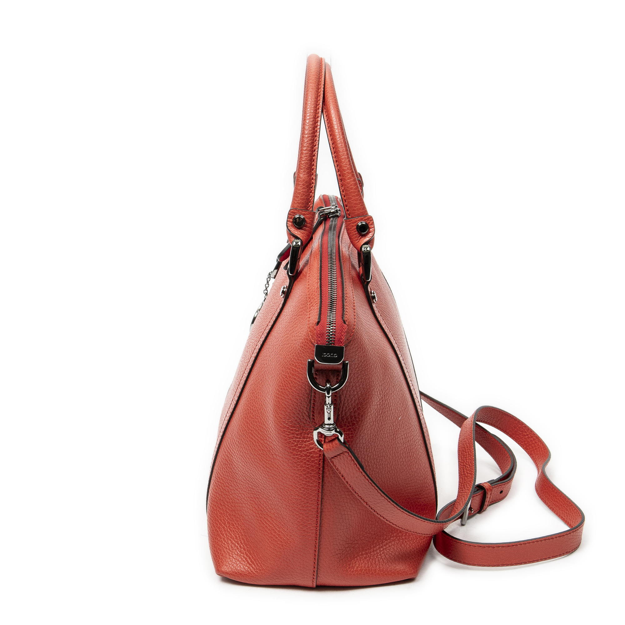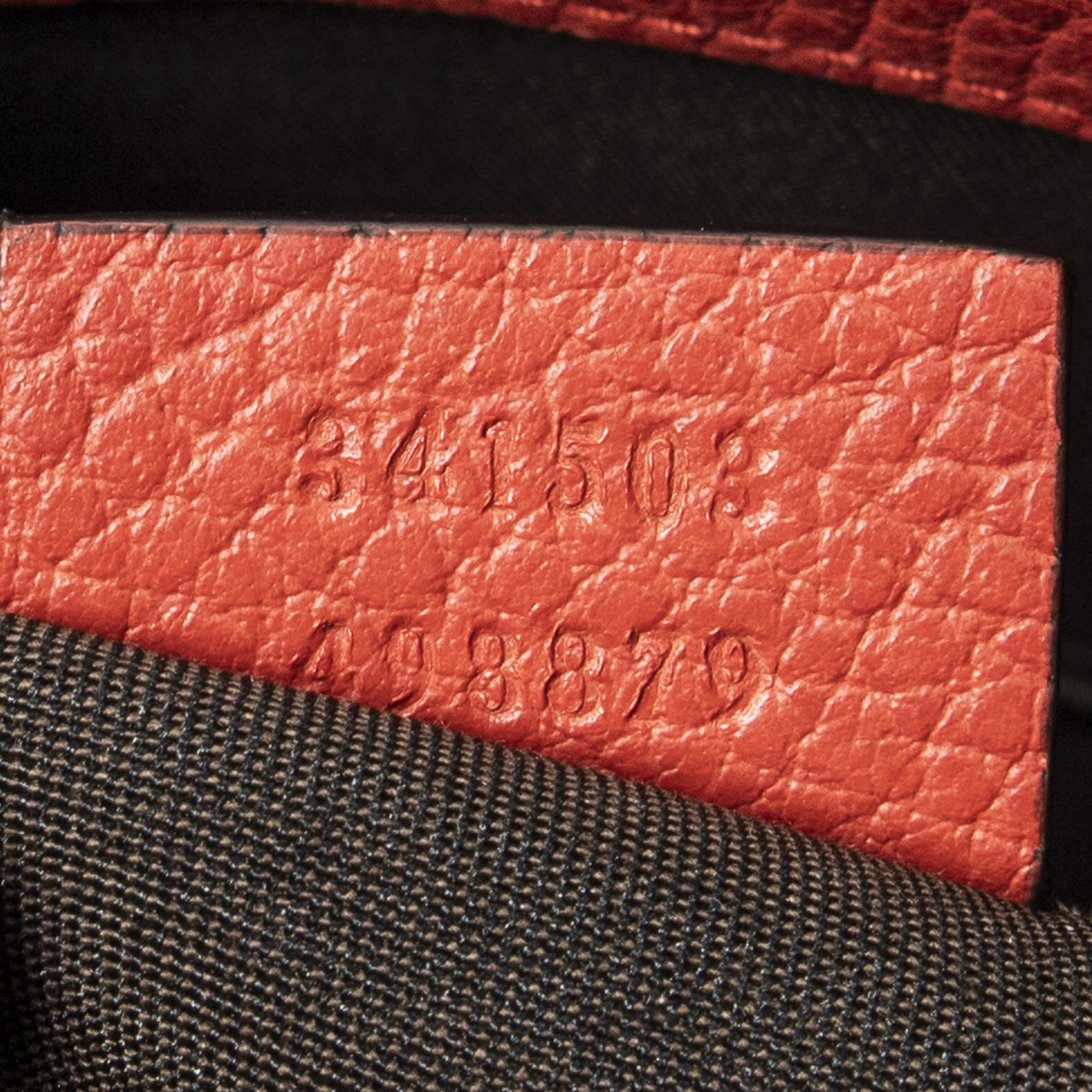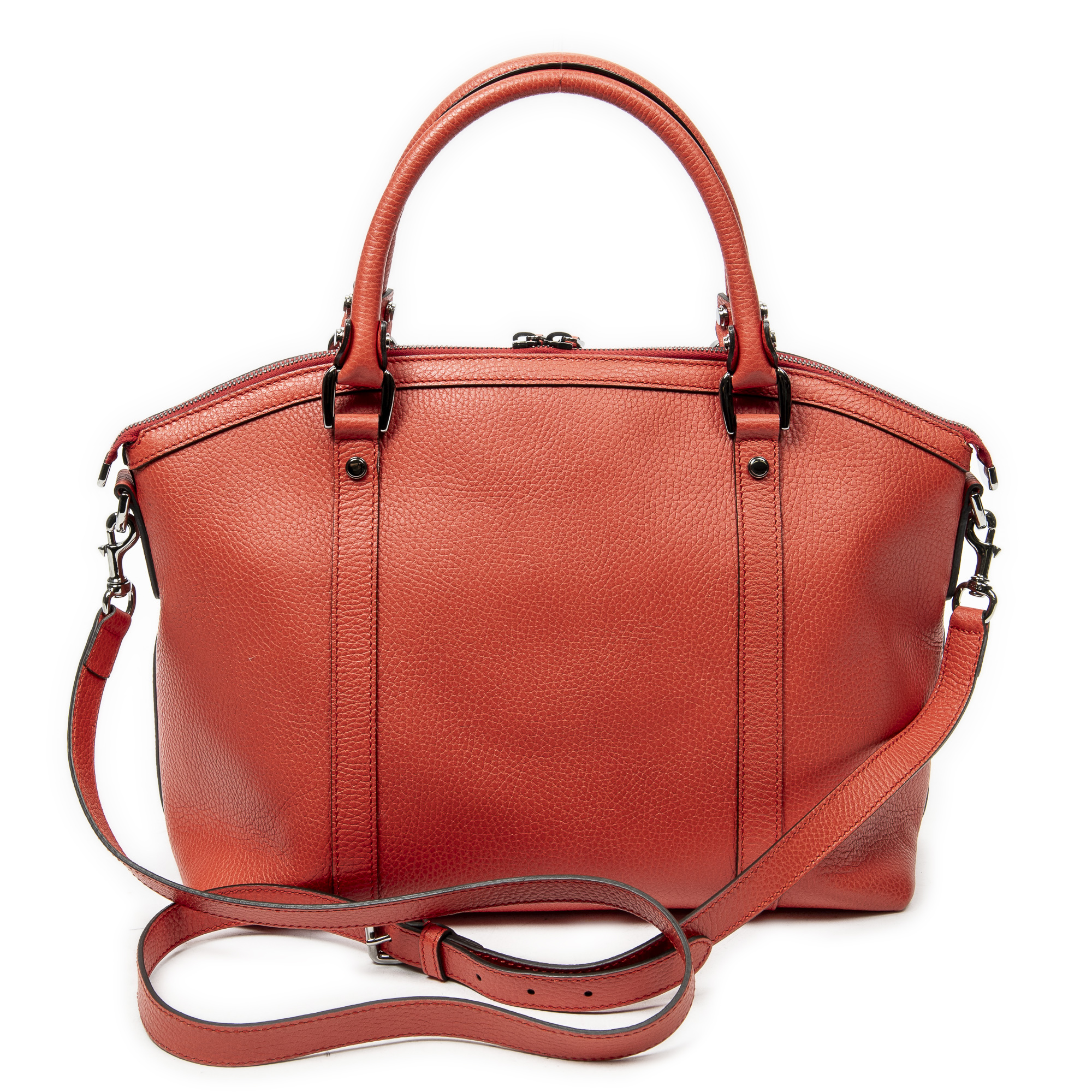 Gucci Shoulder Bag Medium GG Charm Top Handle in Red Grained Calfskin Leather and Ruthenium hardware. The product is in Perfect Condition (AA).