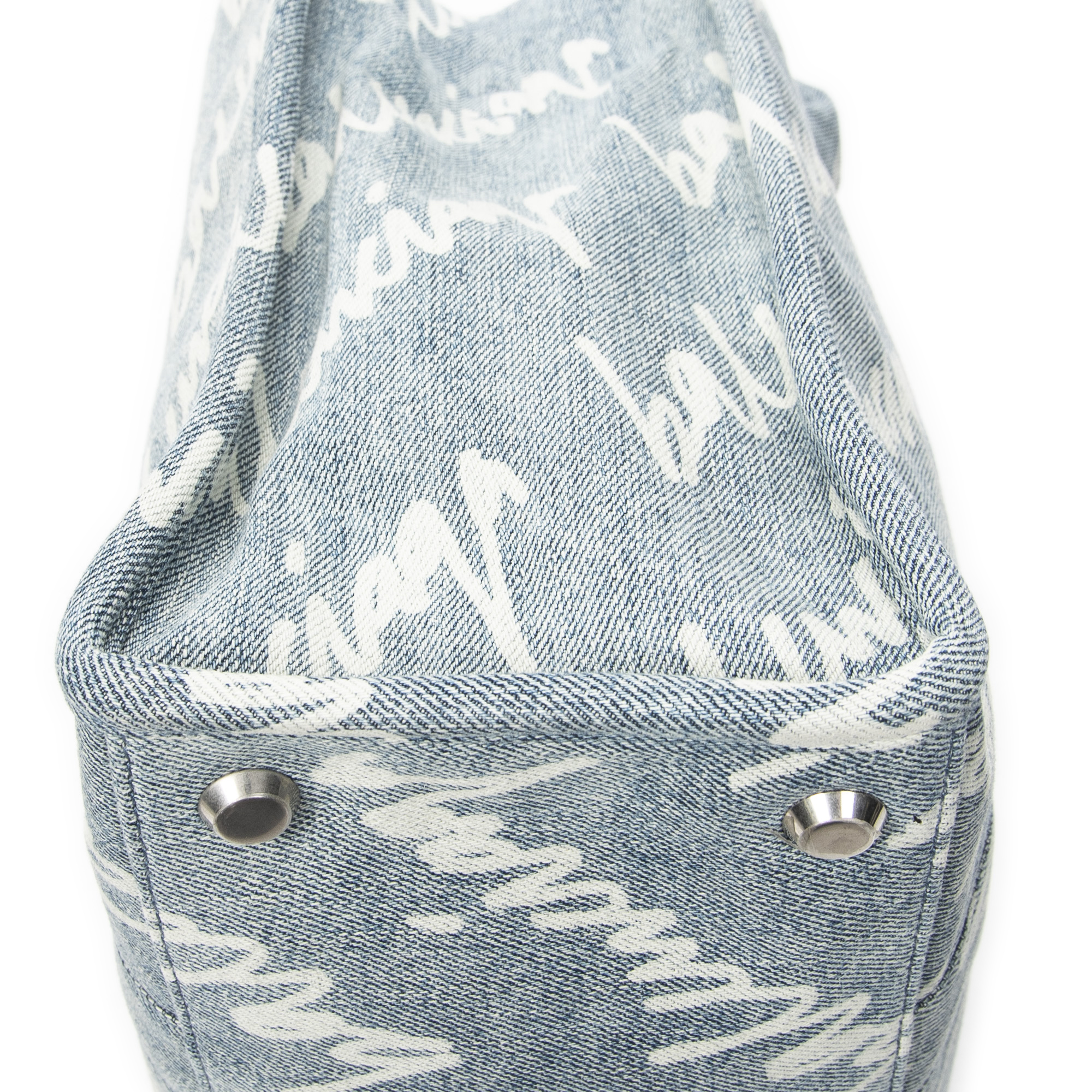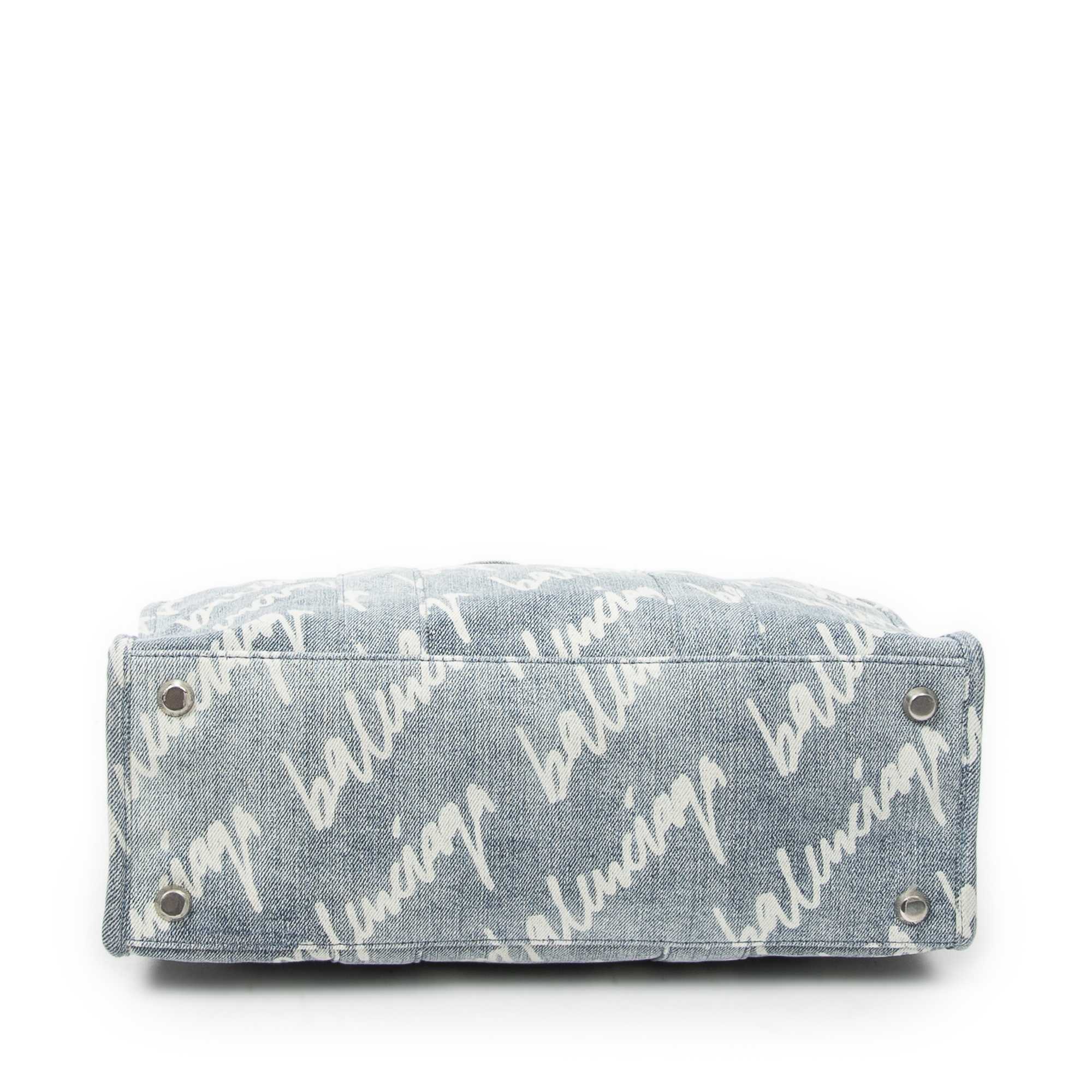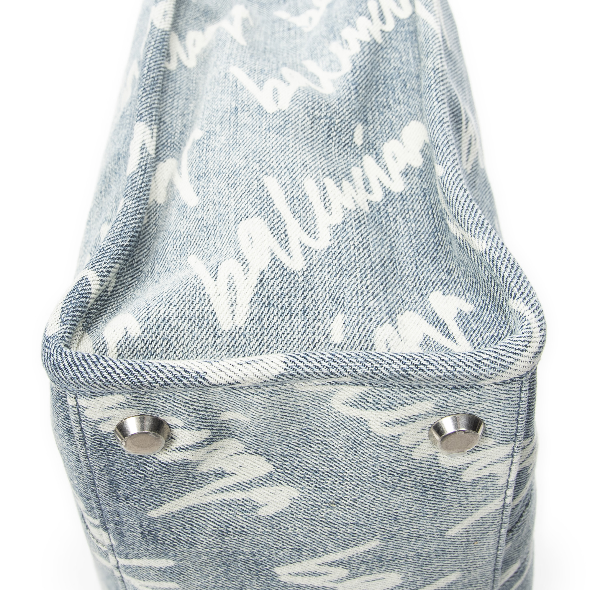 Balenciaga Shoulder Bag Medium Hardware Tote in Light Blue Scribble Print Denim Canvas and Silver hardware. The product is in Excellent Condition (A).