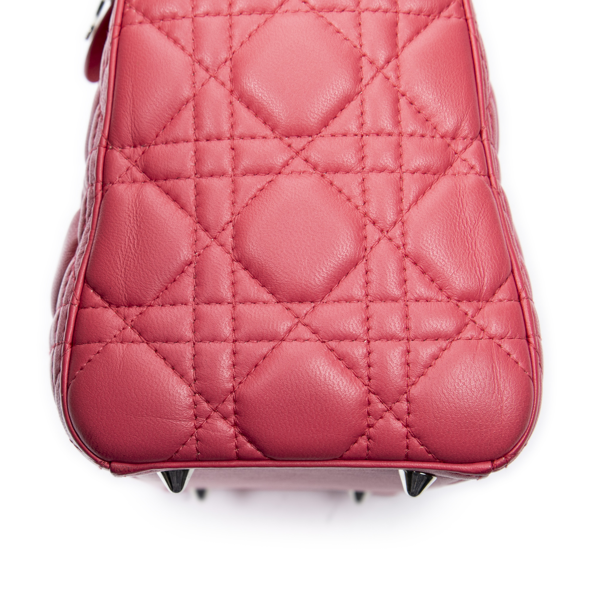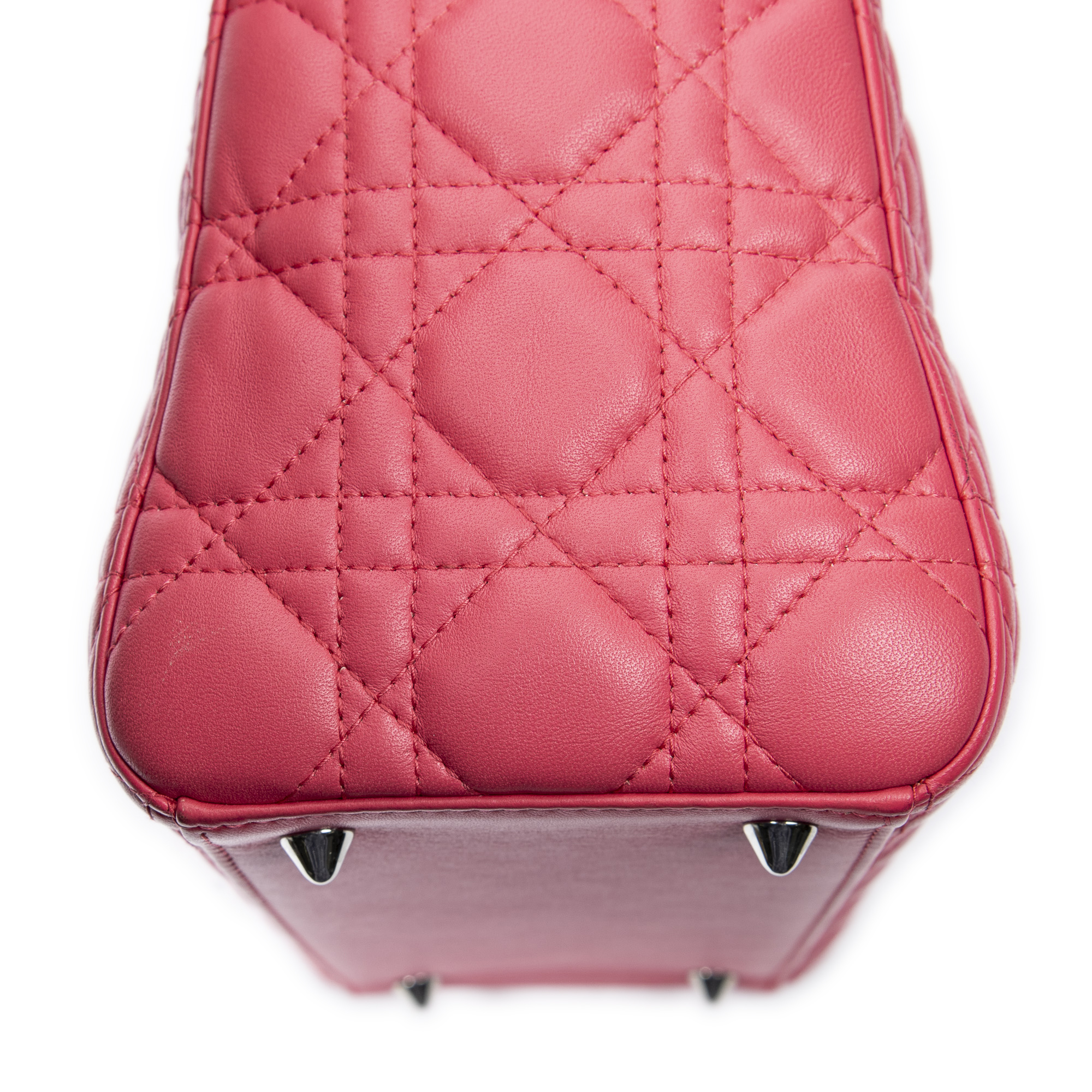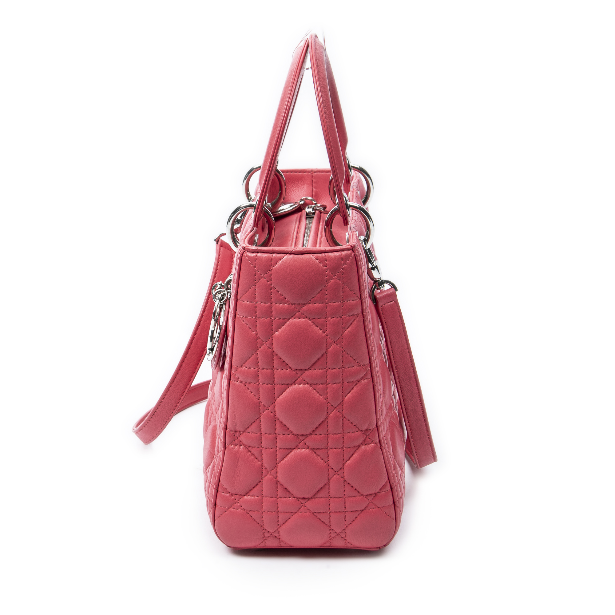 Dior Shoulder Bag Medium Lady Dior Zip in Pink Cannage Lambskin Leather and Silver hardware. The product is in Excellent Condition (A).