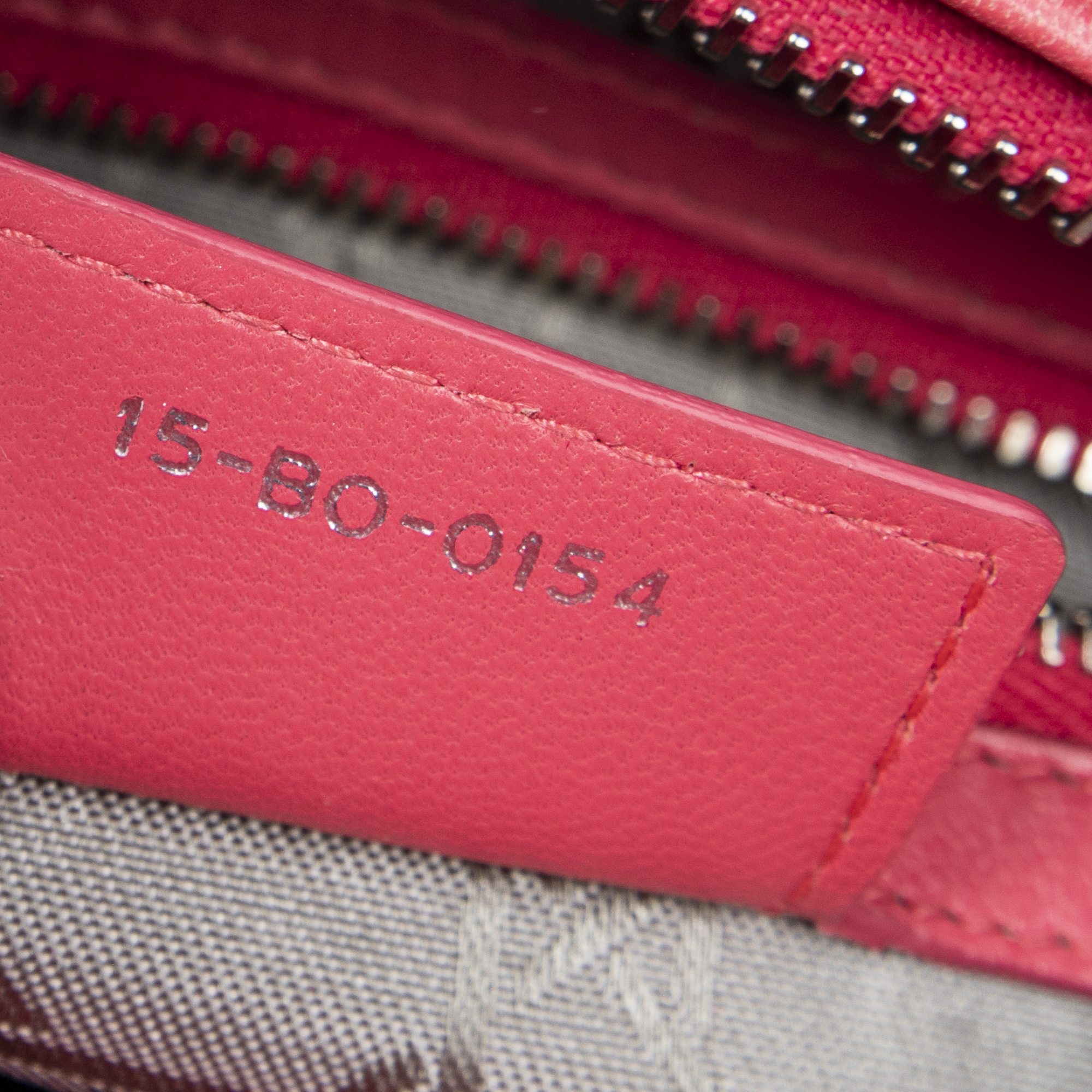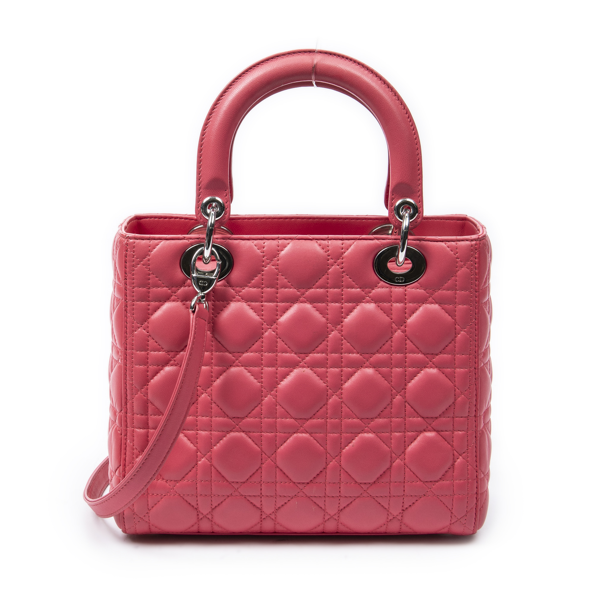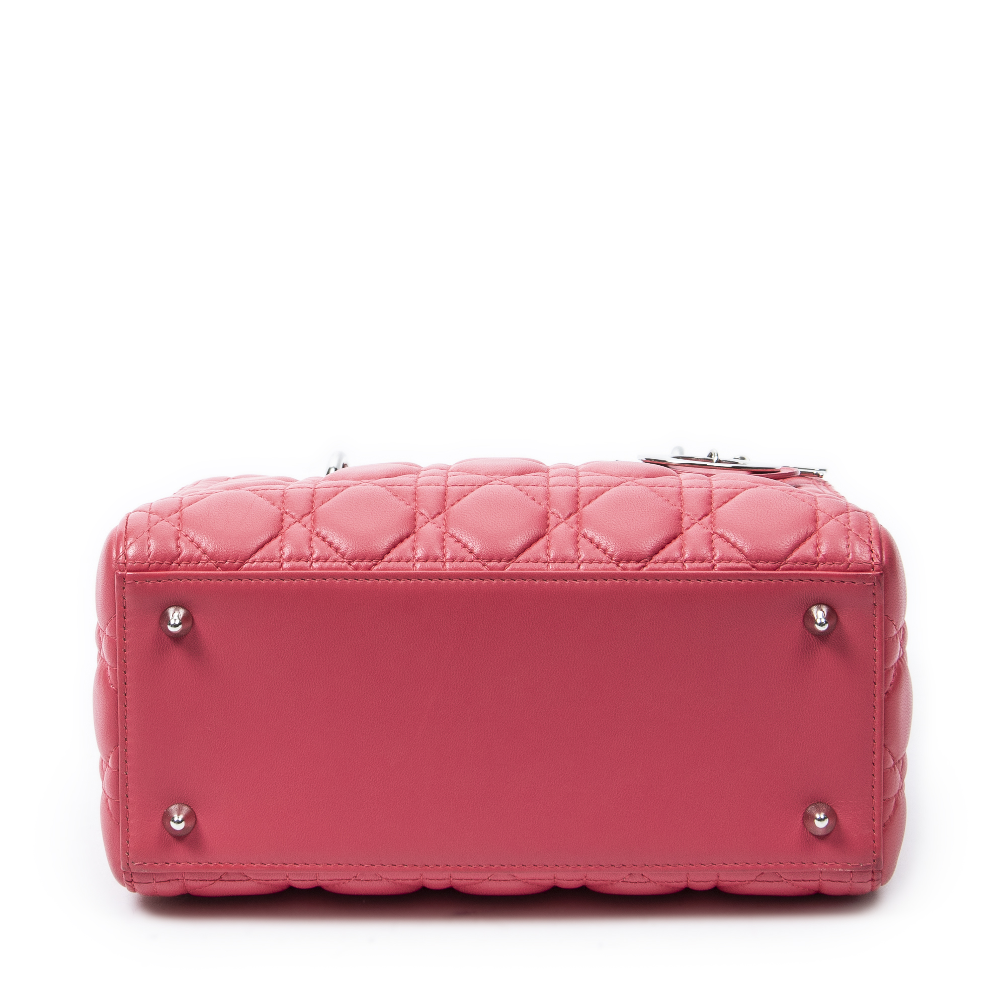 Dior Shoulder Bag Medium Lady Dior Zip in Pink Cannage Lambskin Leather and Silver hardware. The product is in Excellent Condition (A).