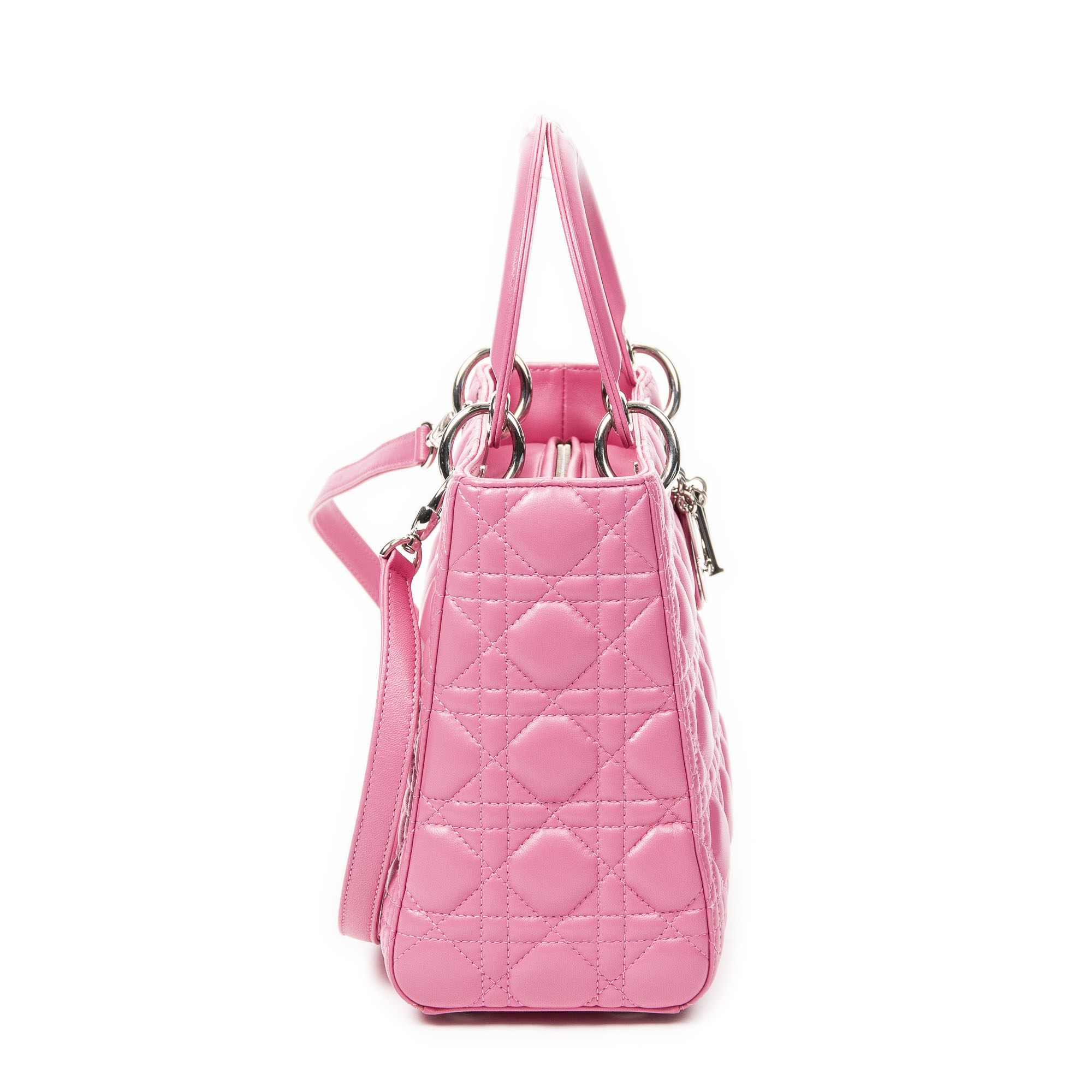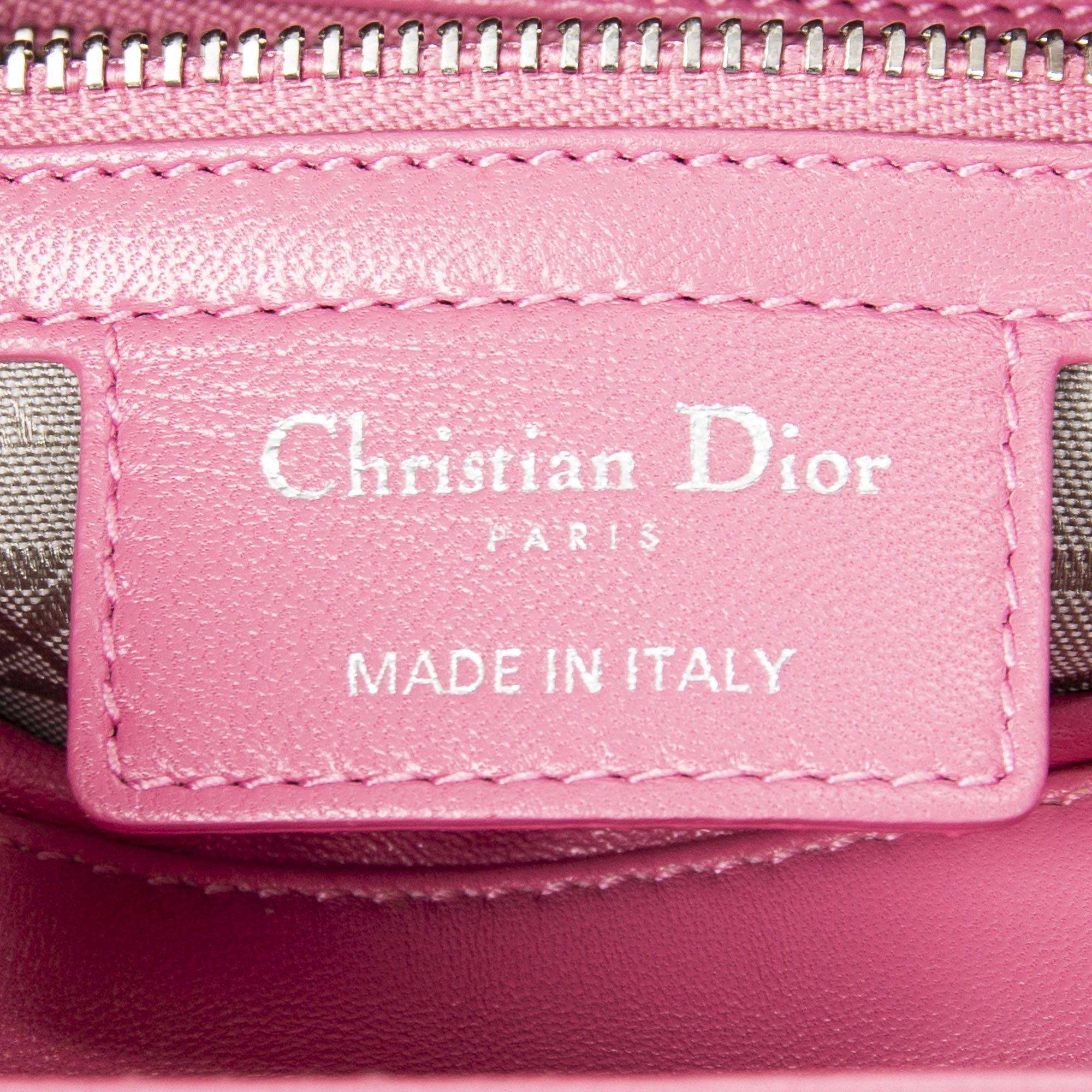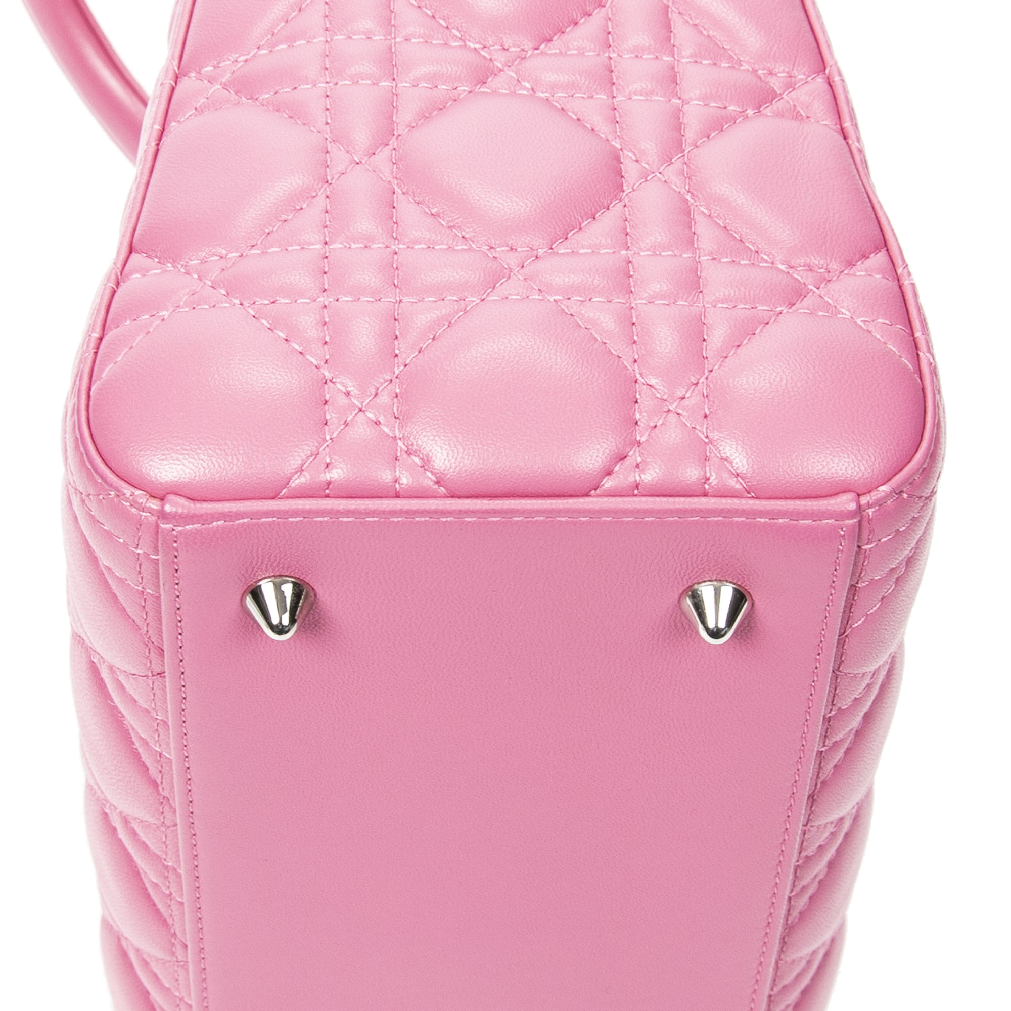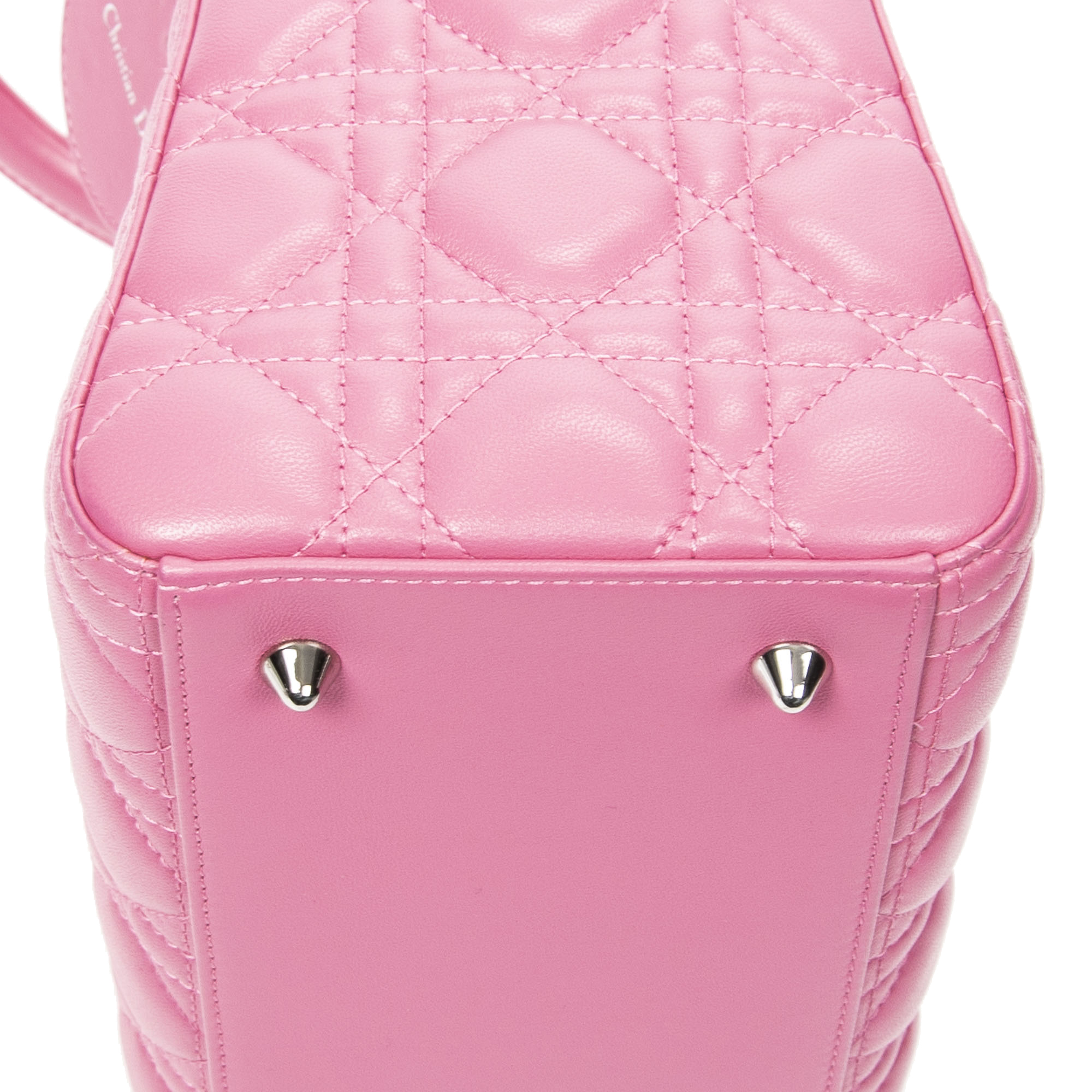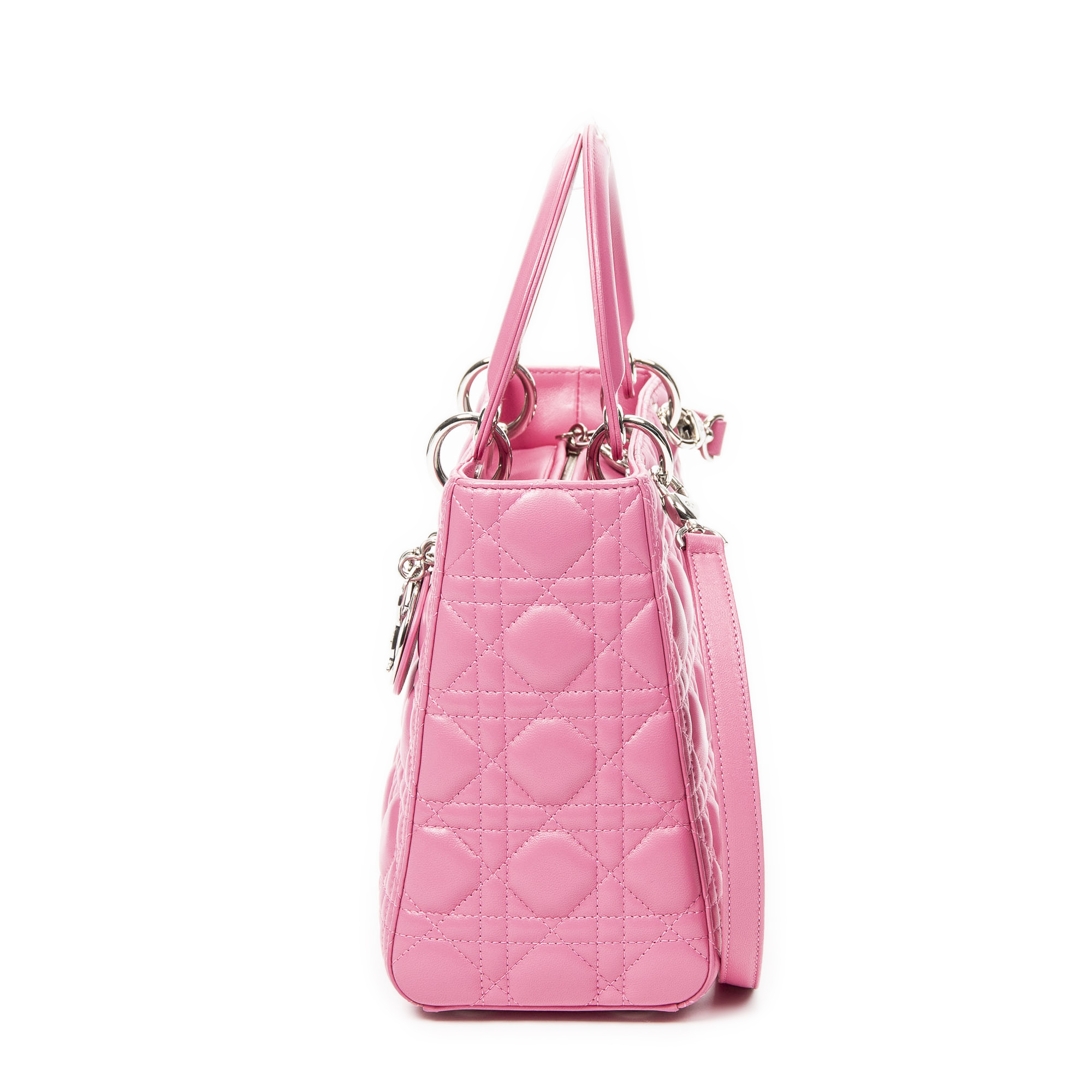 Dior Shoulder Bag Medium Lady Dior Zip in Pink Cannage Lambskin Leather and Silver hardware. The product is in Perfect Condition (AA).
