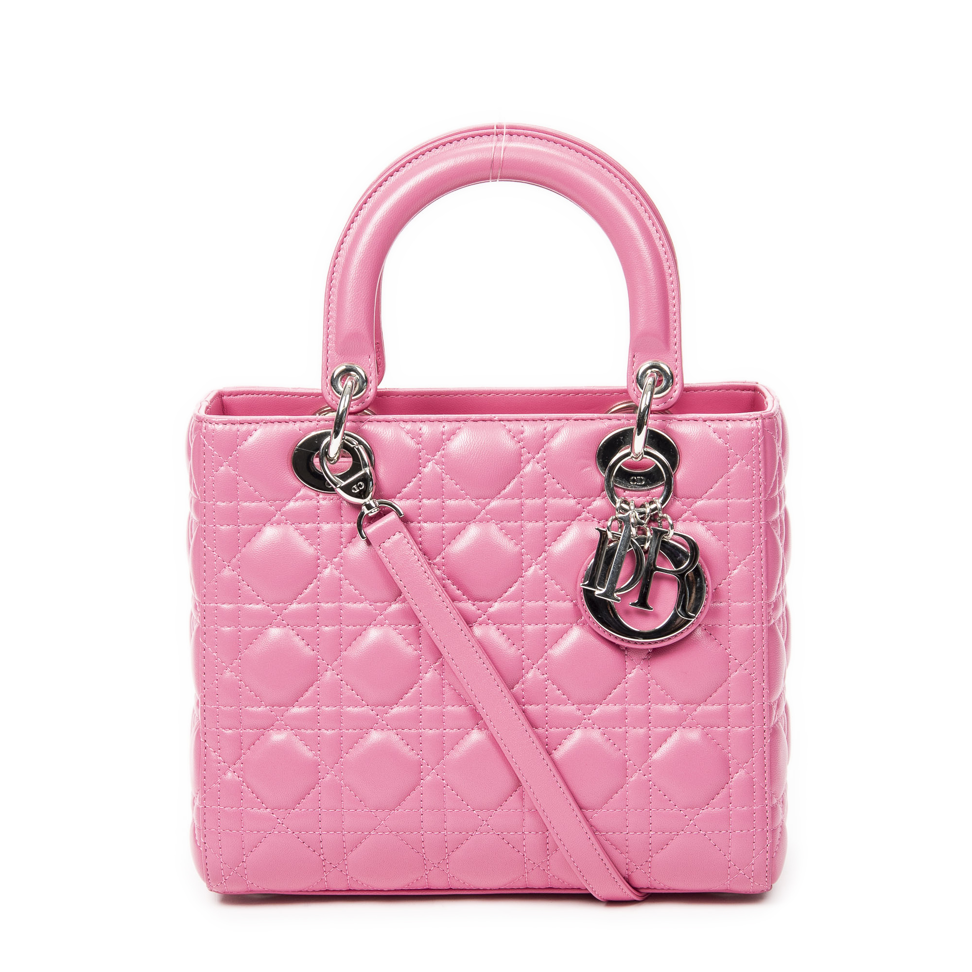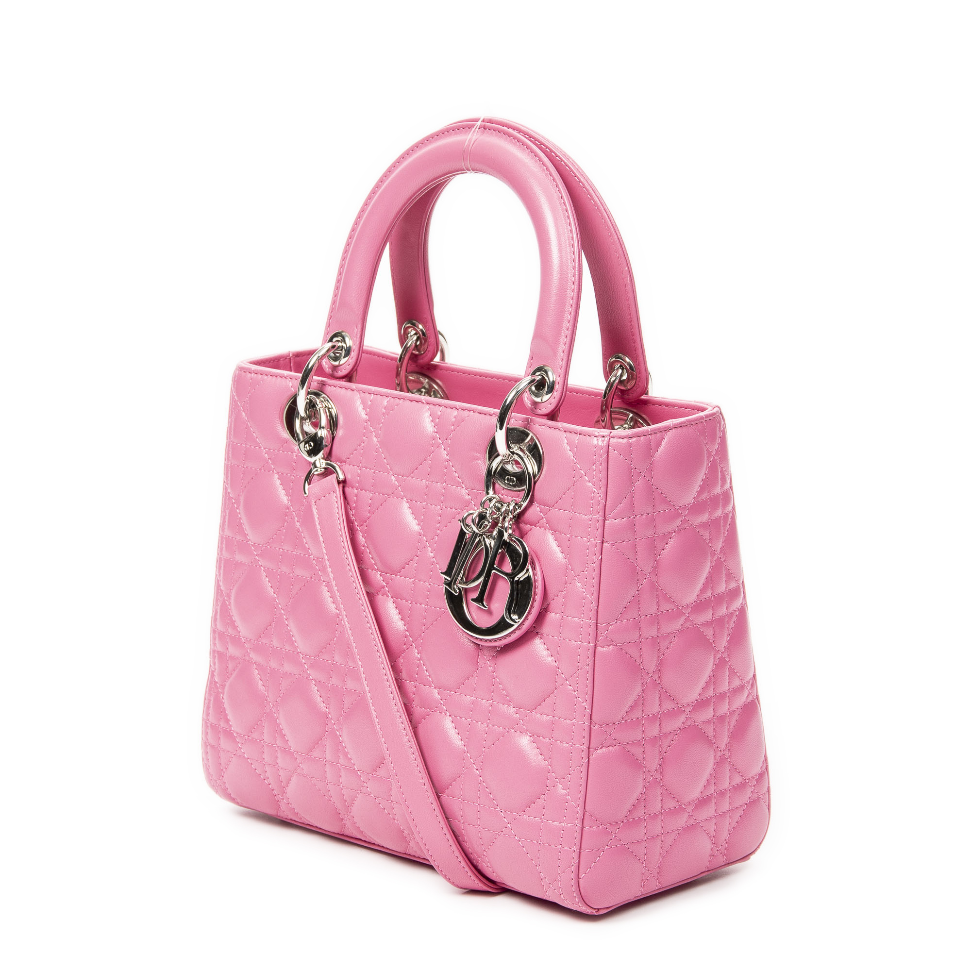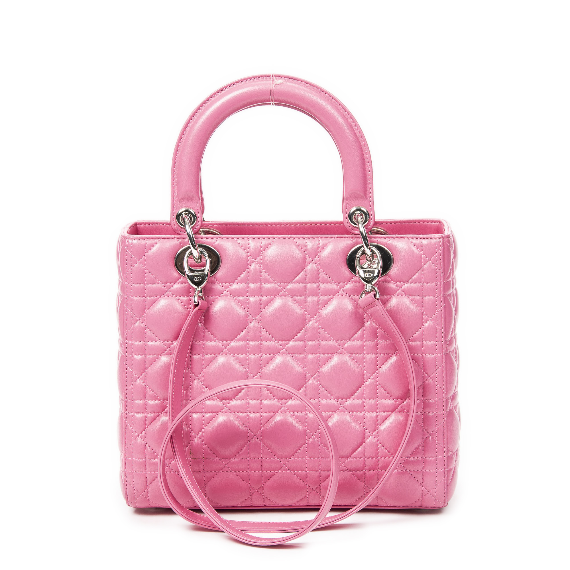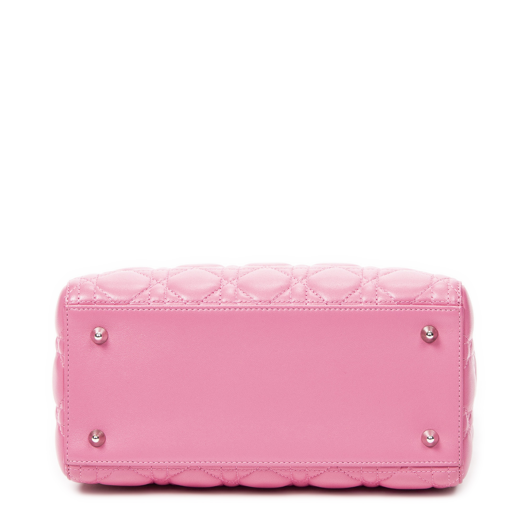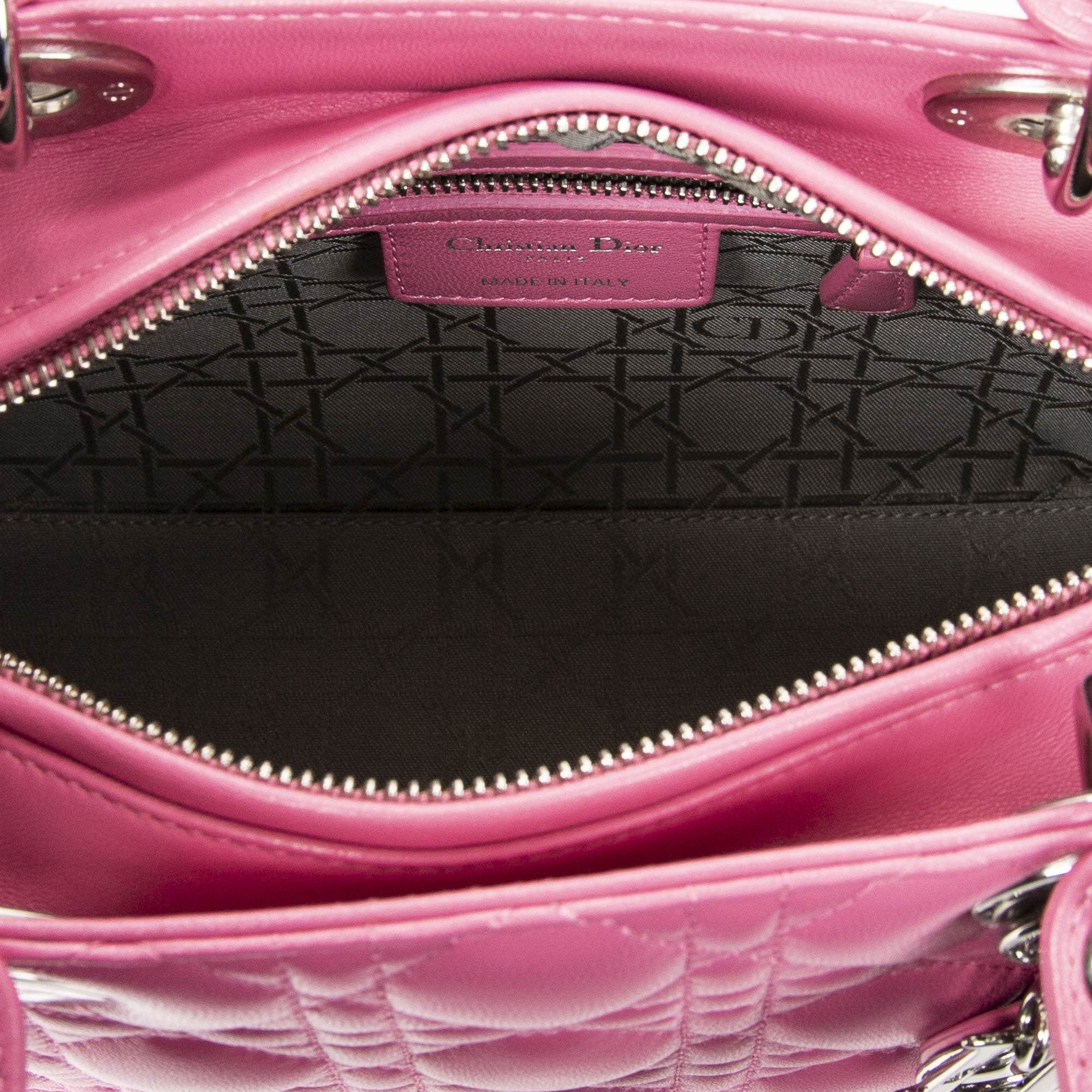 Dior Shoulder Bag Medium Lady Dior Zip in Pink Cannage Lambskin Leather and Silver hardware. The product is in Perfect Condition (AA).