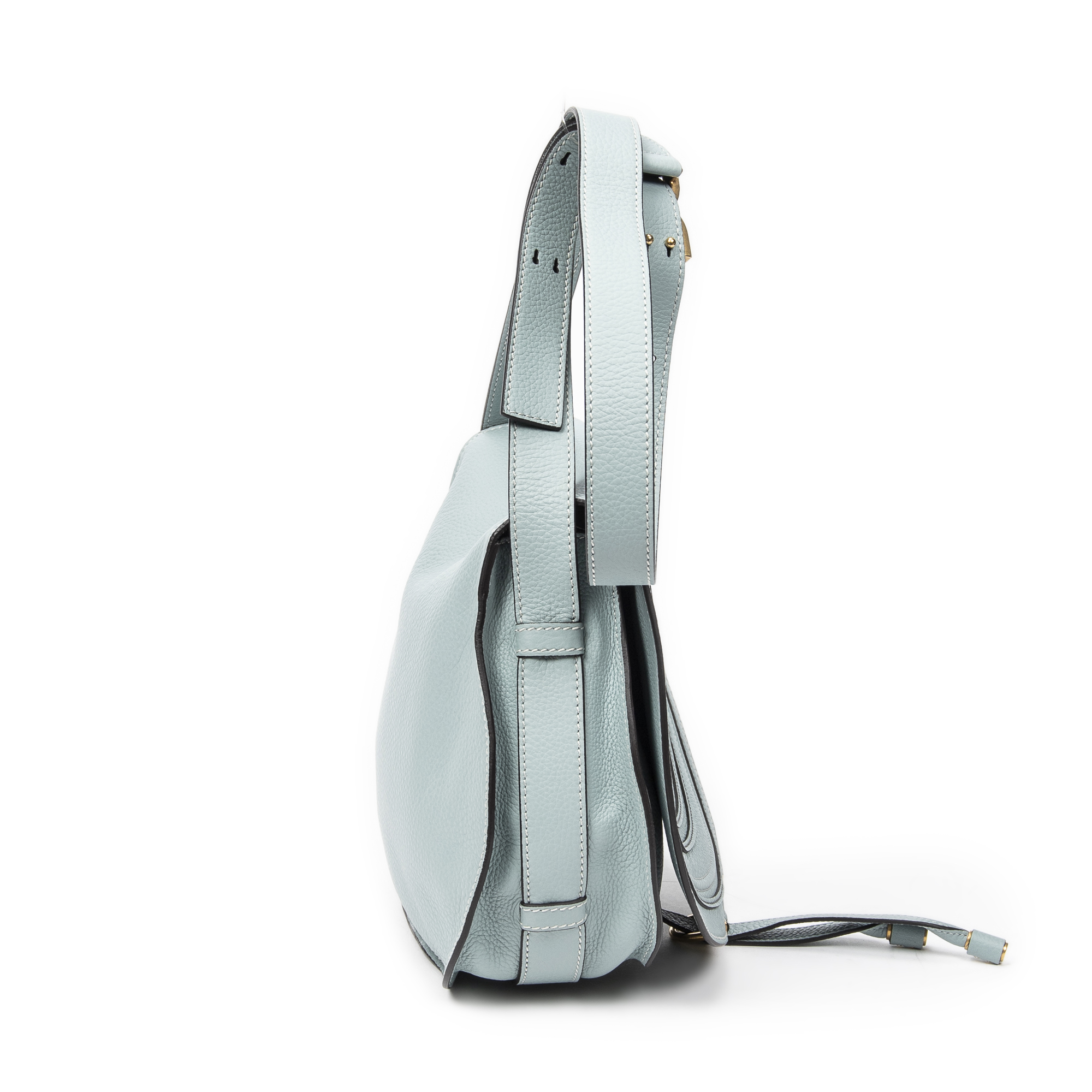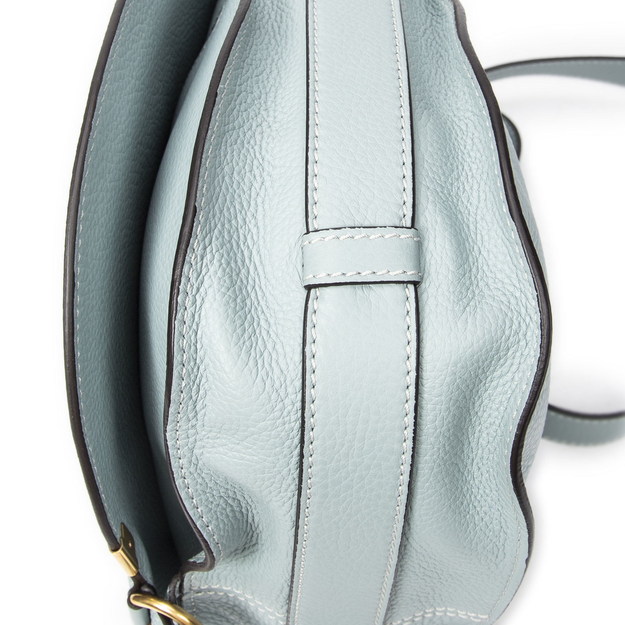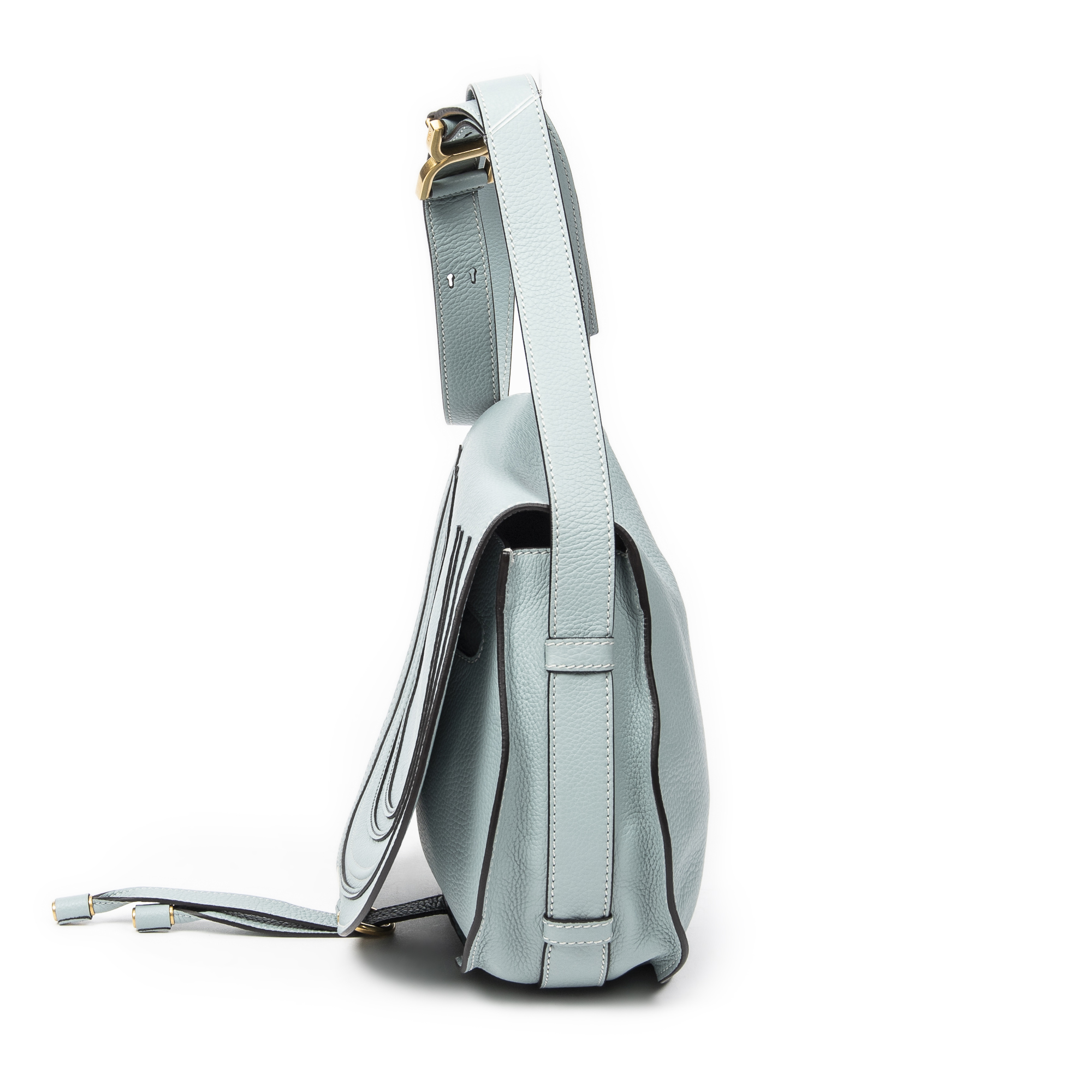Chloé Shoulder Bag Medium Marcie Saddle in Light Blue Grained calfskin leather and Gold hardware. The product is in Perfect Condition (AA).