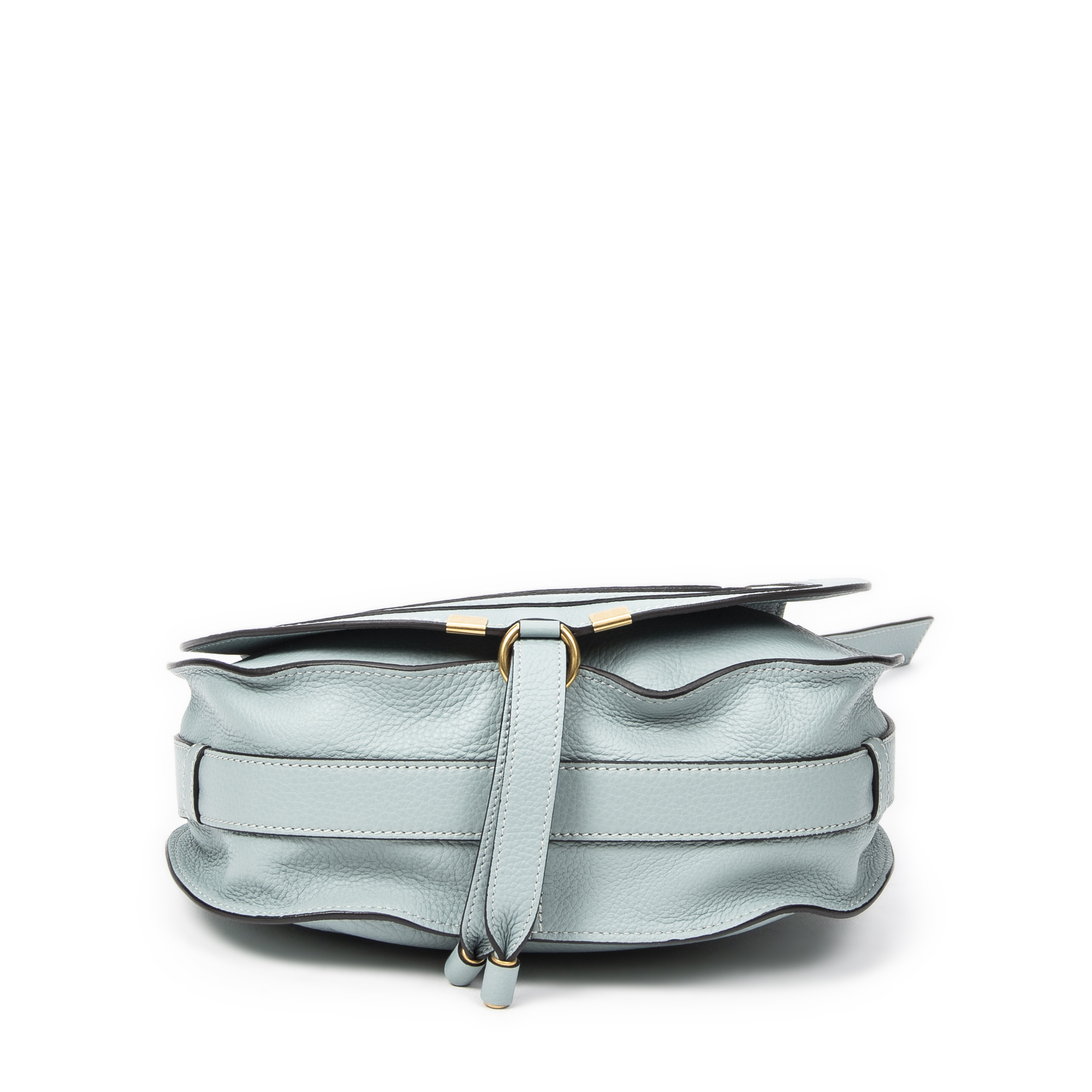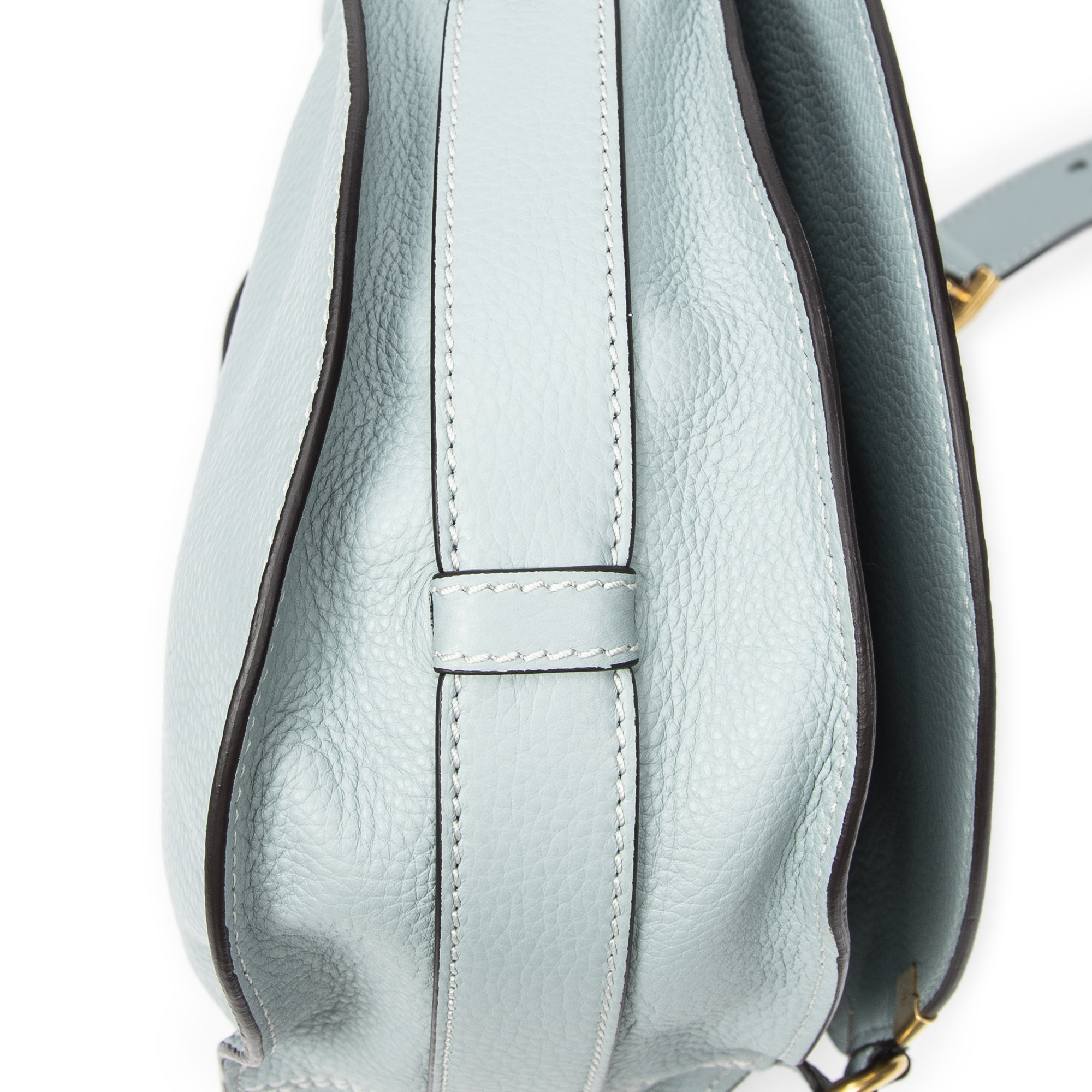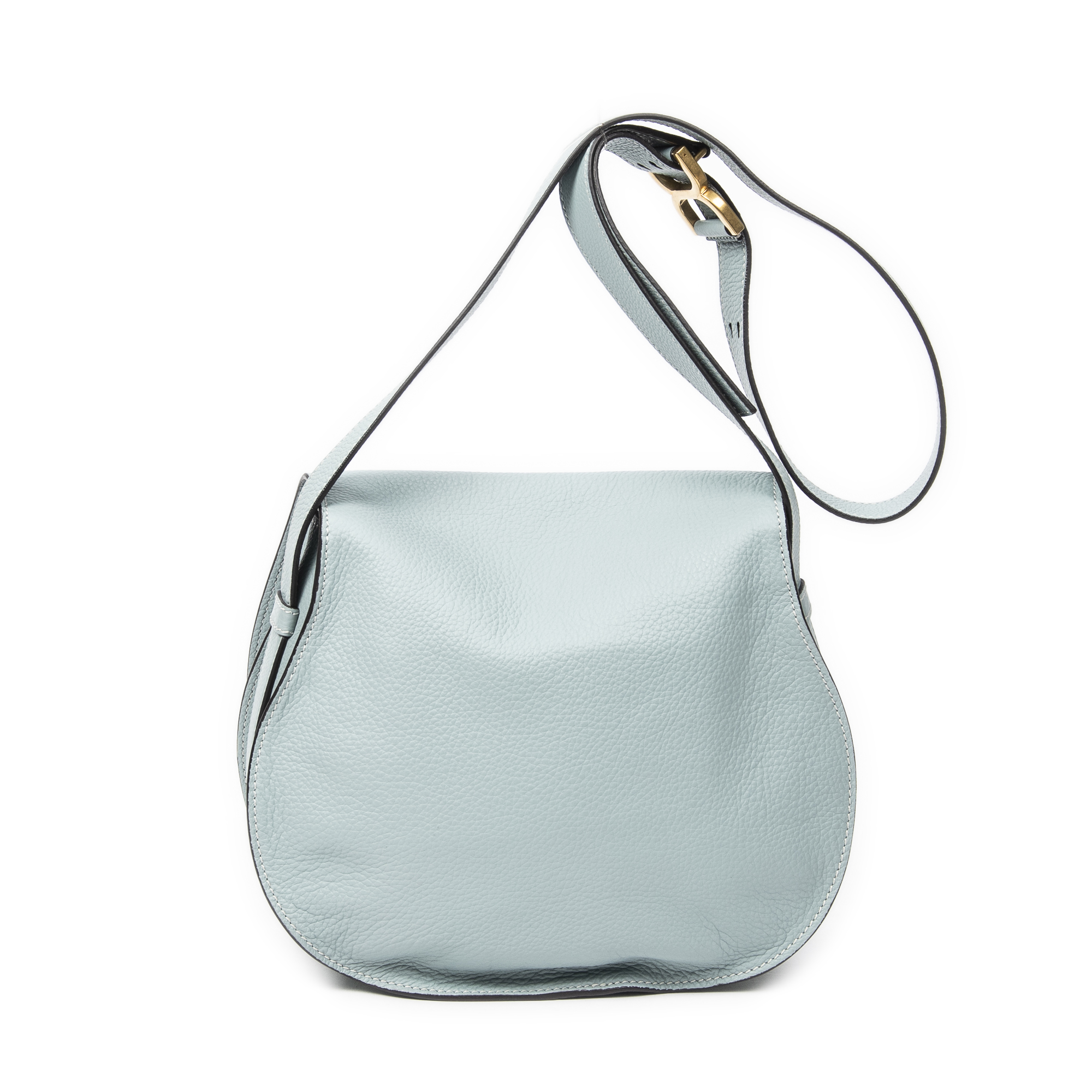Chloé Shoulder Bag Medium Marcie Saddle in Light Blue Grained calfskin leather and Gold hardware. The product is in Perfect Condition (AA).