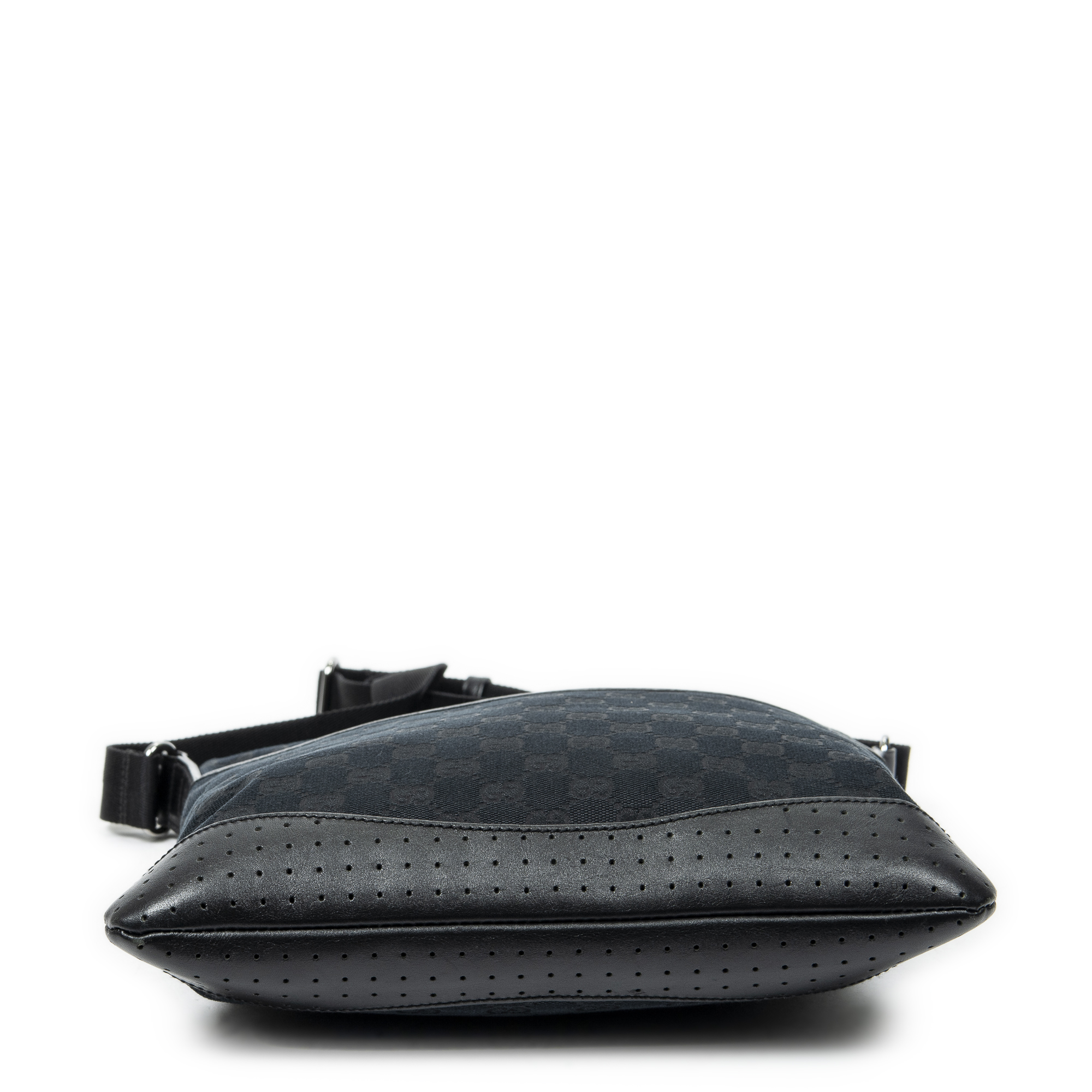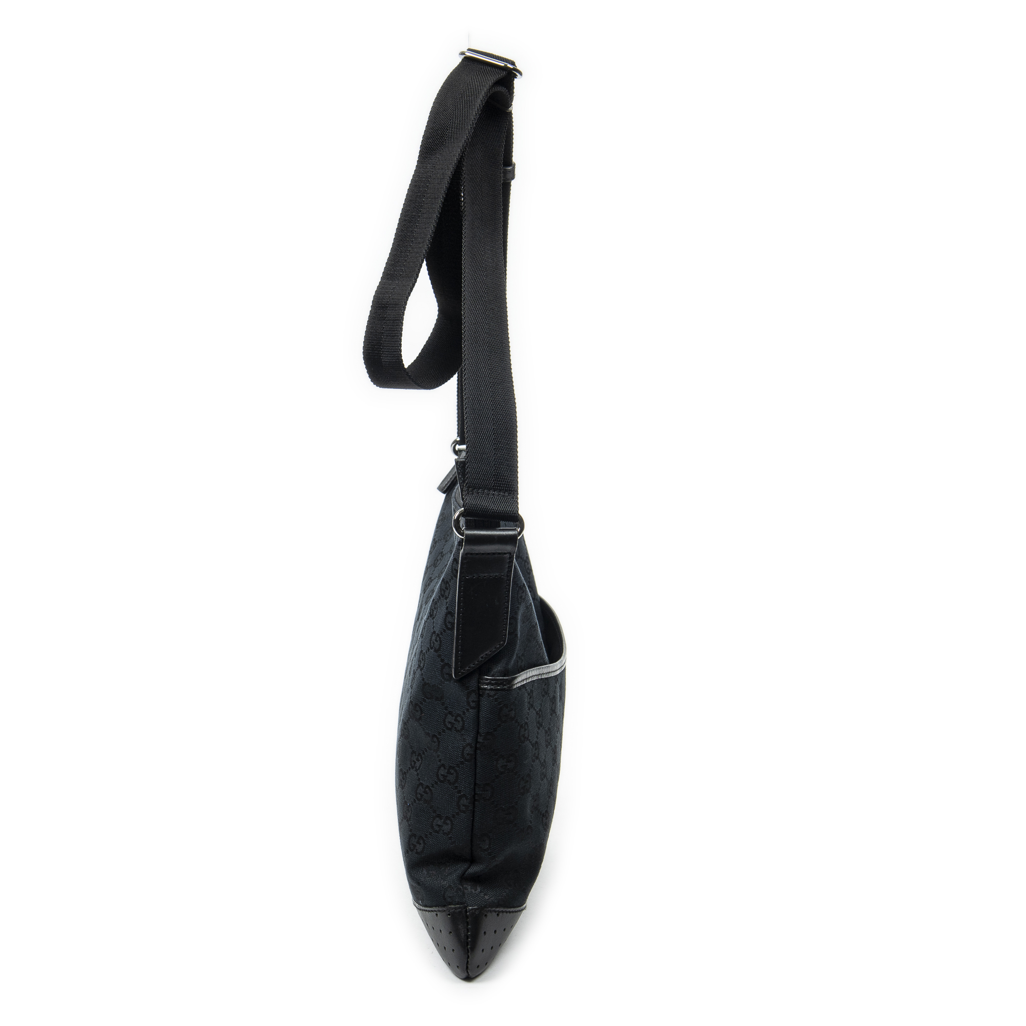 Gucci Shoulder Bag Medium Messenger in Black Monogrammed Canvas and Silver hardware. The product is in Excellent Condition (A).