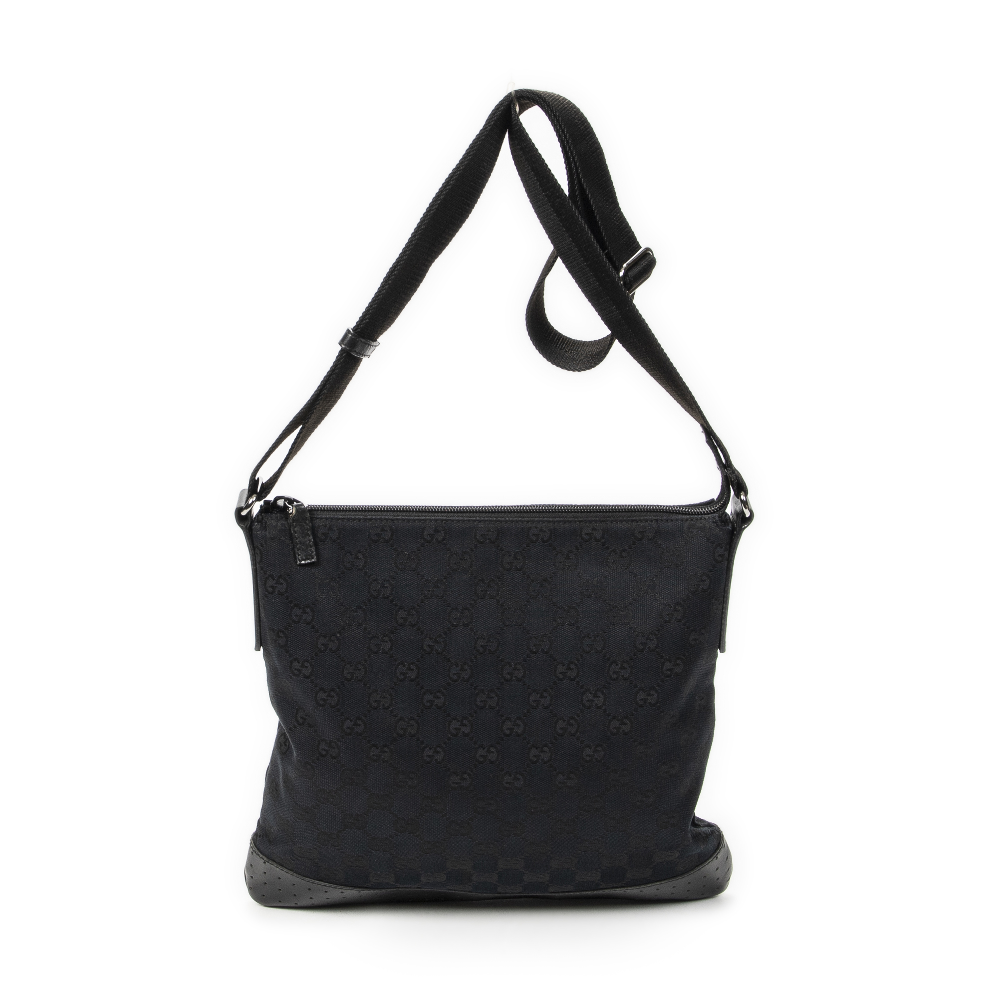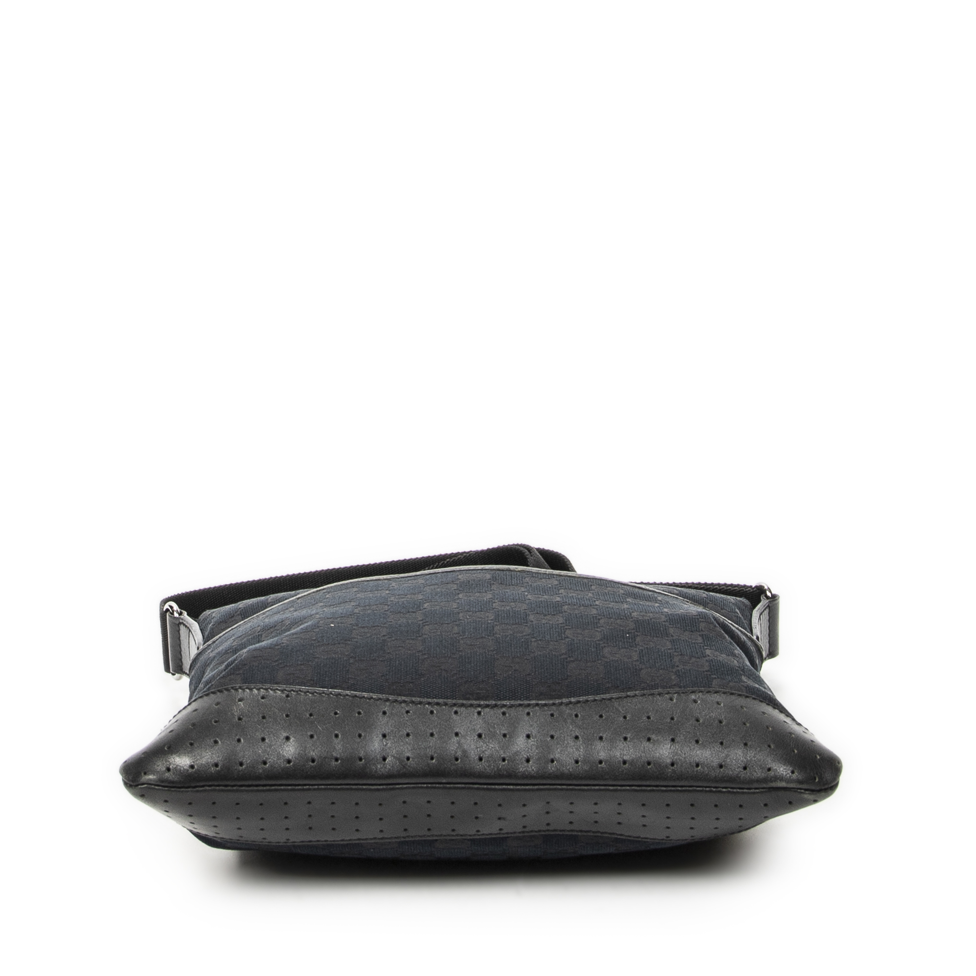 Gucci Shoulder Bag Medium Messenger in Black Monogrammed Canvas and Silver hardware. The product is in Perfect Condition (AA).