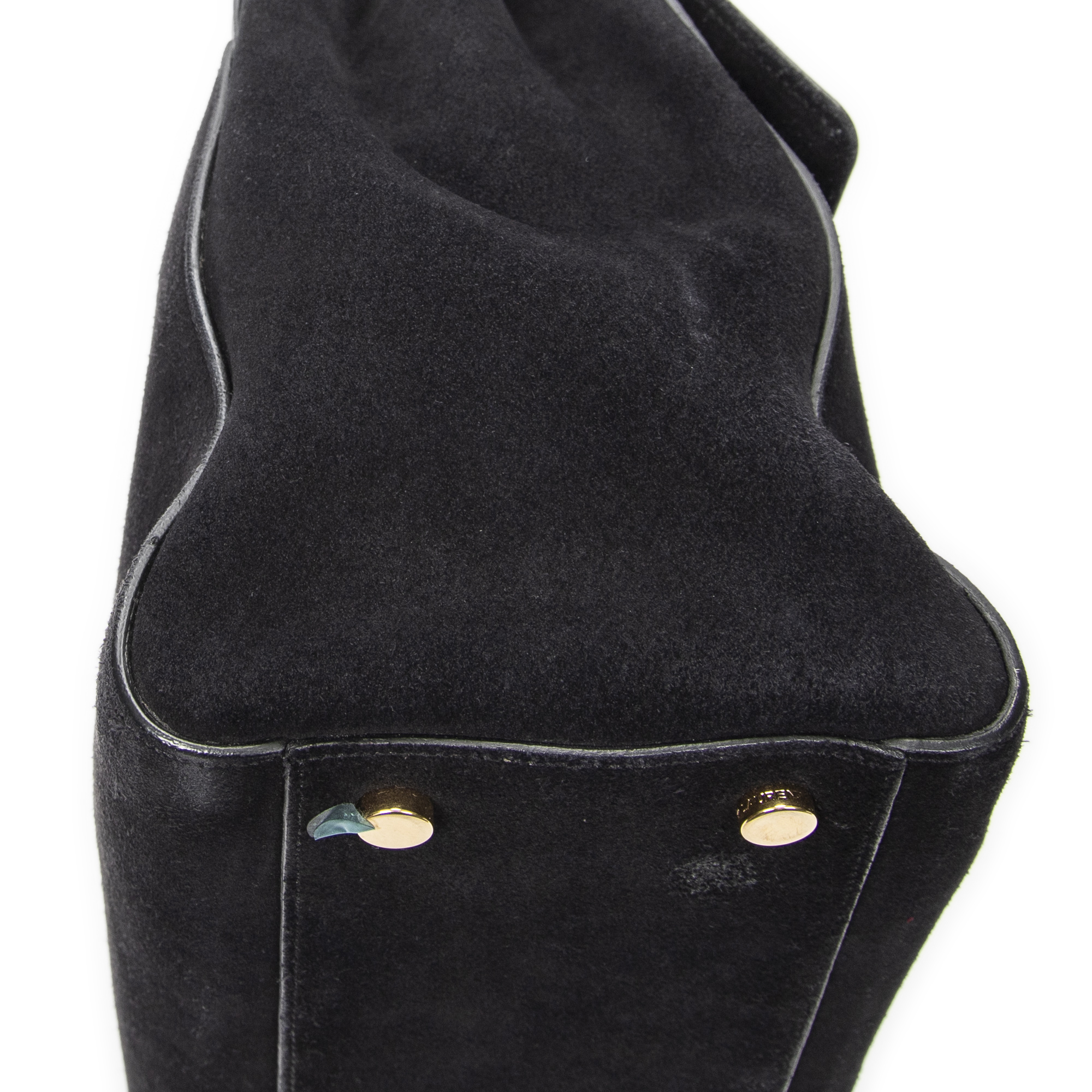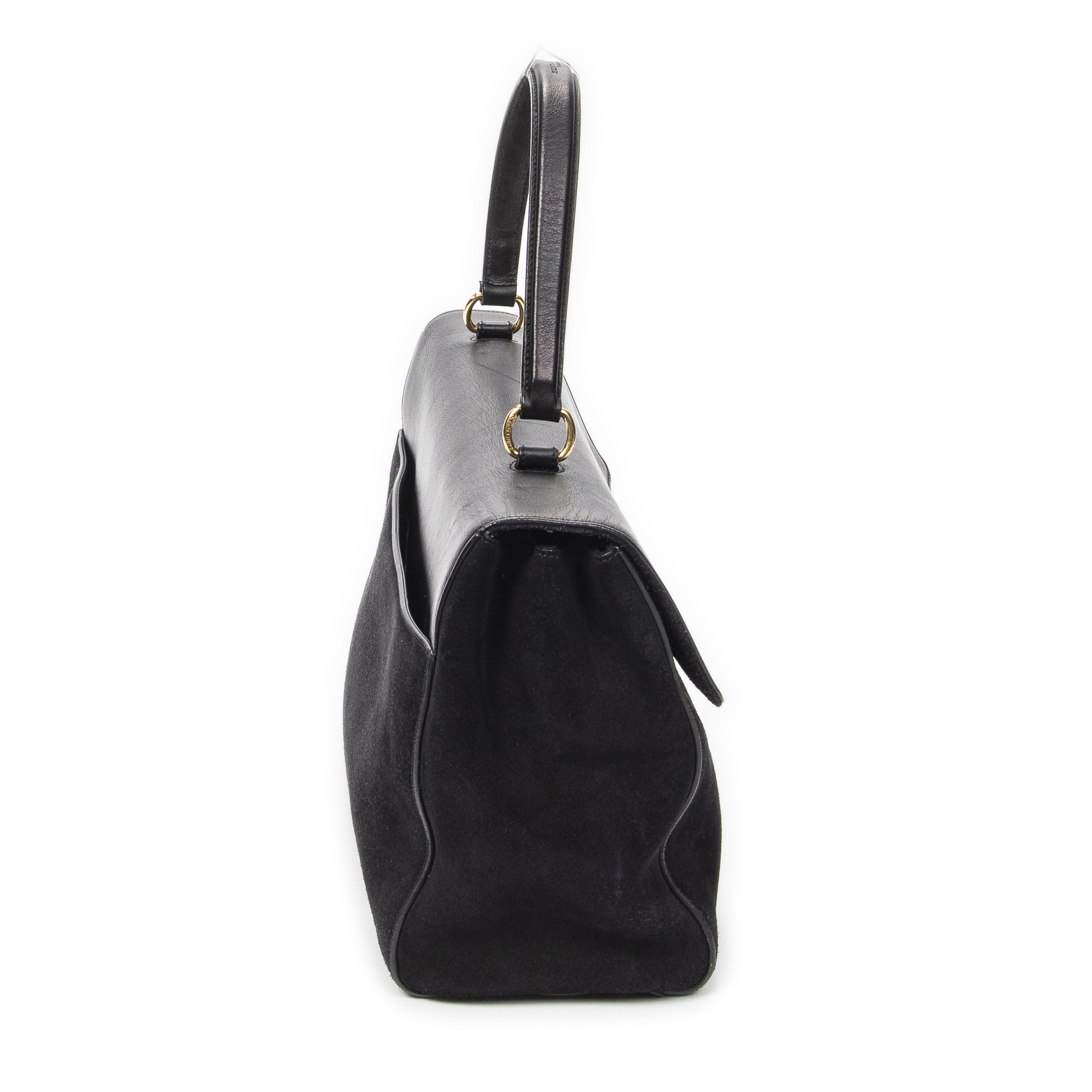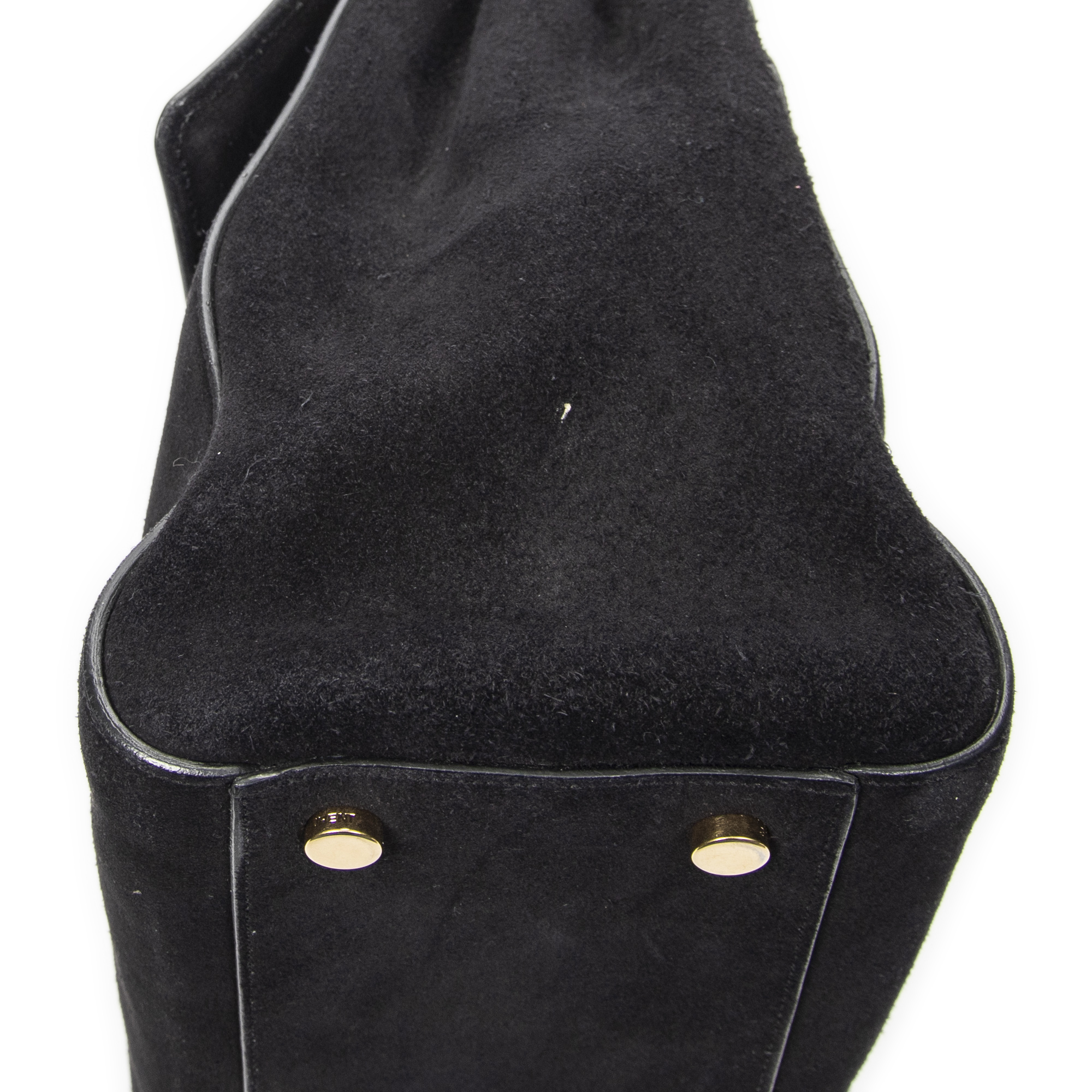 Yves Saint Laurent Shoulder Bag Medium Moujik Top Handle in Black Suede Leather and Gold hardware. The product is in Excellent Condition (A).