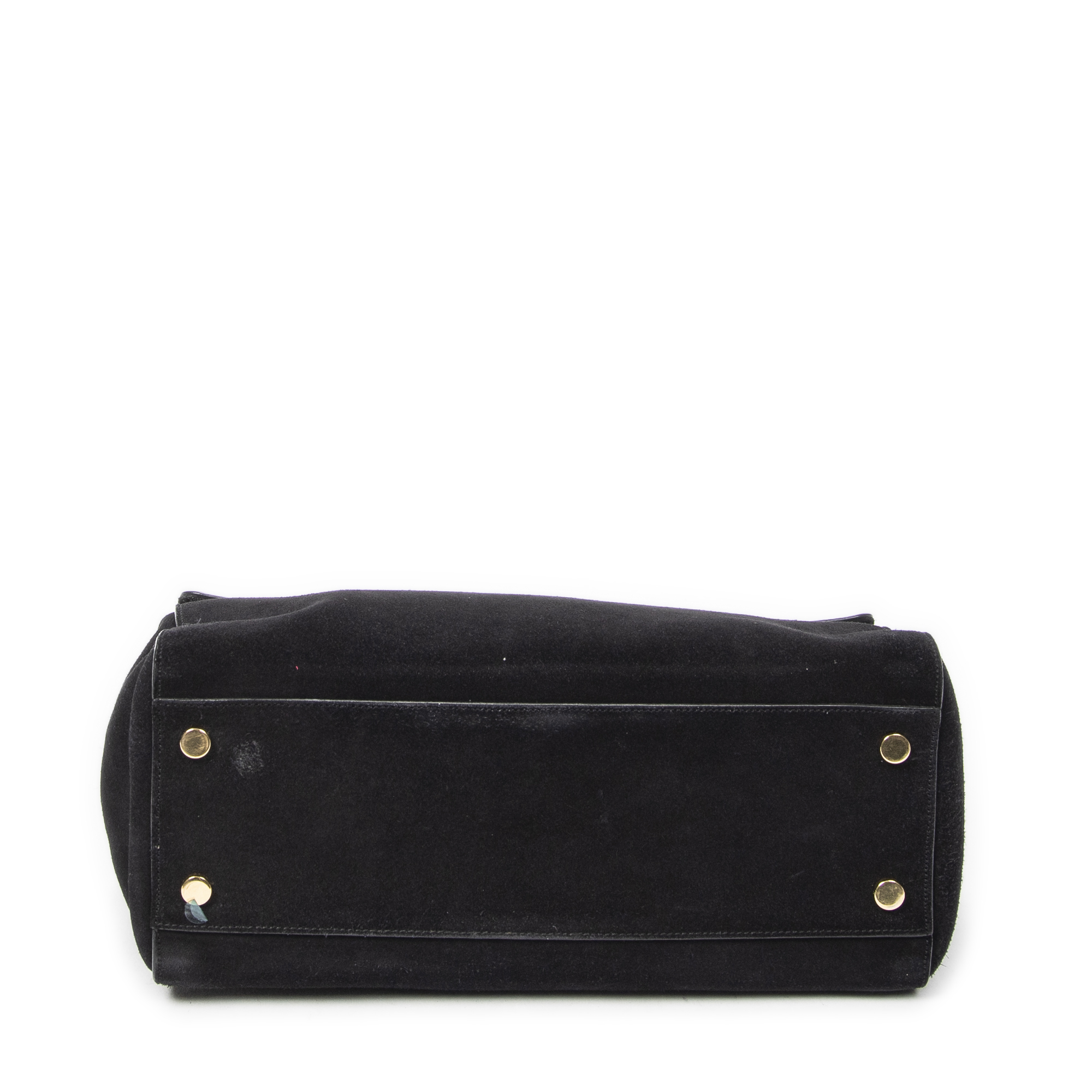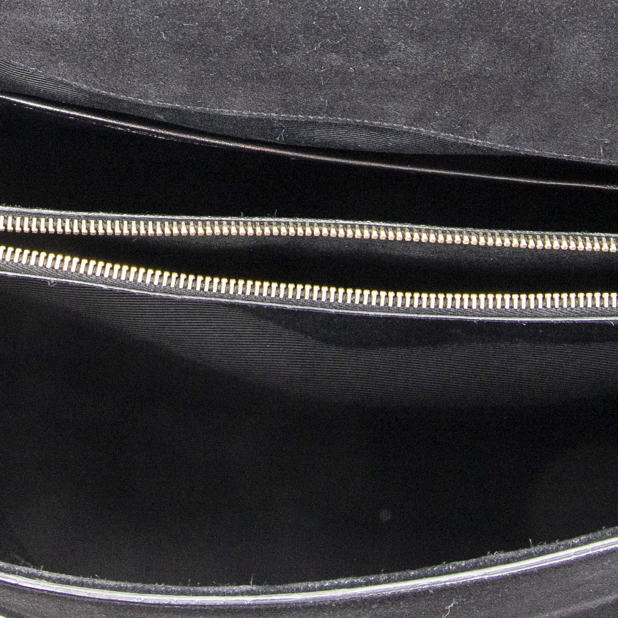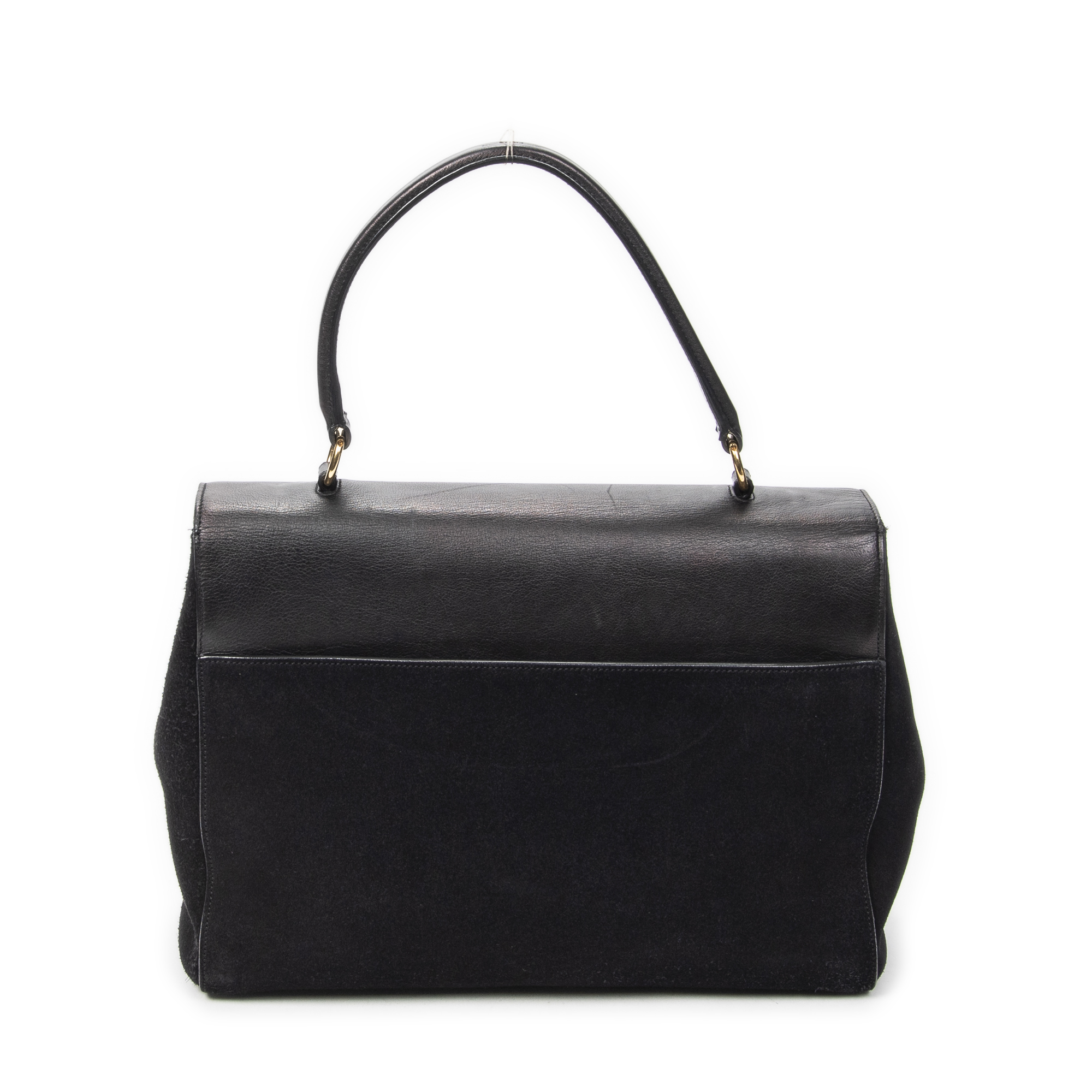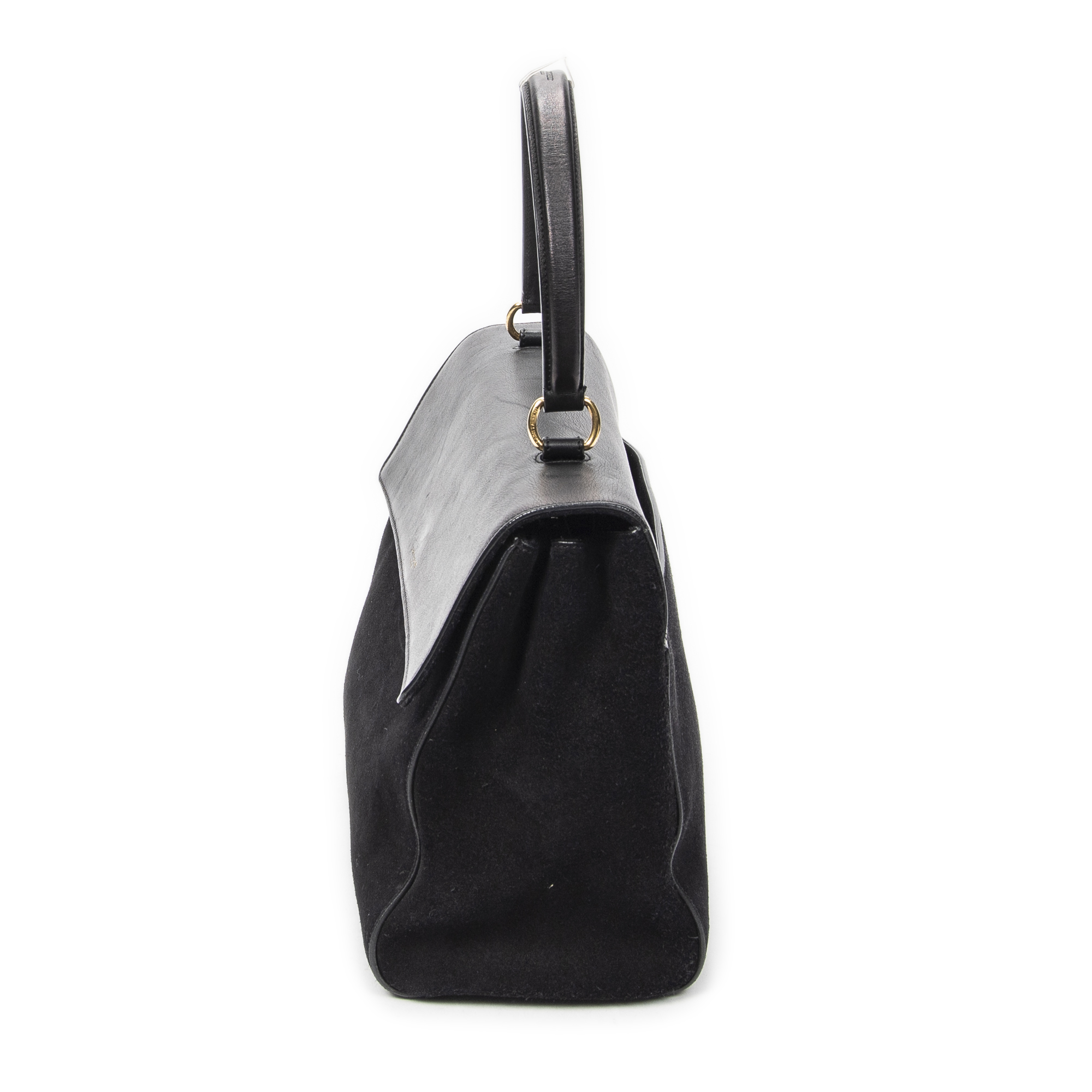 Yves Saint Laurent Shoulder Bag Medium Moujik Top Handle in Black Suede Leather and Gold hardware. The product is in Excellent Condition (A).