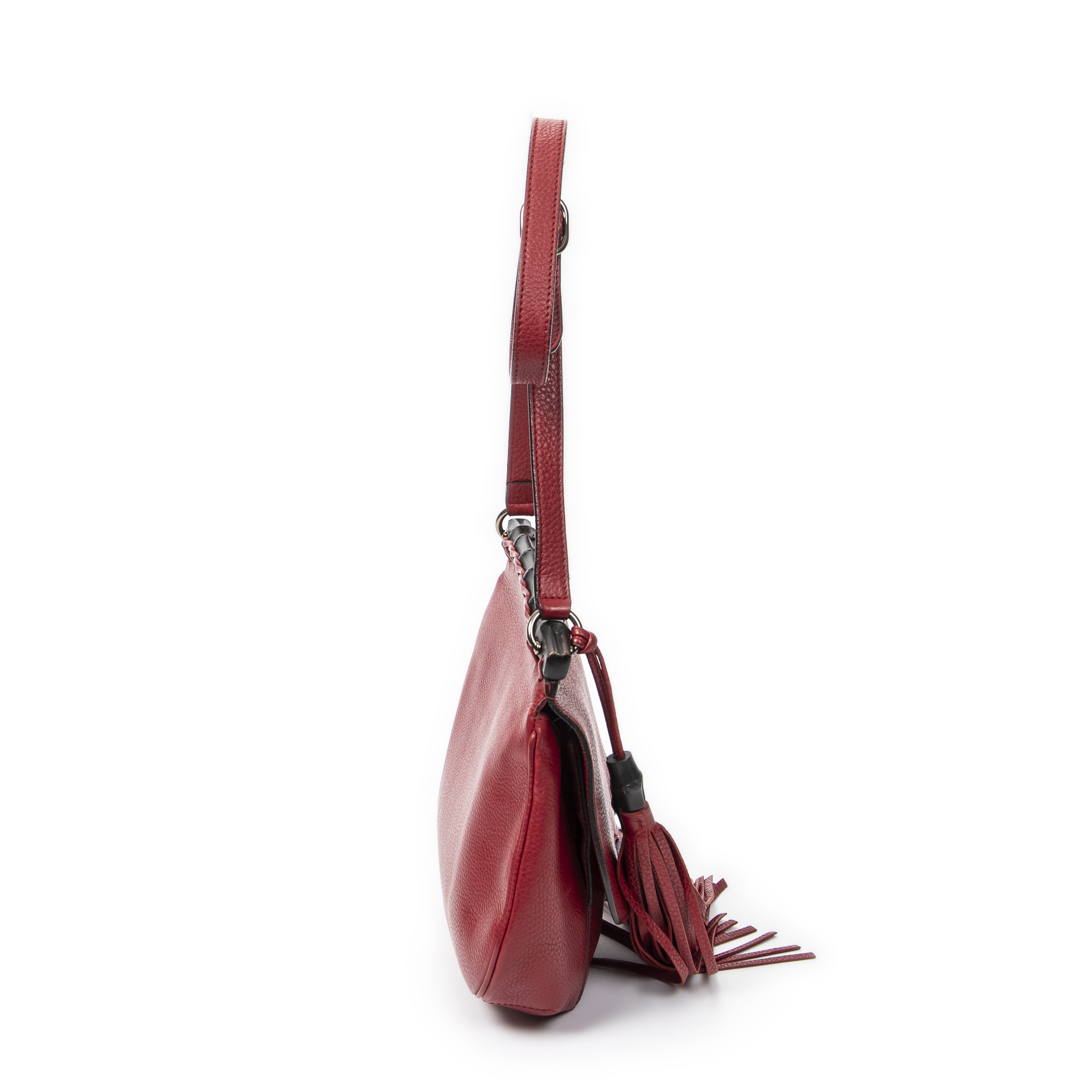 Gucci Shoulder Bag Medium Nouveau Fringe Crossbody in Red Grained Calfskin Leather and Silver hardware. The product is in Excellent Condition (A).