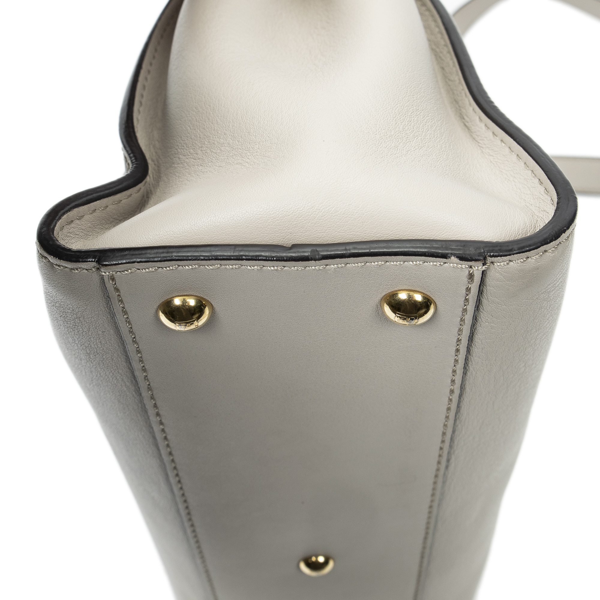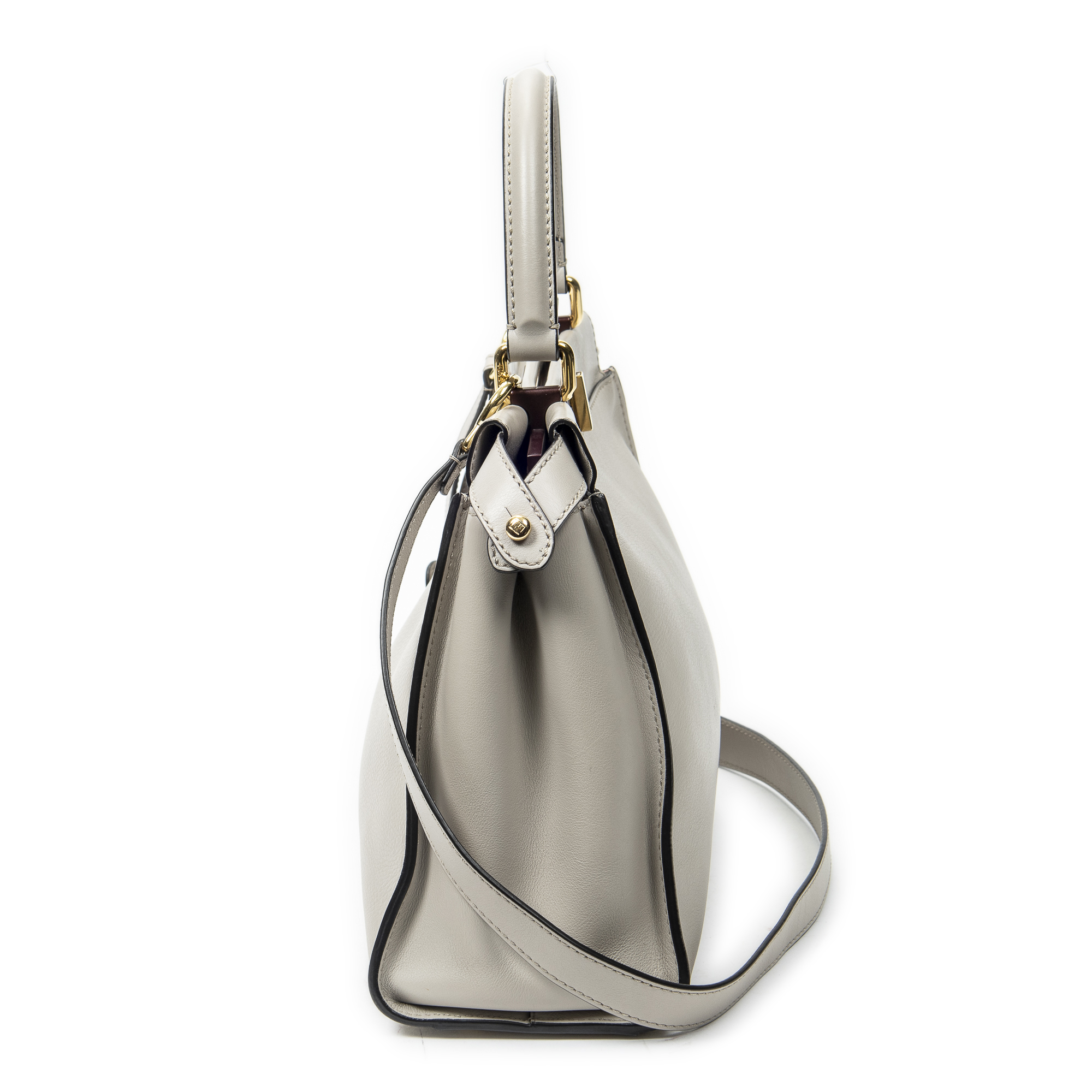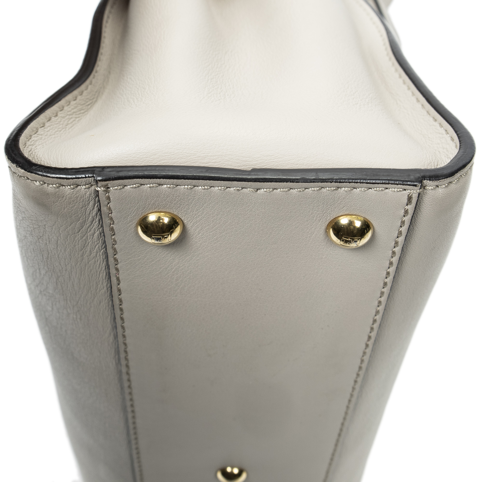 Fendi Shoulder Bag Medium Peekaboo in Beige Calfskin Leather and Gold hardware. The product is in Excellent Condition (A).