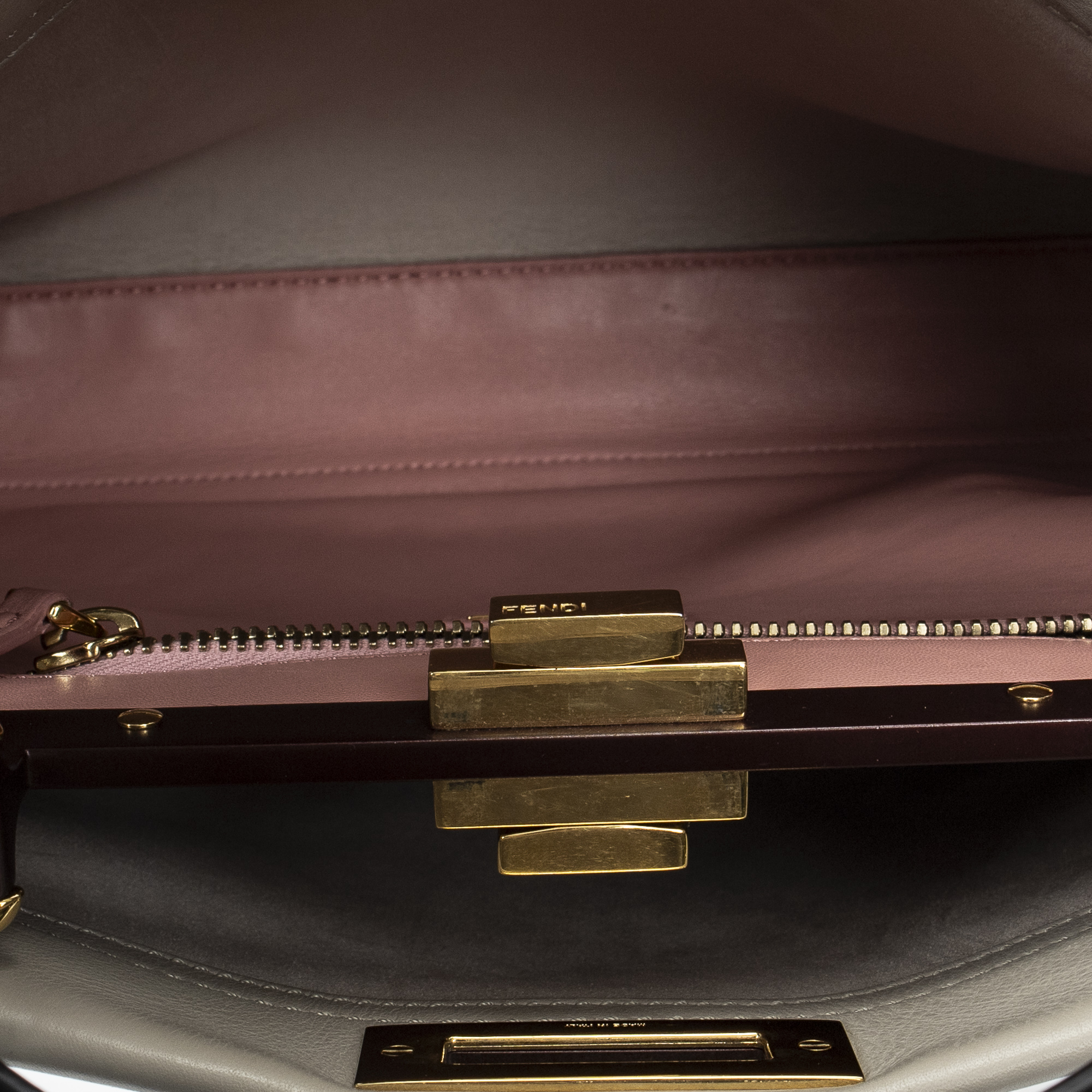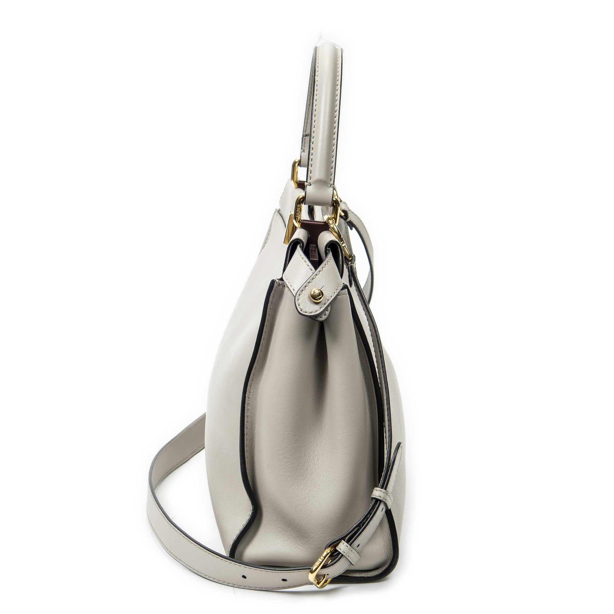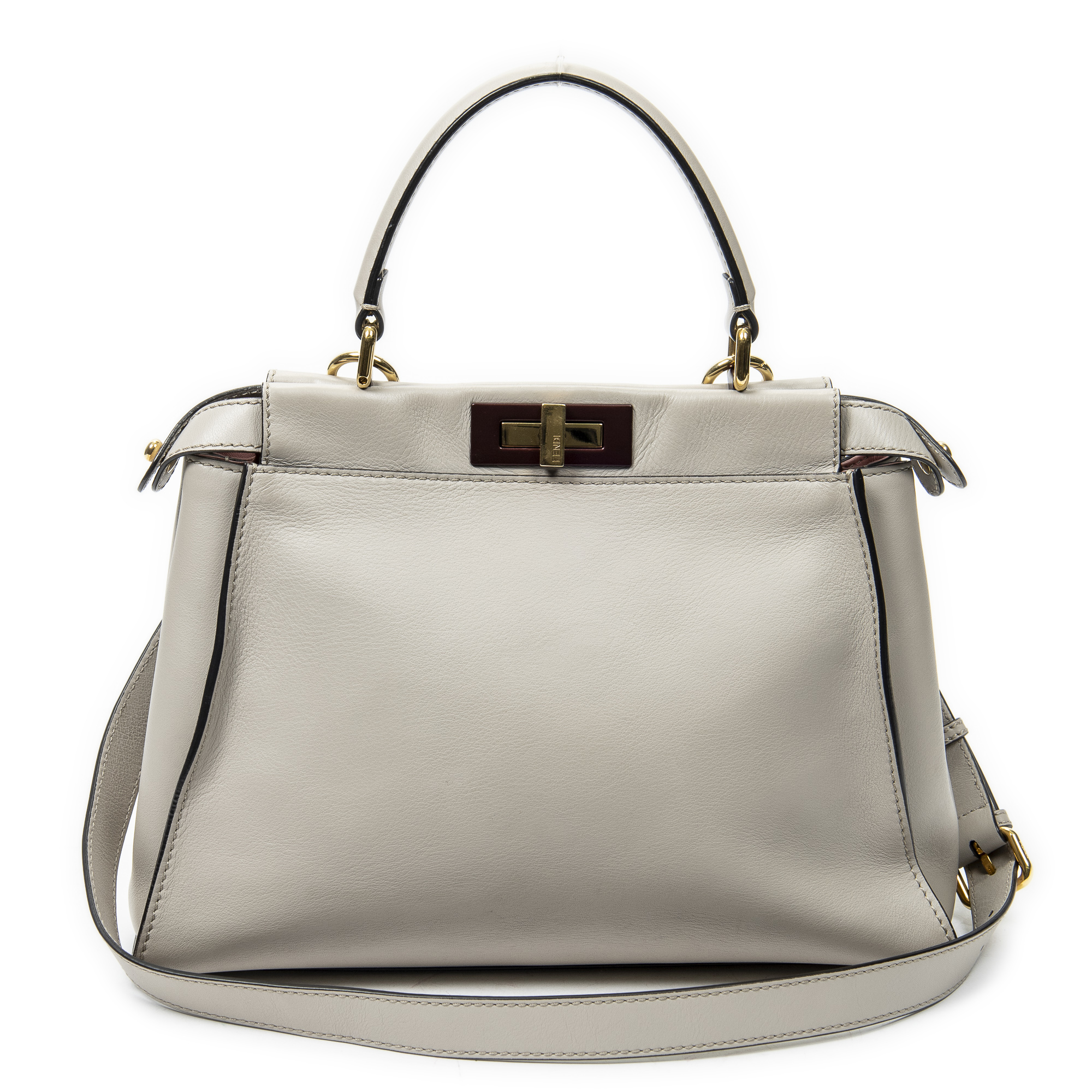 Fendi Shoulder Bag Medium Peekaboo in Beige Calfskin Leather and Gold hardware. The product is in Excellent Condition (A).