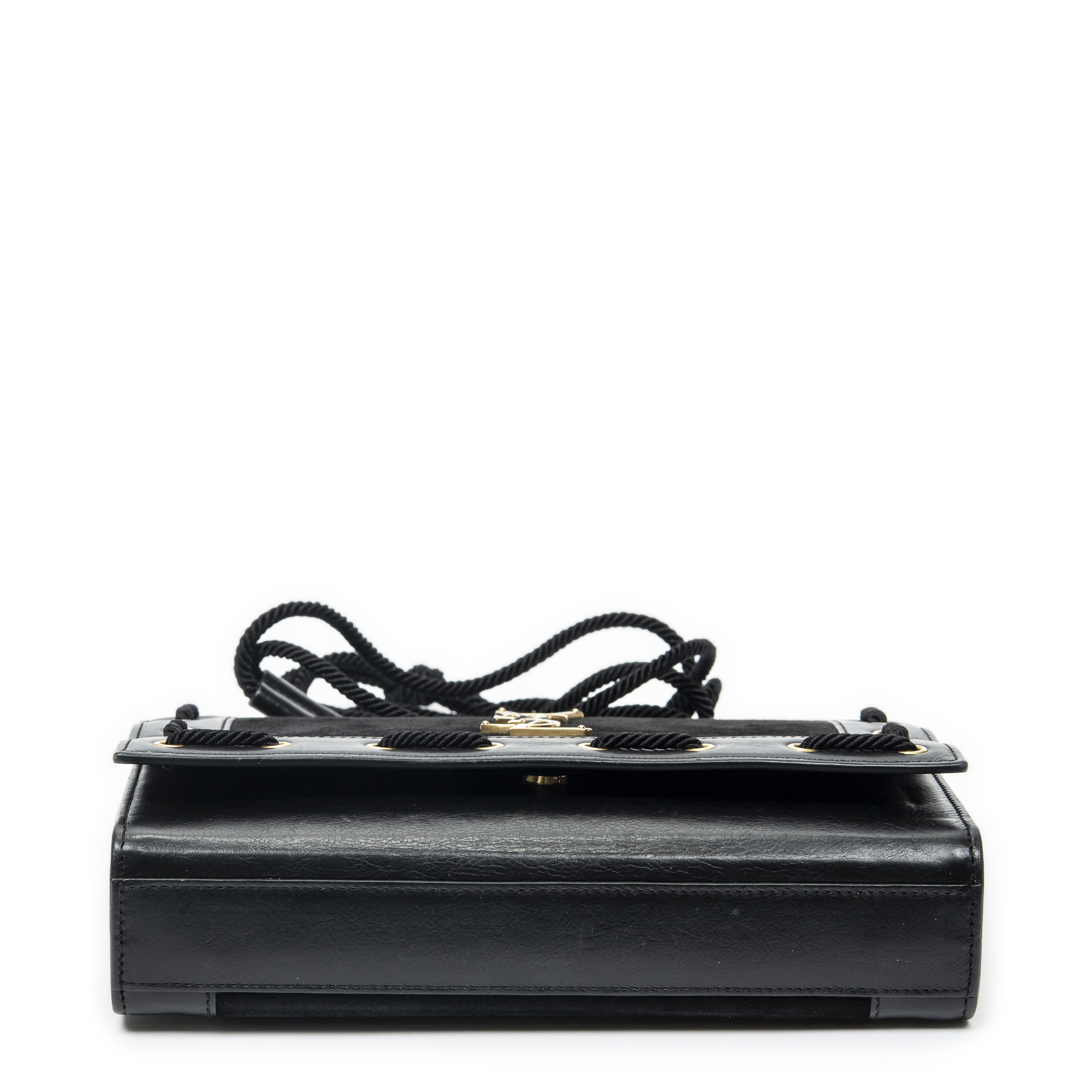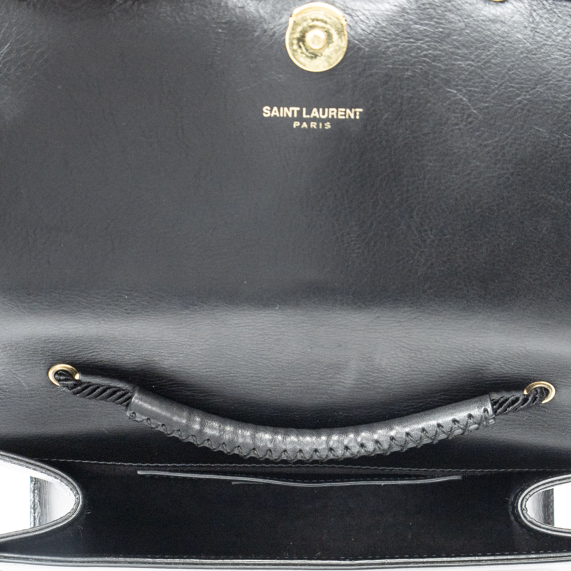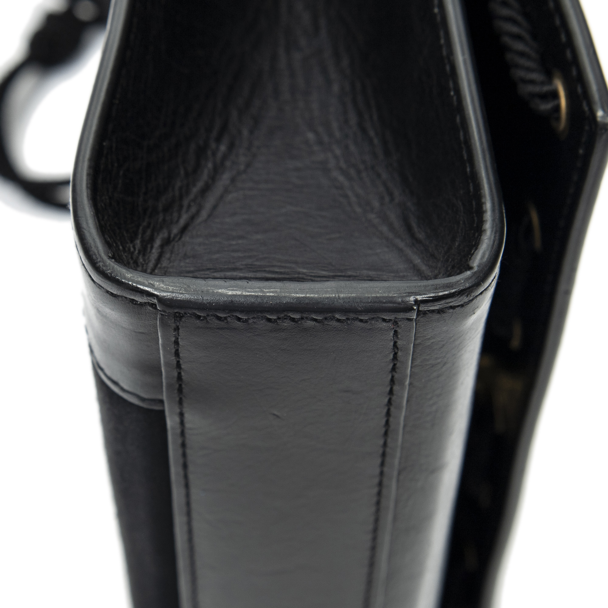Yves Saint Laurent Shoulder Bag Medium Rope Stitch Kate Crossbody in Black Suede Leather and Gold hardware. The product is in Excellent Condition (A).