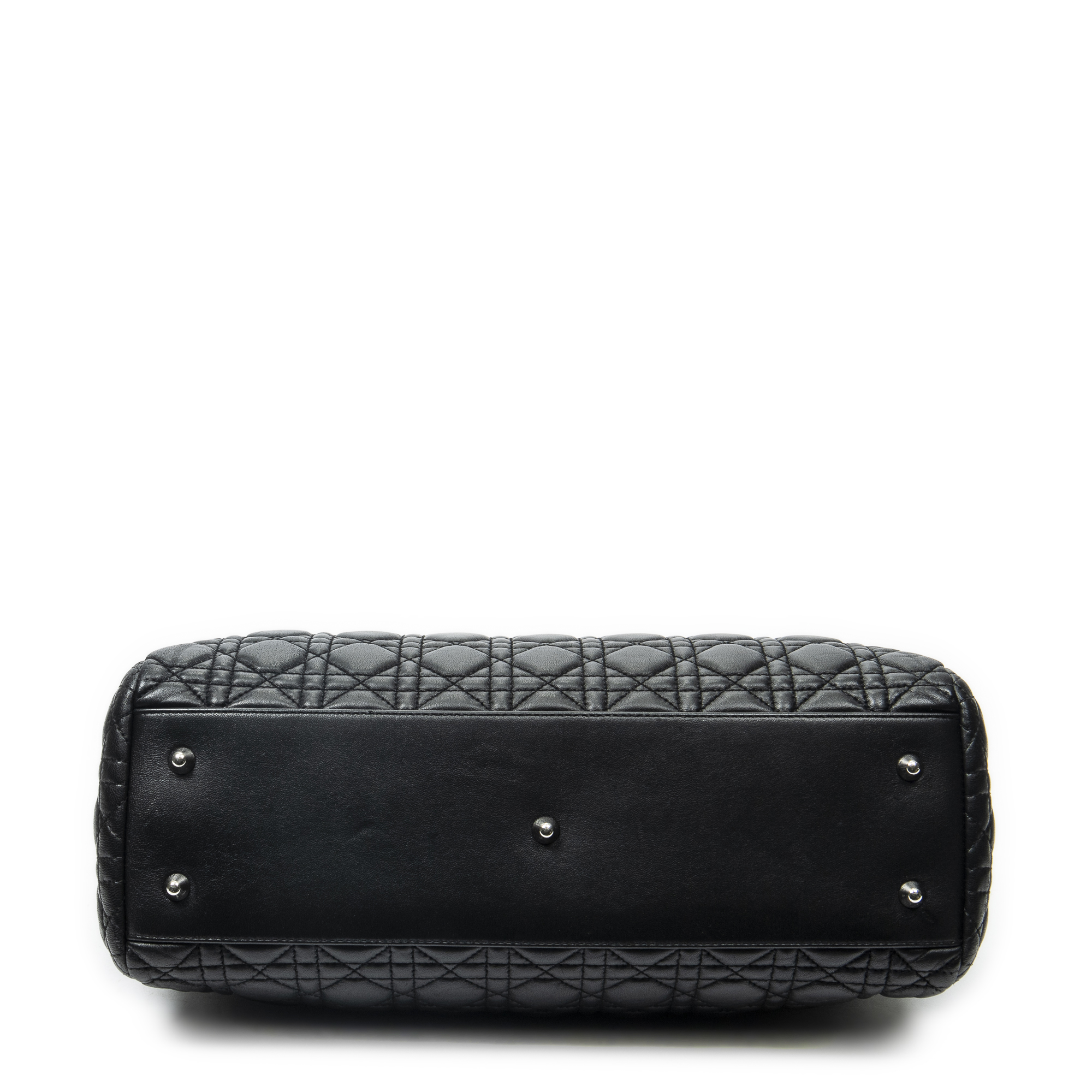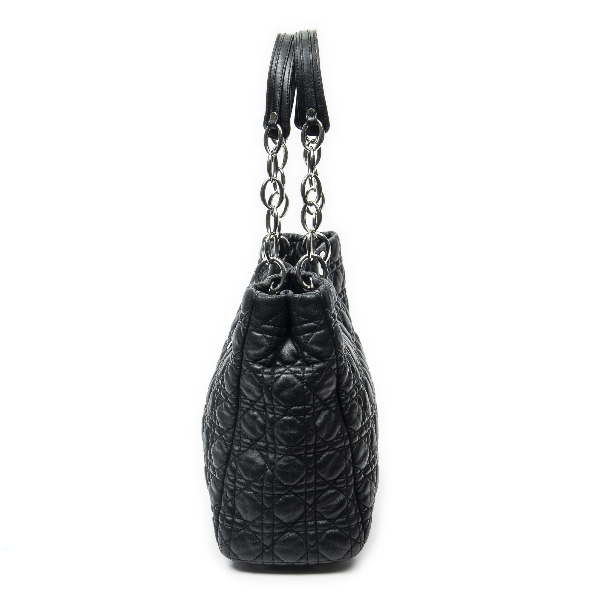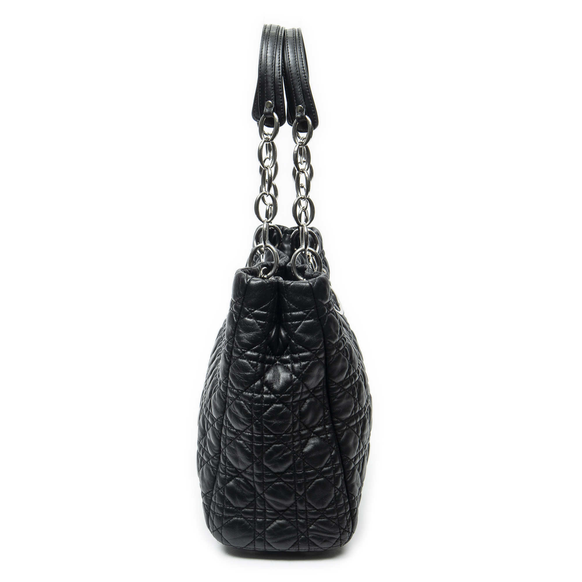 Dior Shoulder Bag Medium Soft Shopping Tote in Black Cannage Calfskin Leather and Silver hardware. The product is in Perfect Condition (AA).